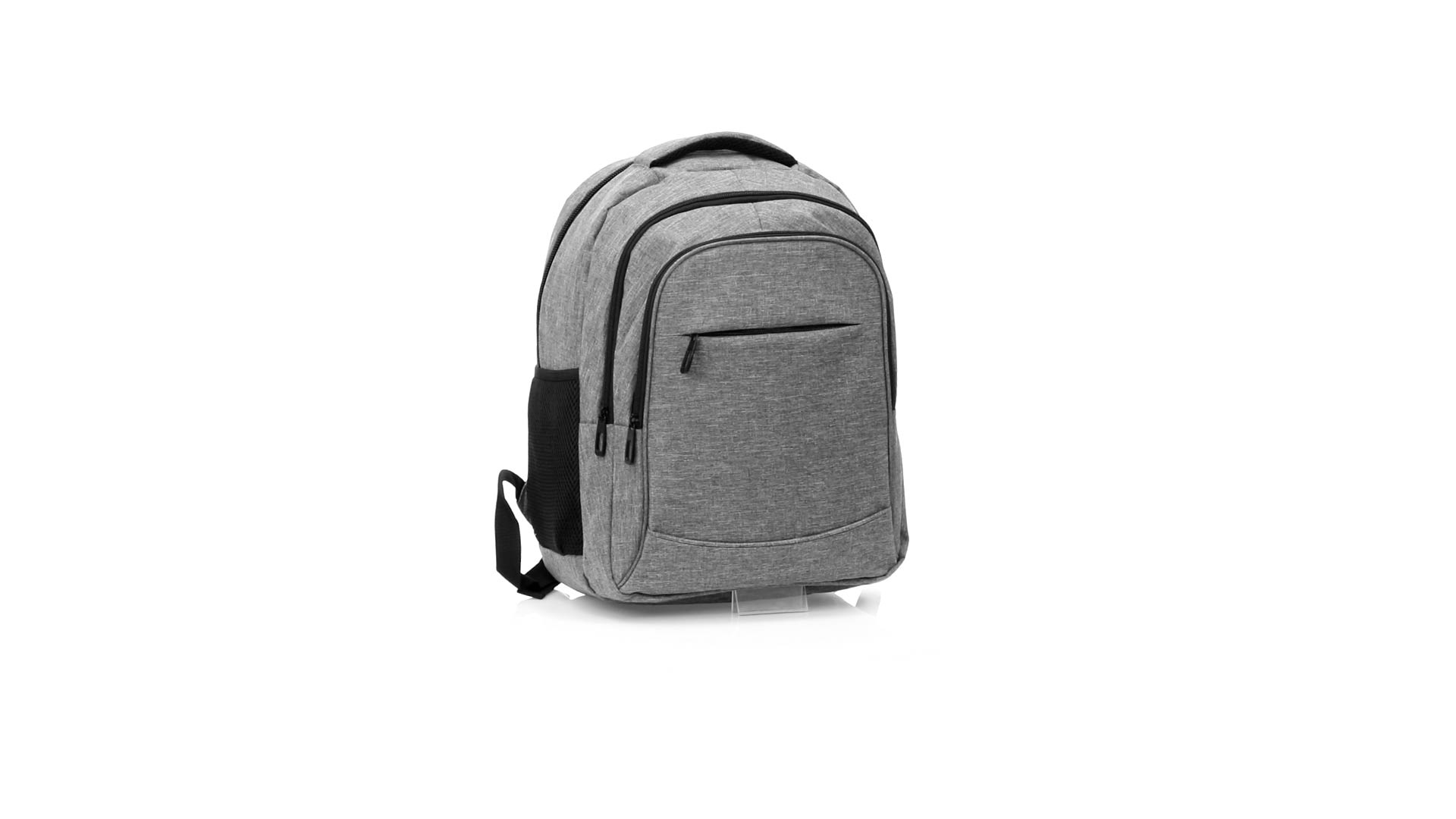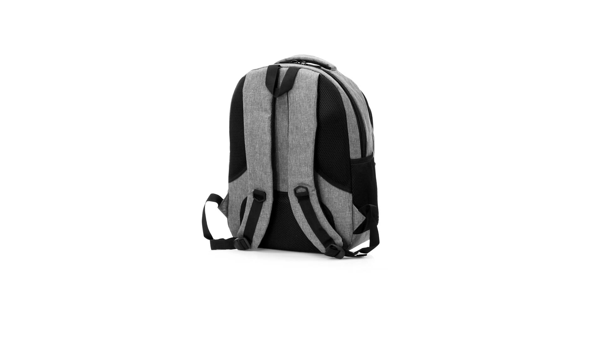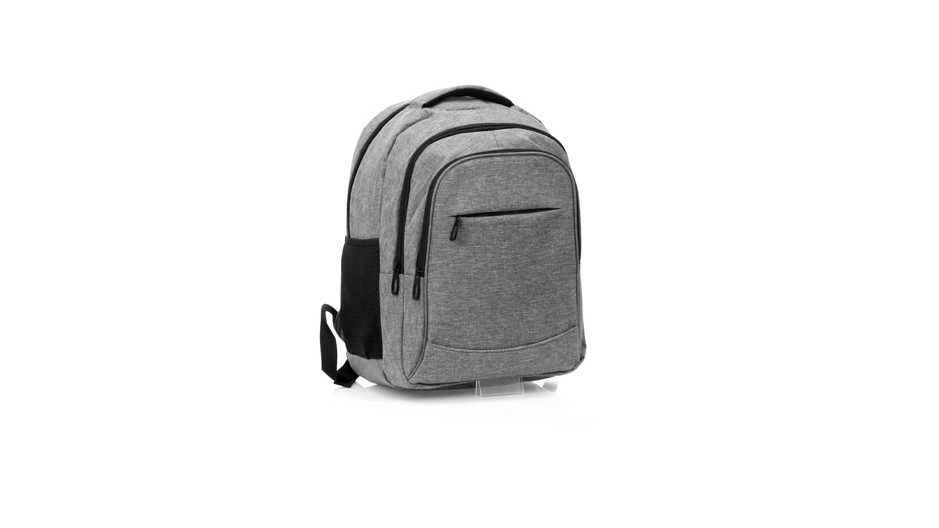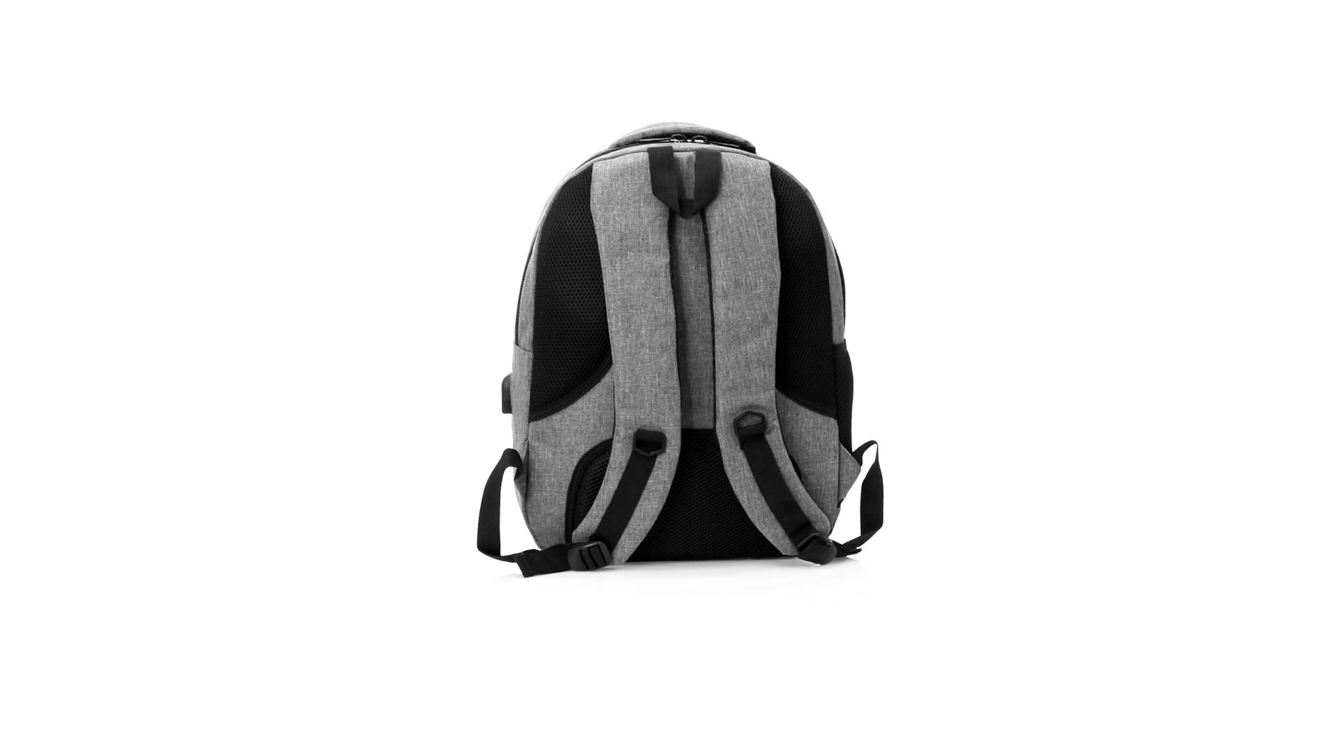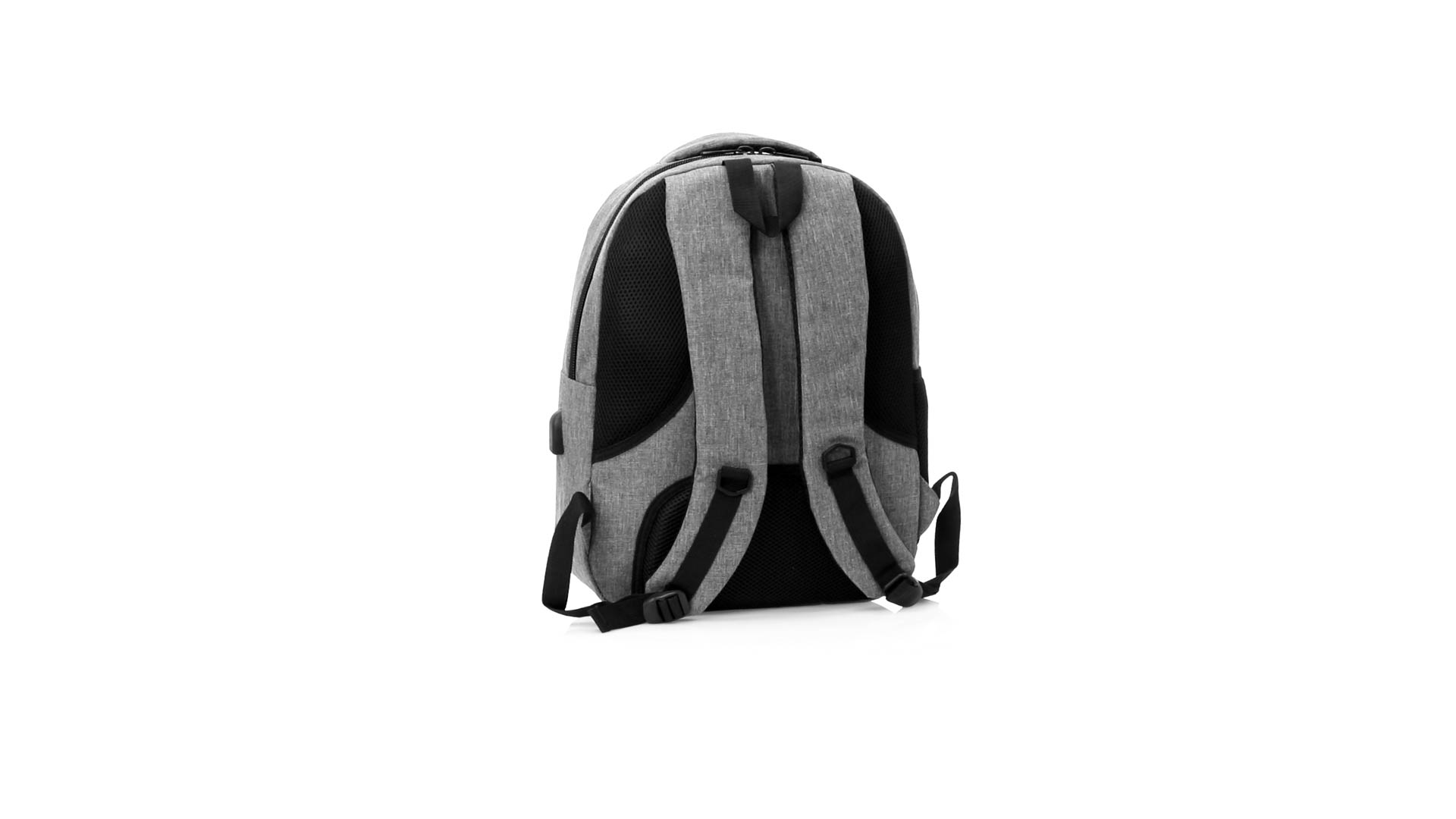 Business-Rucksack aus widerstandsfähigem Polyester 600D Material.Mit Doppelreissverschlusstasche mit doppeltem Puller und einer Vielzahl von Vordertaschen. Innenfach mit gepolsterten Fächern für Tablets bis 12 Zoll Grösse und Laptop bis 15 Zoll Grösse, einschliesslich USB-Anschluss zum Laden mobiler Geräte (Kabel im Lieferumfang enthalten, Zusatzakku nicht enthalten). Verstärkte Ecken und Zubehör in schwarzer Farbe. Mit ergonomischer, gepolsterter Rückseite und verstellbaren, gepolsterten Schultergurten.