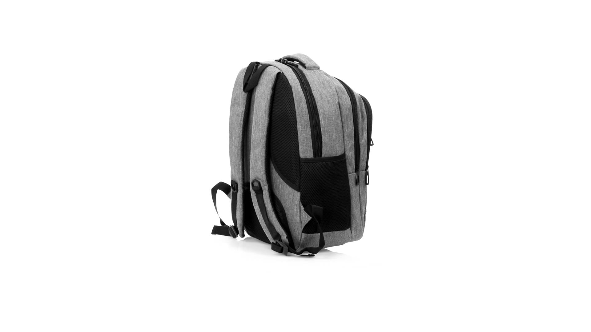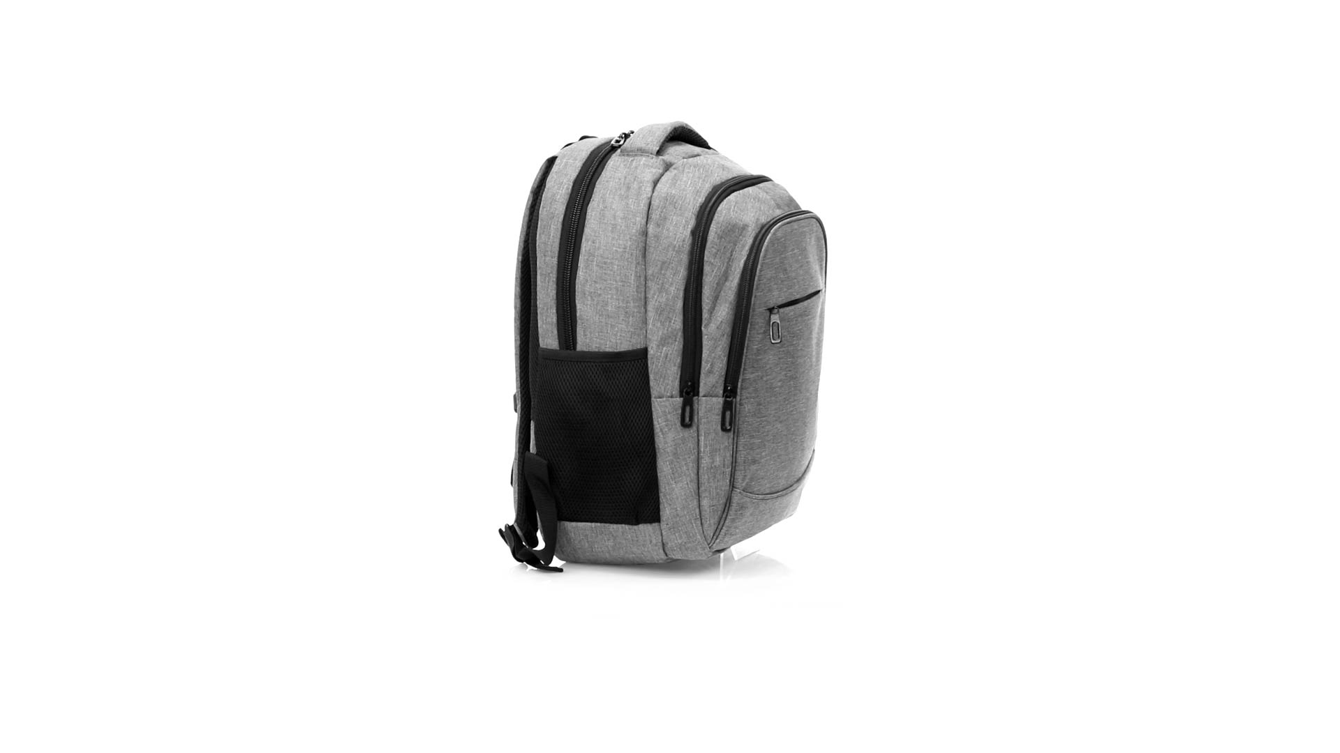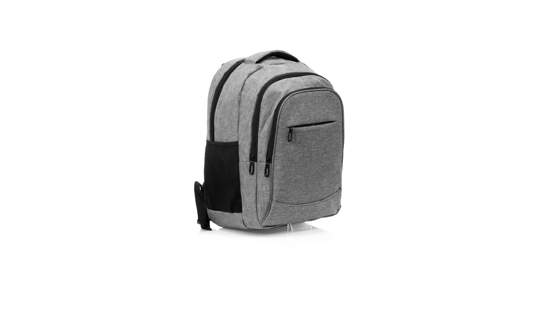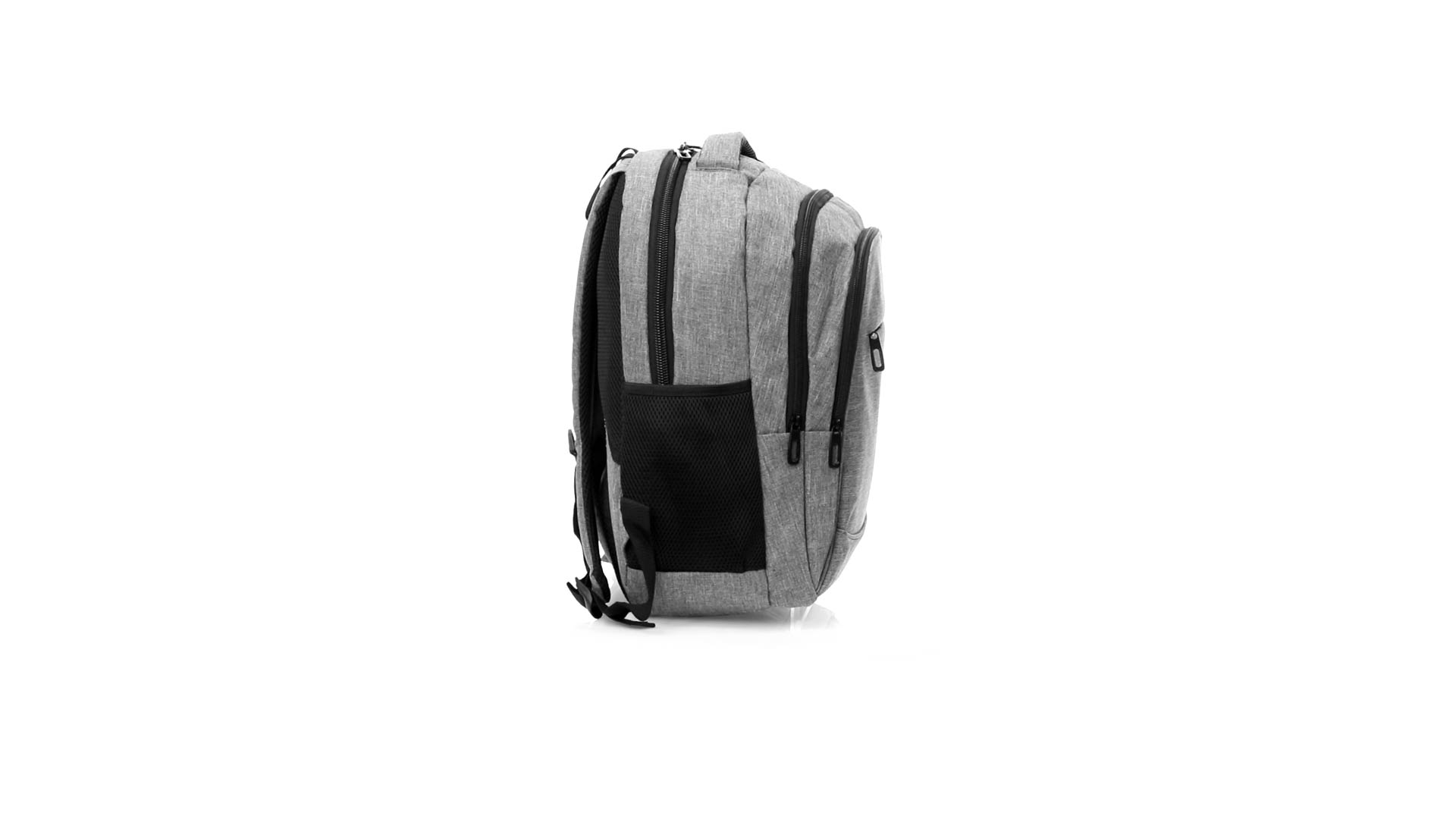 Business-Rucksack aus widerstandsfähigem Polyester 600D Material.Mit Doppelreissverschlusstasche mit doppeltem Puller und einer Vielzahl von Vordertaschen. Innenfach mit gepolsterten Fächern für Tablets bis 12 Zoll Grösse und Laptop bis 15 Zoll Grösse, einschliesslich USB-Anschluss zum Laden mobiler Geräte (Kabel im Lieferumfang enthalten, Zusatzakku nicht enthalten). Verstärkte Ecken und Zubehör in schwarzer Farbe. Mit ergonomischer, gepolsterter Rückseite und verstellbaren, gepolsterten Schultergurten.