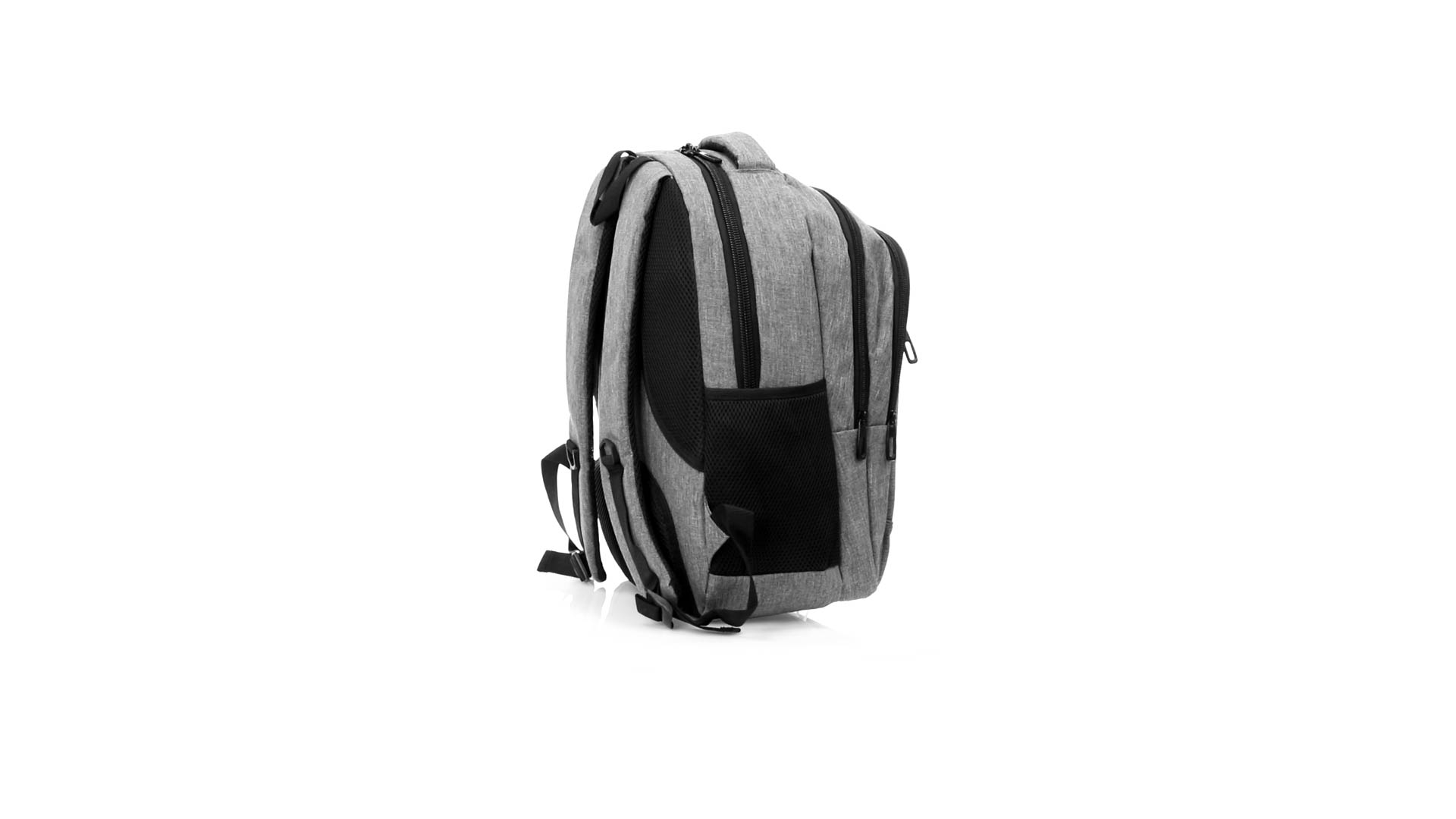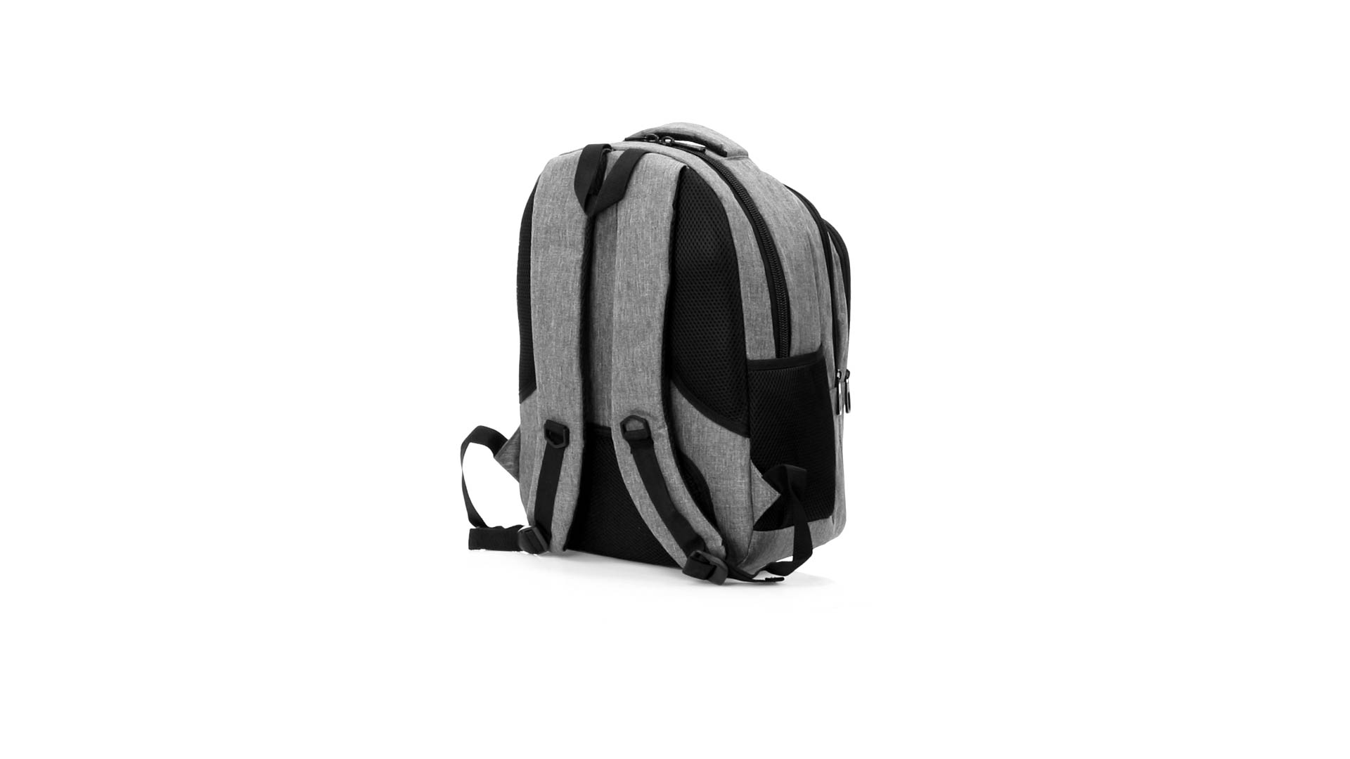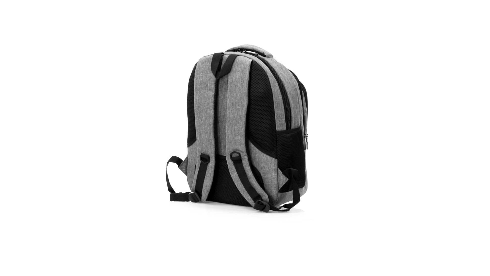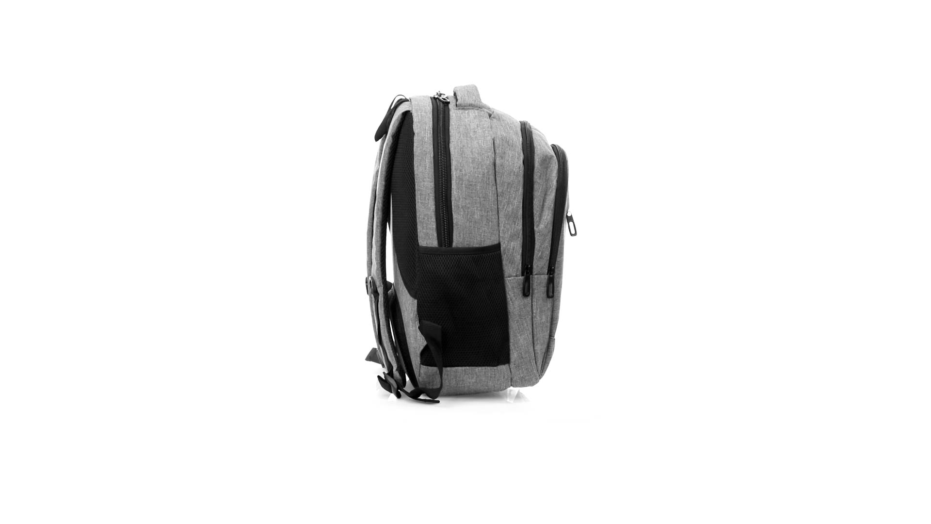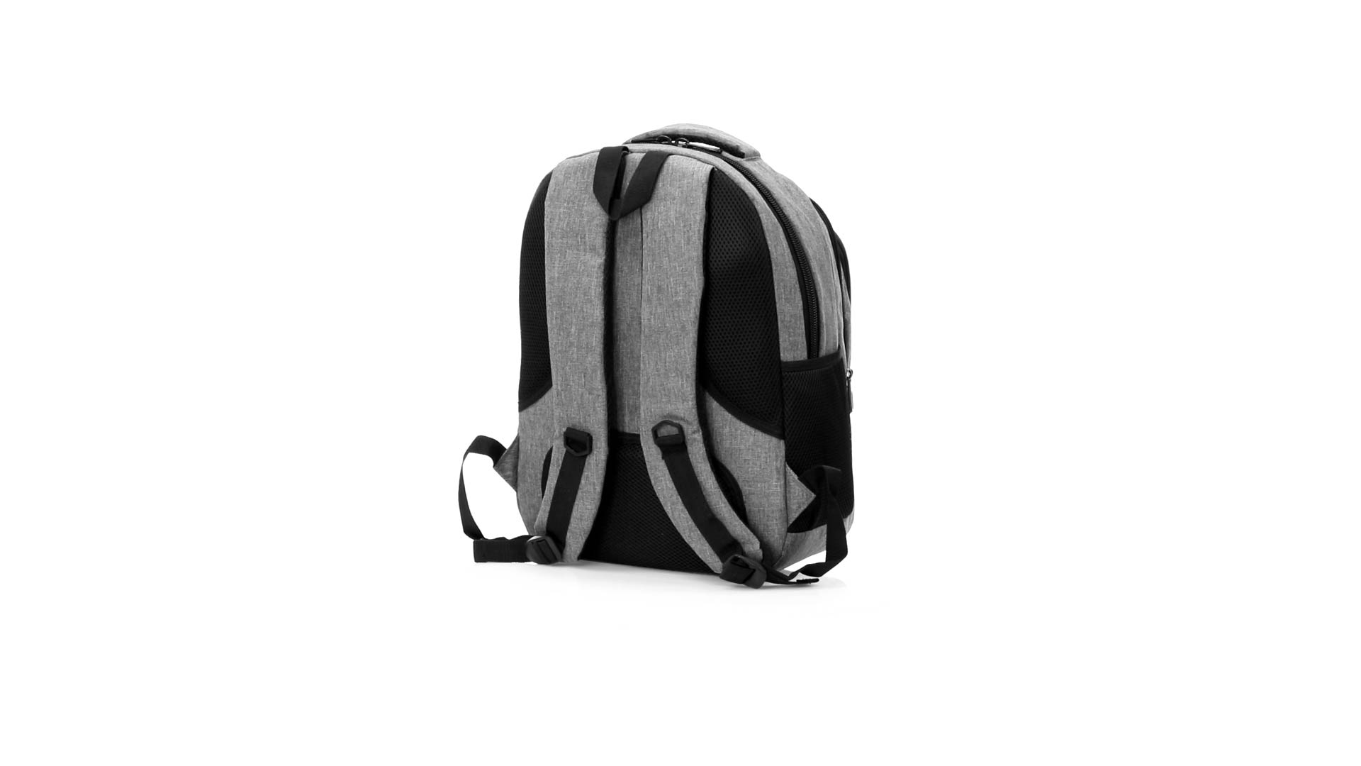 Business-Rucksack aus widerstandsfähigem Polyester 600D Material.Mit Doppelreissverschlusstasche mit doppeltem Puller und einer Vielzahl von Vordertaschen. Innenfach mit gepolsterten Fächern für Tablets bis 12 Zoll Grösse und Laptop bis 15 Zoll Grösse, einschliesslich USB-Anschluss zum Laden mobiler Geräte (Kabel im Lieferumfang enthalten, Zusatzakku nicht enthalten). Verstärkte Ecken und Zubehör in schwarzer Farbe. Mit ergonomischer, gepolsterter Rückseite und verstellbaren, gepolsterten Schultergurten.