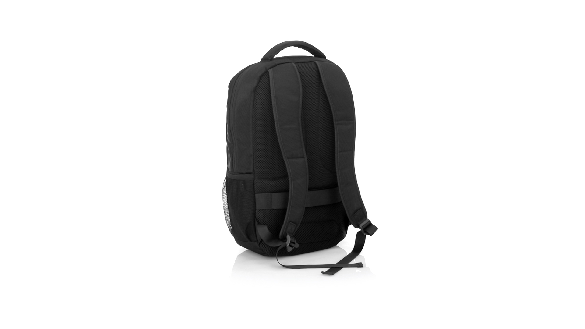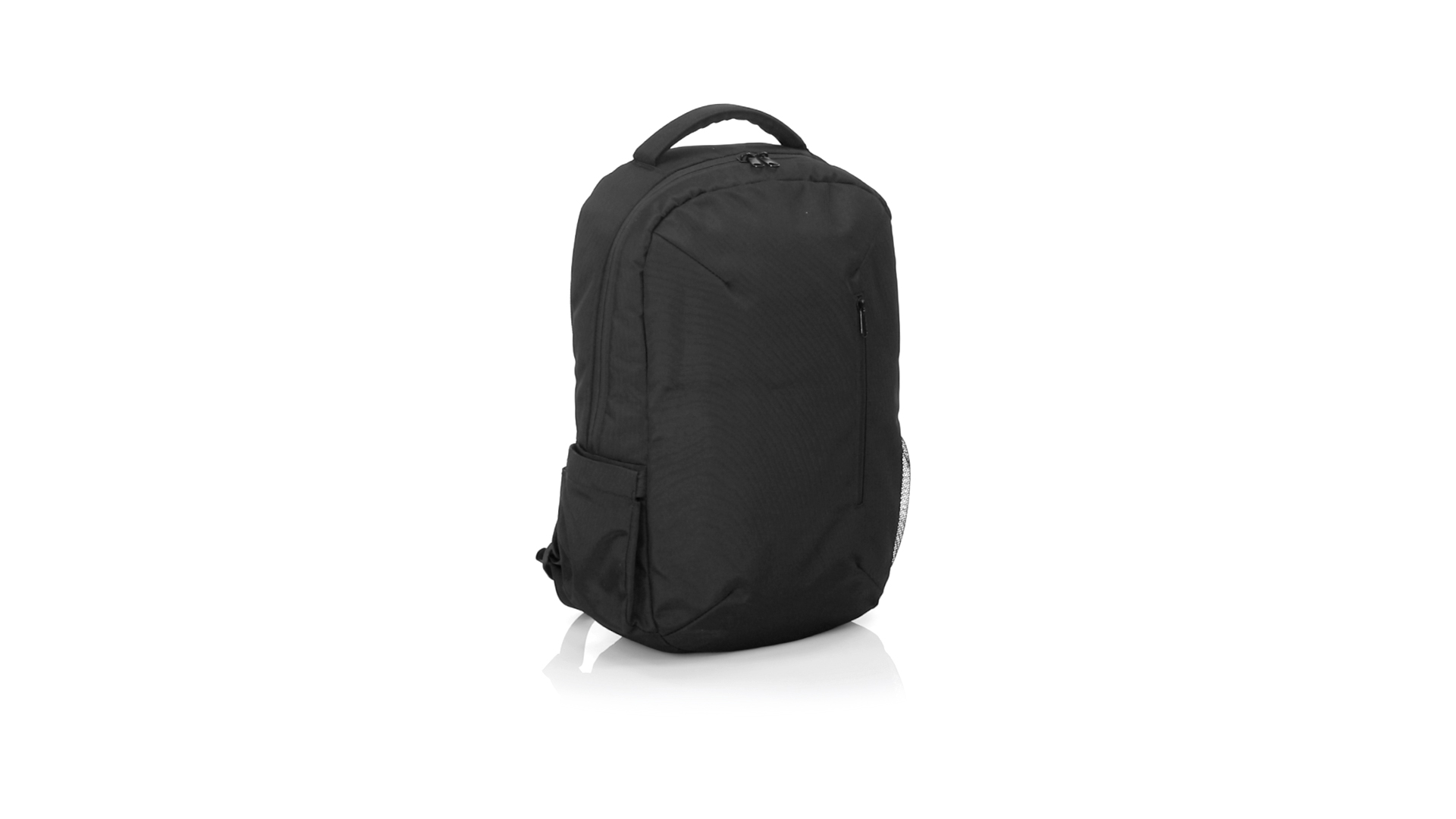 Hochwertiger Rucksack aus strapazierfähigem 1200D-Nylon mit elegantem schwarzem Finish. Mit origineller Aussentasche mit Reissverschluss und Trolley-Befestigung. Gepolsterte Innenfächer für Laptops bis zu 15" und Tablets bis zu 12". Gepolsterte Schultergurte und ergonomisch gepolsterter Rücken.