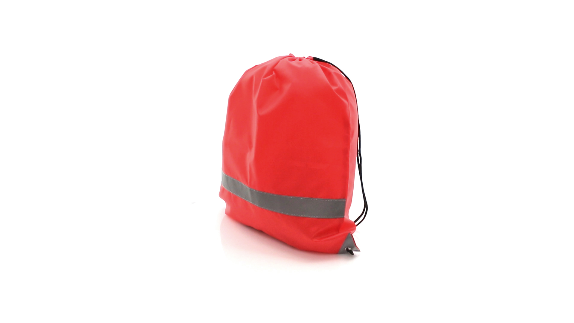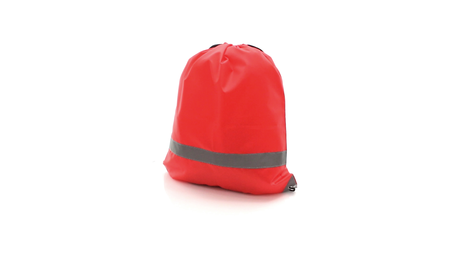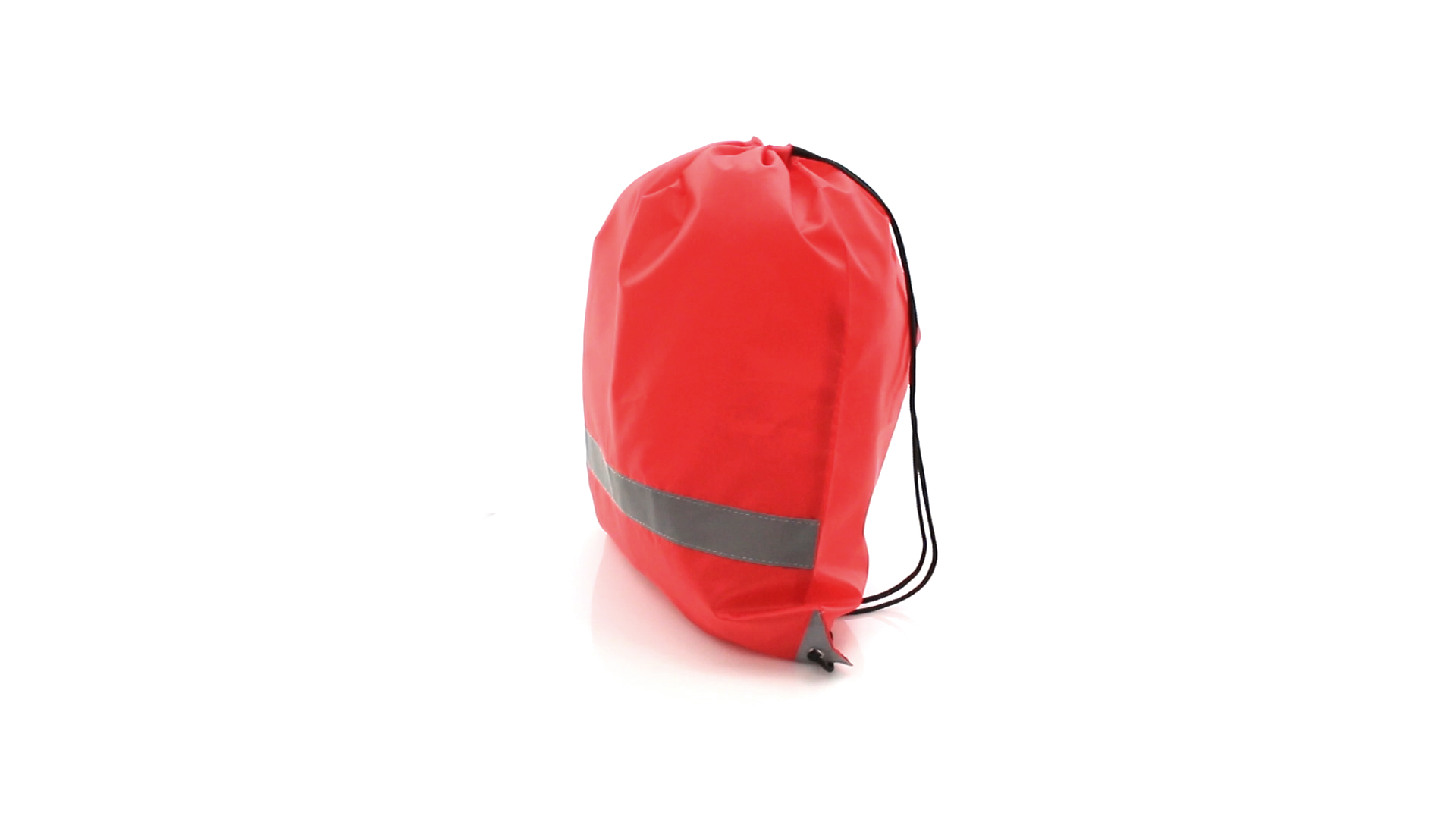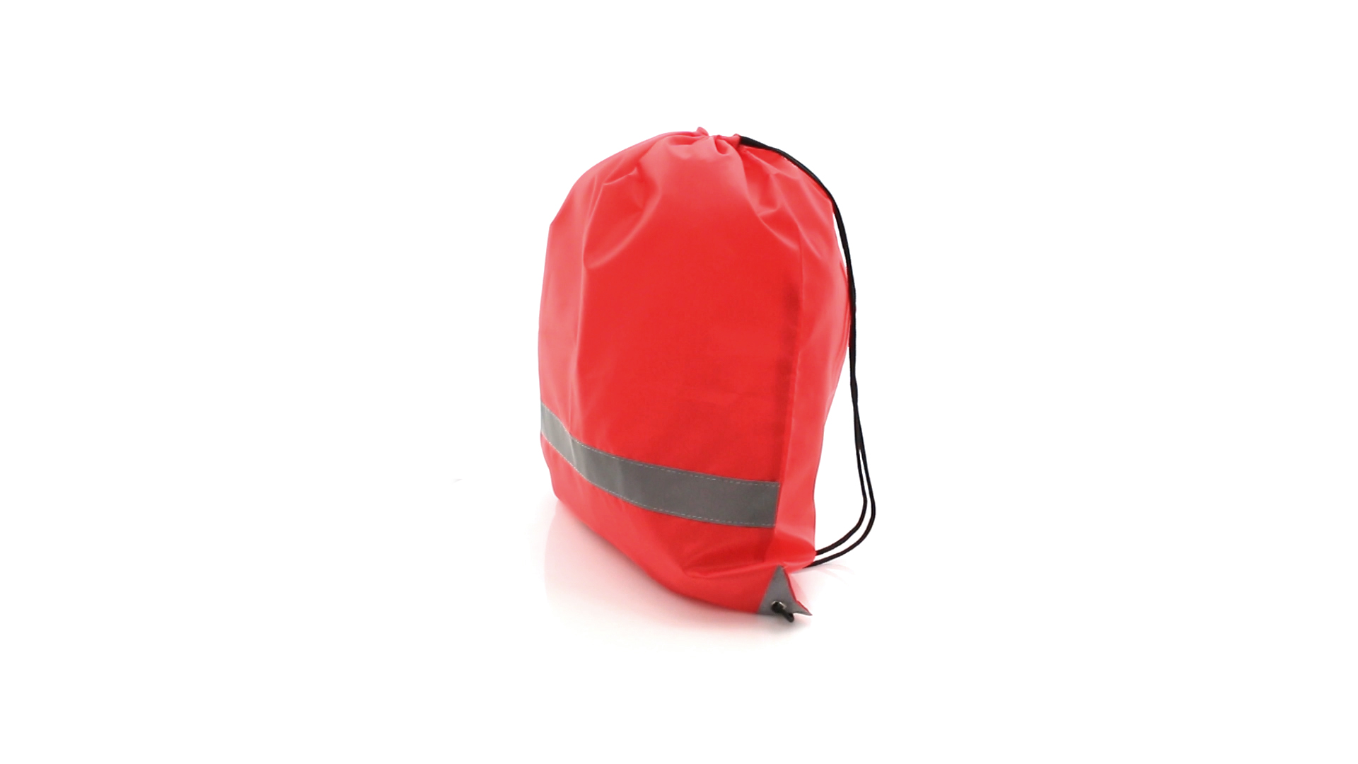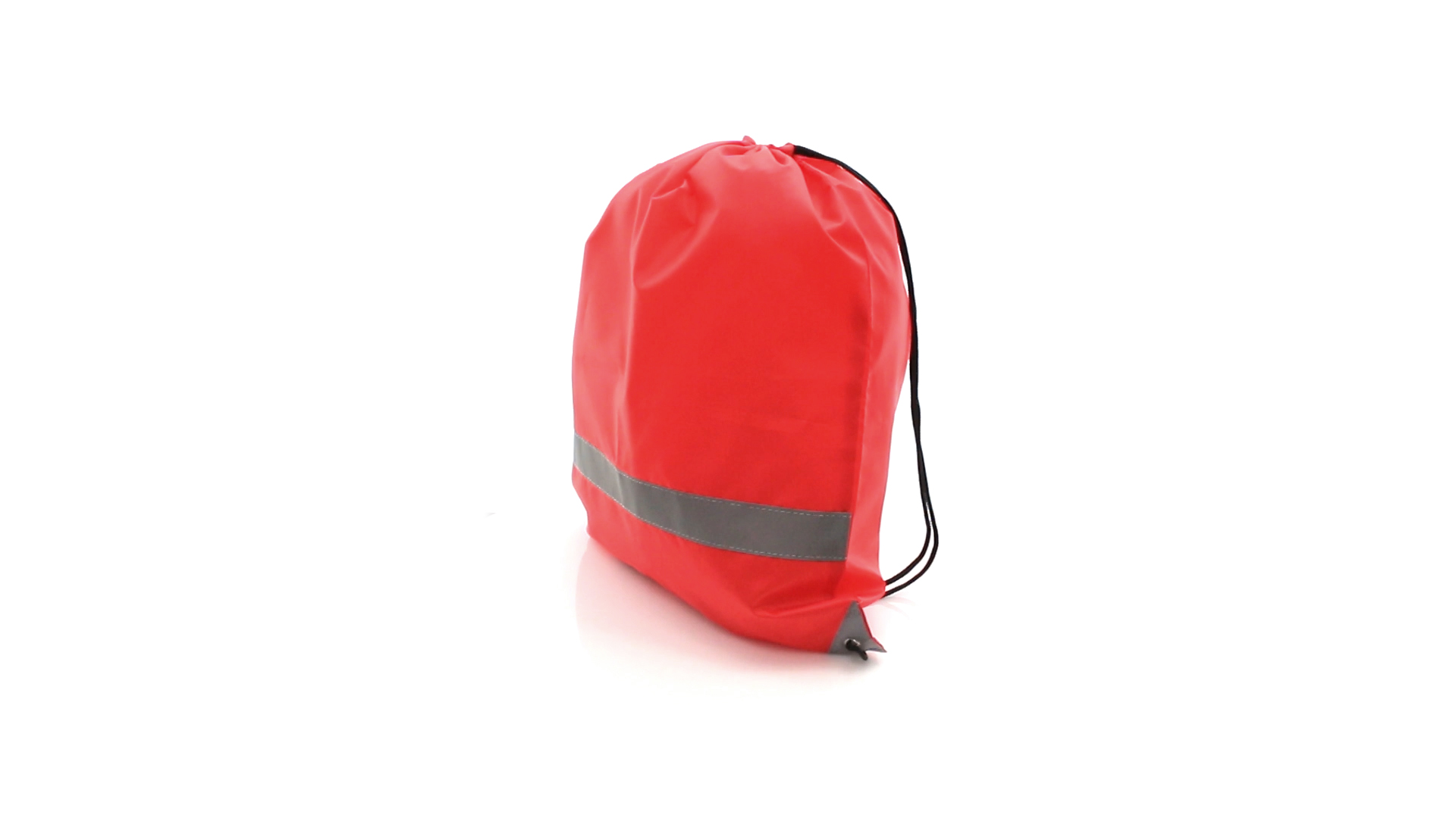 Reflektierender Rucksack mit Kordelzug aus weichem 190T Polyester in lebendigen Farben mit reflektierender Frontleiste. Mit Zugbändern in Schwarz und reflektierenden, mit Metallösen verstärkten Ecken.