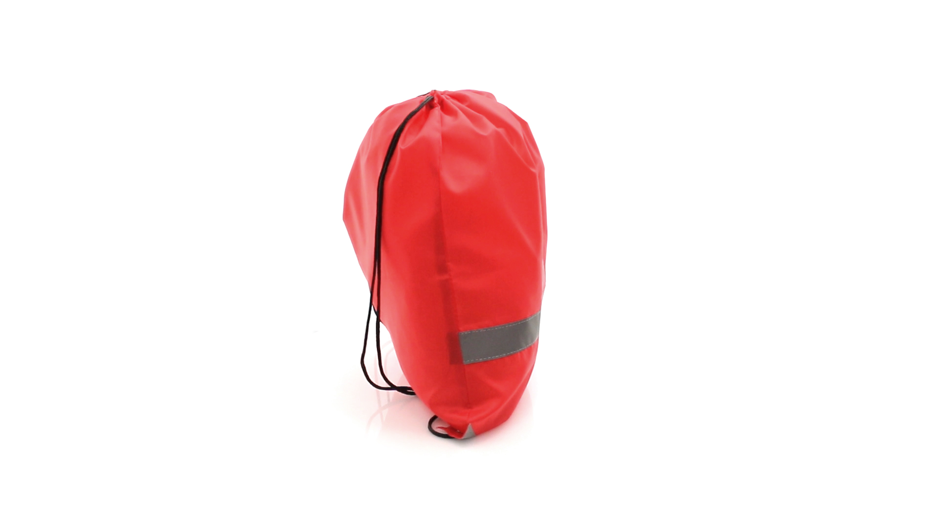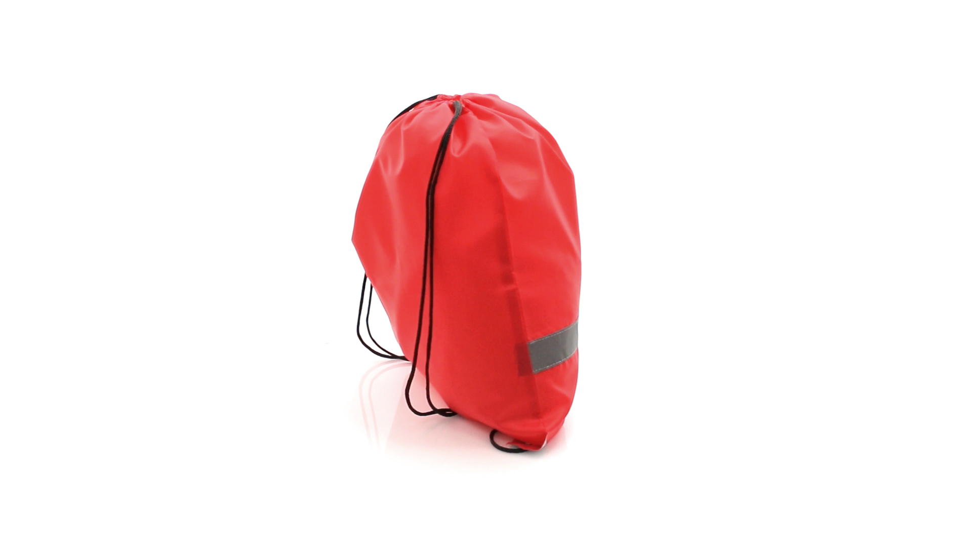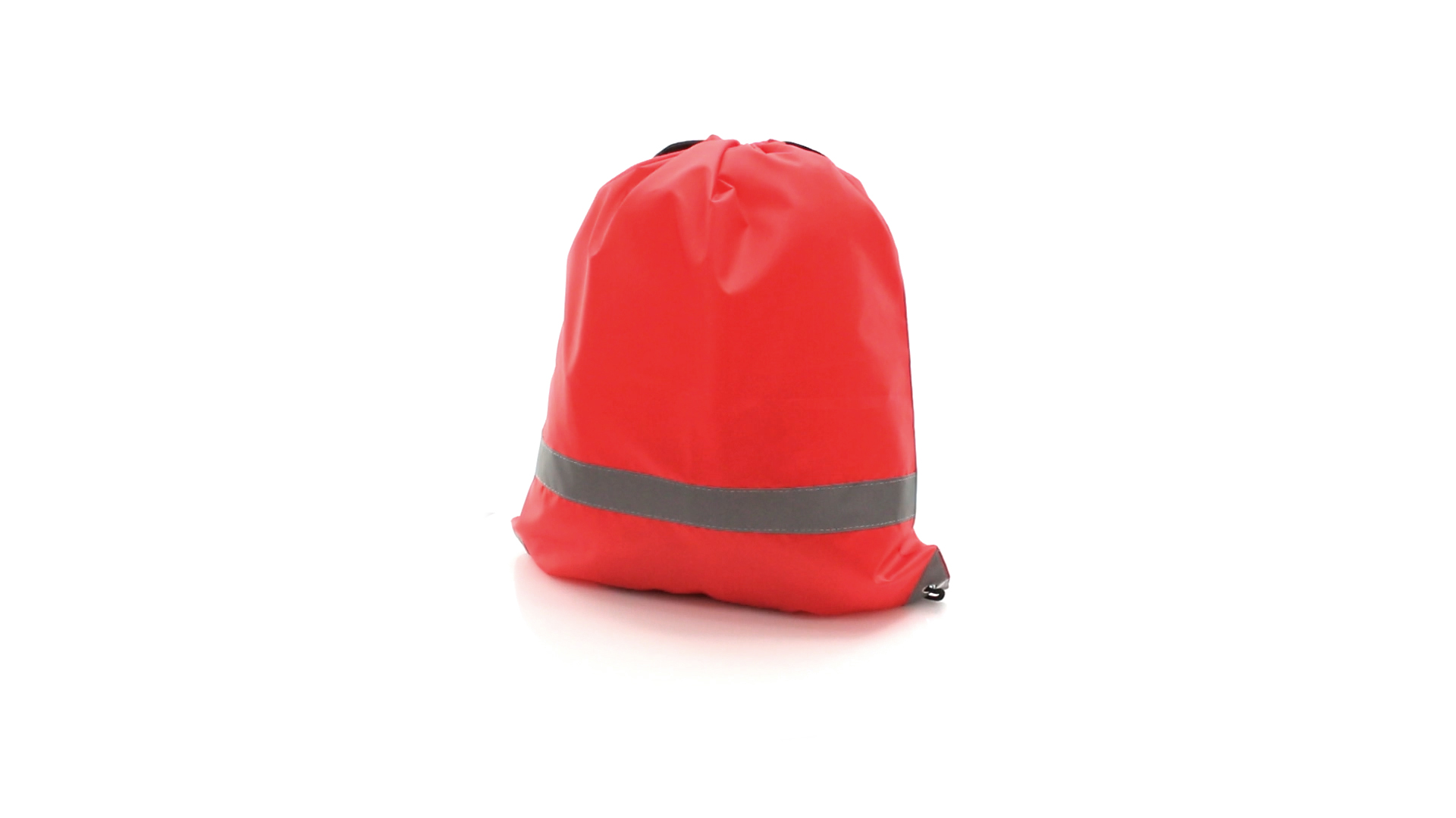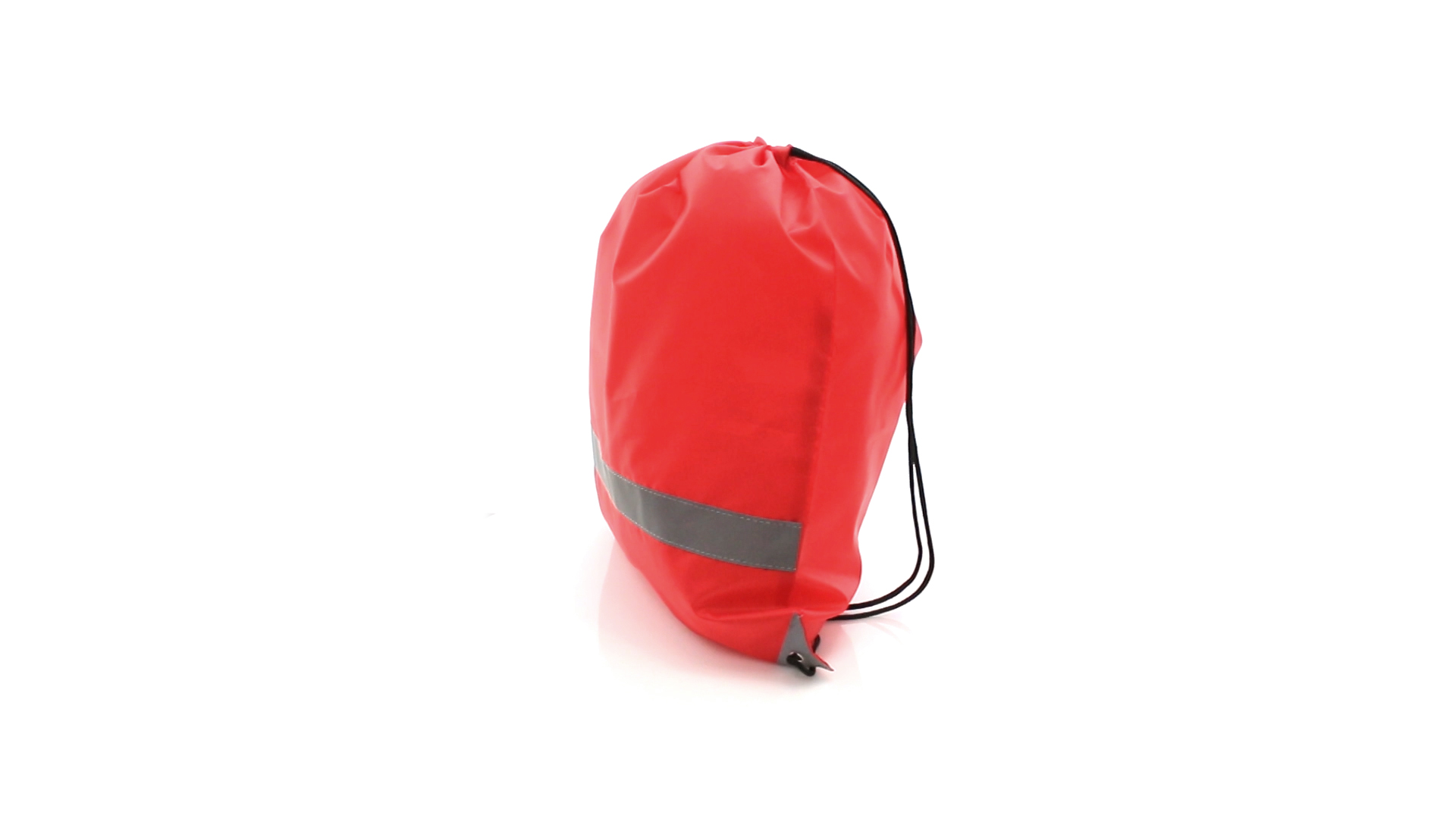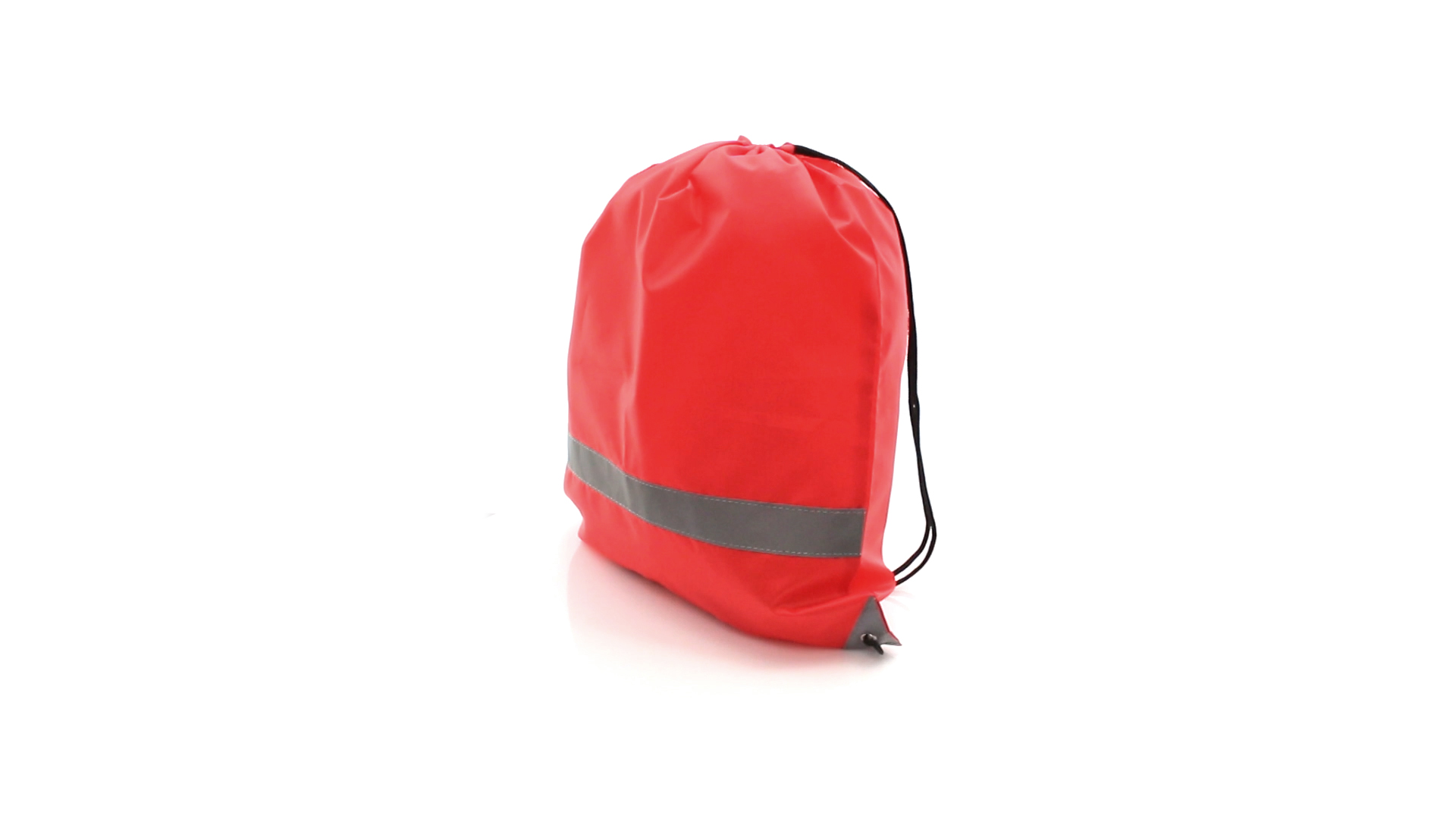 Reflektierender Rucksack mit Kordelzug aus weichem 190T Polyester in lebendigen Farben mit reflektierender Frontleiste. Mit Zugbändern in Schwarz und reflektierenden, mit Metallösen verstärkten Ecken.