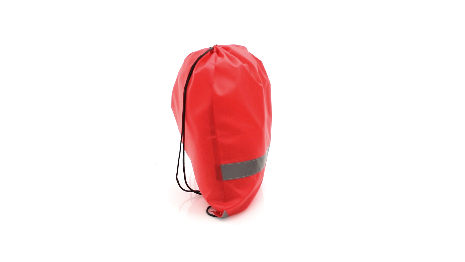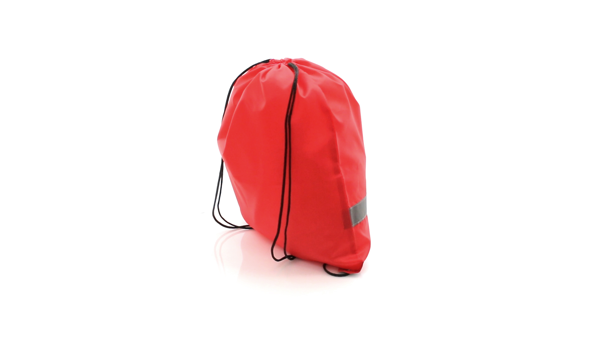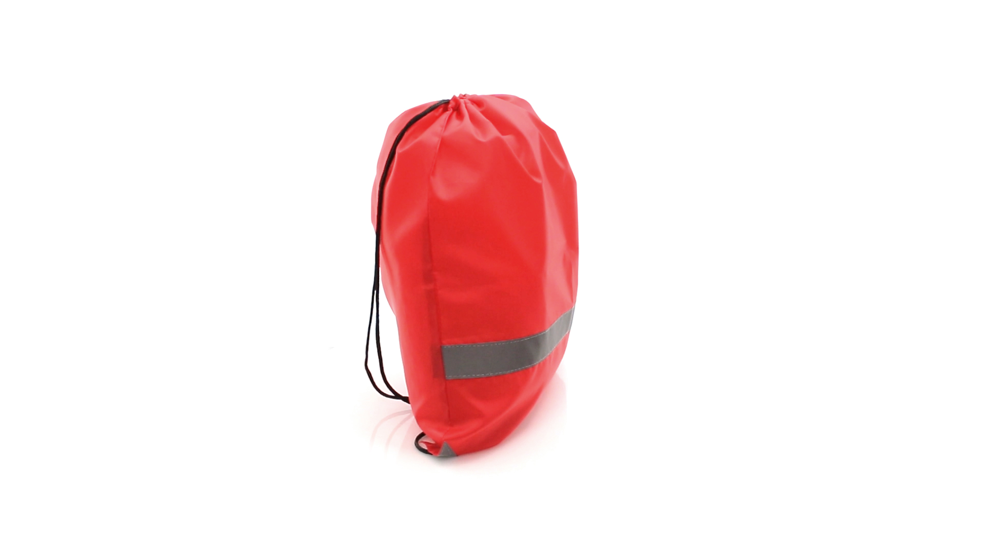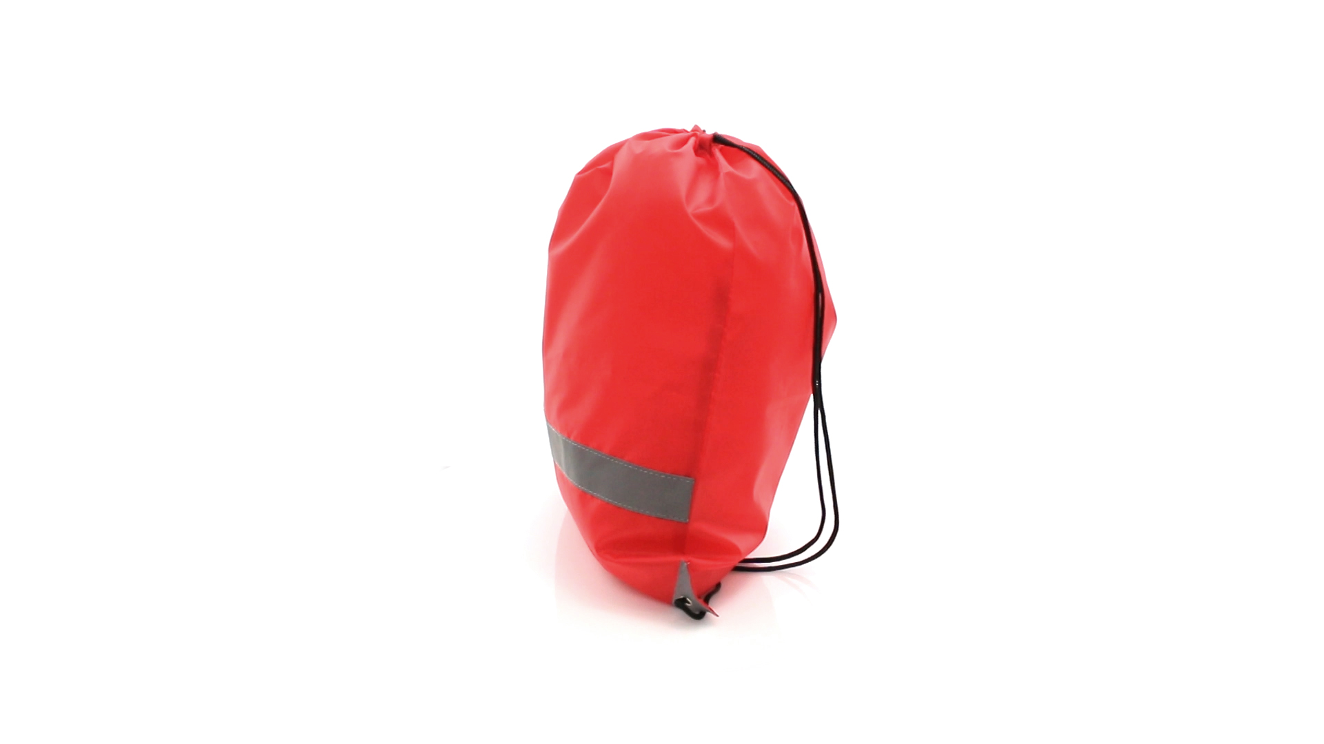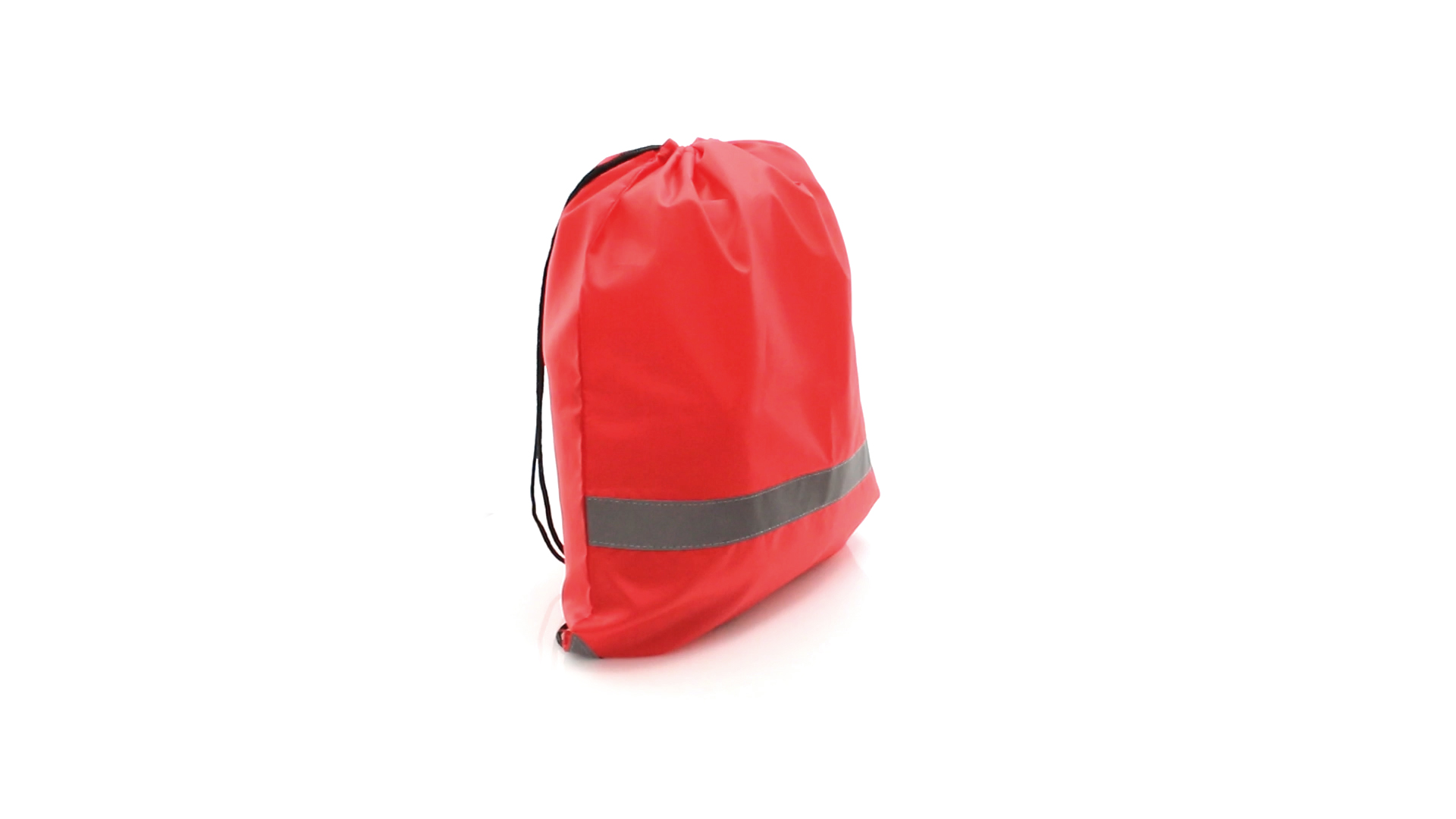 Reflektierender Rucksack mit Kordelzug aus weichem 190T Polyester in lebendigen Farben mit reflektierender Frontleiste. Mit Zugbändern in Schwarz und reflektierenden, mit Metallösen verstärkten Ecken.