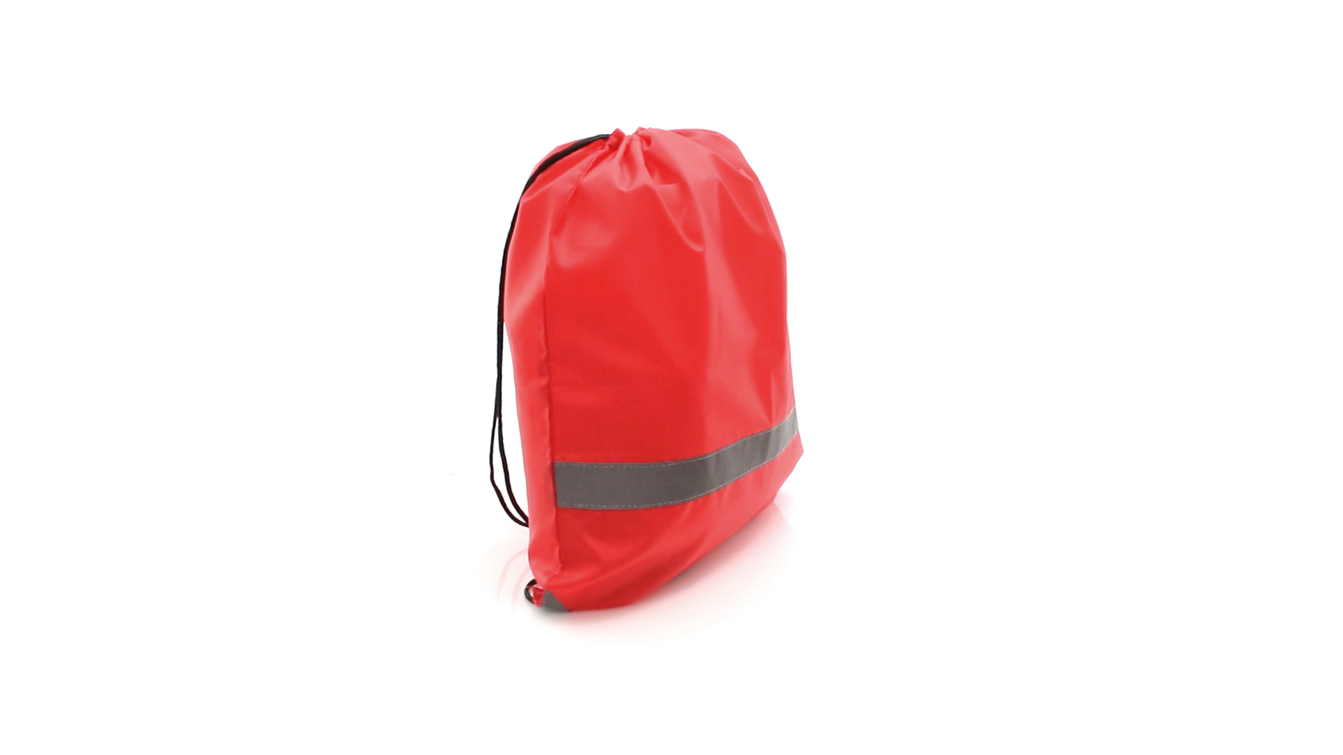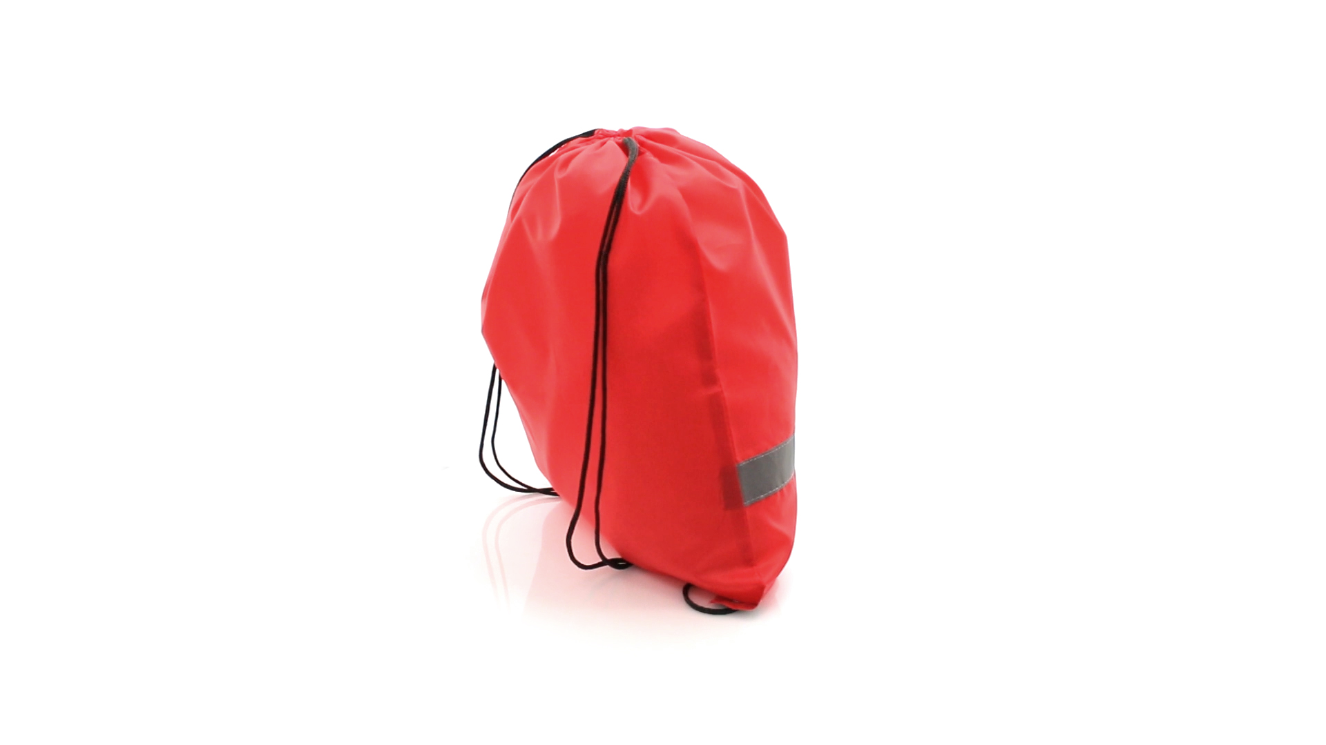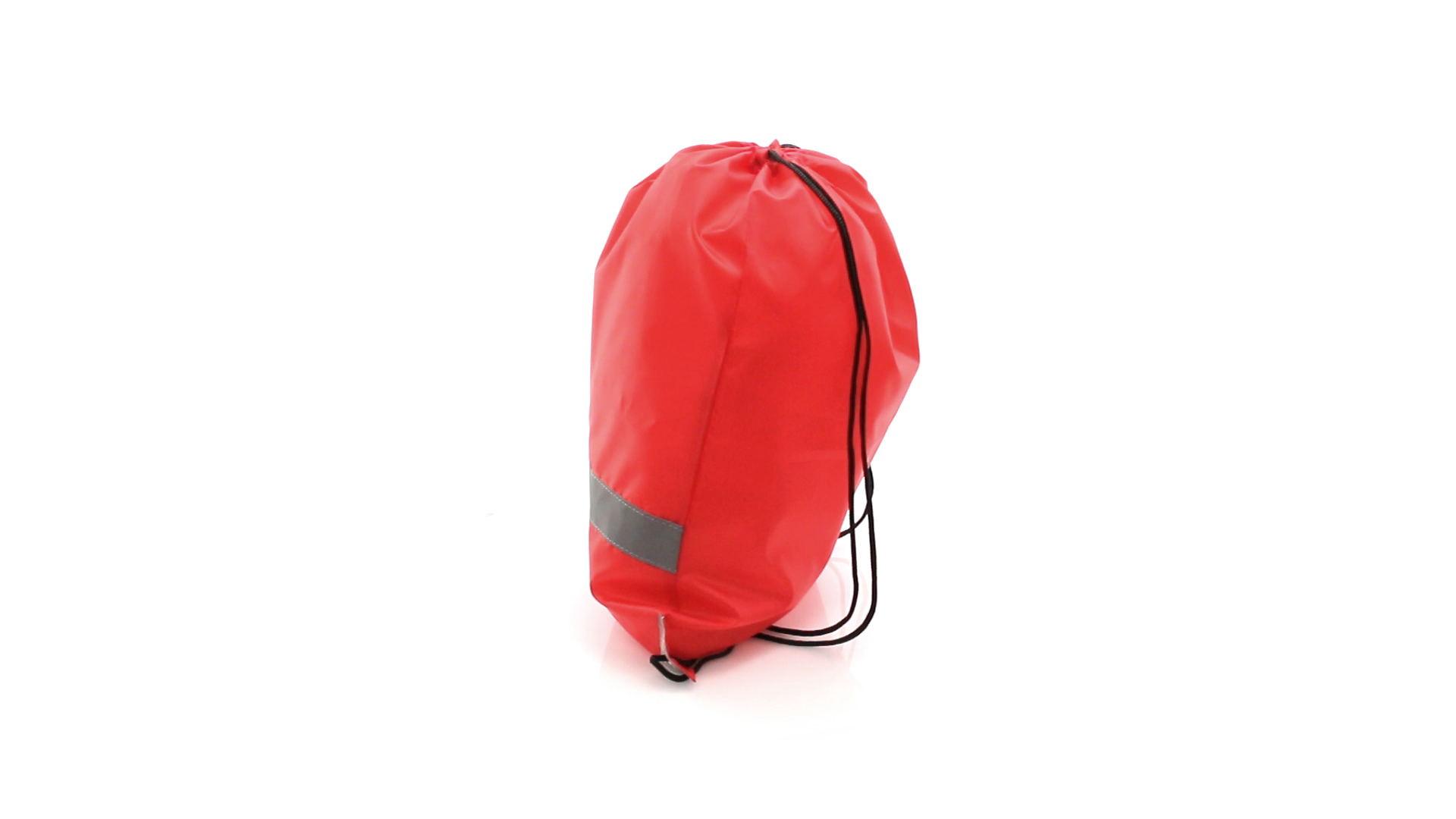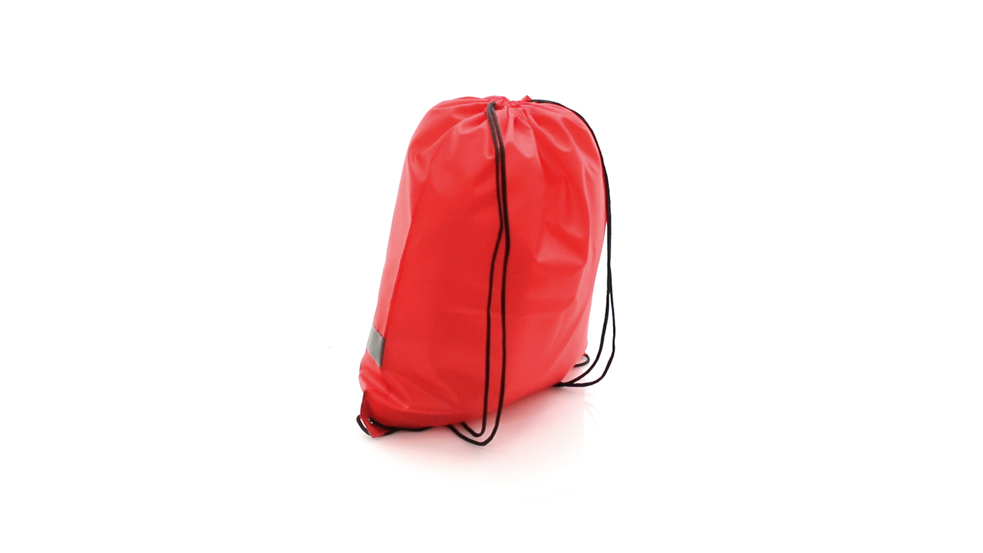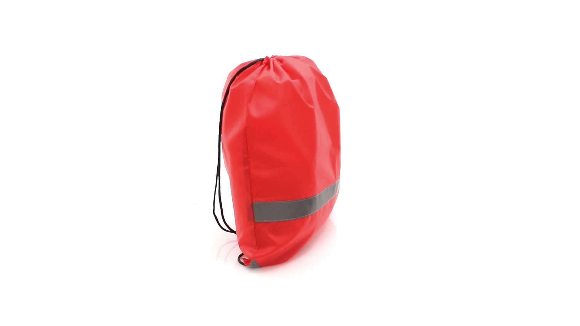 Reflektierender Rucksack mit Kordelzug aus weichem 190T Polyester in lebendigen Farben mit reflektierender Frontleiste. Mit Zugbändern in Schwarz und reflektierenden, mit Metallösen verstärkten Ecken.
