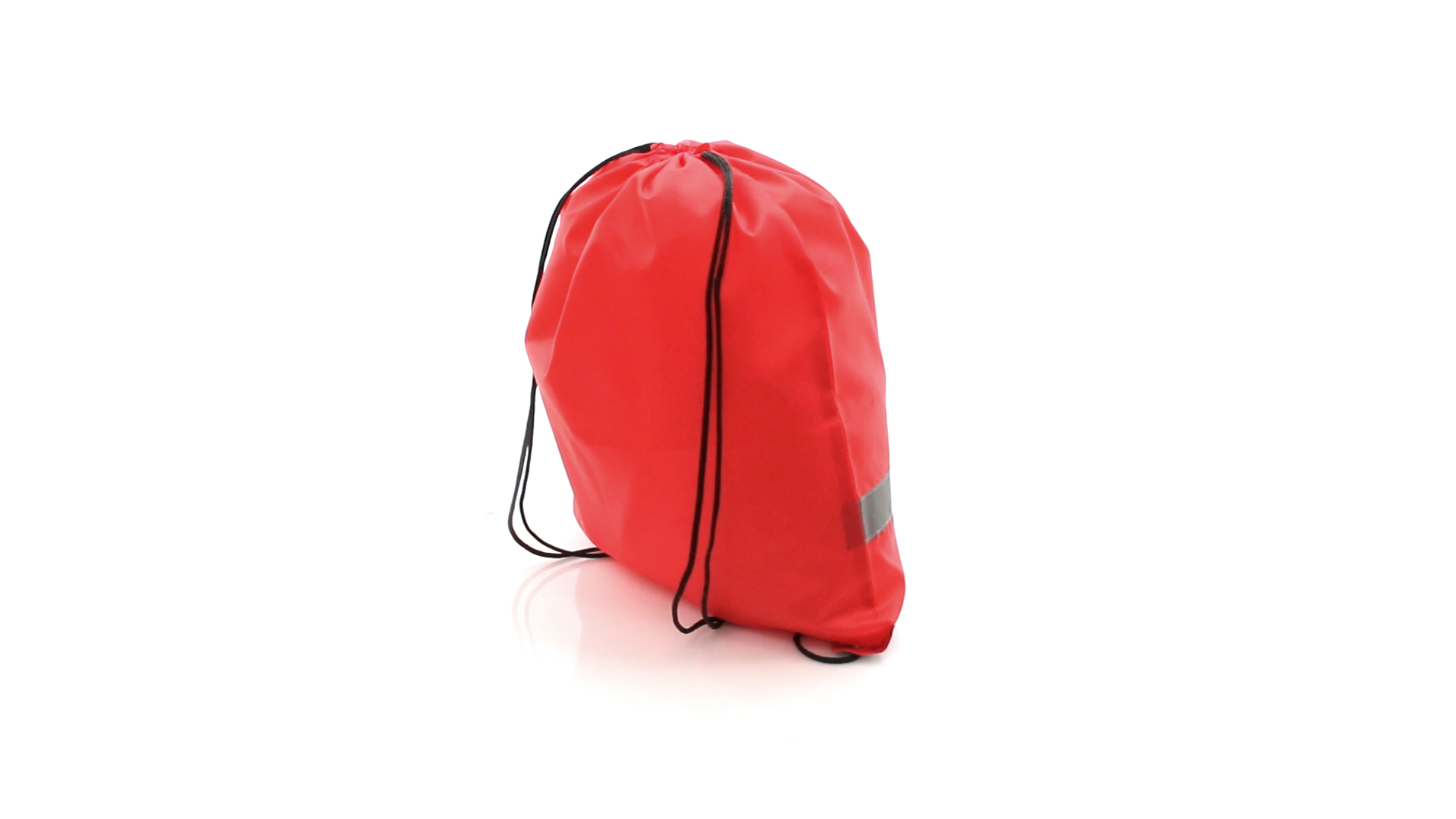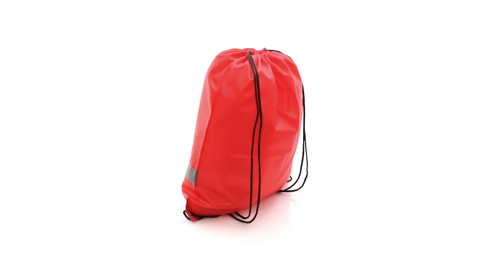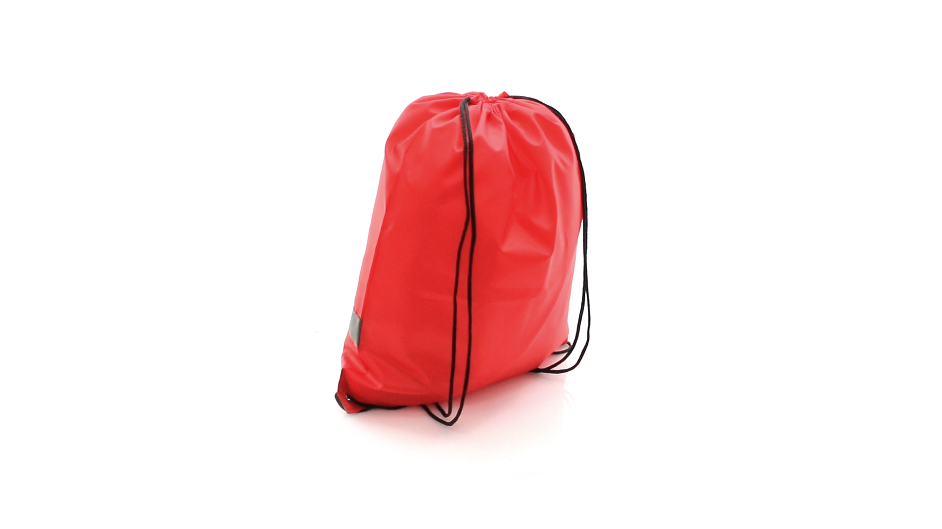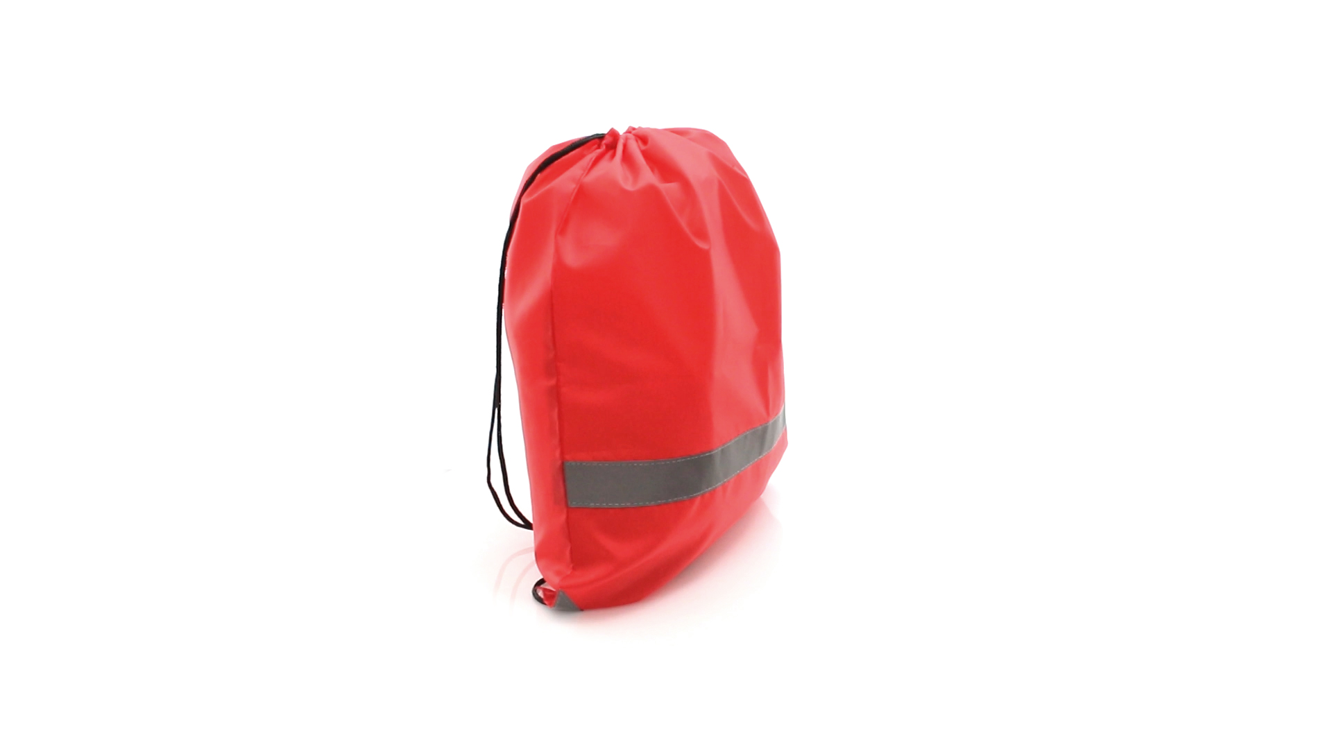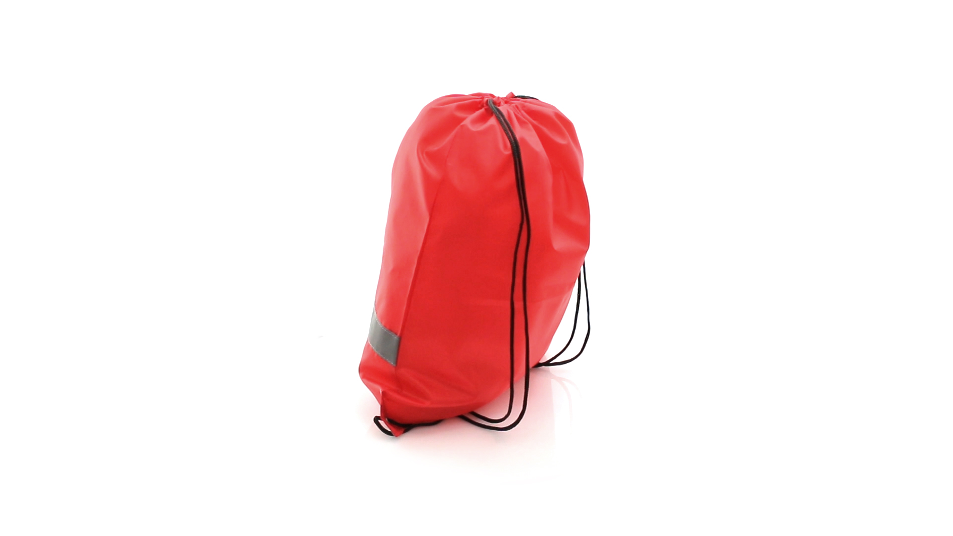 Reflektierender Rucksack mit Kordelzug aus weichem 190T Polyester in lebendigen Farben mit reflektierender Frontleiste. Mit Zugbändern in Schwarz und reflektierenden, mit Metallösen verstärkten Ecken.