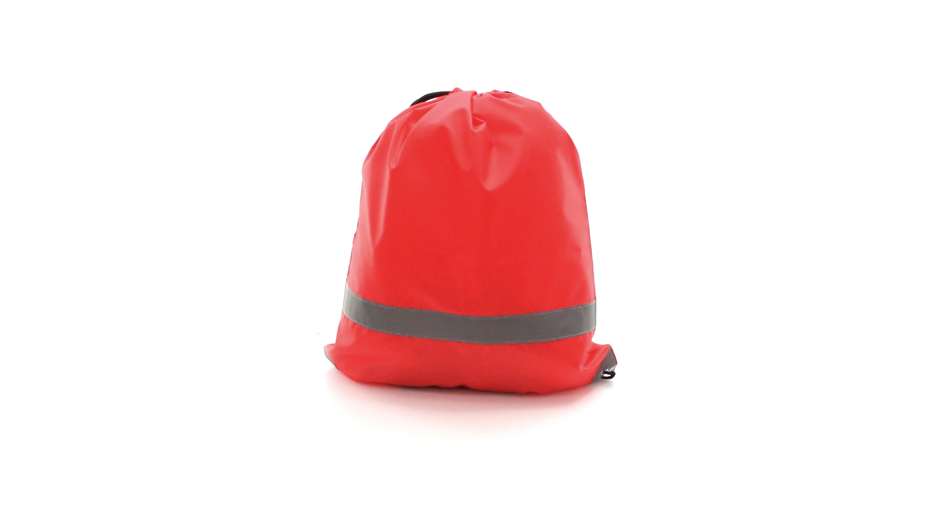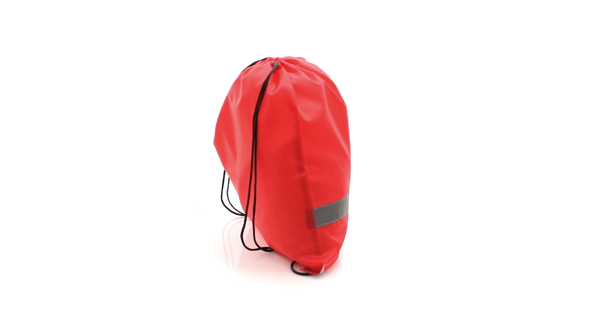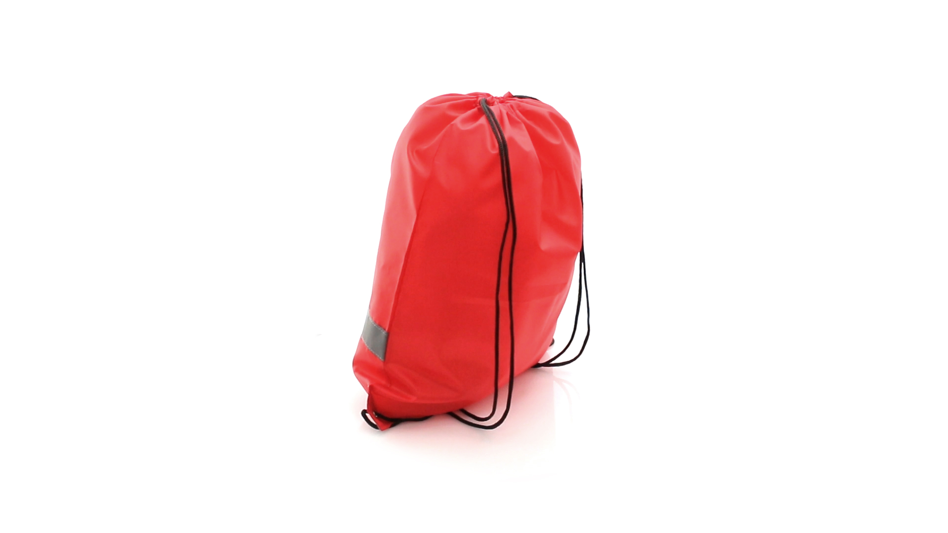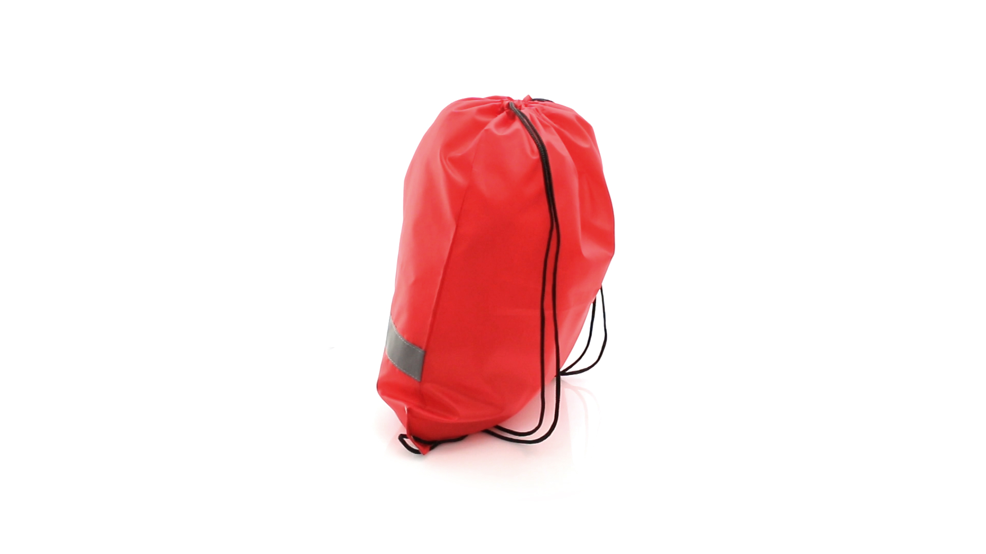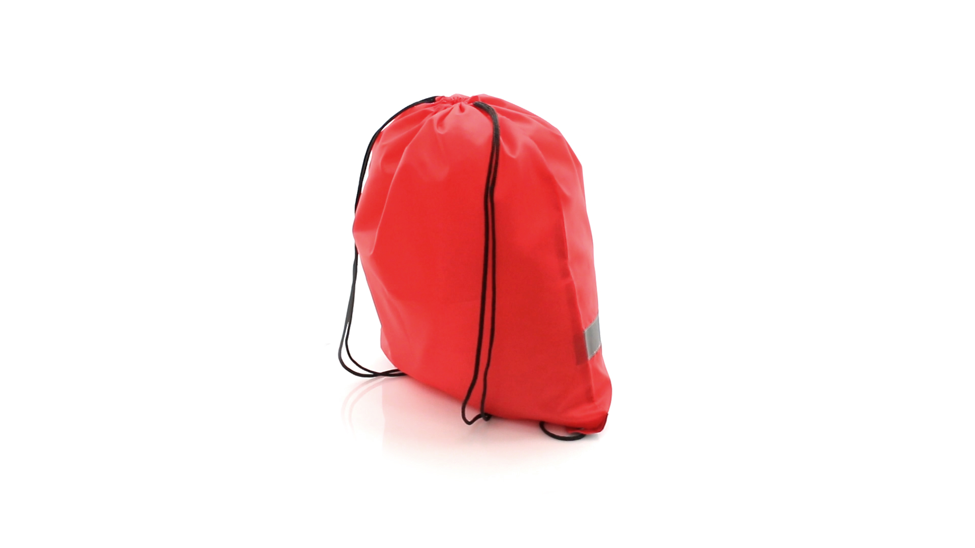 Reflektierender Rucksack mit Kordelzug aus weichem 190T Polyester in lebendigen Farben mit reflektierender Frontleiste. Mit Zugbändern in Schwarz und reflektierenden, mit Metallösen verstärkten Ecken.