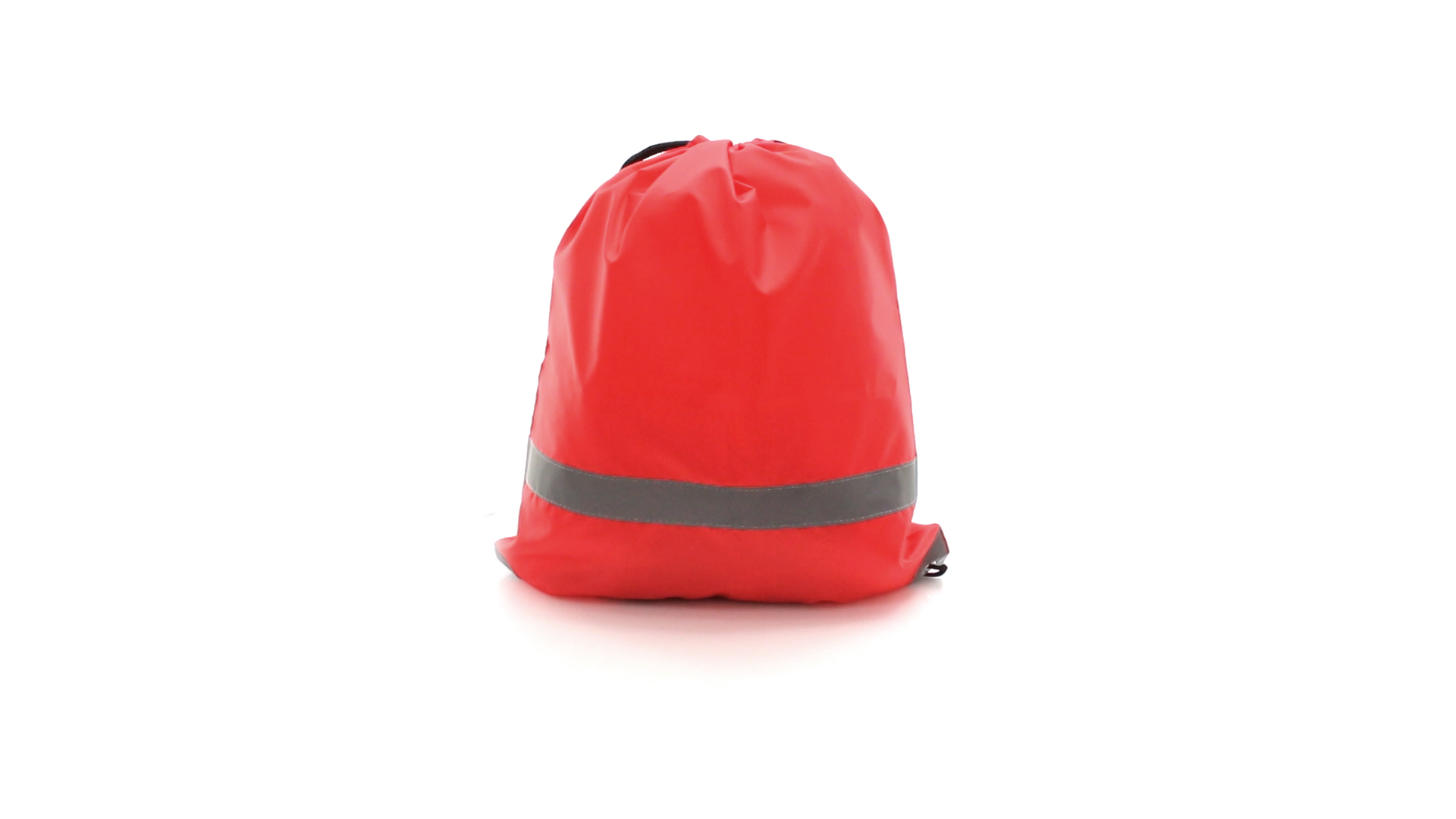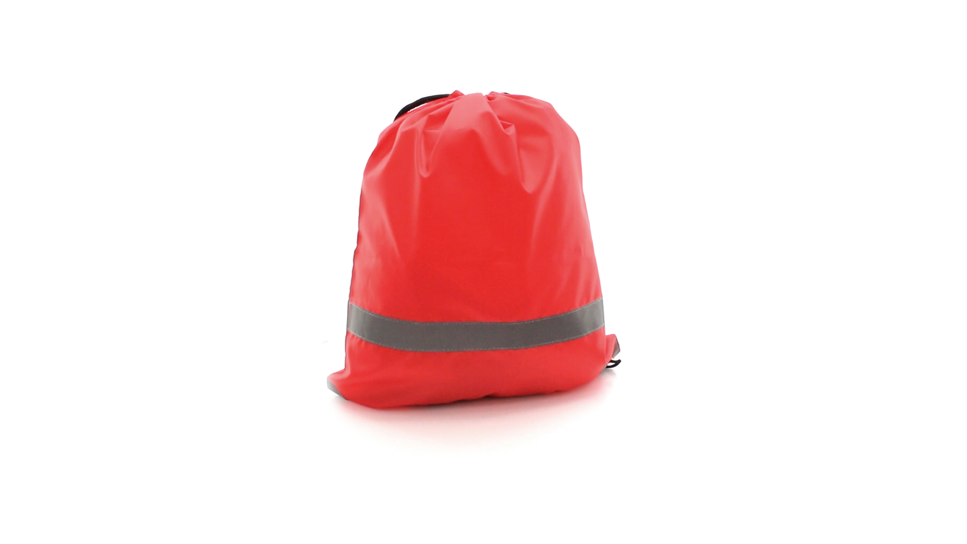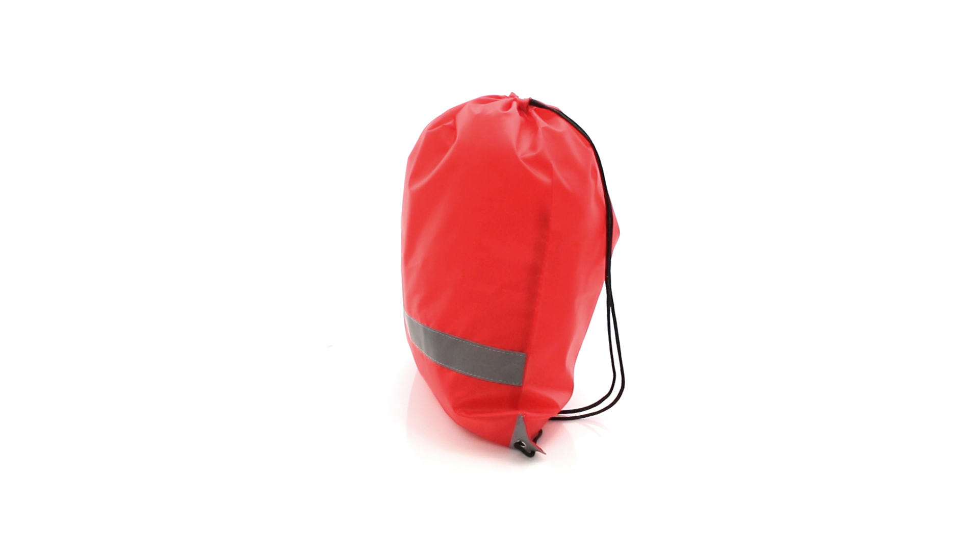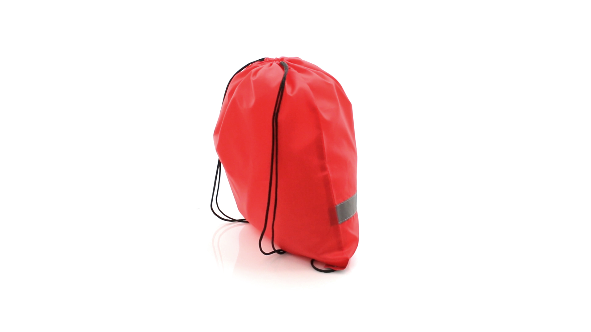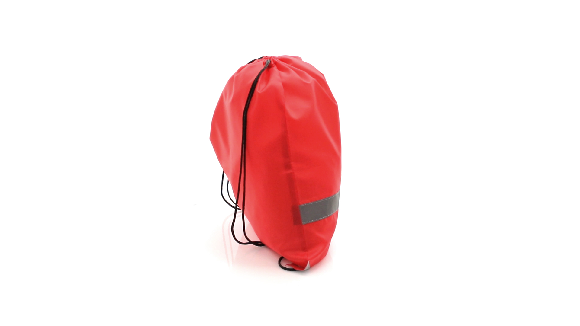 Reflektierender Rucksack mit Kordelzug aus weichem 190T Polyester in lebendigen Farben mit reflektierender Frontleiste. Mit Zugbändern in Schwarz und reflektierenden, mit Metallösen verstärkten Ecken.