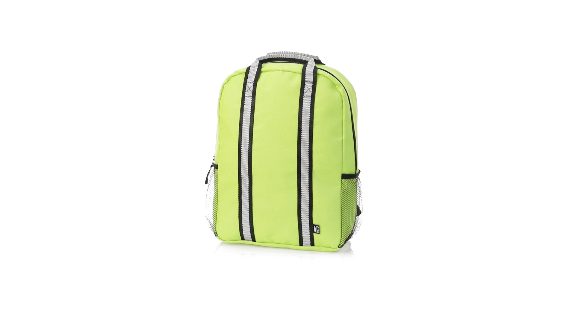 Rucksack aus Nature Line aus widerstandsfähigem 600D RPET, hergestellt aus recyceltem Kunststoff, um die Wiederverwendung von Kunststoffabfällen zu fördern und einen Beitrag zur Nachhaltigkeit des Planeten zu leisten. Mit Reflexionsstreifen und in vielen Farben erhältlich. Hauptfach mit Reissverschluss und leicht zugänglicher Netzseitentasche. Gepolsterter Rücken und Gurte, mit RPET-Plakette auf dem Aussenetikett.