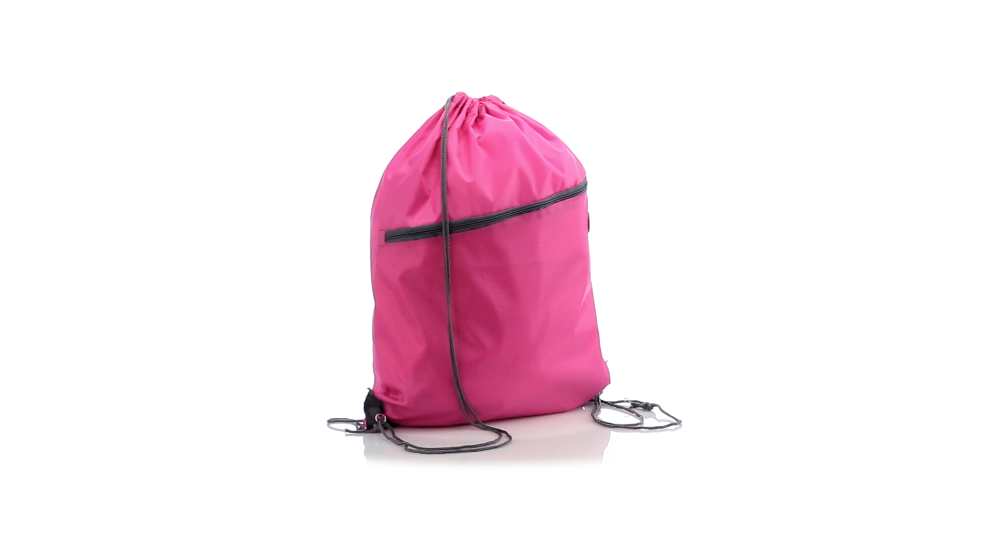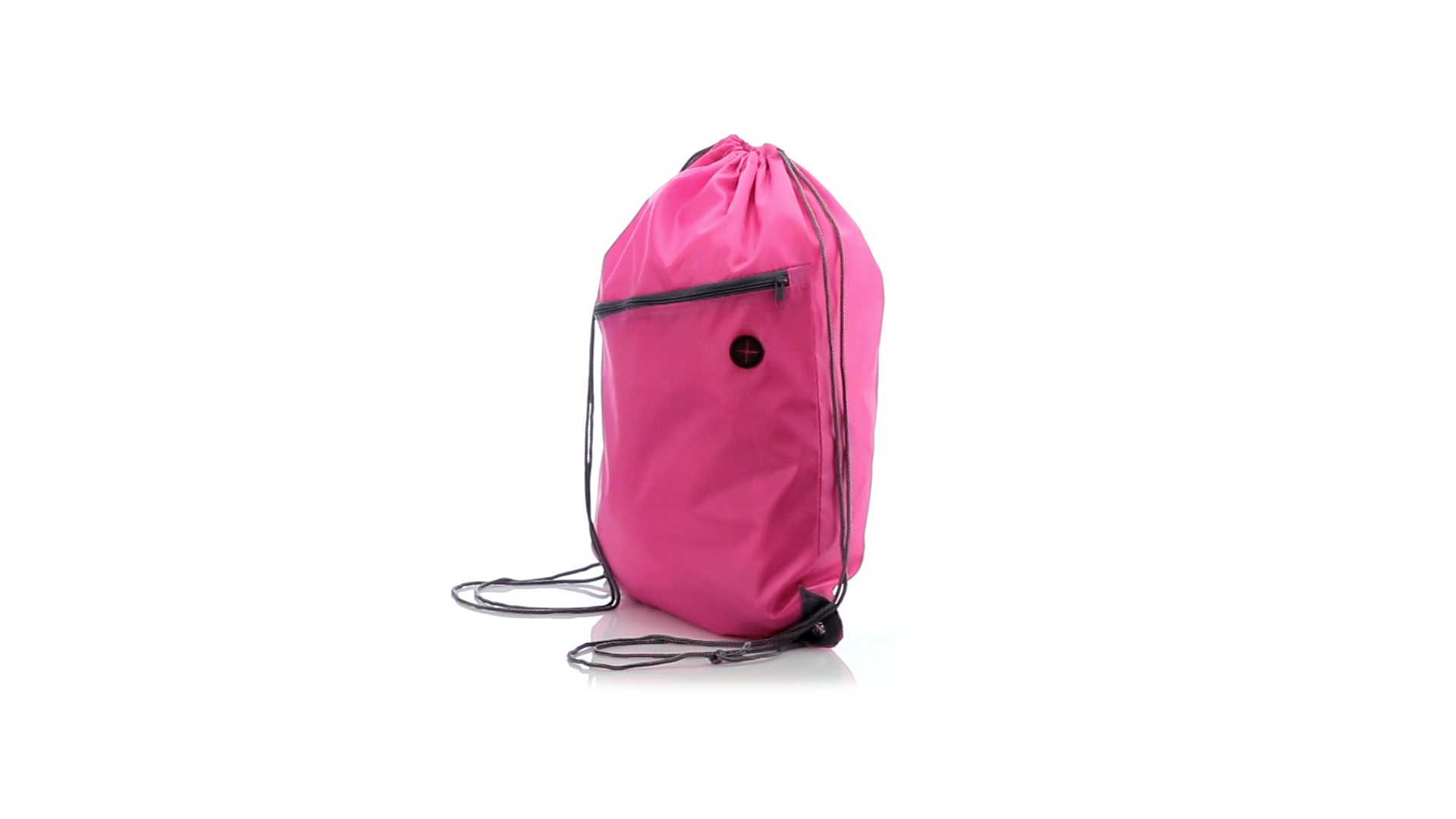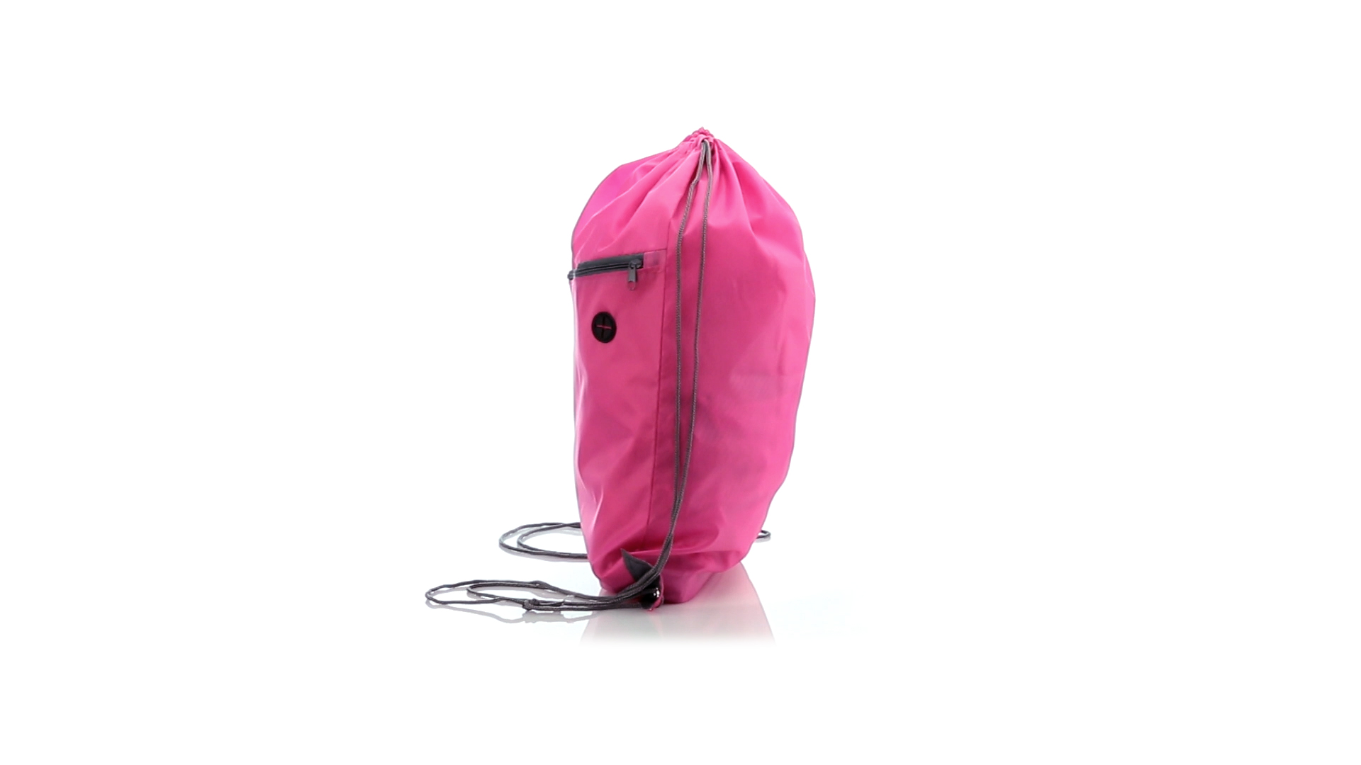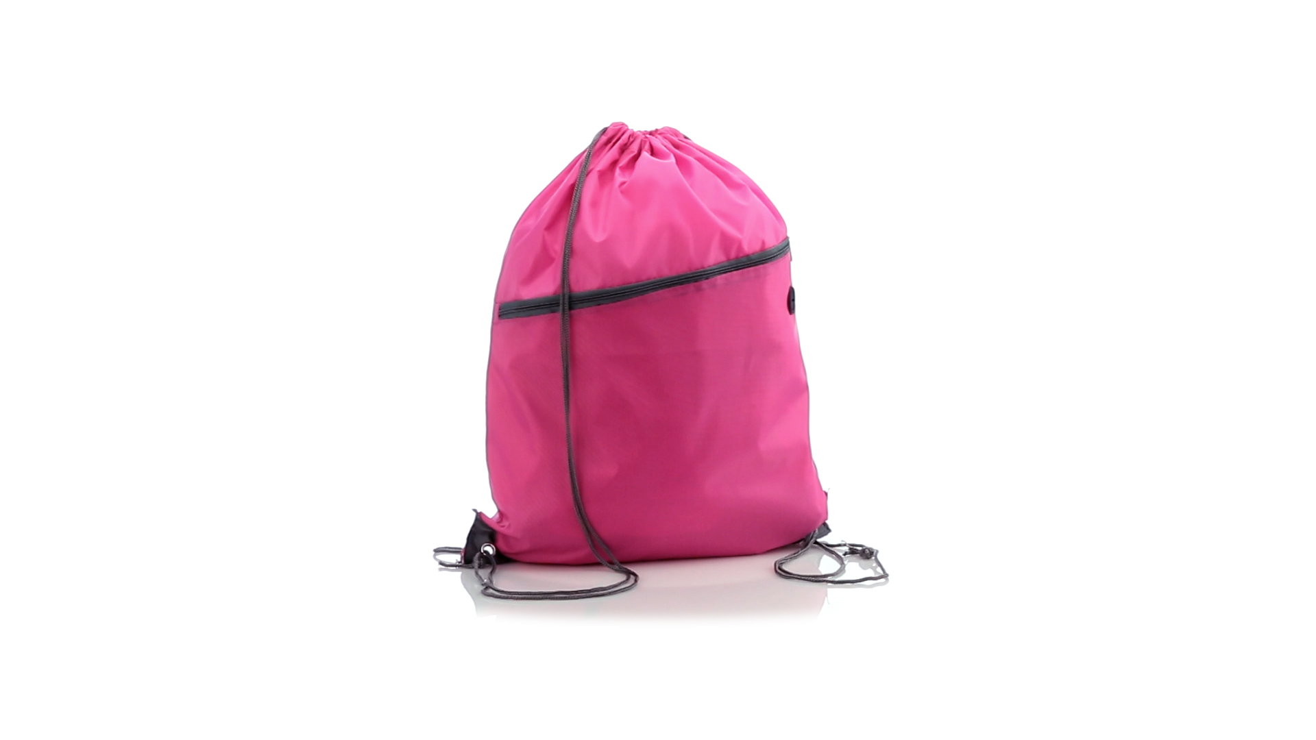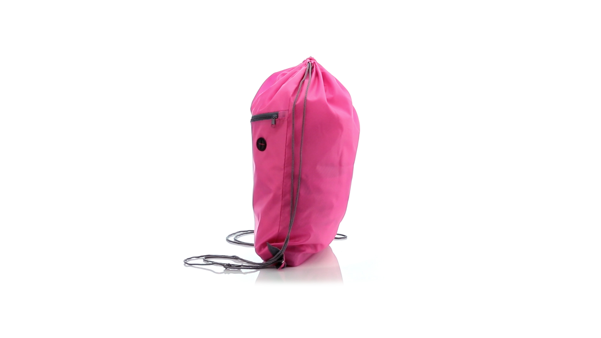 Rucksack mit Kordelzug aus weichem 210D Polyester. Mit Reissverschlusstasche auf der Vorderseite und Kopfhörerausgang. Zugbänder in Grau, passender Reissverschluss und Ecken mit Metallringen und Kunstlederverstärkung. Erhältlich in einer breiten Farbpalette.