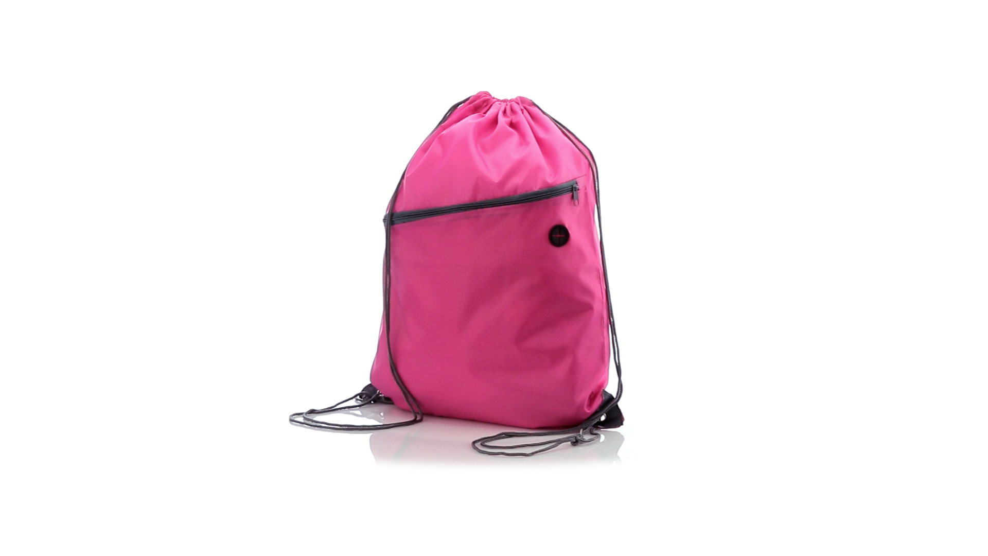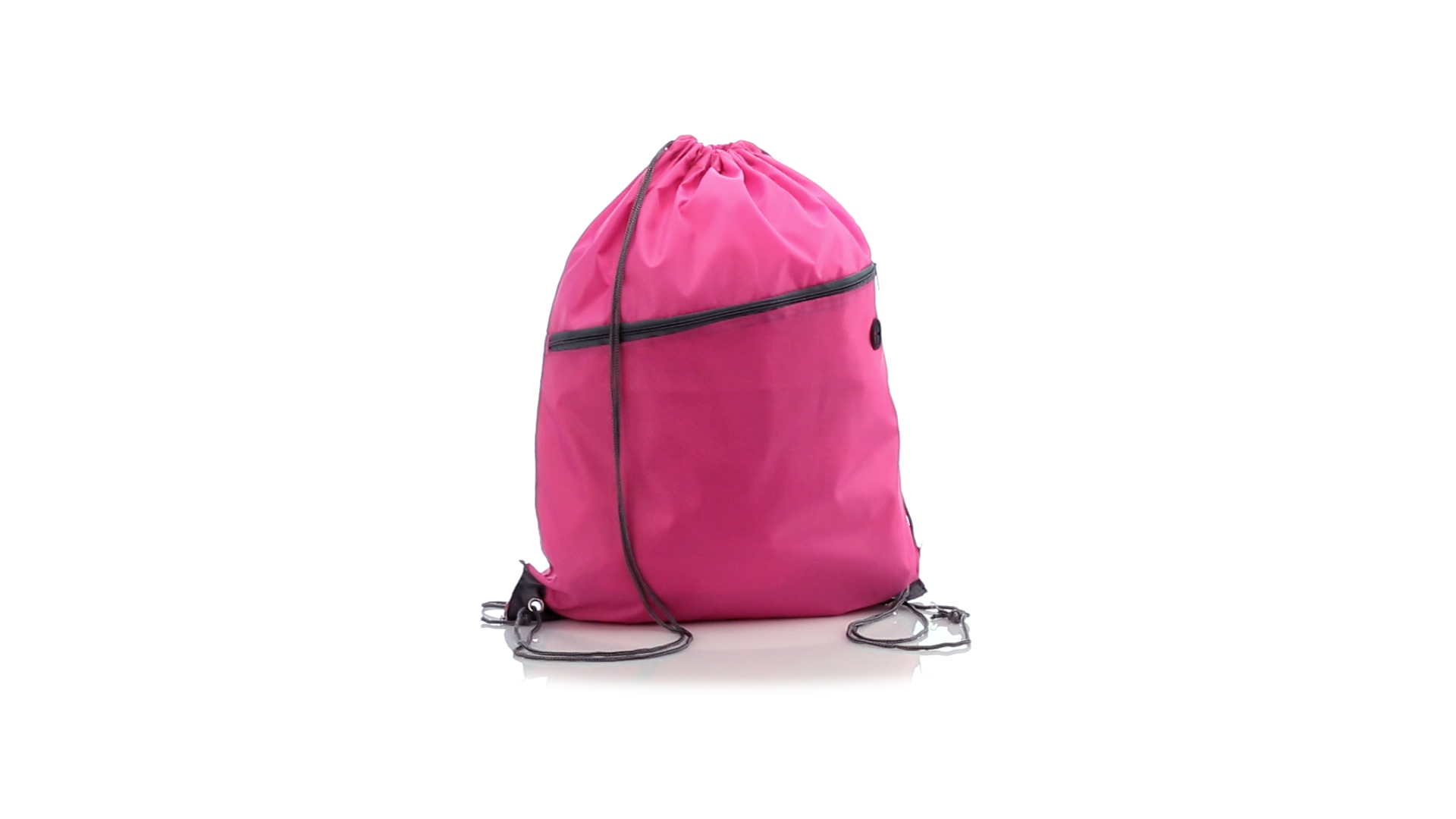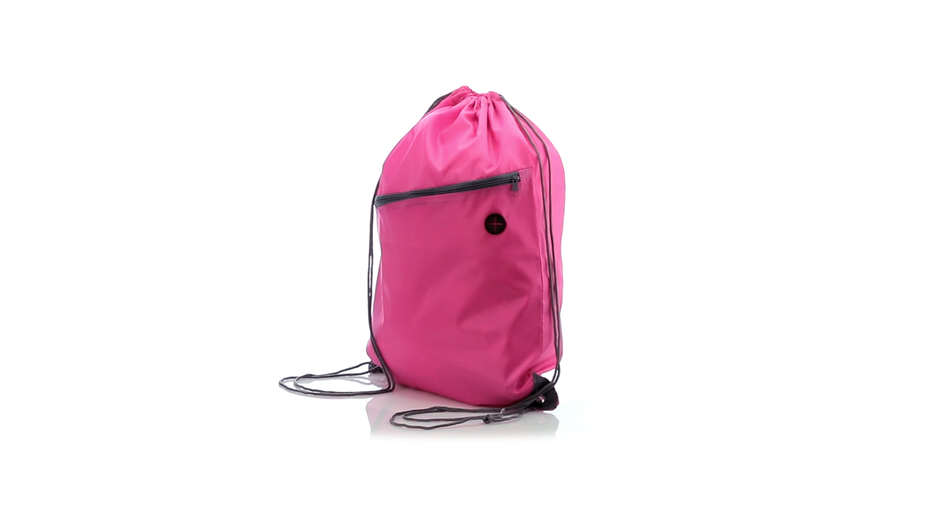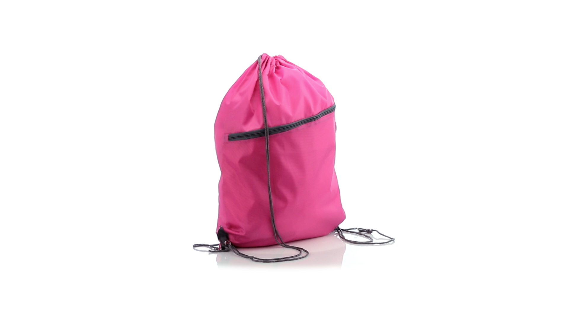 Rucksack mit Kordelzug aus weichem 210D Polyester. Mit Reissverschlusstasche auf der Vorderseite und Kopfhörerausgang. Zugbänder in Grau, passender Reissverschluss und Ecken mit Metallringen und Kunstlederverstärkung. Erhältlich in einer breiten Farbpalette.