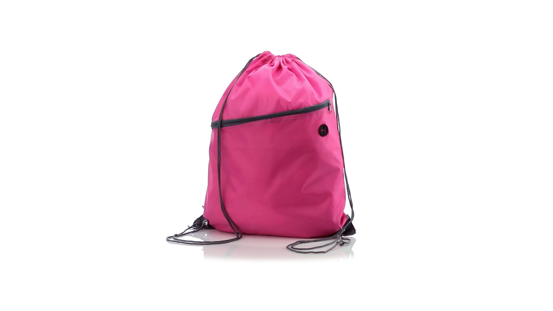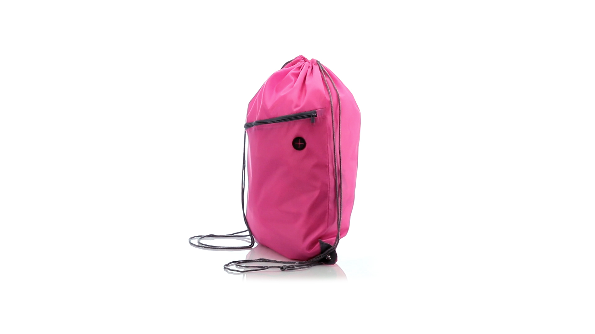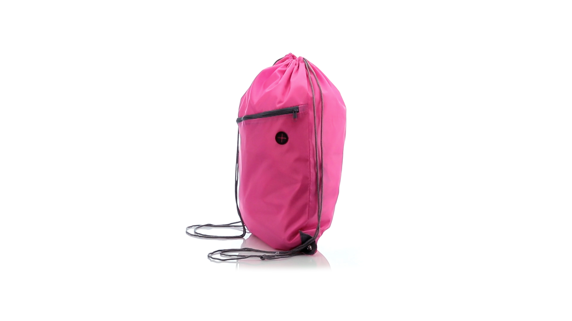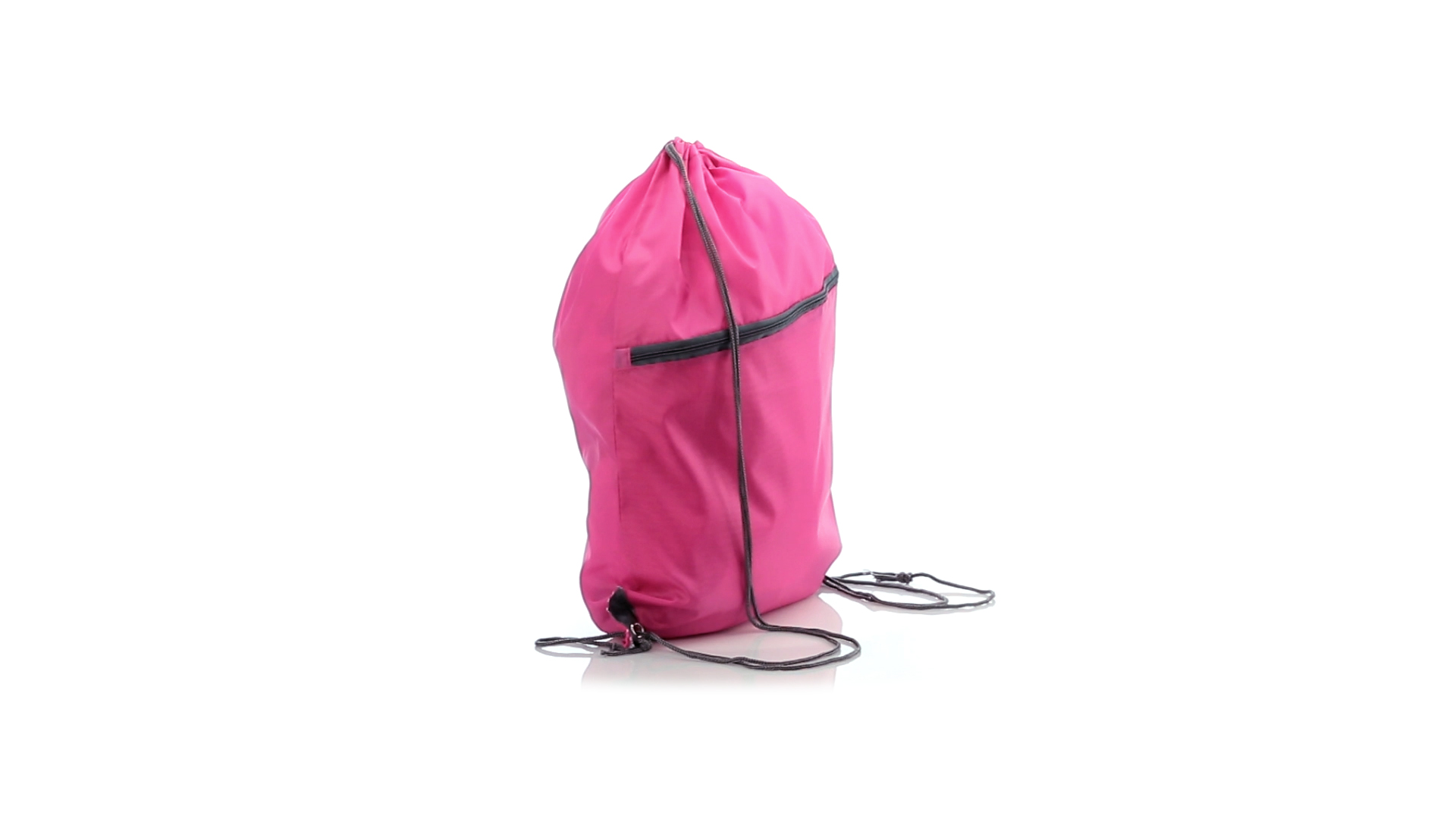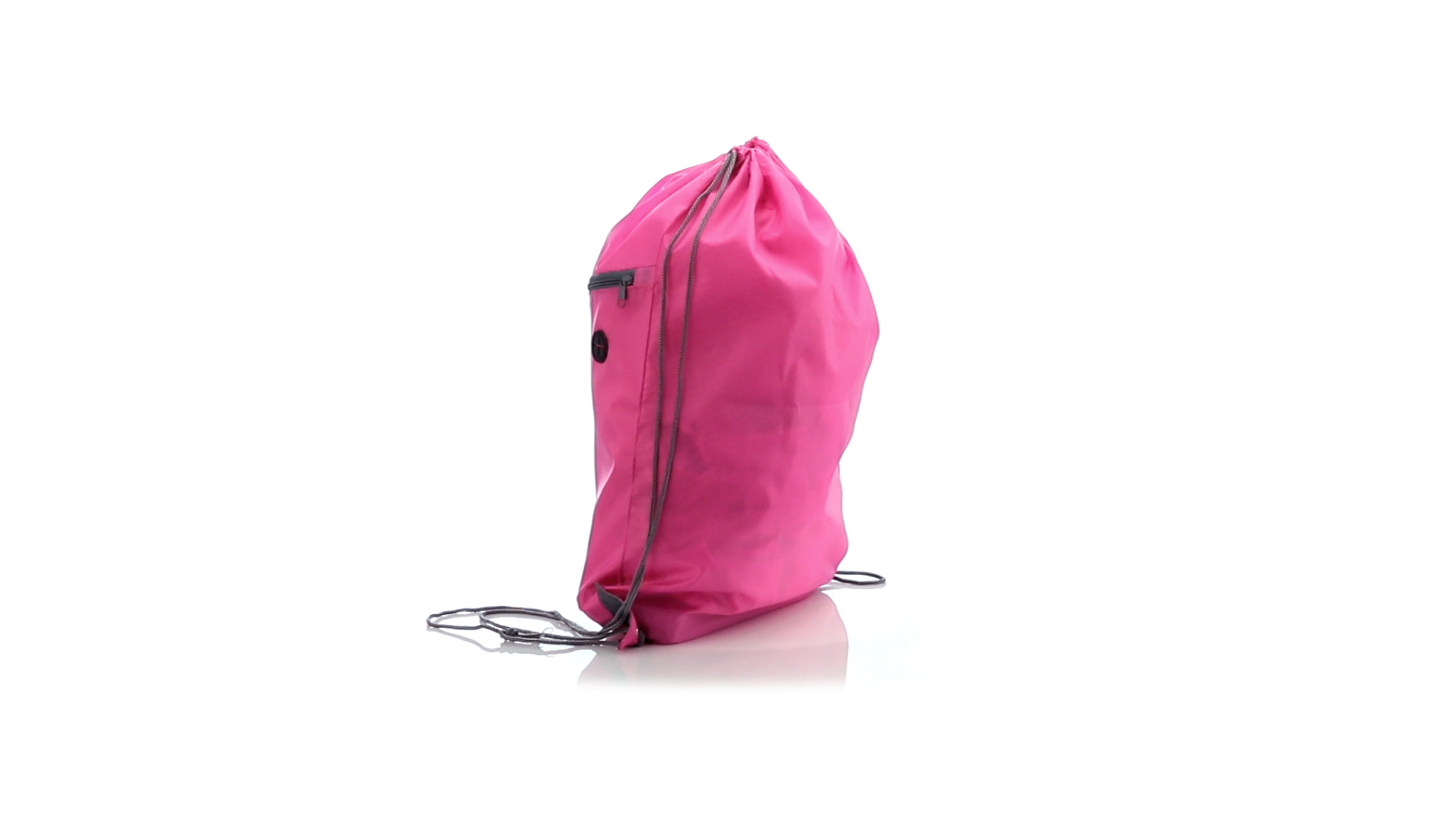 Rucksack mit Kordelzug aus weichem 210D Polyester. Mit Reissverschlusstasche auf der Vorderseite und Kopfhörerausgang. Zugbänder in Grau, passender Reissverschluss und Ecken mit Metallringen und Kunstlederverstärkung. Erhältlich in einer breiten Farbpalette.