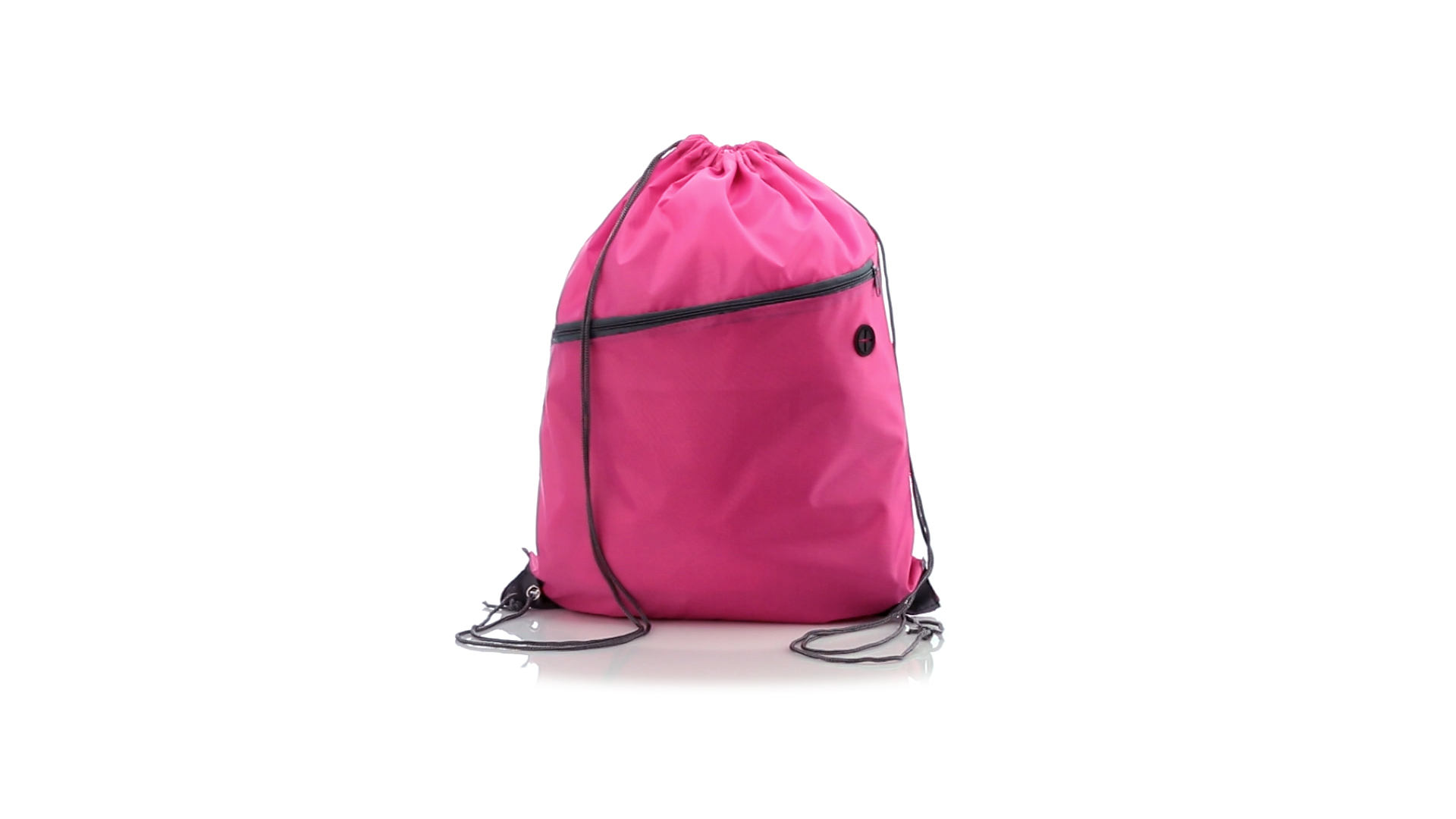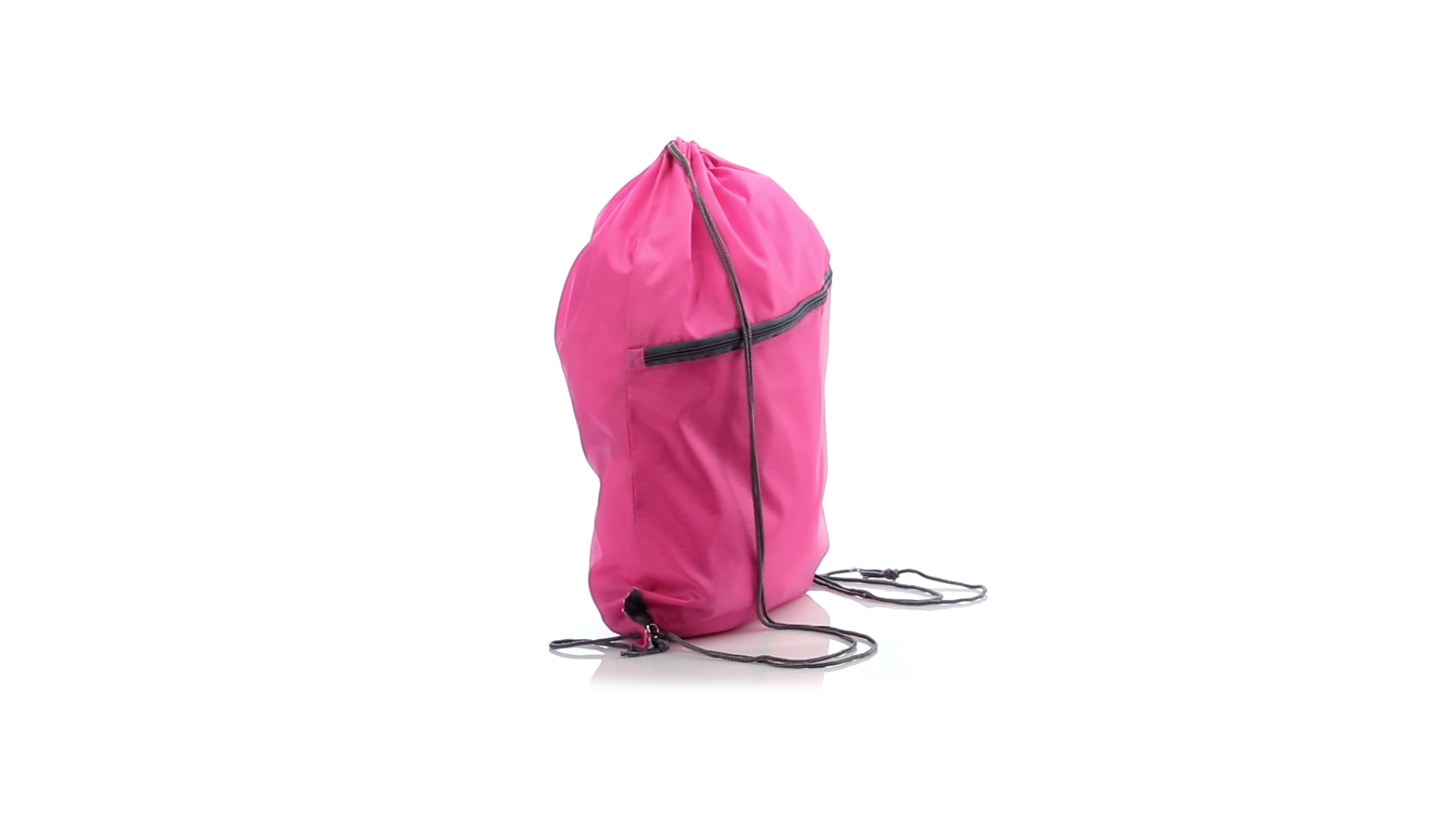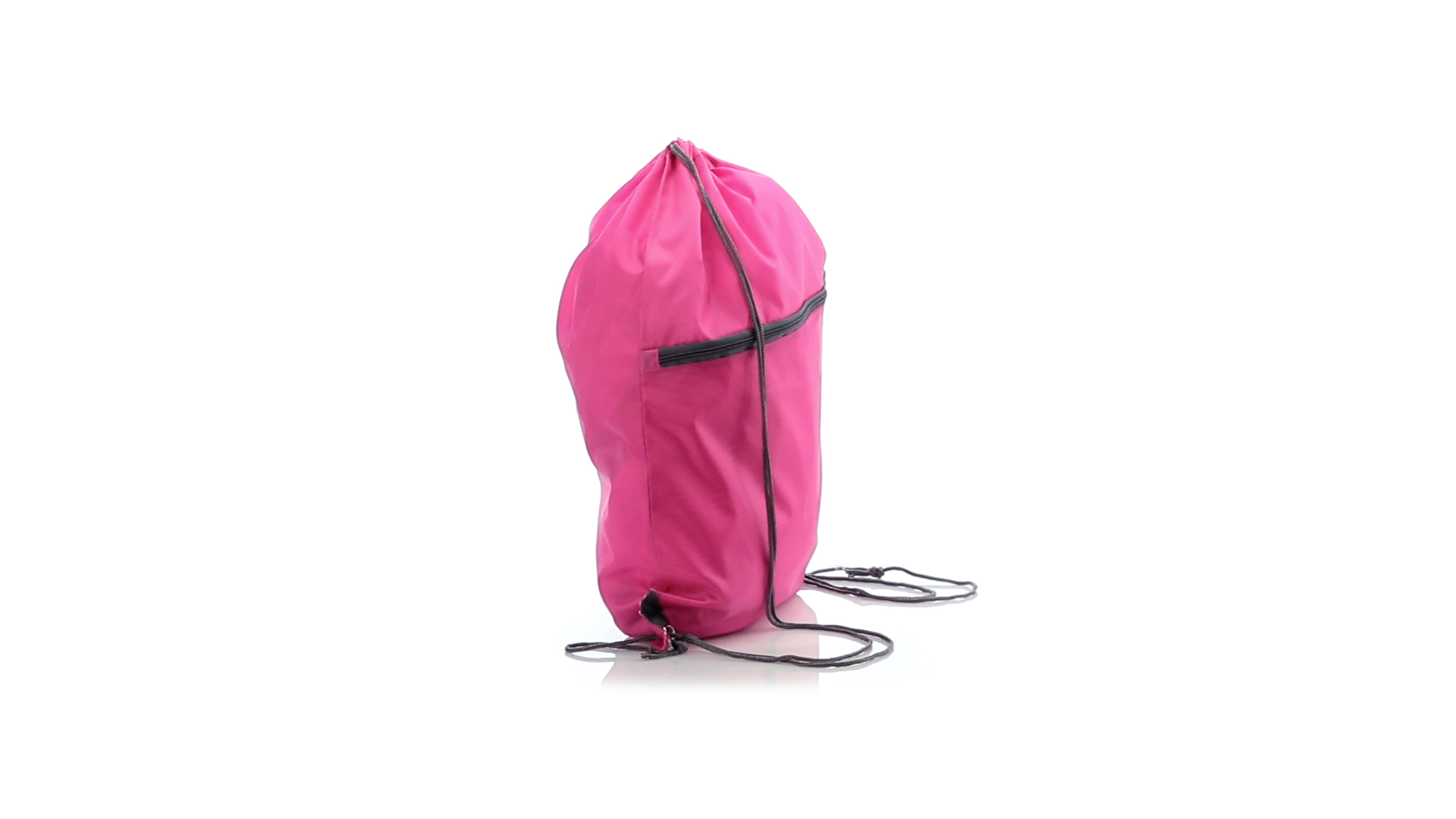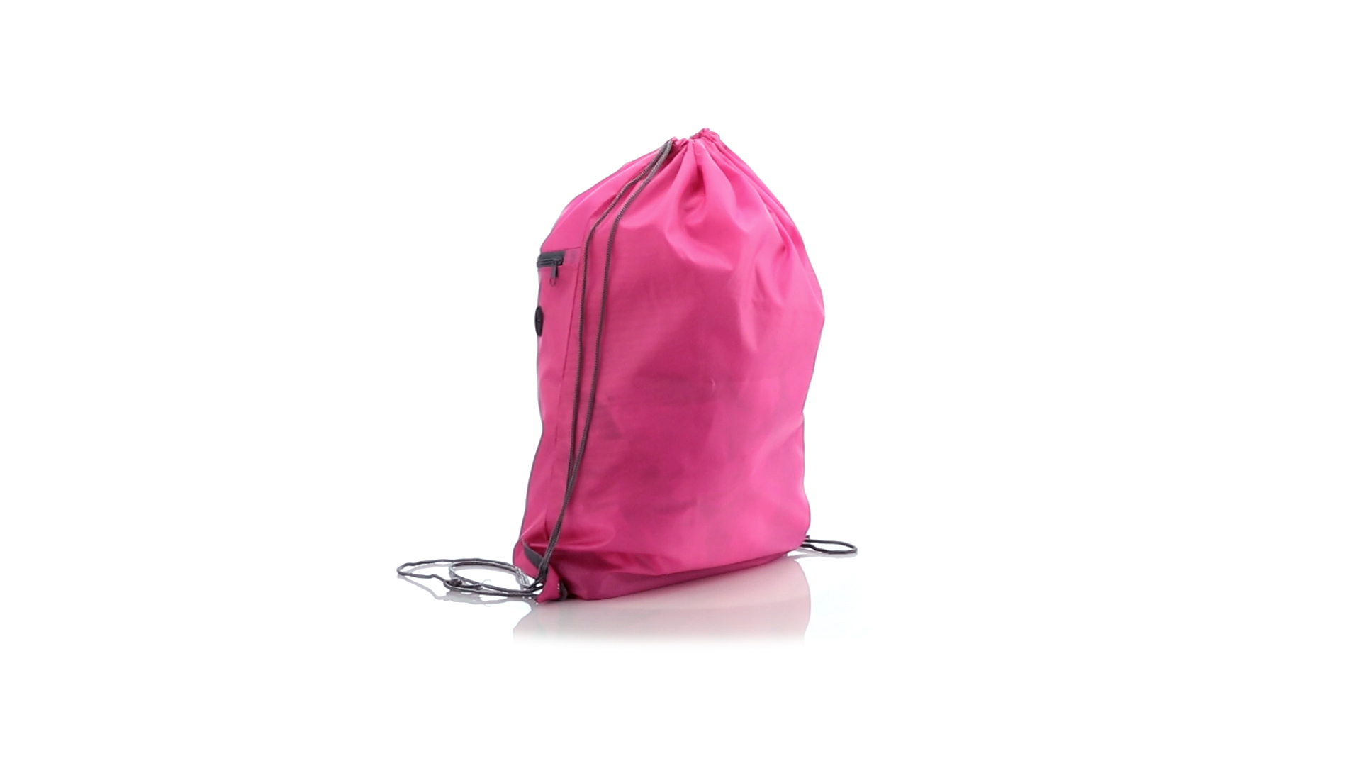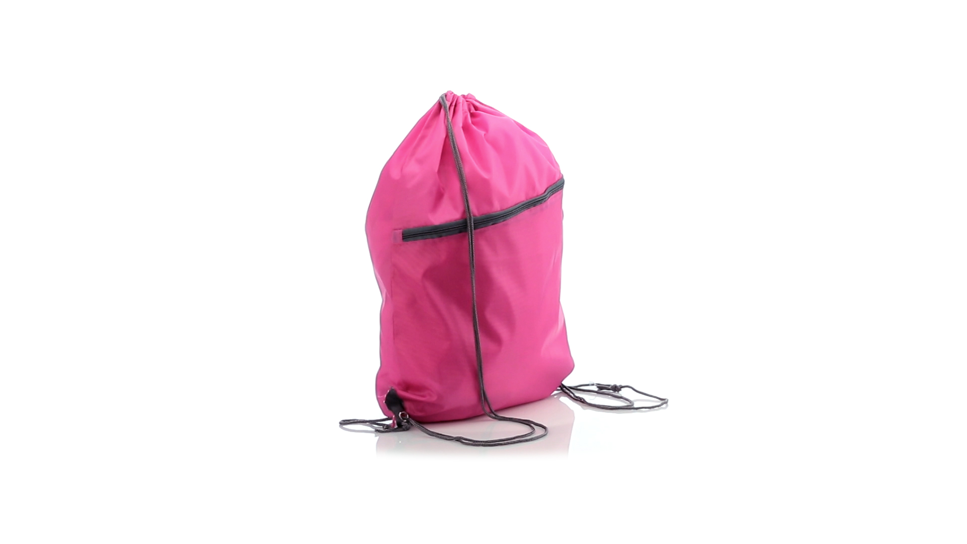 Rucksack mit Kordelzug aus weichem 210D Polyester. Mit Reissverschlusstasche auf der Vorderseite und Kopfhörerausgang. Zugbänder in Grau, passender Reissverschluss und Ecken mit Metallringen und Kunstlederverstärkung. Erhältlich in einer breiten Farbpalette.