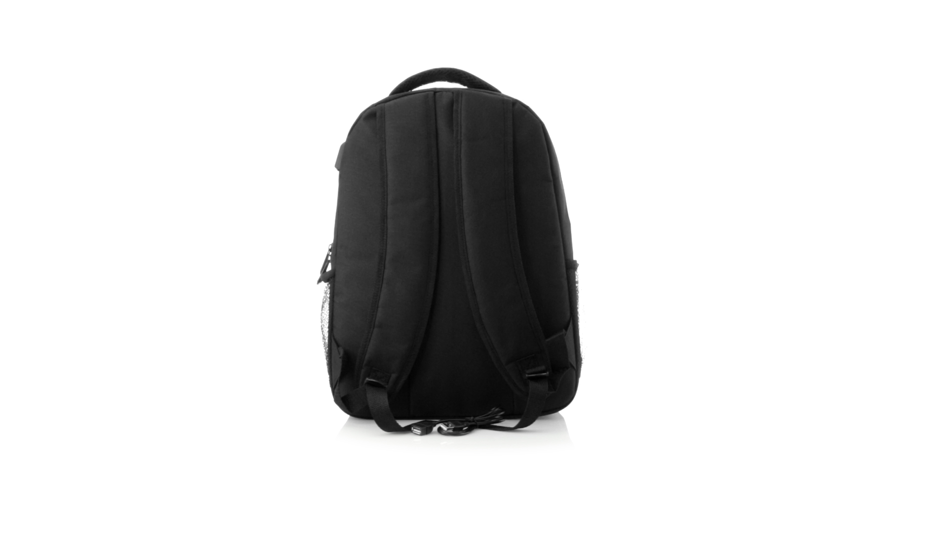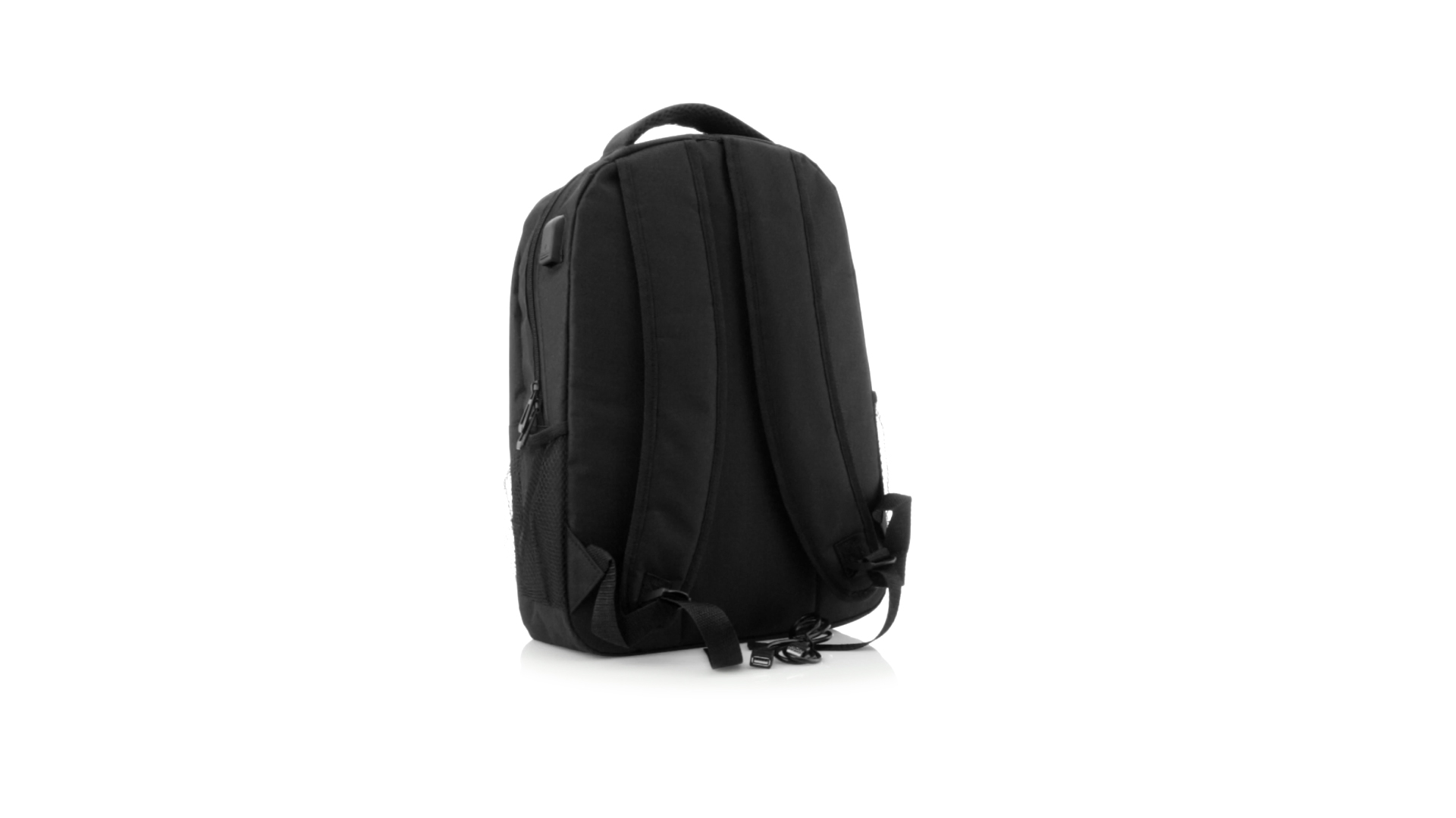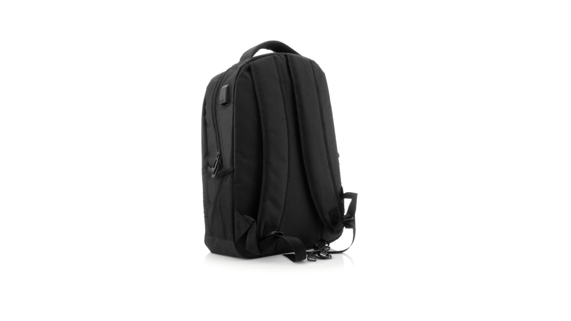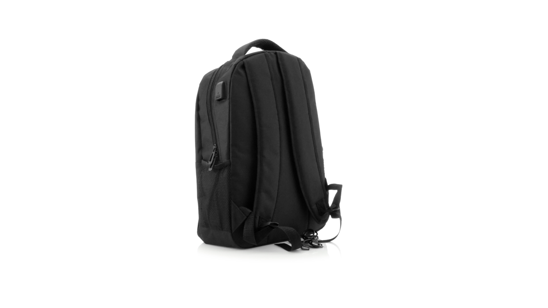 Widerstandsfähiger 600D-Polyester-Rucksack in stilvoller schwarzer, wasserdichter Ausführung mit Kopfhörerausgang. Mit Innenfach mit USB-Anschluss zum Anschluss einer Powerbank (nicht im Lieferumfang enthalten). Innen mit gepolstertem Fach für Laptops bis 15 Zoll und Tablets bis 10 Zoll. Mit einer grossen Auswahl an Innen- und Aussentaschen. Schulter- und Rückengurte mit ergonomischer Polsterung.