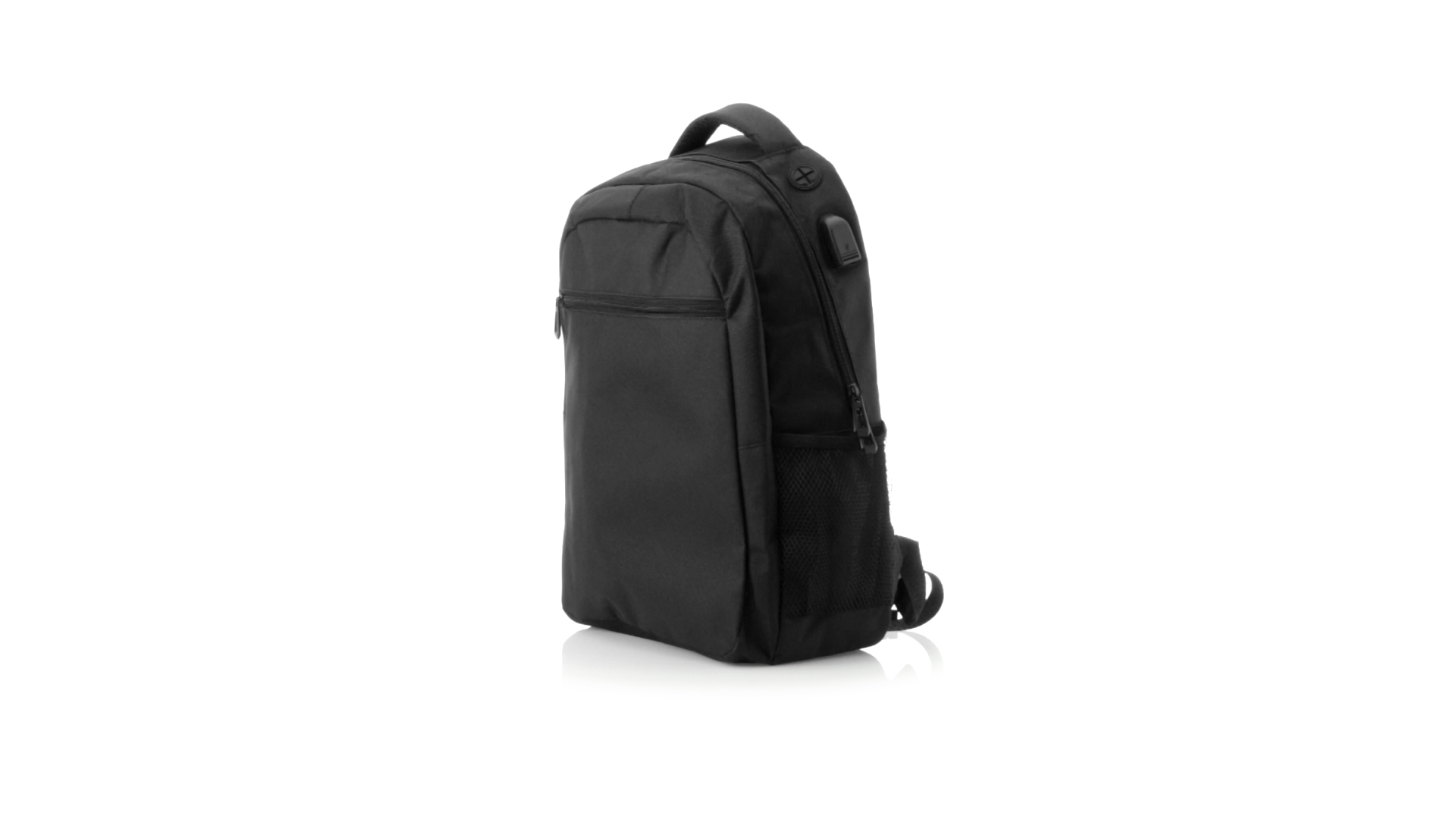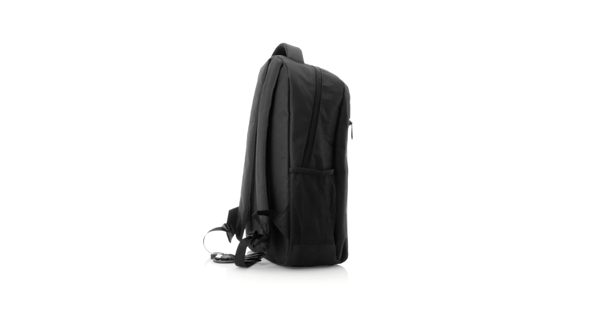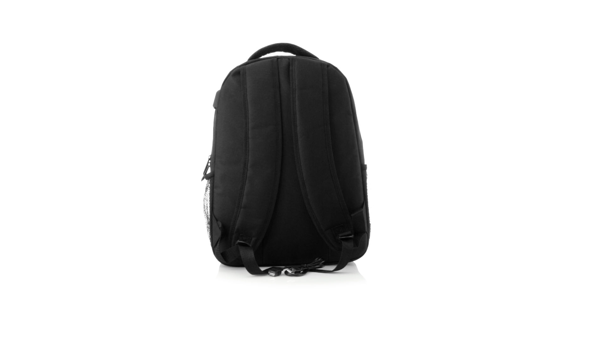 Widerstandsfähiger 600D-Polyester-Rucksack in stilvoller schwarzer, wasserdichter Ausführung mit Kopfhörerausgang. Mit Innenfach mit USB-Anschluss zum Anschluss einer Powerbank (nicht im Lieferumfang enthalten). Innen mit gepolstertem Fach für Laptops bis 15 Zoll und Tablets bis 10 Zoll. Mit einer grossen Auswahl an Innen- und Aussentaschen. Schulter- und Rückengurte mit ergonomischer Polsterung.