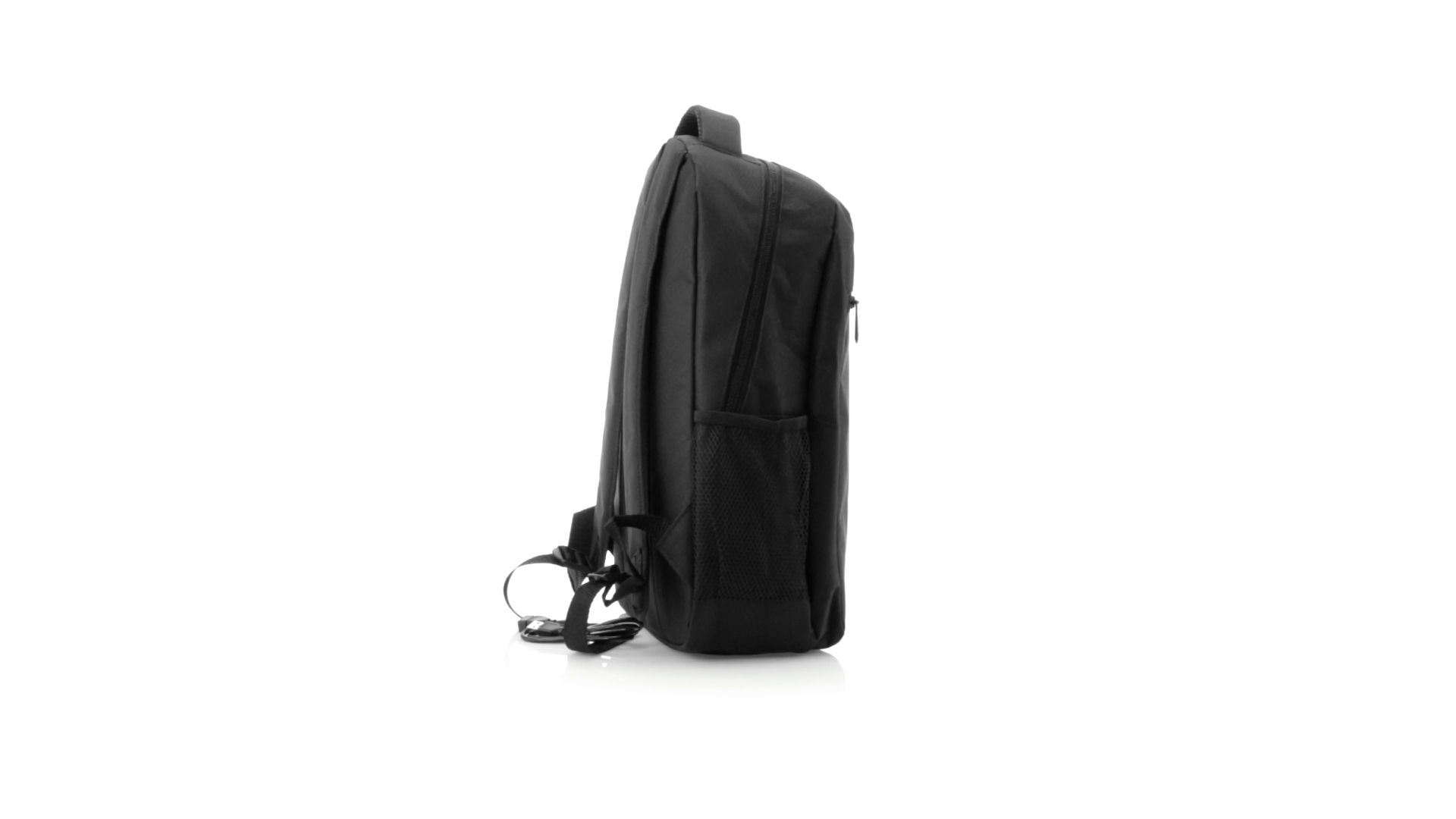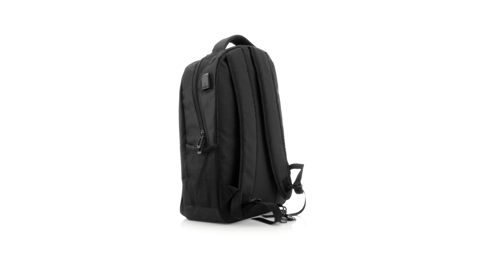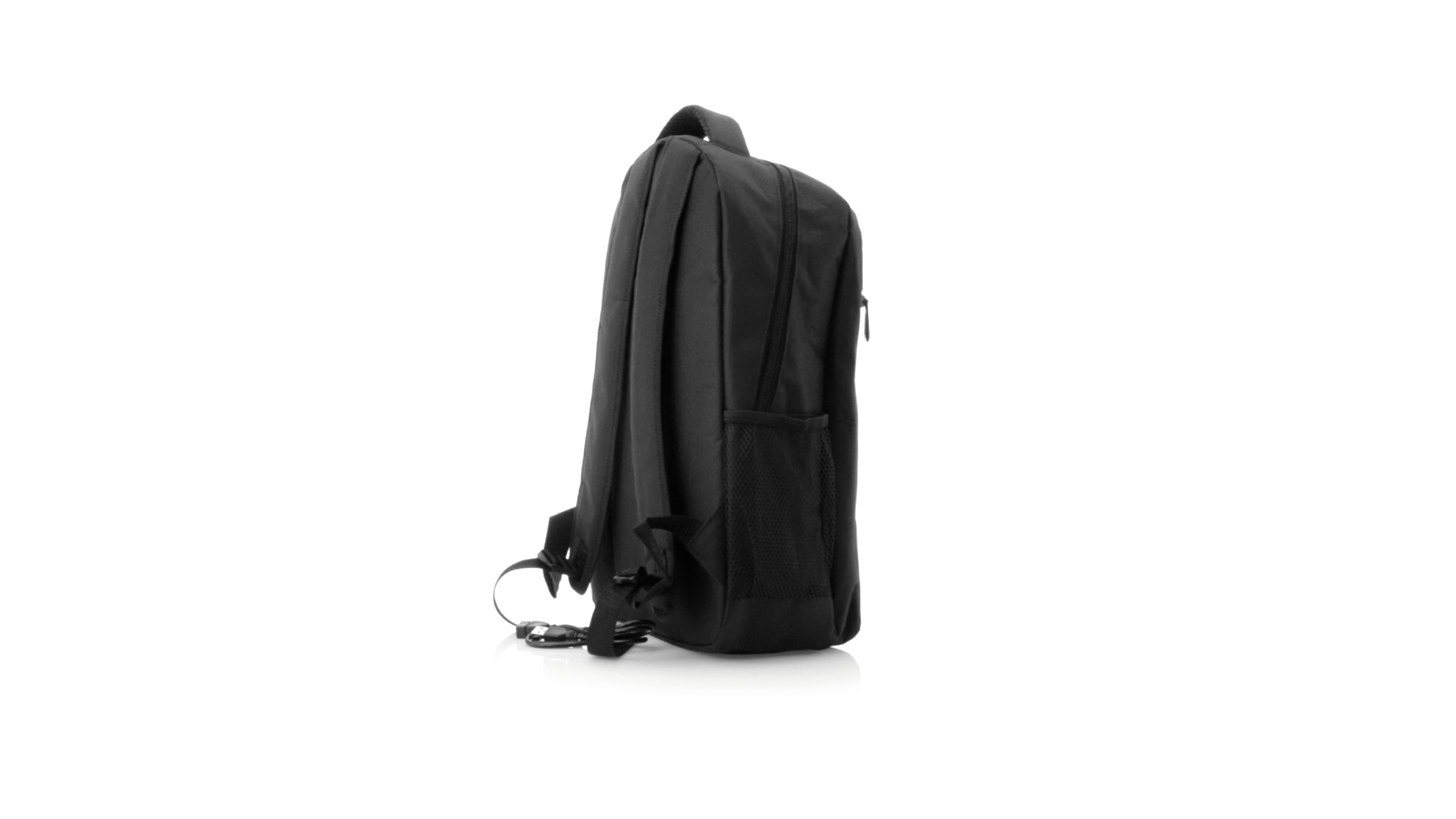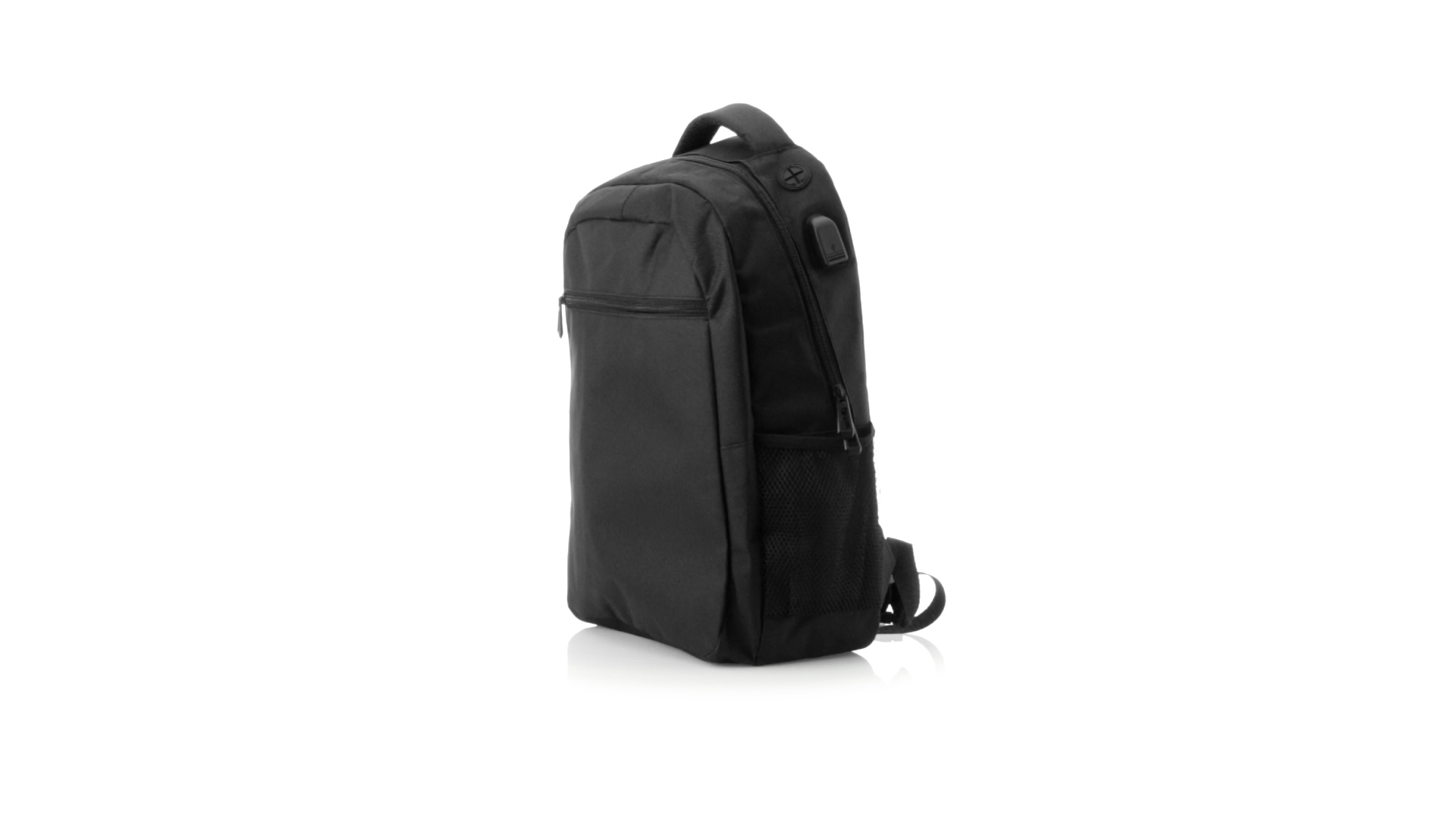 Widerstandsfähiger 600D-Polyester-Rucksack in stilvoller schwarzer, wasserdichter Ausführung mit Kopfhörerausgang. Mit Innenfach mit USB-Anschluss zum Anschluss einer Powerbank (nicht im Lieferumfang enthalten). Innen mit gepolstertem Fach für Laptops bis 15 Zoll und Tablets bis 10 Zoll. Mit einer grossen Auswahl an Innen- und Aussentaschen. Schulter- und Rückengurte mit ergonomischer Polsterung.