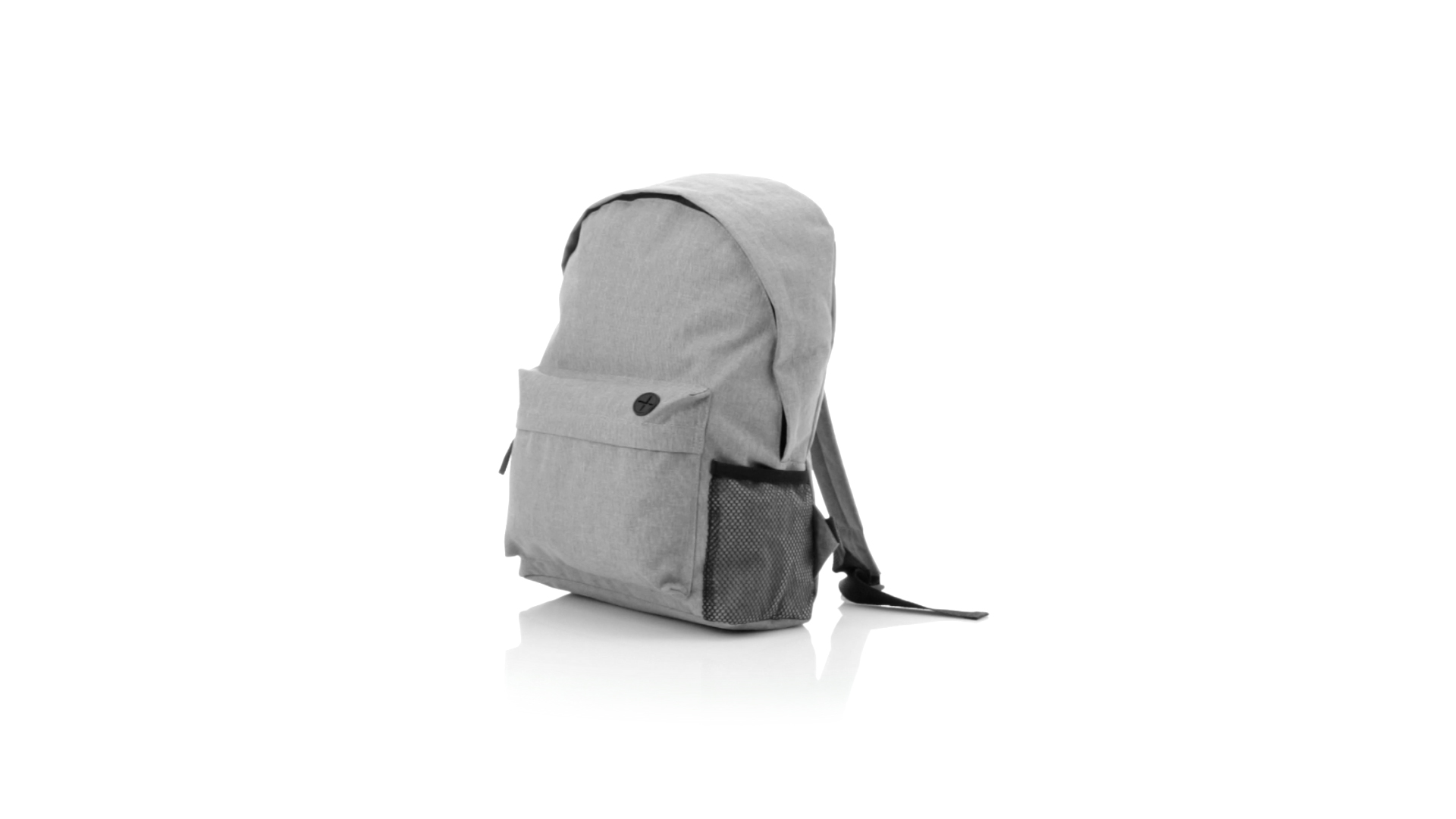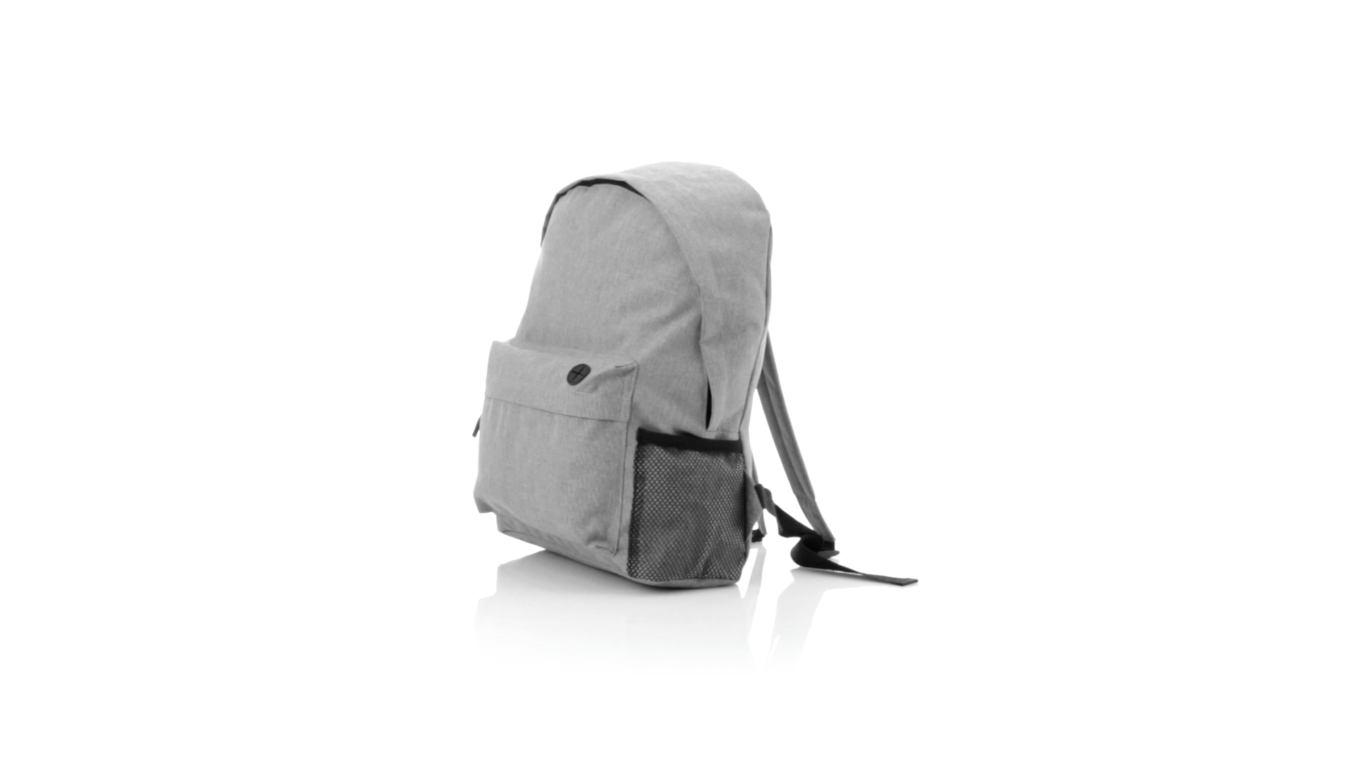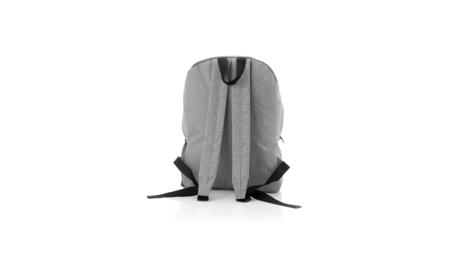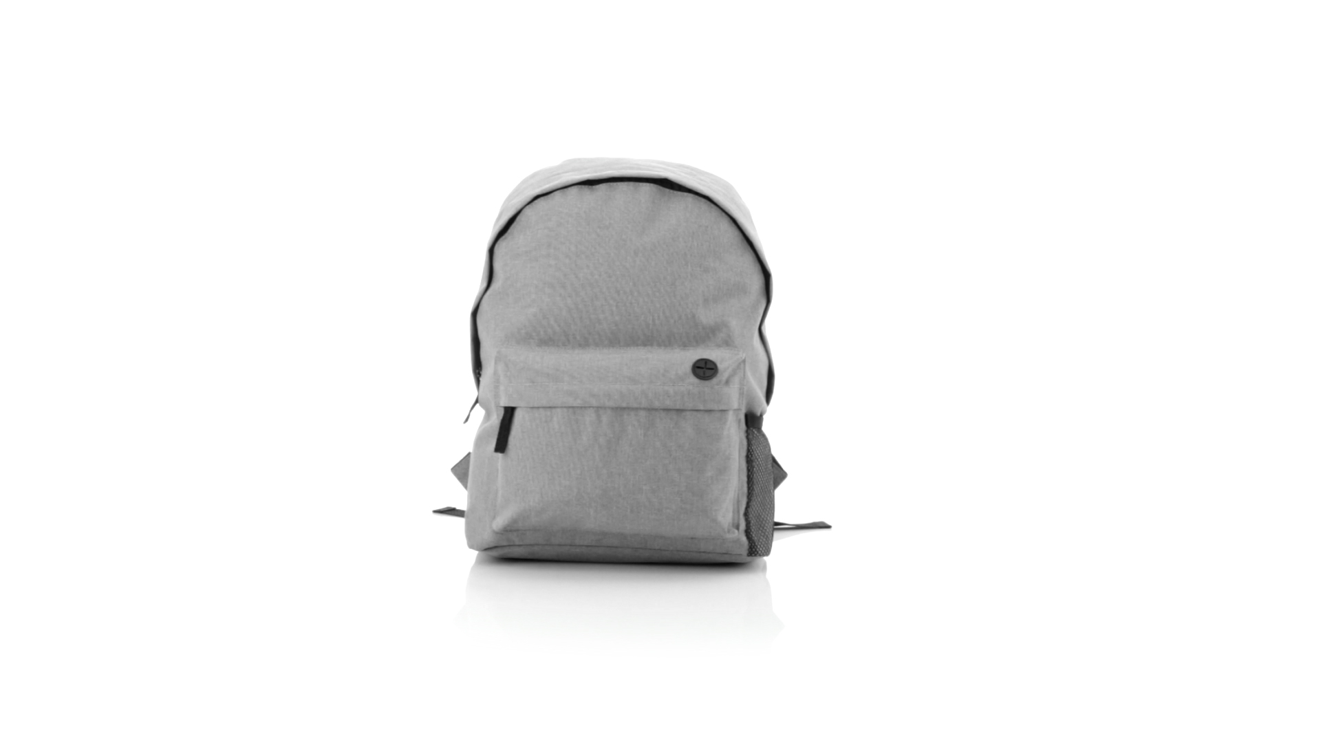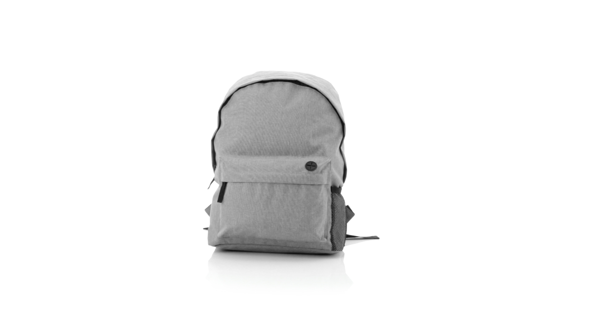 Rucksack aus elegantem 600D Polyester in Grau mit gepolstertem Rückenpanel und Schultergurten mit Polsterung. Aussentasche mit Reissverschluss, Kopfhörerausgang und praktische, elastische Netztasche an der Seite.