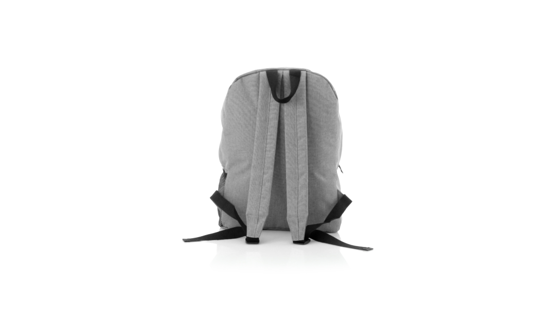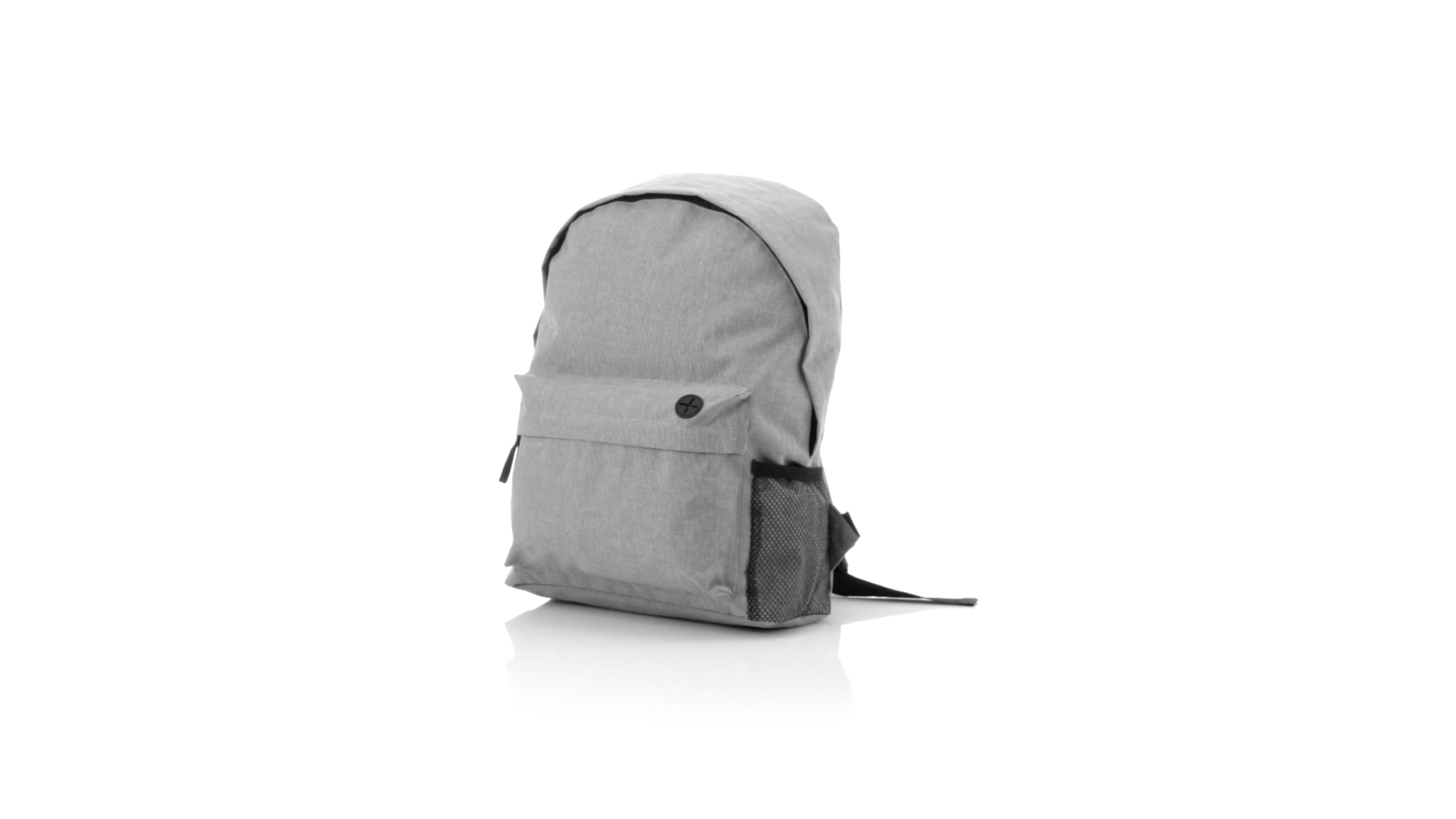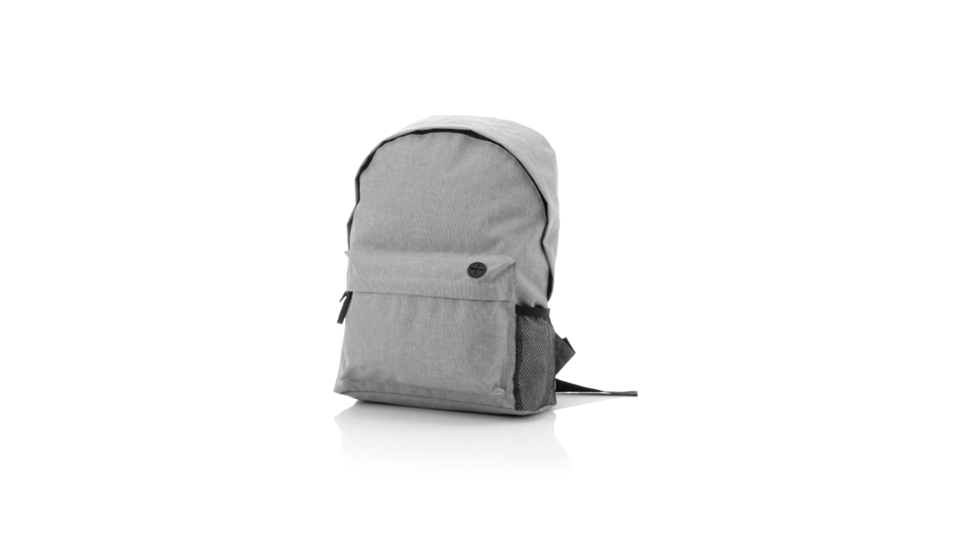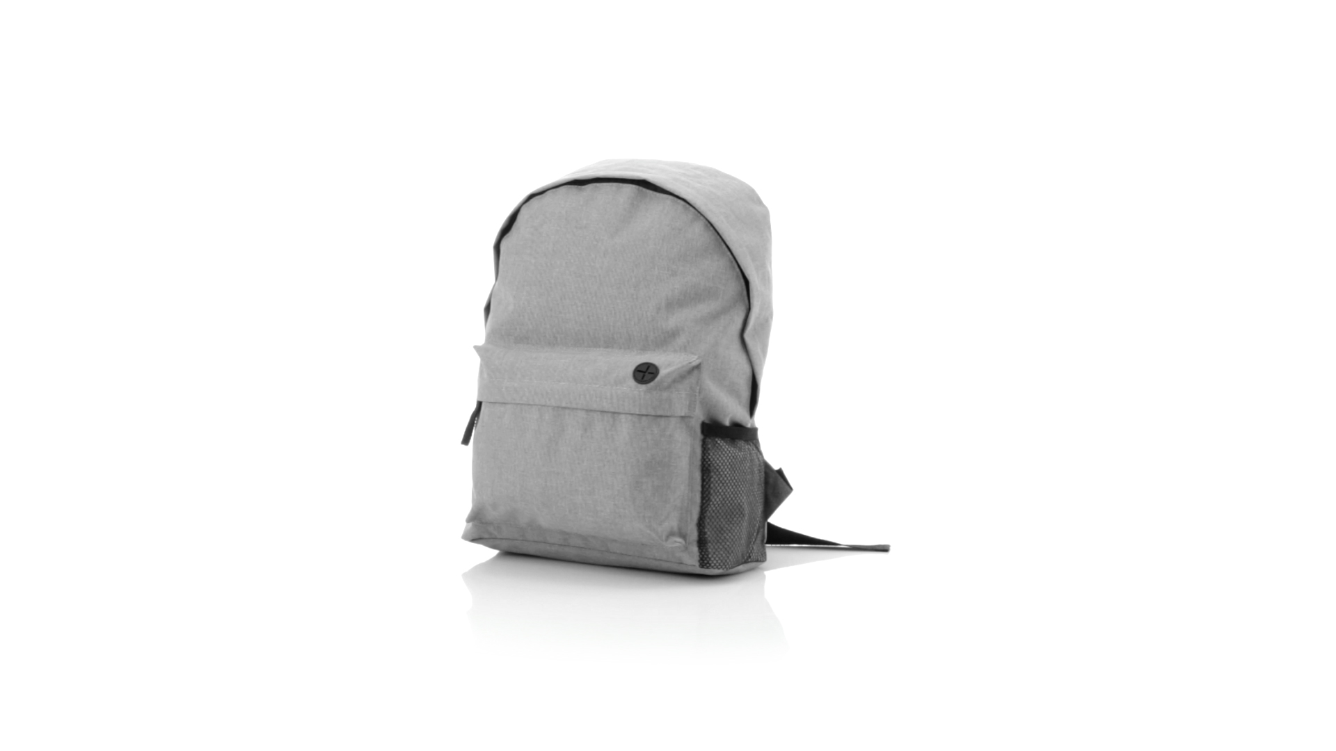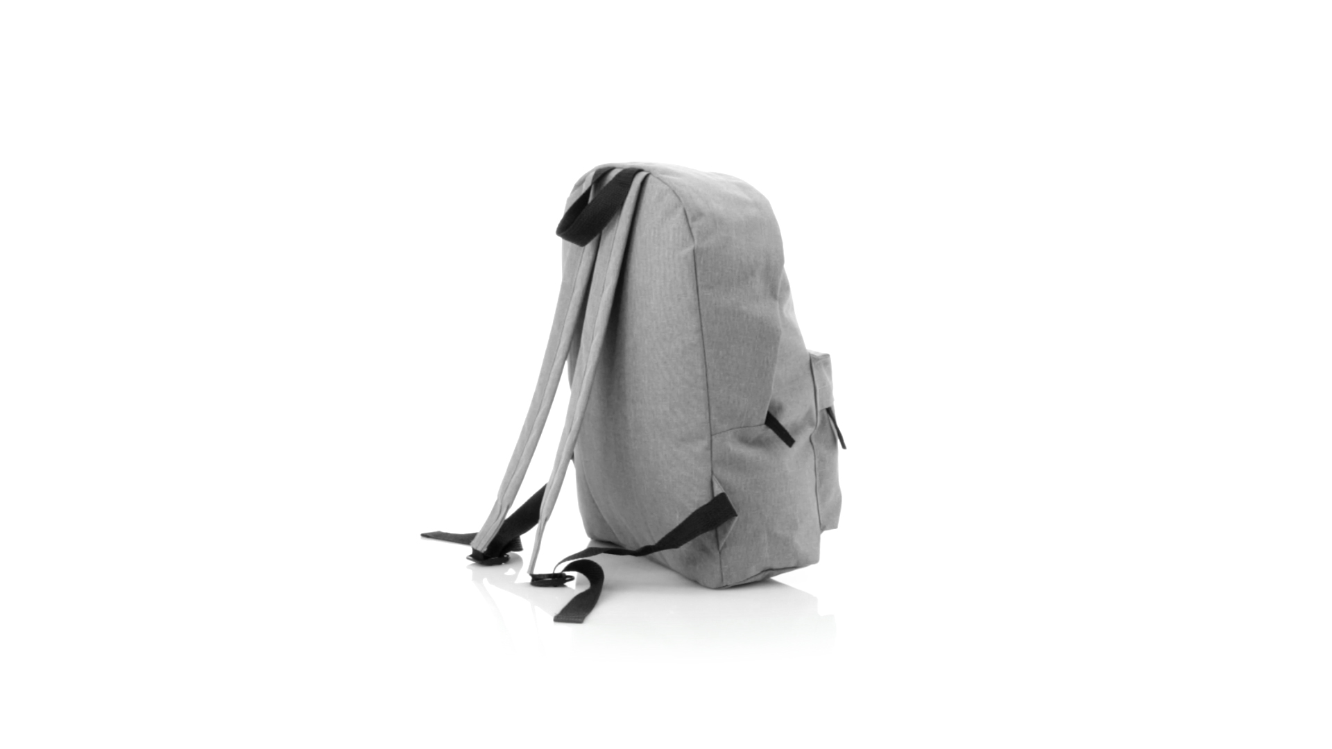 Rucksack aus elegantem 600D Polyester in Grau mit gepolstertem Rückenpanel und Schultergurten mit Polsterung. Aussentasche mit Reissverschluss, Kopfhörerausgang und praktische, elastische Netztasche an der Seite.
