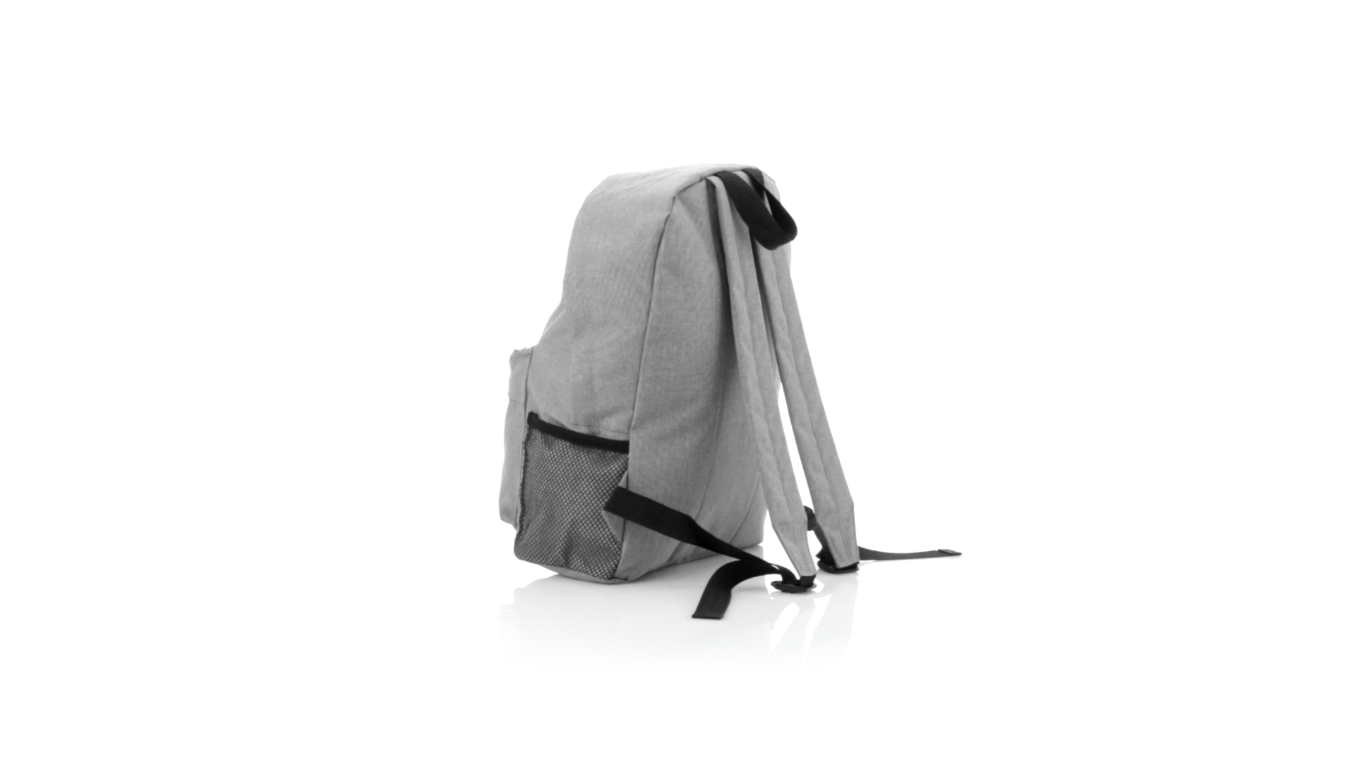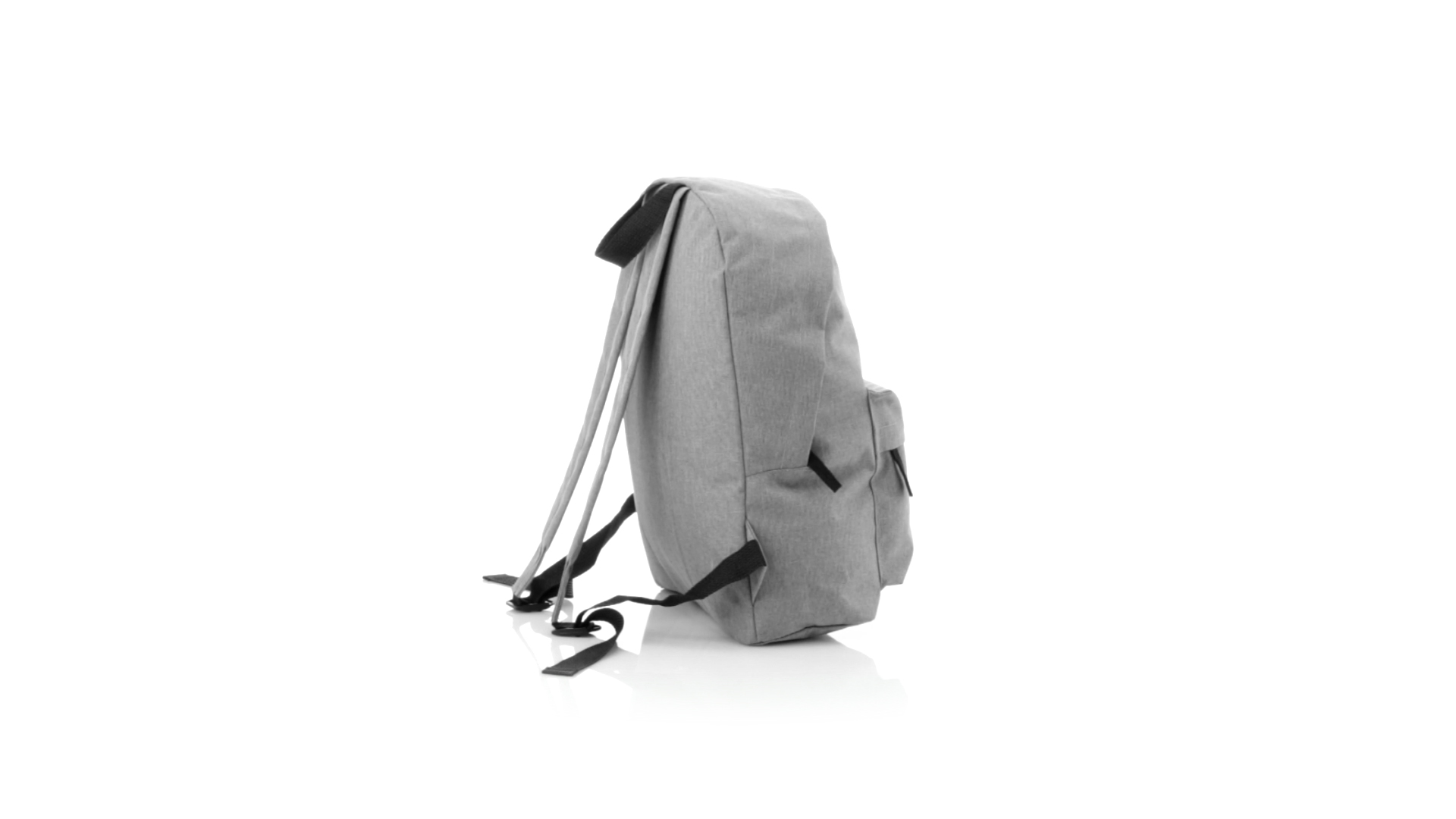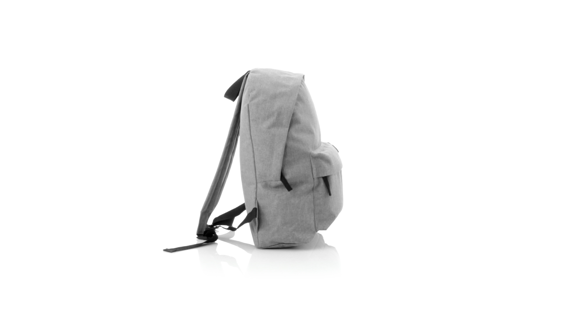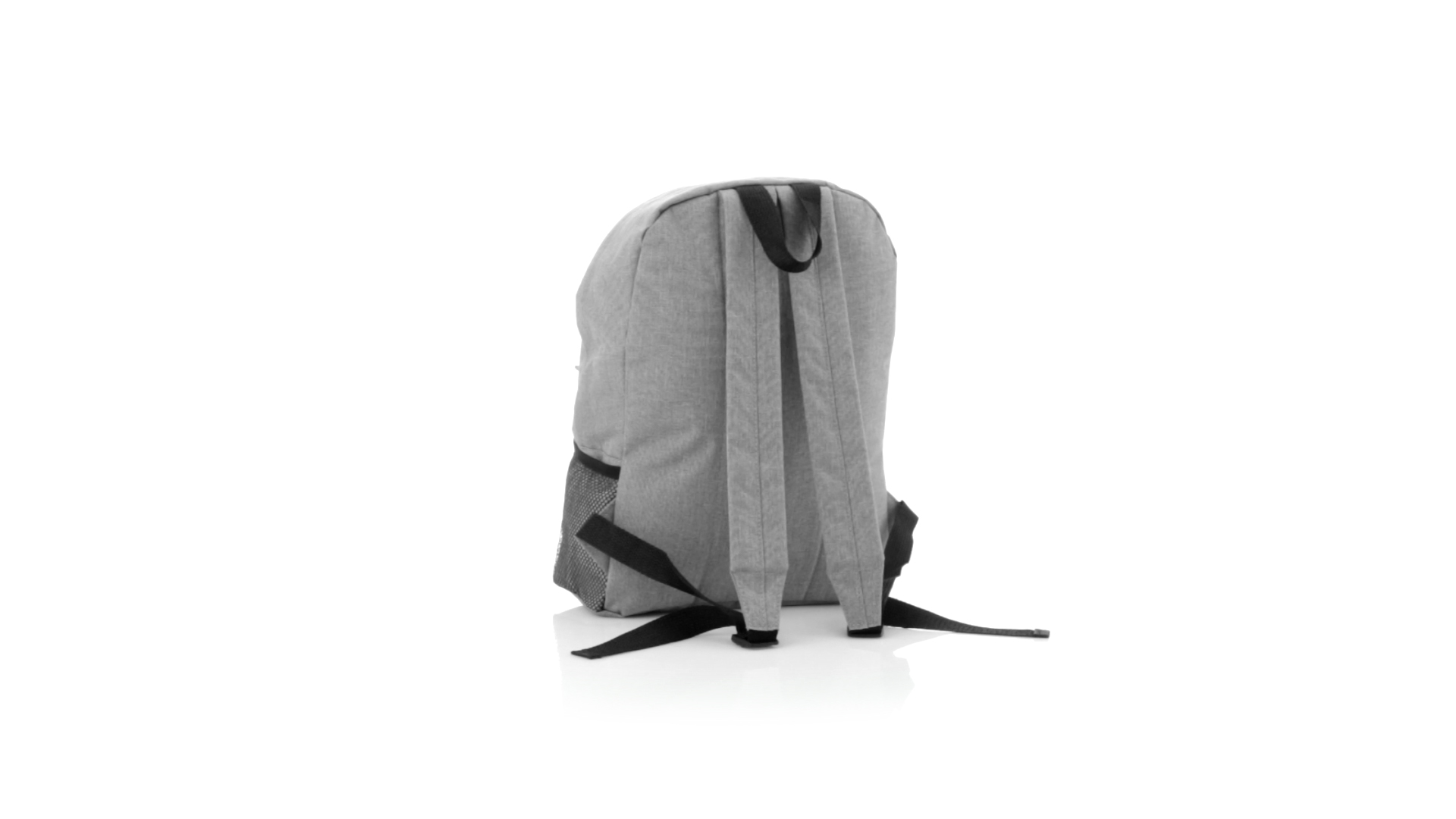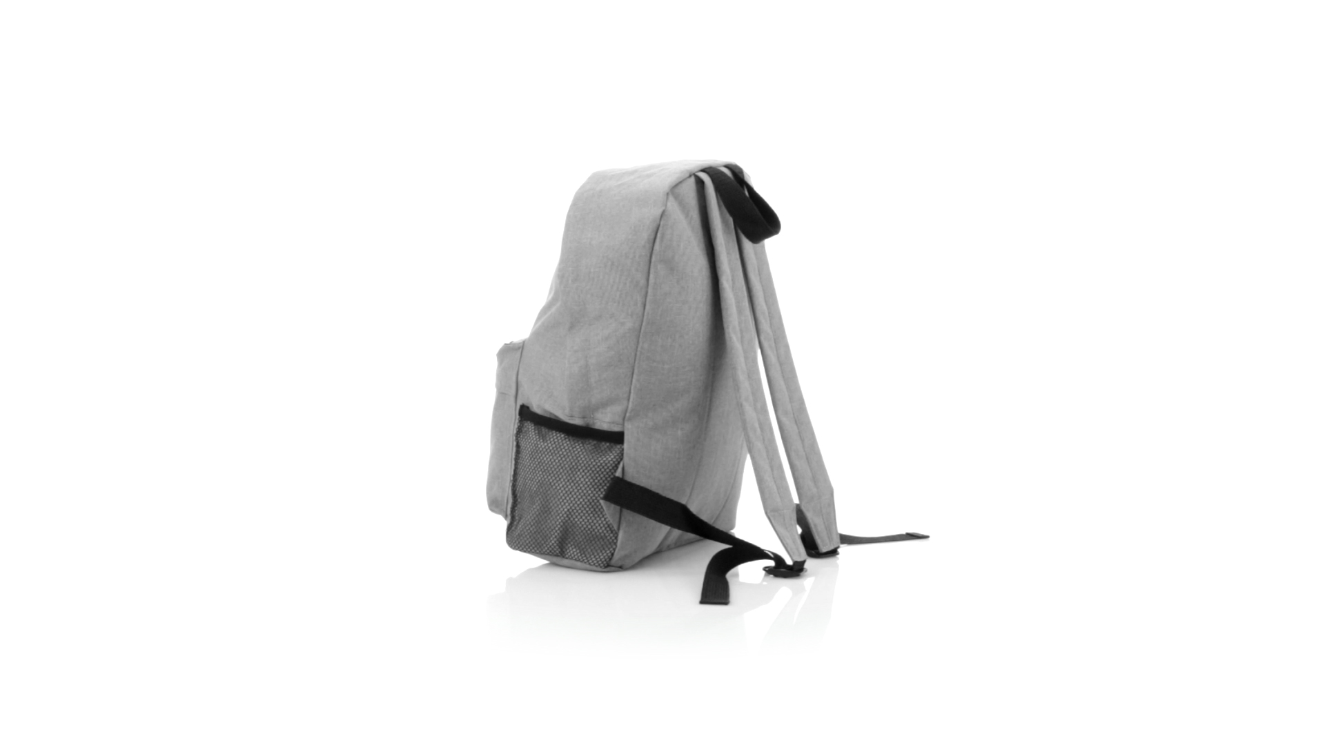 Rucksack aus elegantem 600D Polyester in Grau mit gepolstertem Rückenpanel und Schultergurten mit Polsterung. Aussentasche mit Reissverschluss, Kopfhörerausgang und praktische, elastische Netztasche an der Seite.