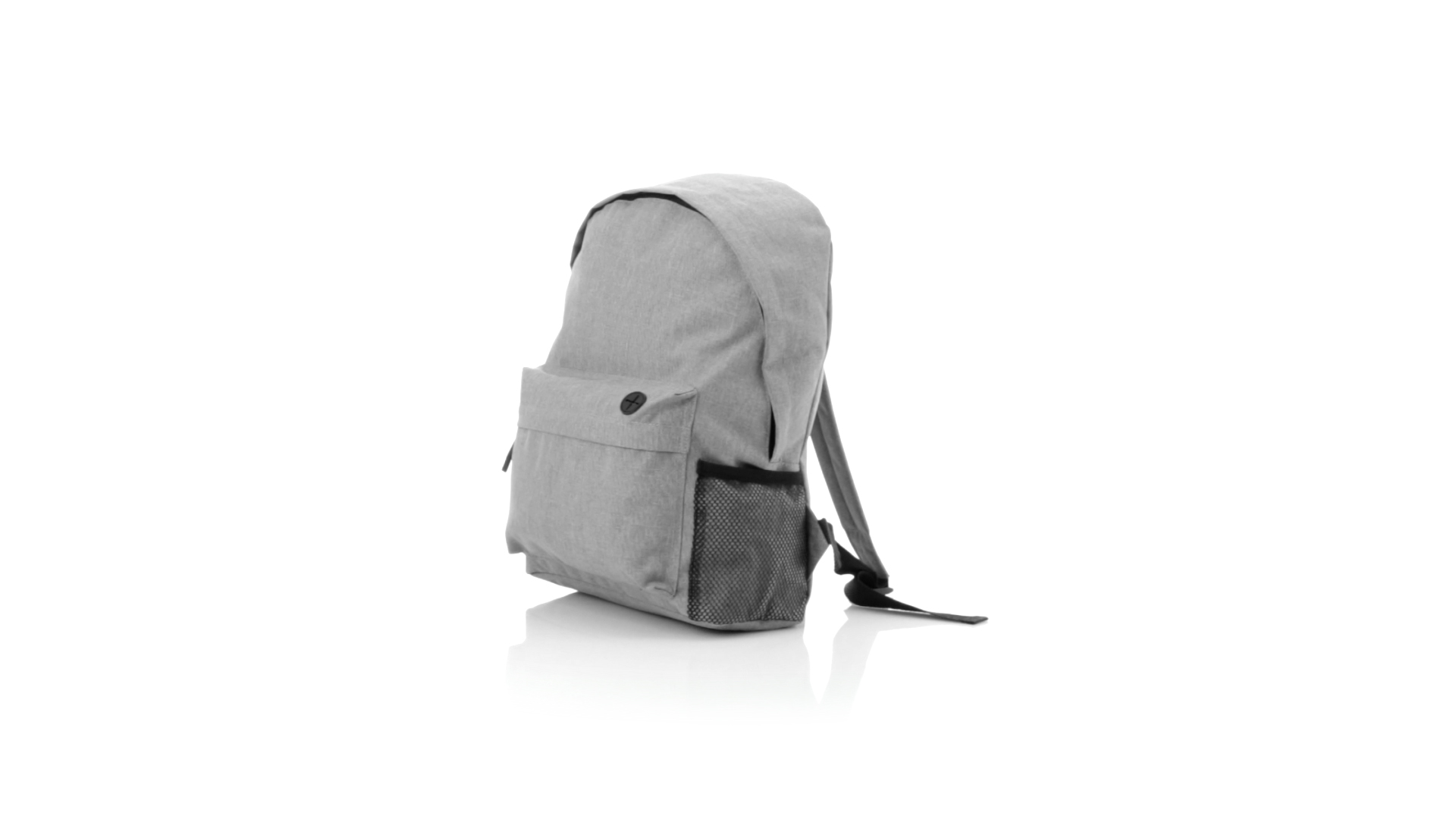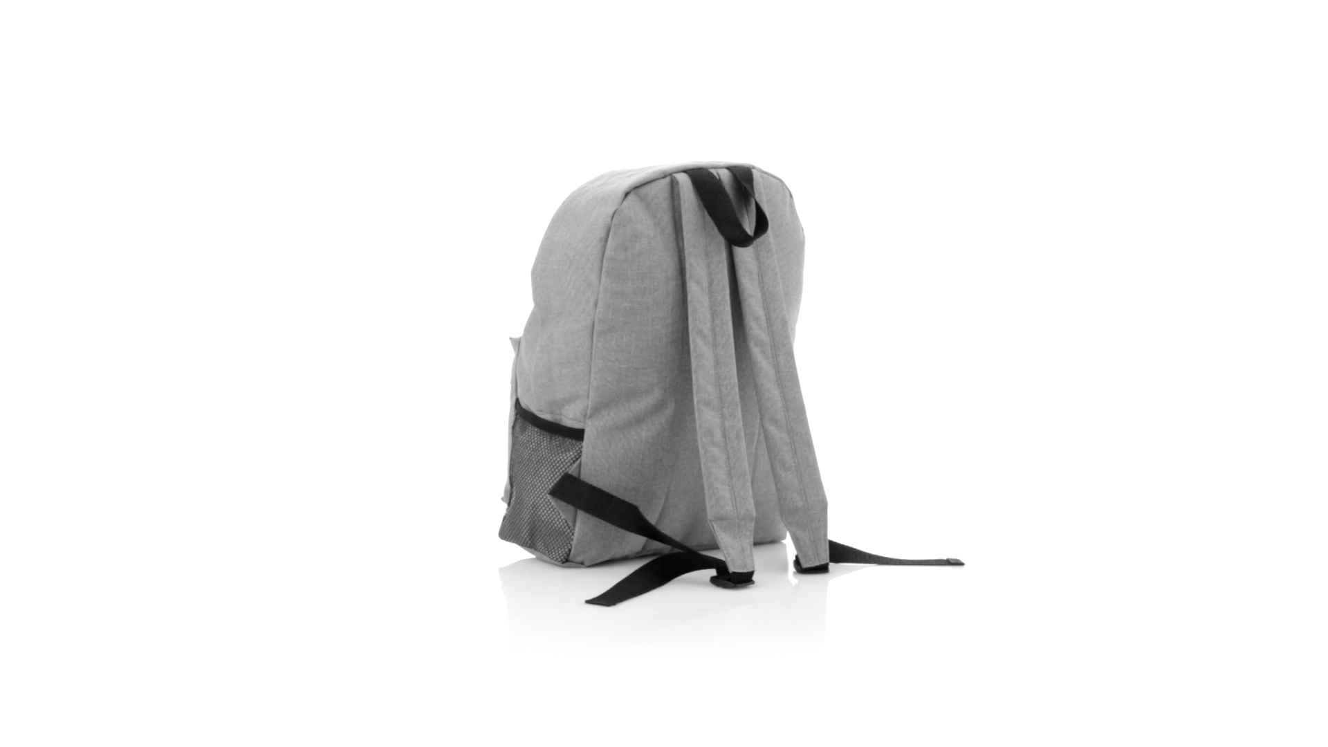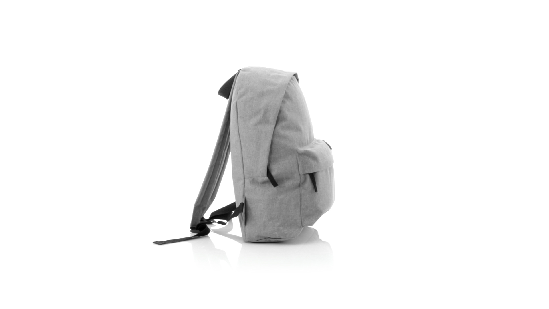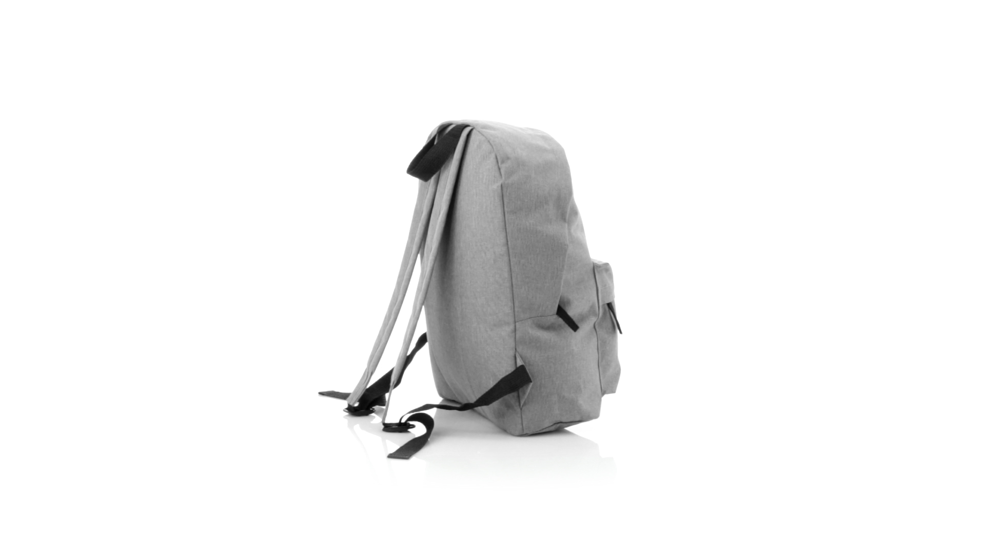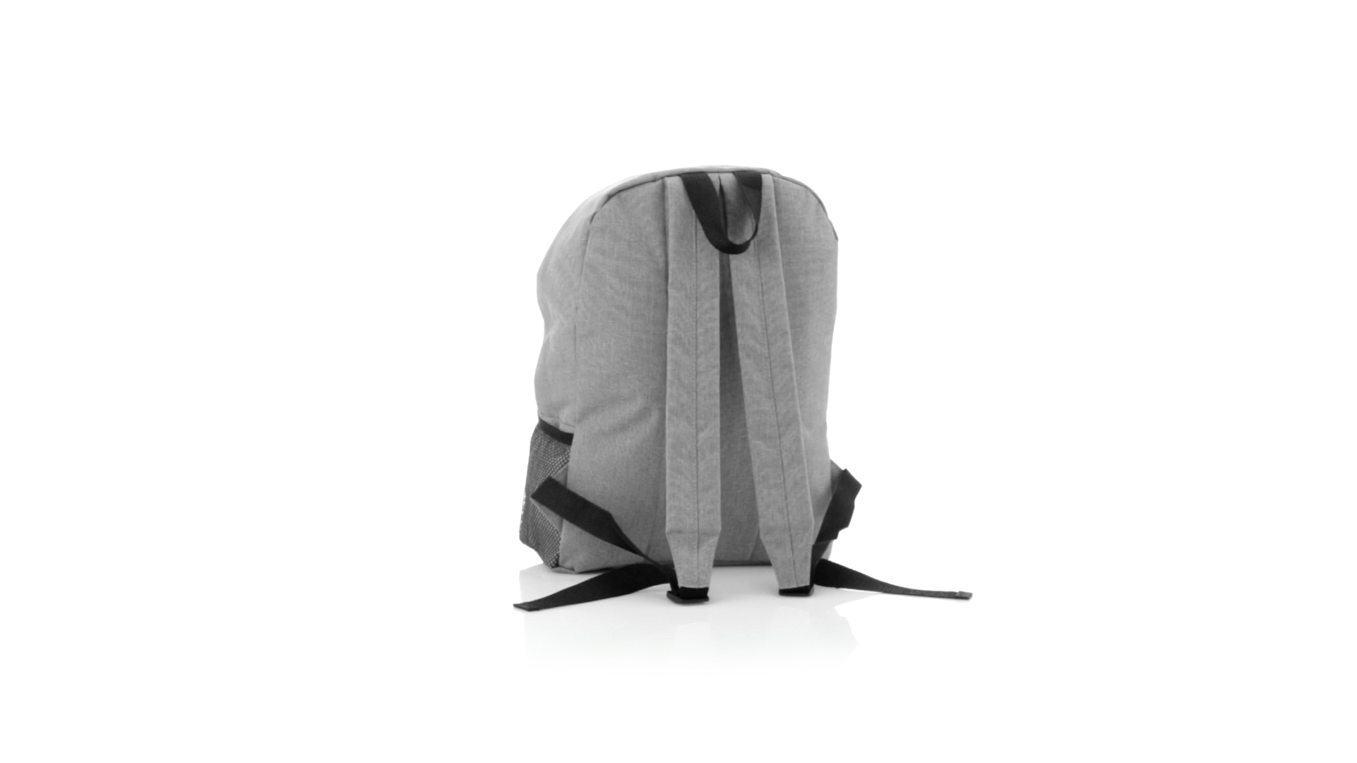 Rucksack aus elegantem 600D Polyester in Grau mit gepolstertem Rückenpanel und Schultergurten mit Polsterung. Aussentasche mit Reissverschluss, Kopfhörerausgang und praktische, elastische Netztasche an der Seite.