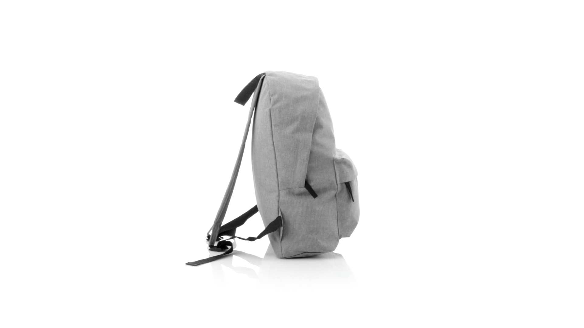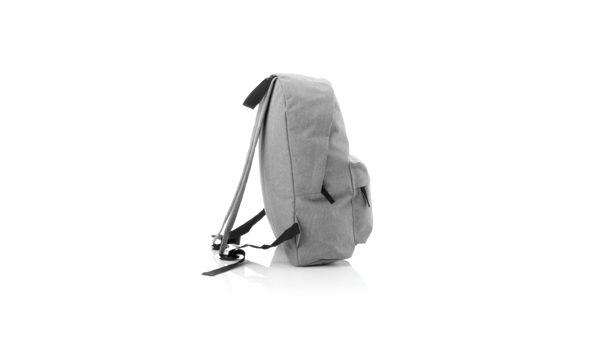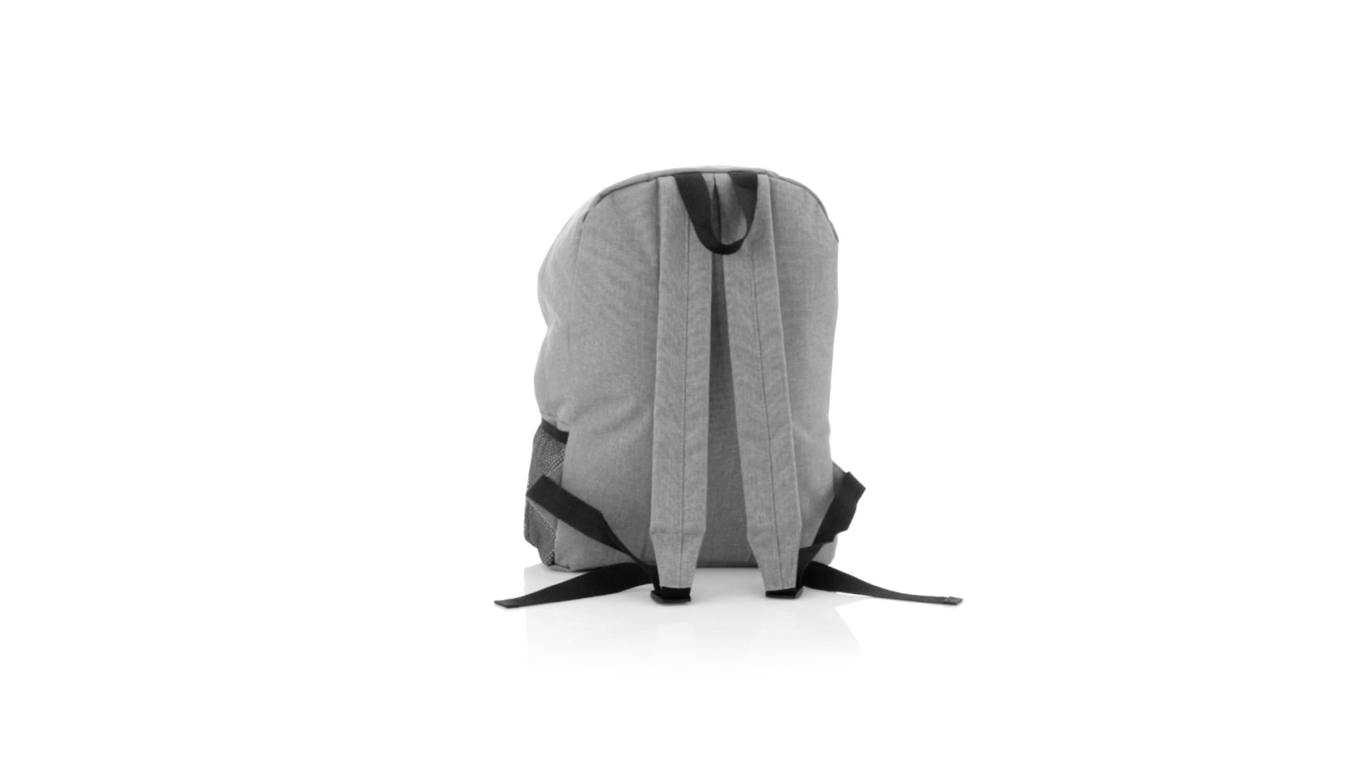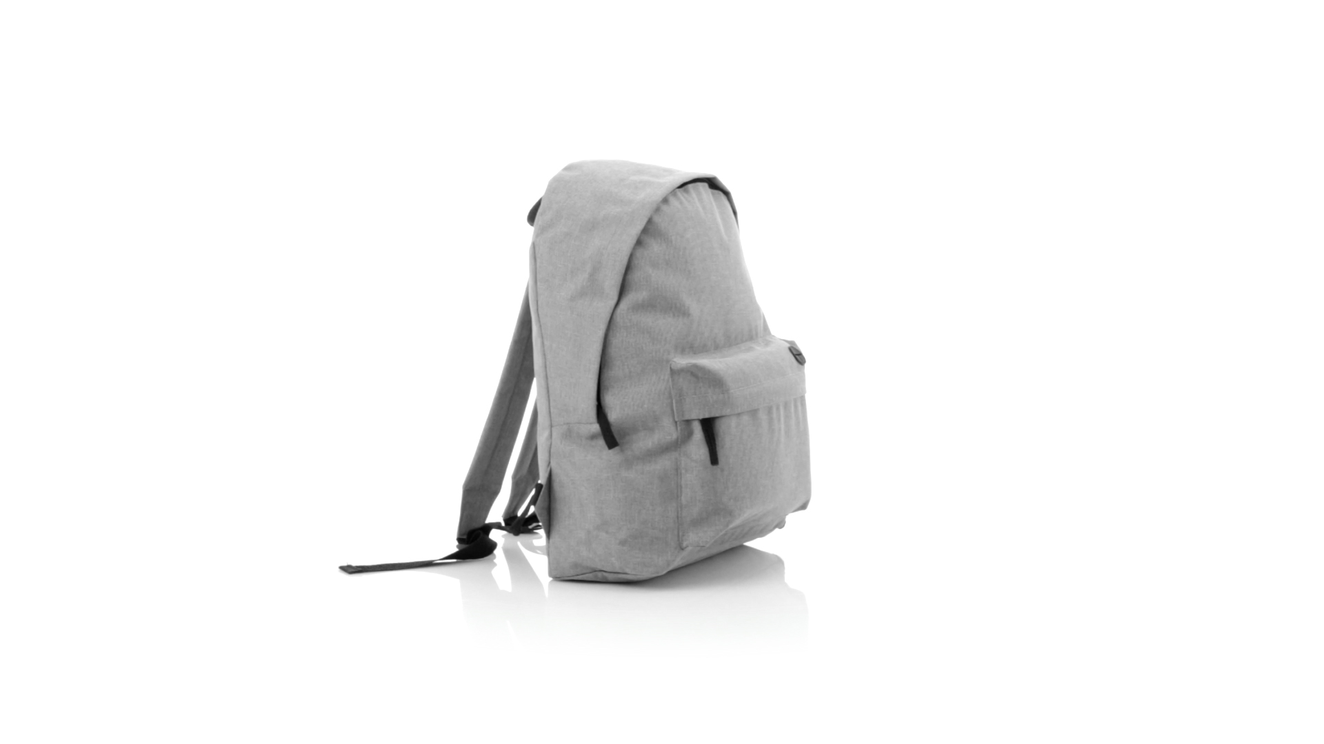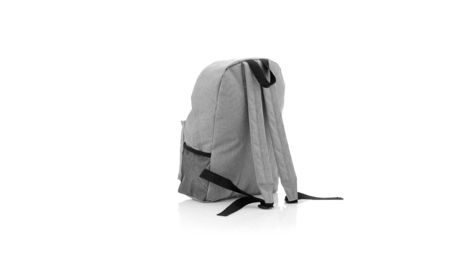 Rucksack aus elegantem 600D Polyester in Grau mit gepolstertem Rückenpanel und Schultergurten mit Polsterung. Aussentasche mit Reissverschluss, Kopfhörerausgang und praktische, elastische Netztasche an der Seite.
