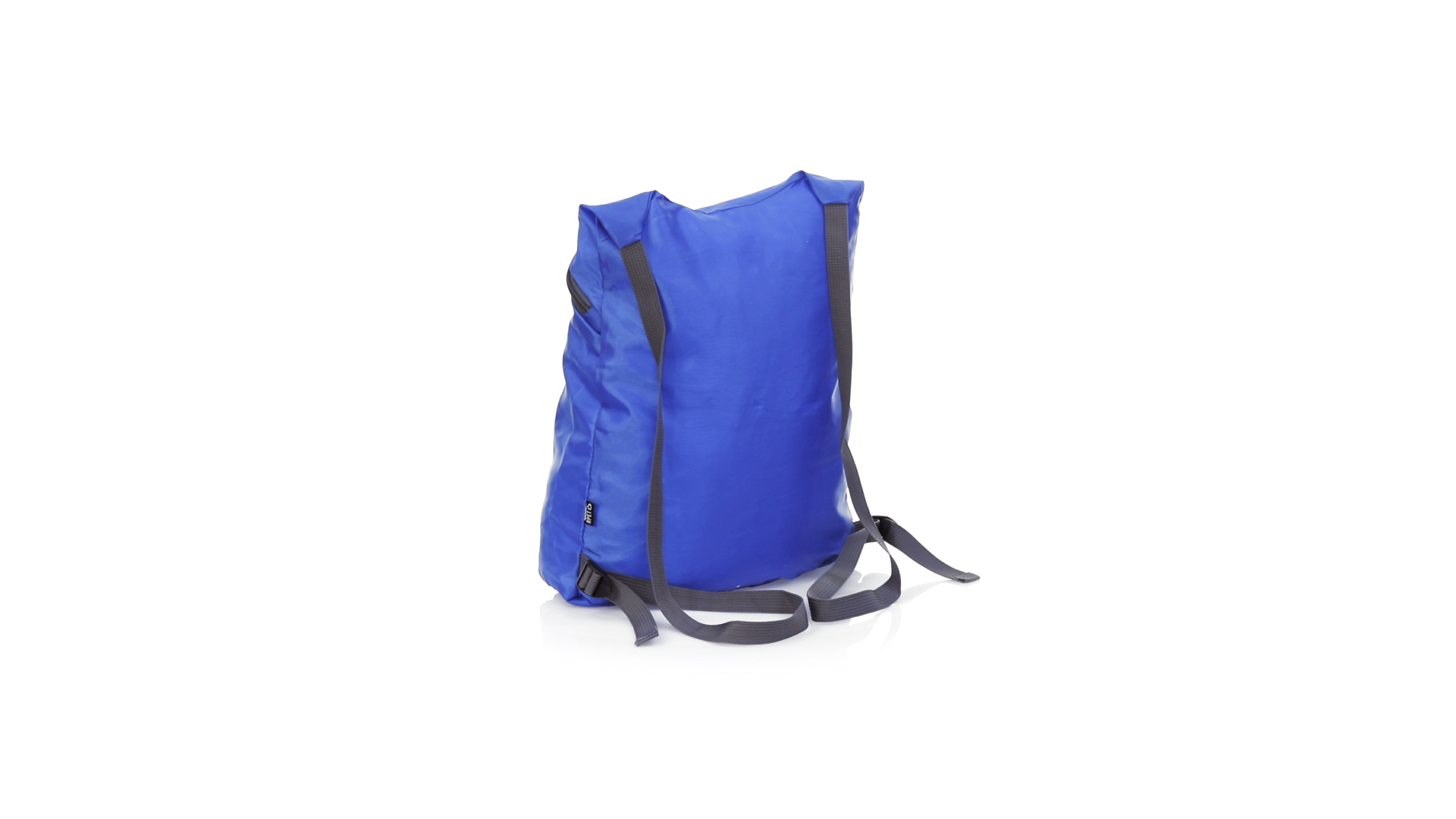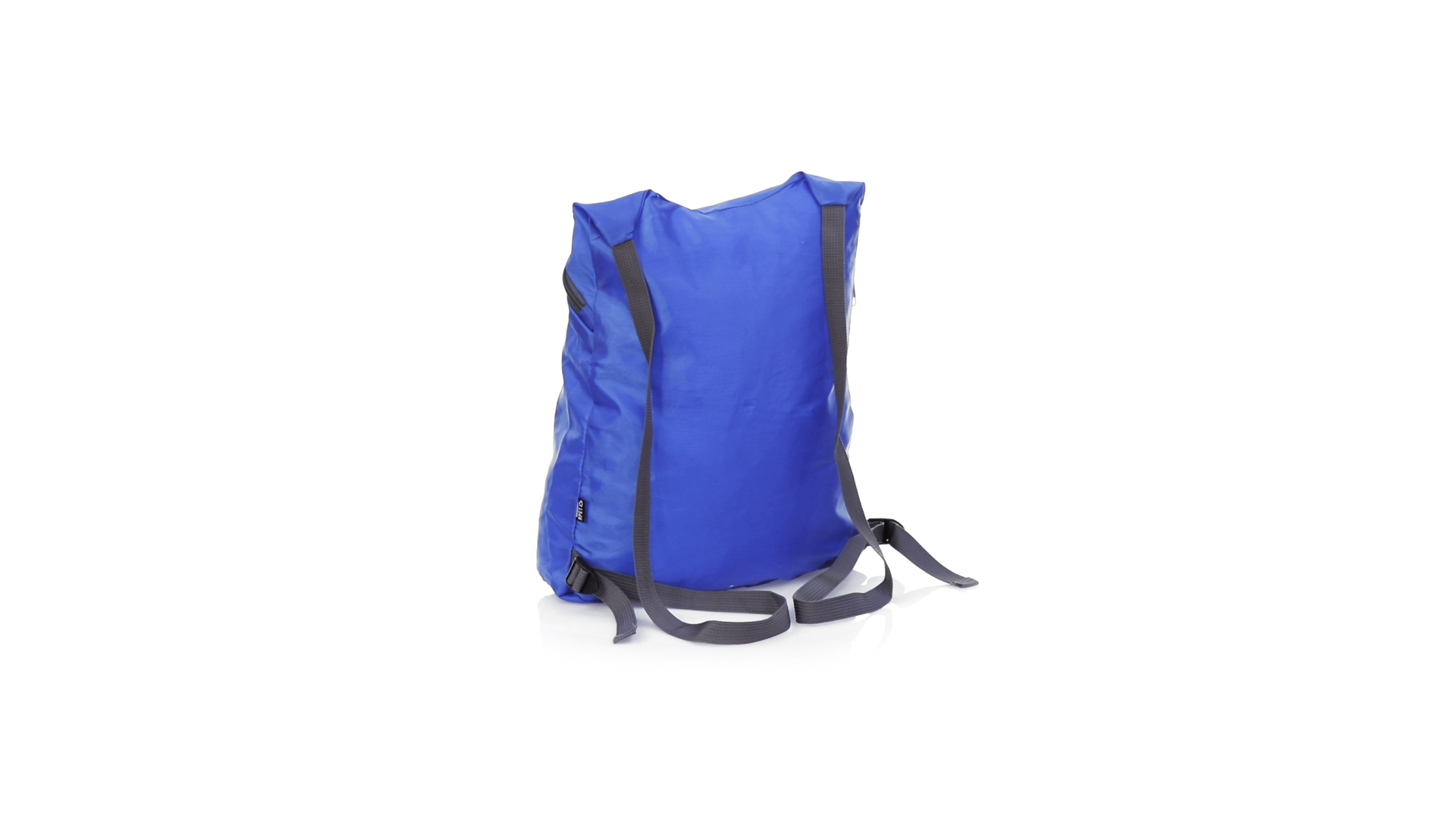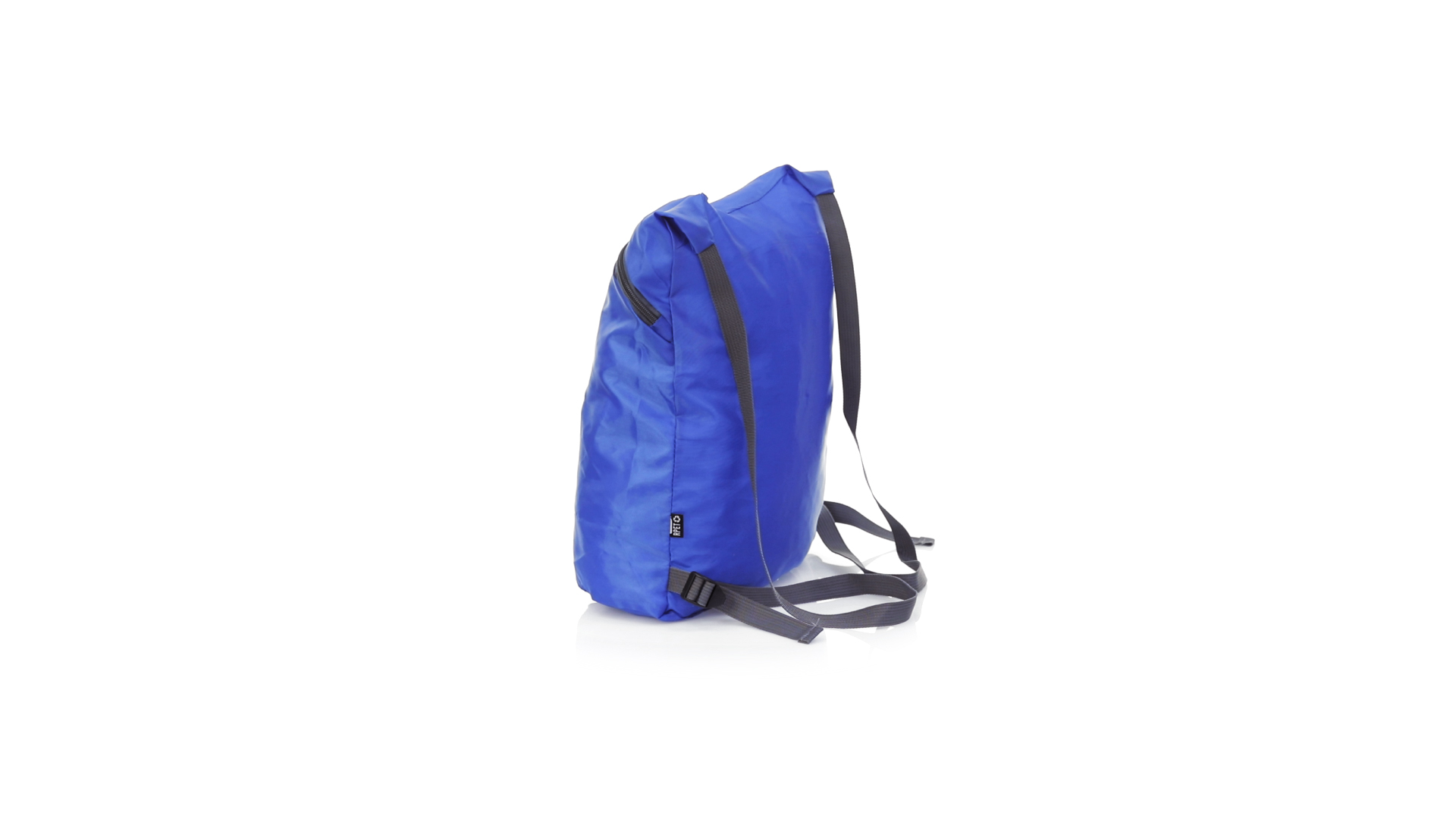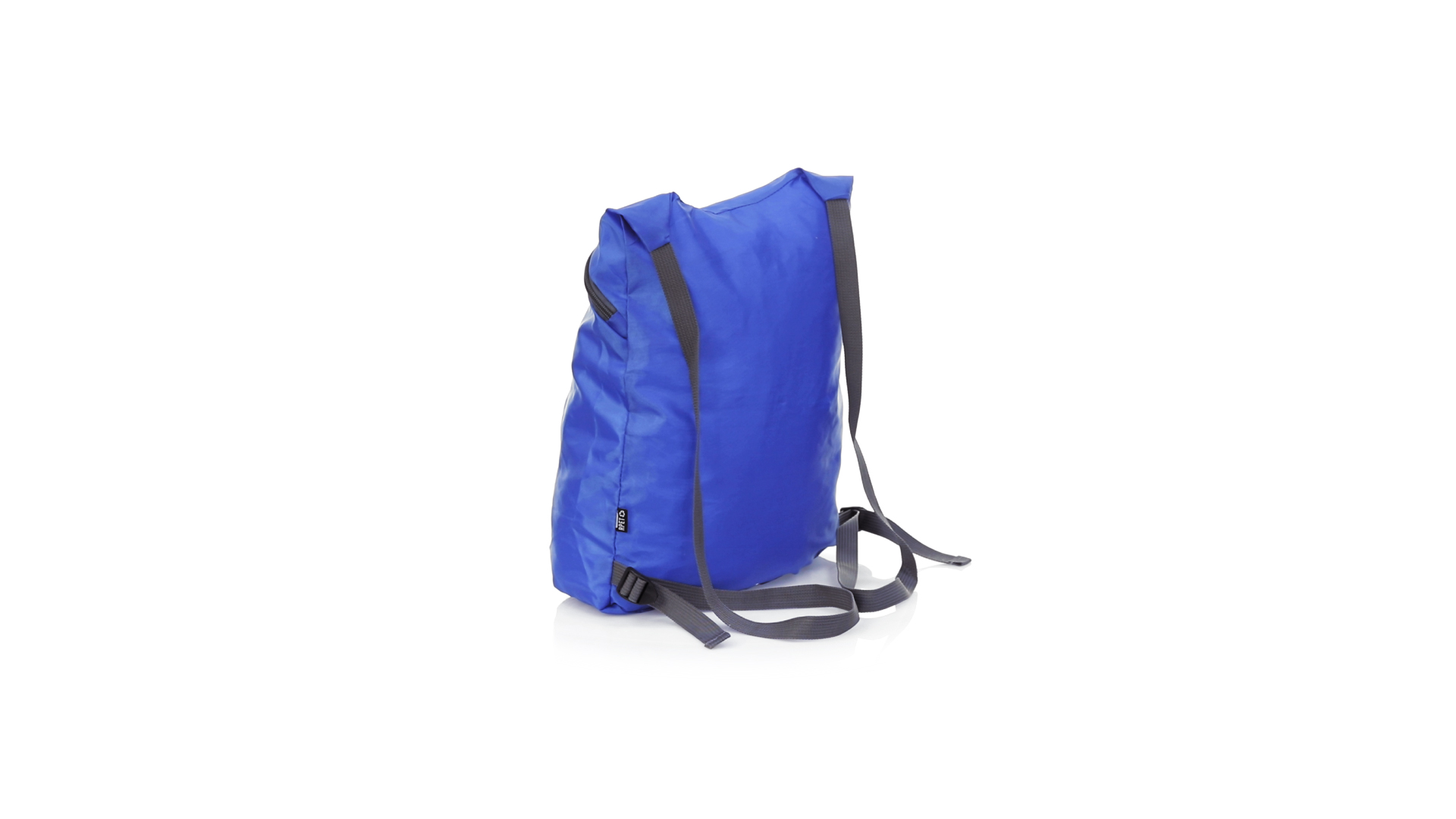 Faltbarer Rucksack aus weichem 201D RPET-Polyester, hergestellt aus recyceltem Kunststoff, um die Wiederverwendung von Plastikmüll zu fördern und die Nachhaltigkeit des Planeten zu unterstützen. Mit Reissverschluss und Fronttasche. Verstärkte Ecken, verstellbare Schultergurte und Accessoires in Grau. Kleines gefaltetes Format, mit Transportgurt und in vielen Farben erhältlich. Unverkennbares RPET auf dem Etikett.