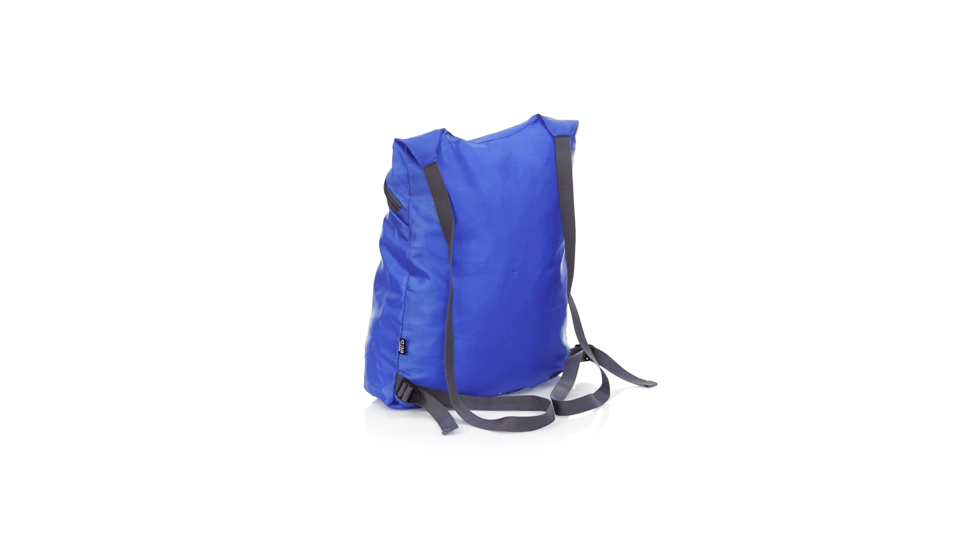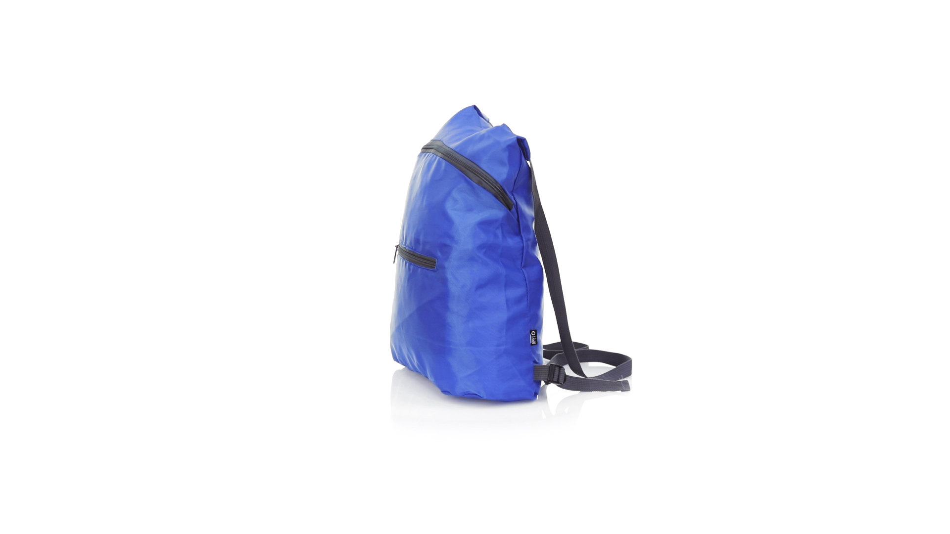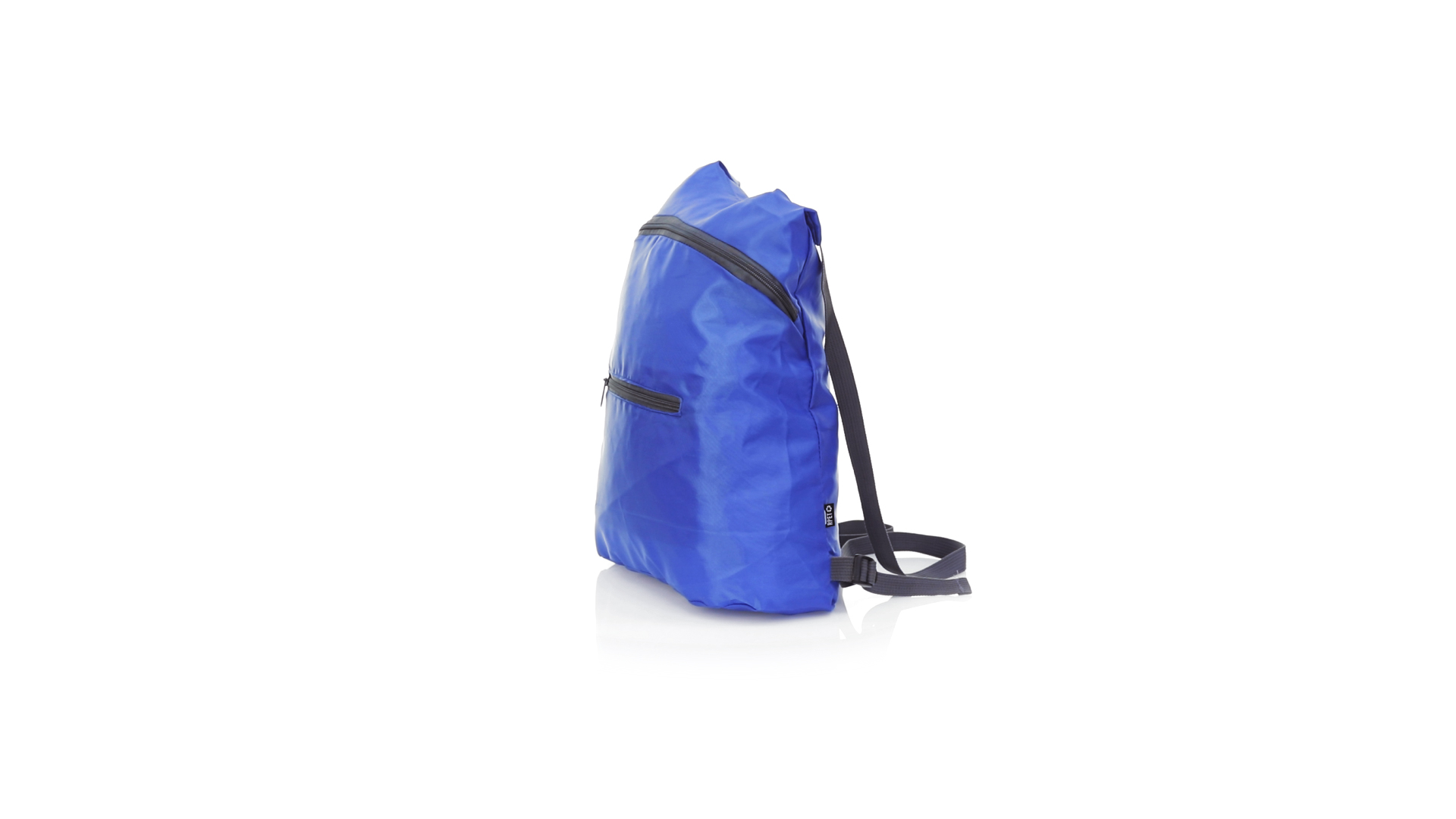 Faltbarer Rucksack aus weichem 201D RPET-Polyester, hergestellt aus recyceltem Kunststoff, um die Wiederverwendung von Plastikmüll zu fördern und die Nachhaltigkeit des Planeten zu unterstützen. Mit Reissverschluss und Fronttasche. Verstärkte Ecken, verstellbare Schultergurte und Accessoires in Grau. Kleines gefaltetes Format, mit Transportgurt und in vielen Farben erhältlich. Unverkennbares RPET auf dem Etikett.