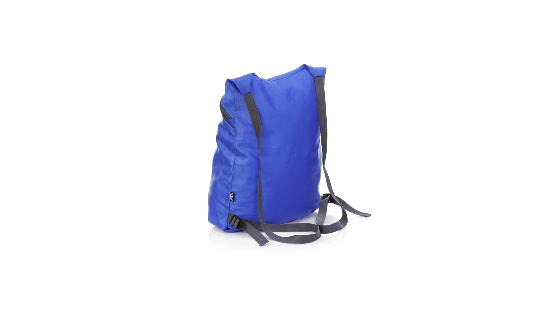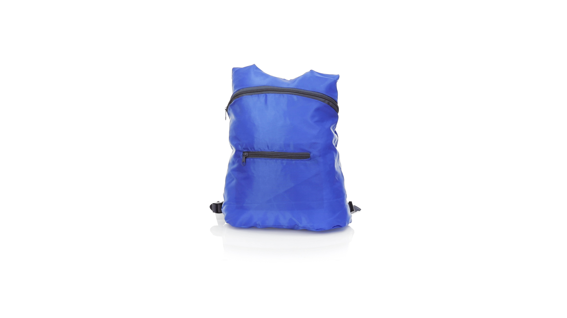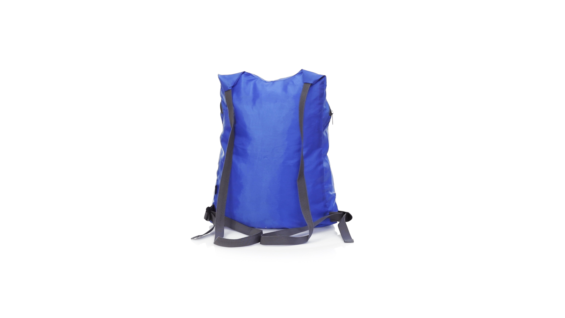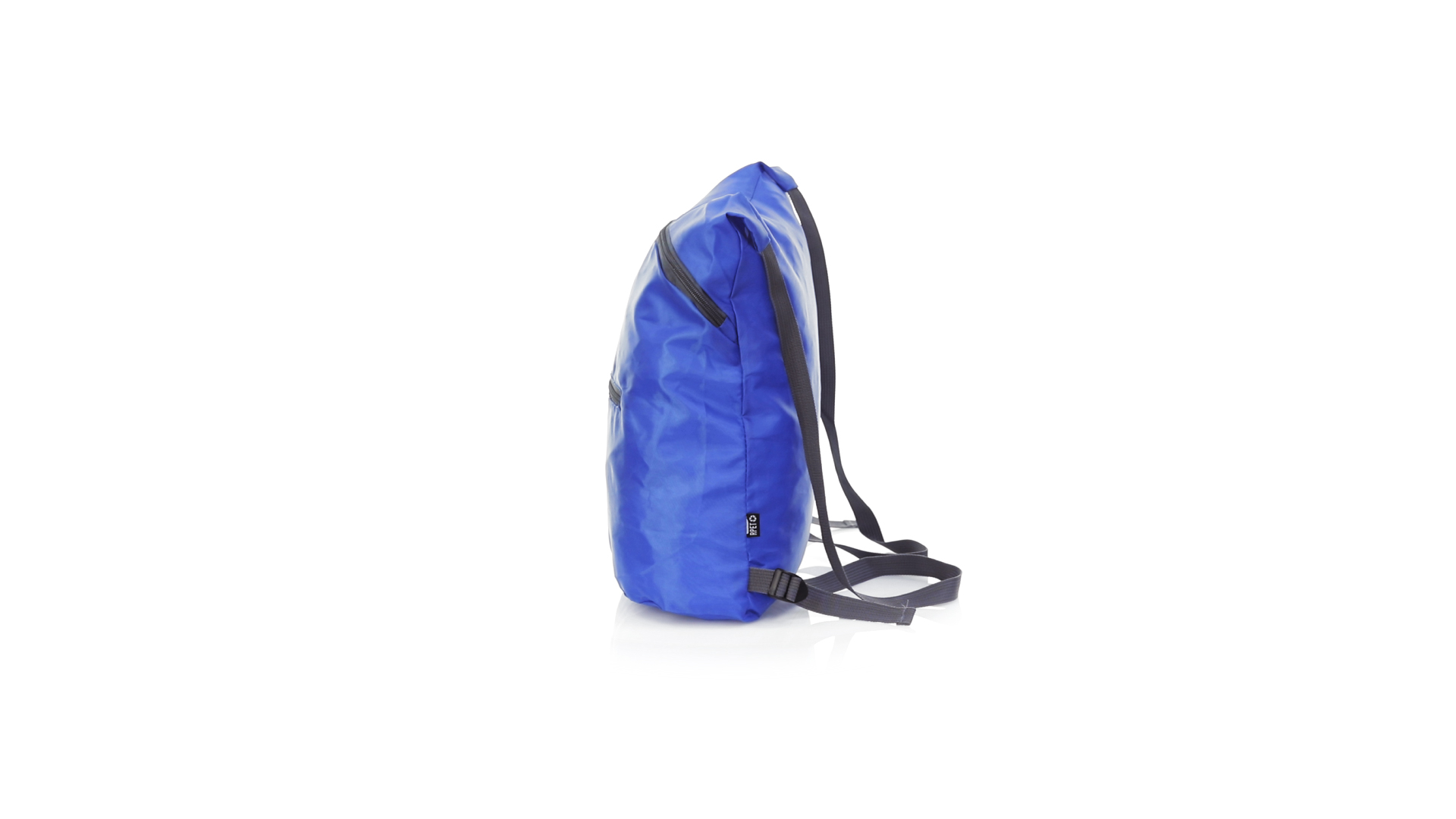 Faltbarer Rucksack aus weichem 201D RPET-Polyester, hergestellt aus recyceltem Kunststoff, um die Wiederverwendung von Plastikmüll zu fördern und die Nachhaltigkeit des Planeten zu unterstützen. Mit Reissverschluss und Fronttasche. Verstärkte Ecken, verstellbare Schultergurte und Accessoires in Grau. Kleines gefaltetes Format, mit Transportgurt und in vielen Farben erhältlich. Unverkennbares RPET auf dem Etikett.
