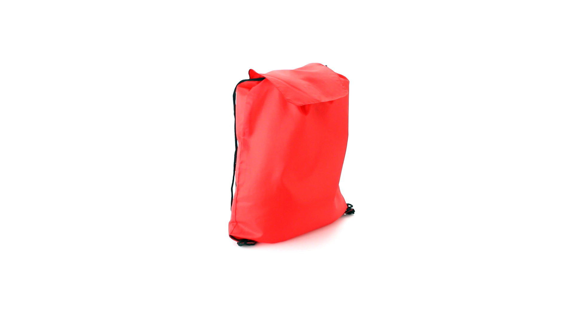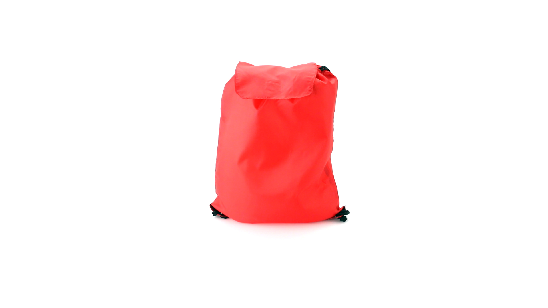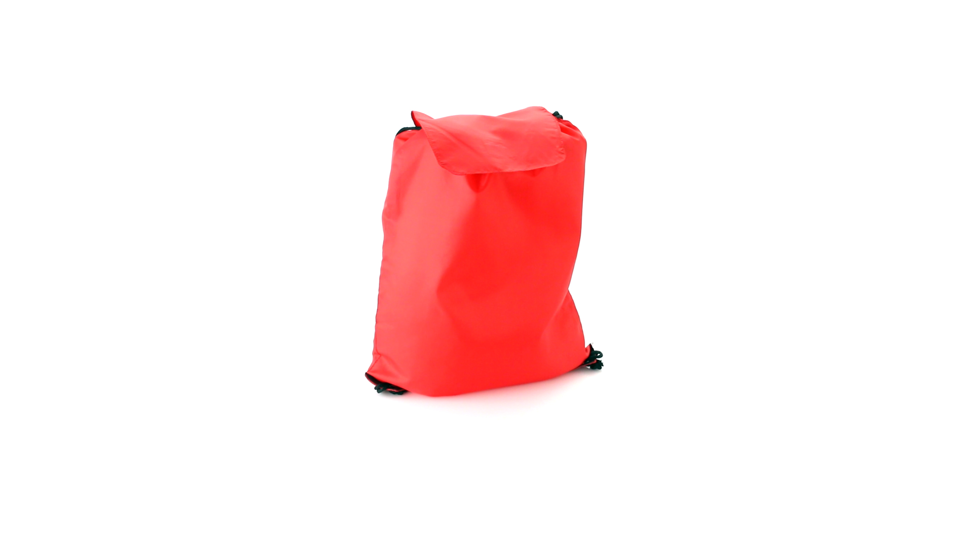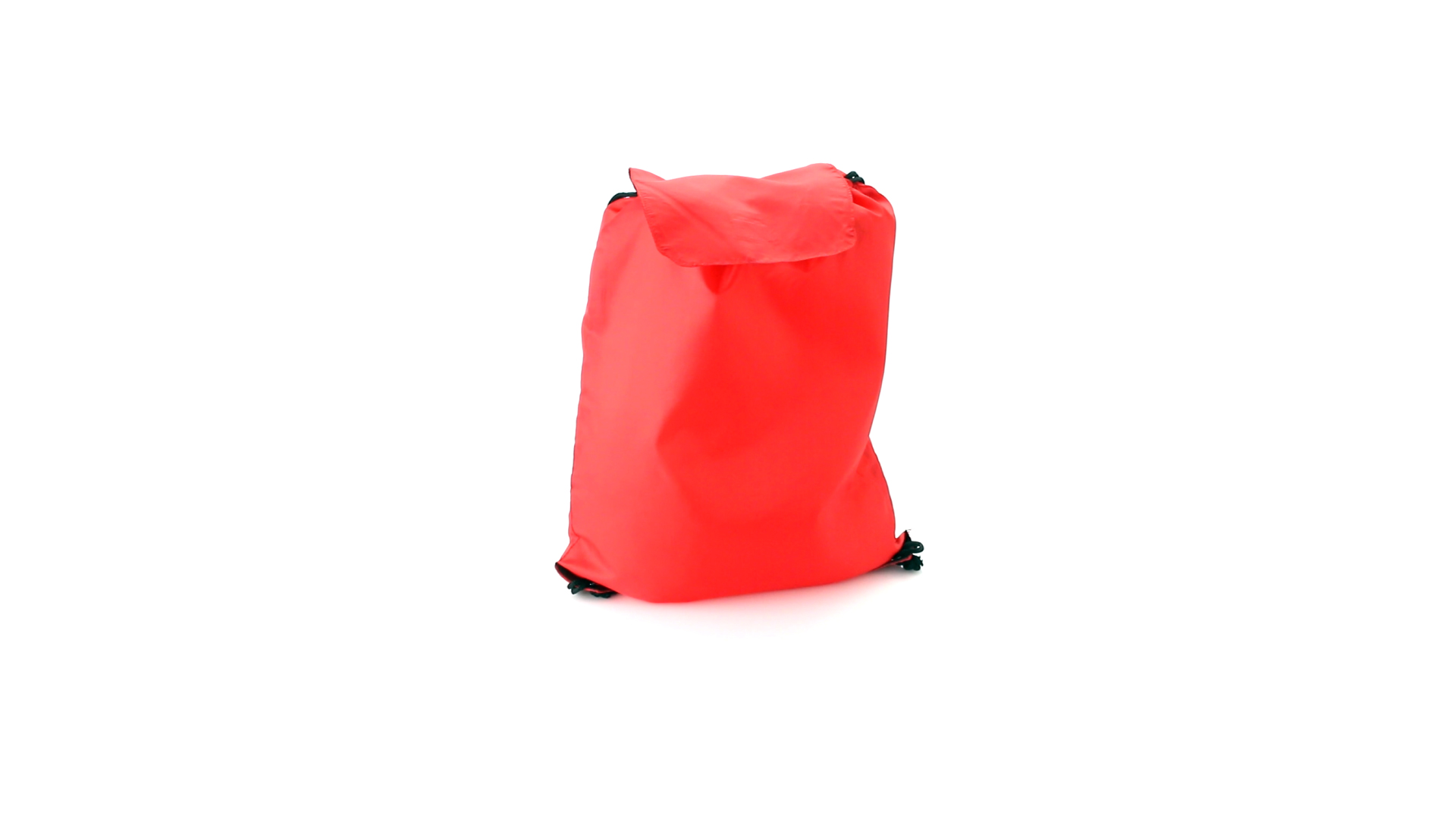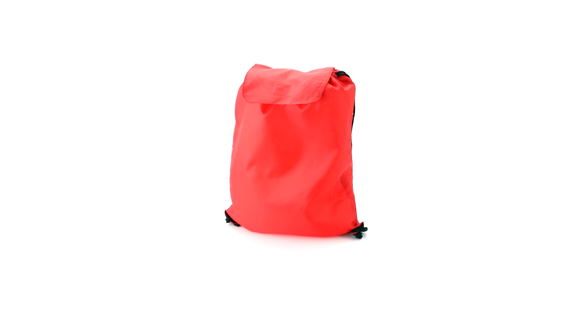 Rucksack mit Kordelzug aus weichem 190T Polyester in vielen lebendigen Farben. Mit Klettverschlussklappe, schwarzen Zugbändern und Ecken mit Metallösen und Kunstlederverstärkung.