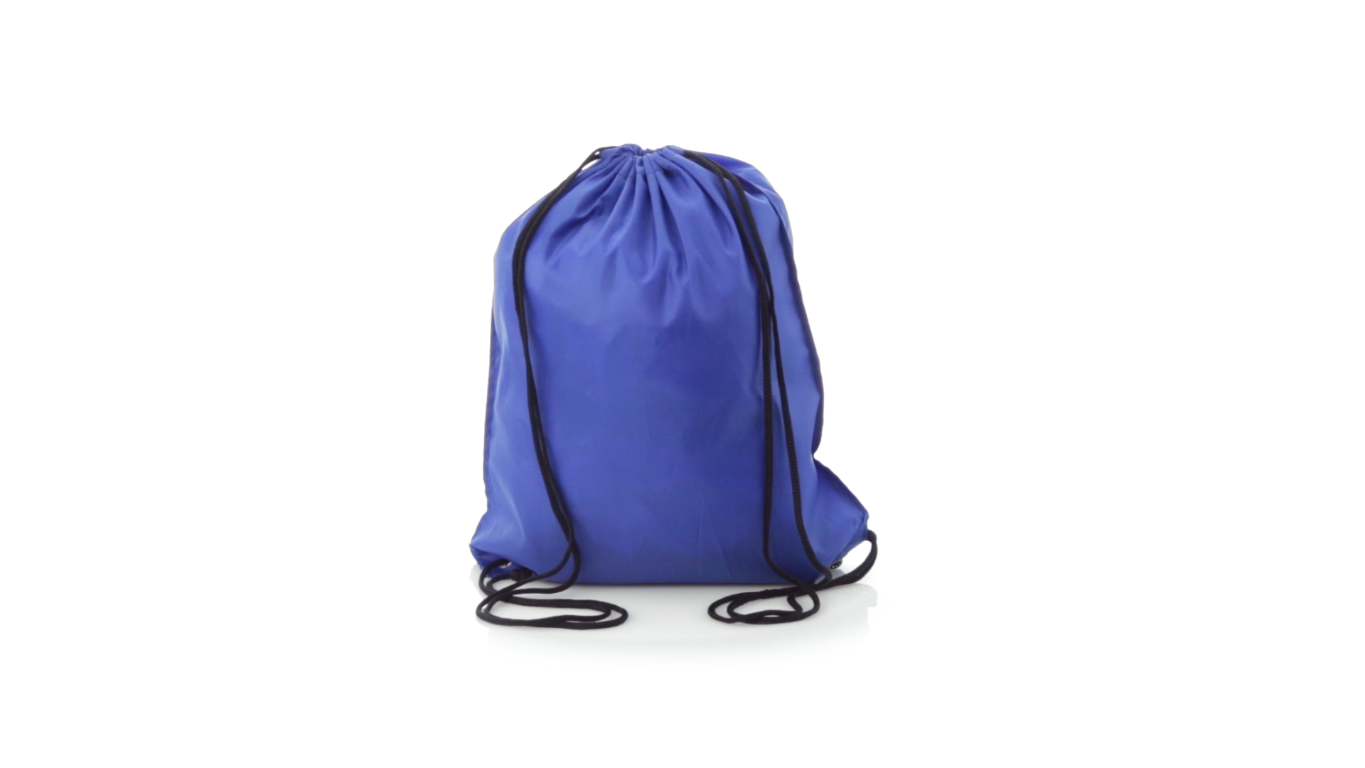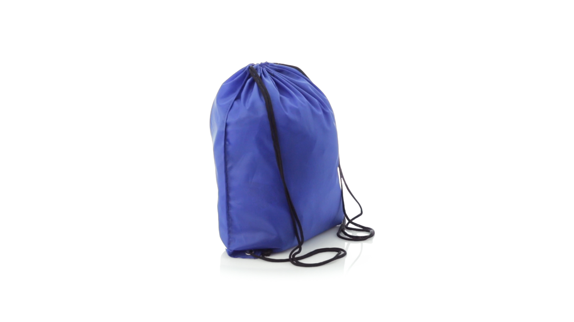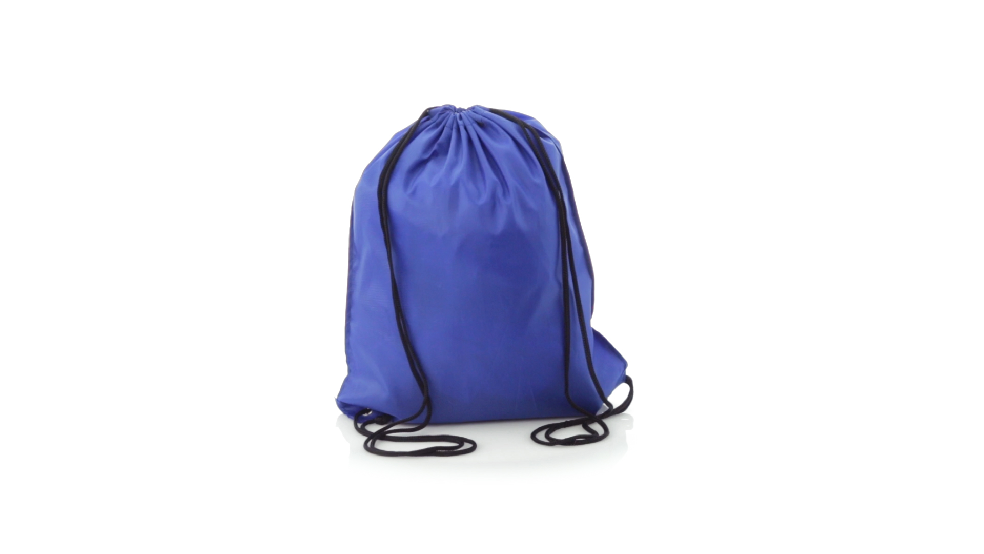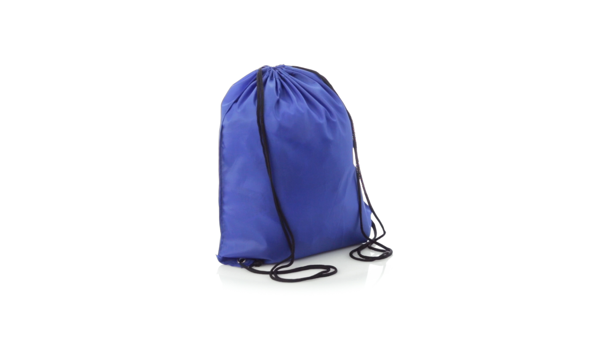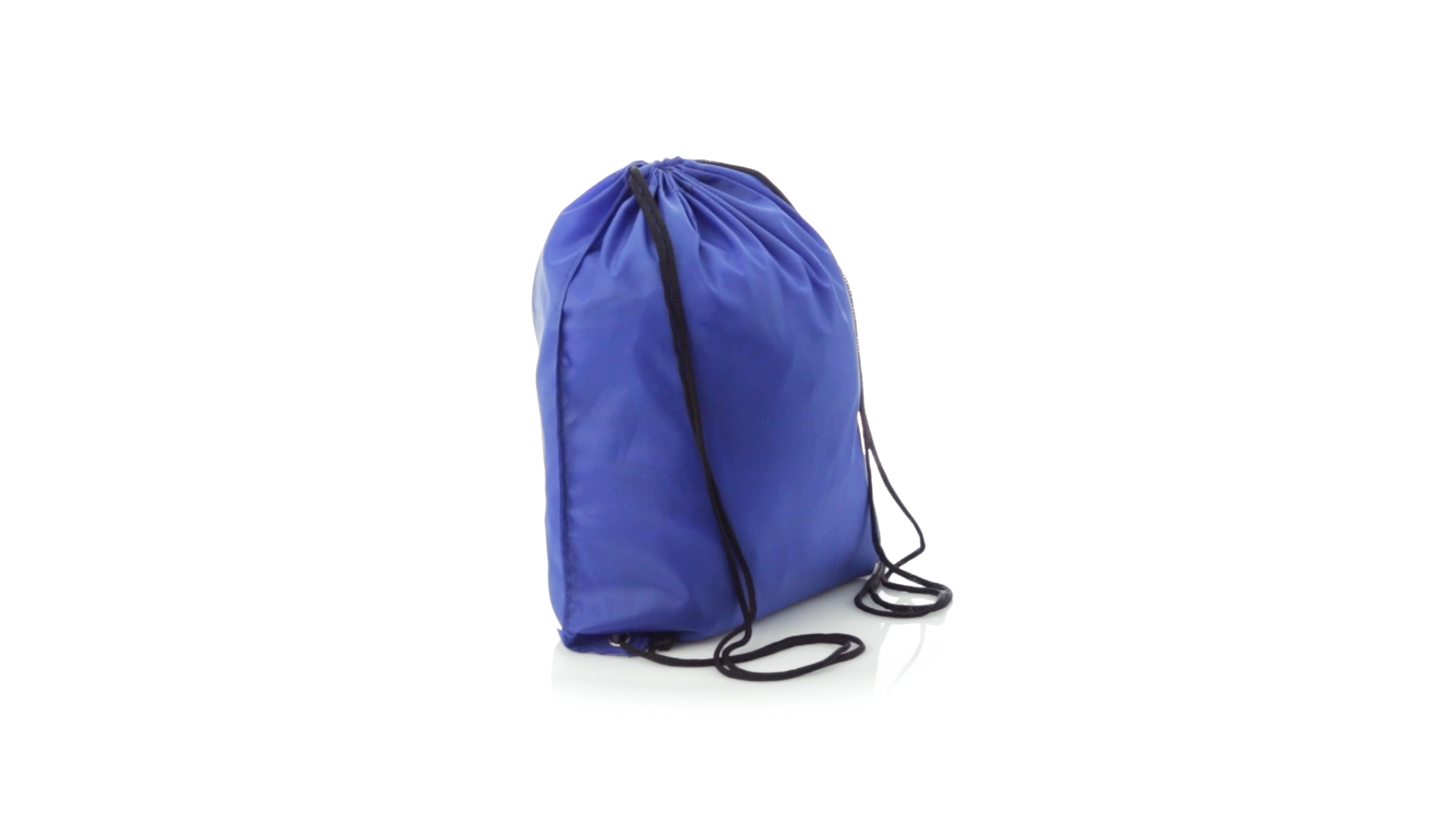 Rucksack mit Kordelzug für Kinder aus weichem 210T Polyester in kräftigen Farben. Mit Zugbändern in Schwarz und Ecken mit Metallösen zur Verstärkung.