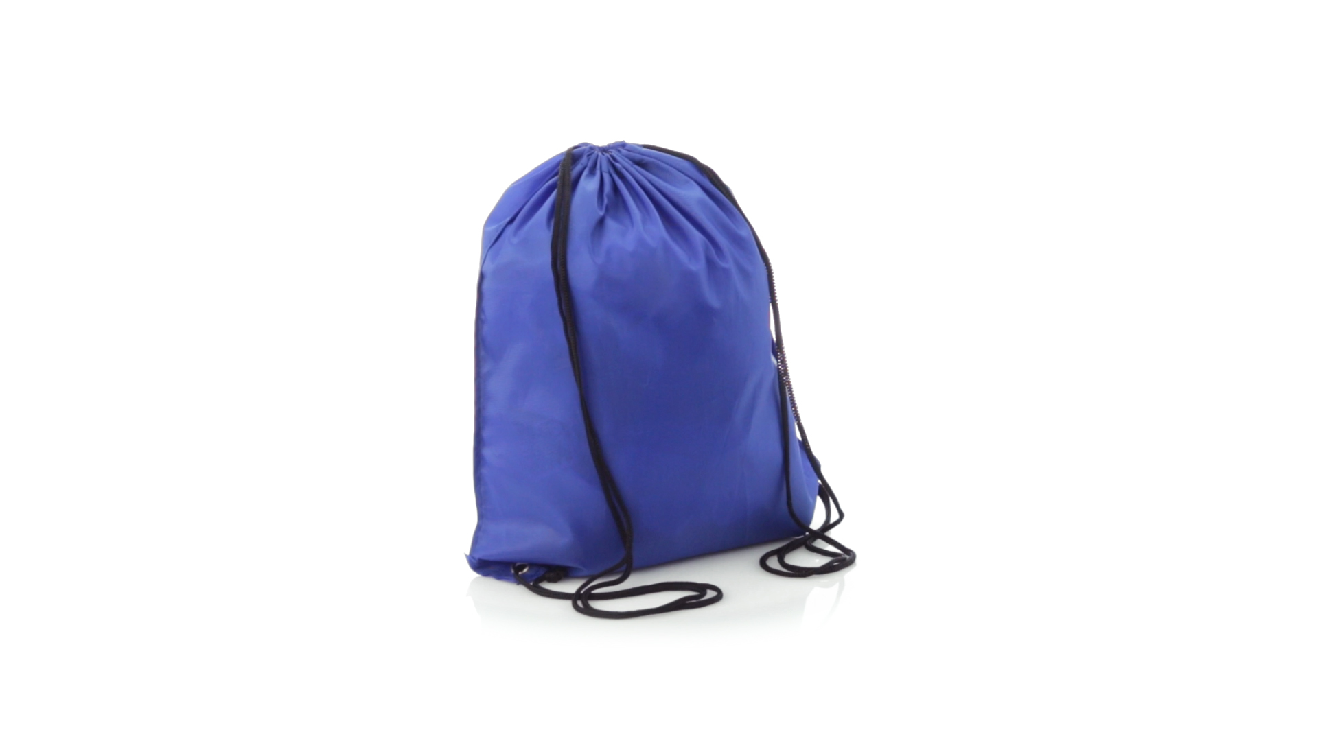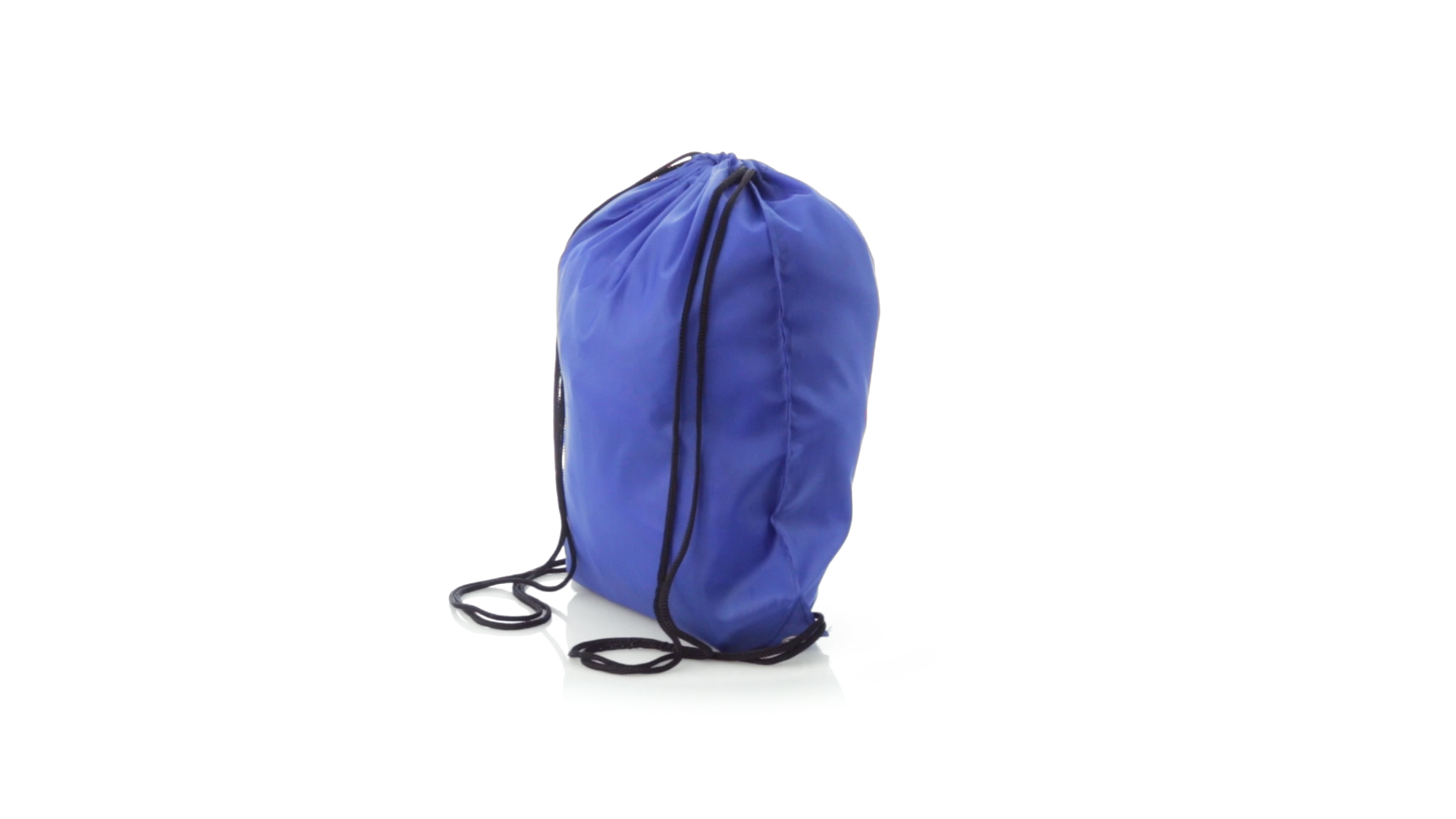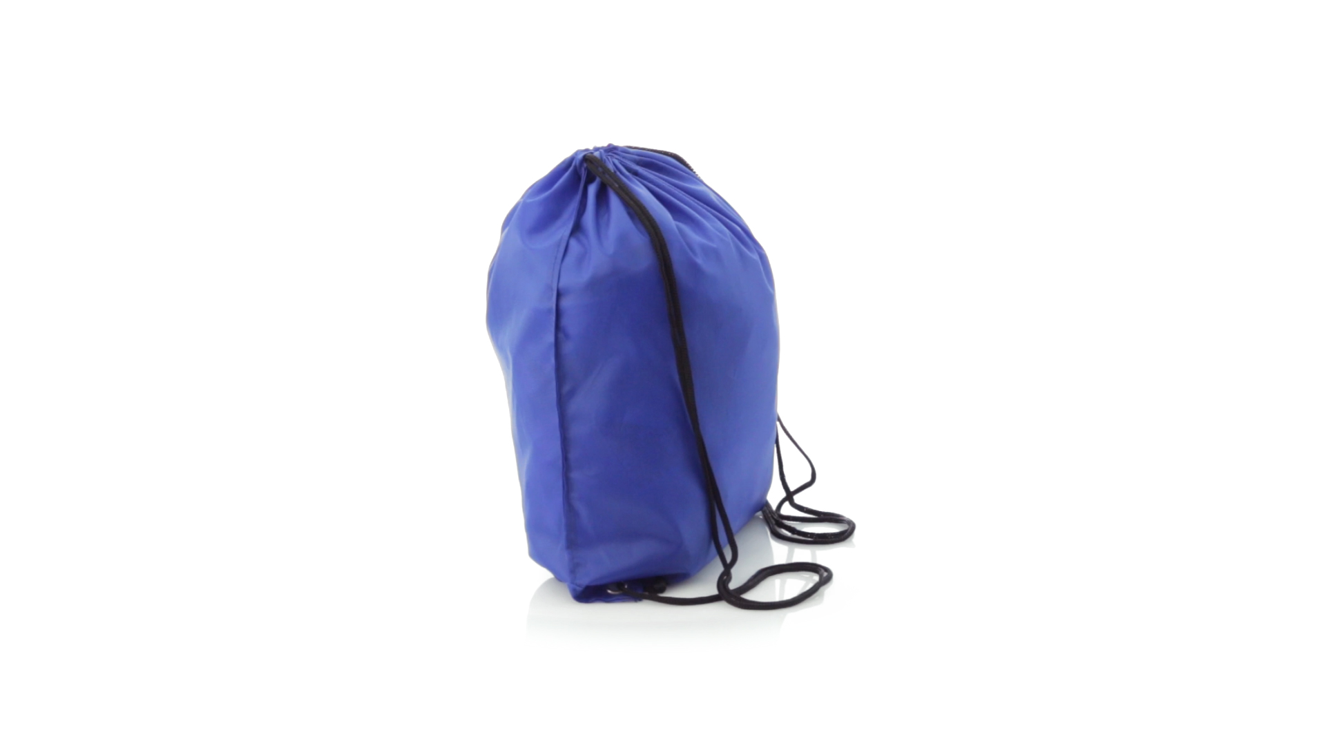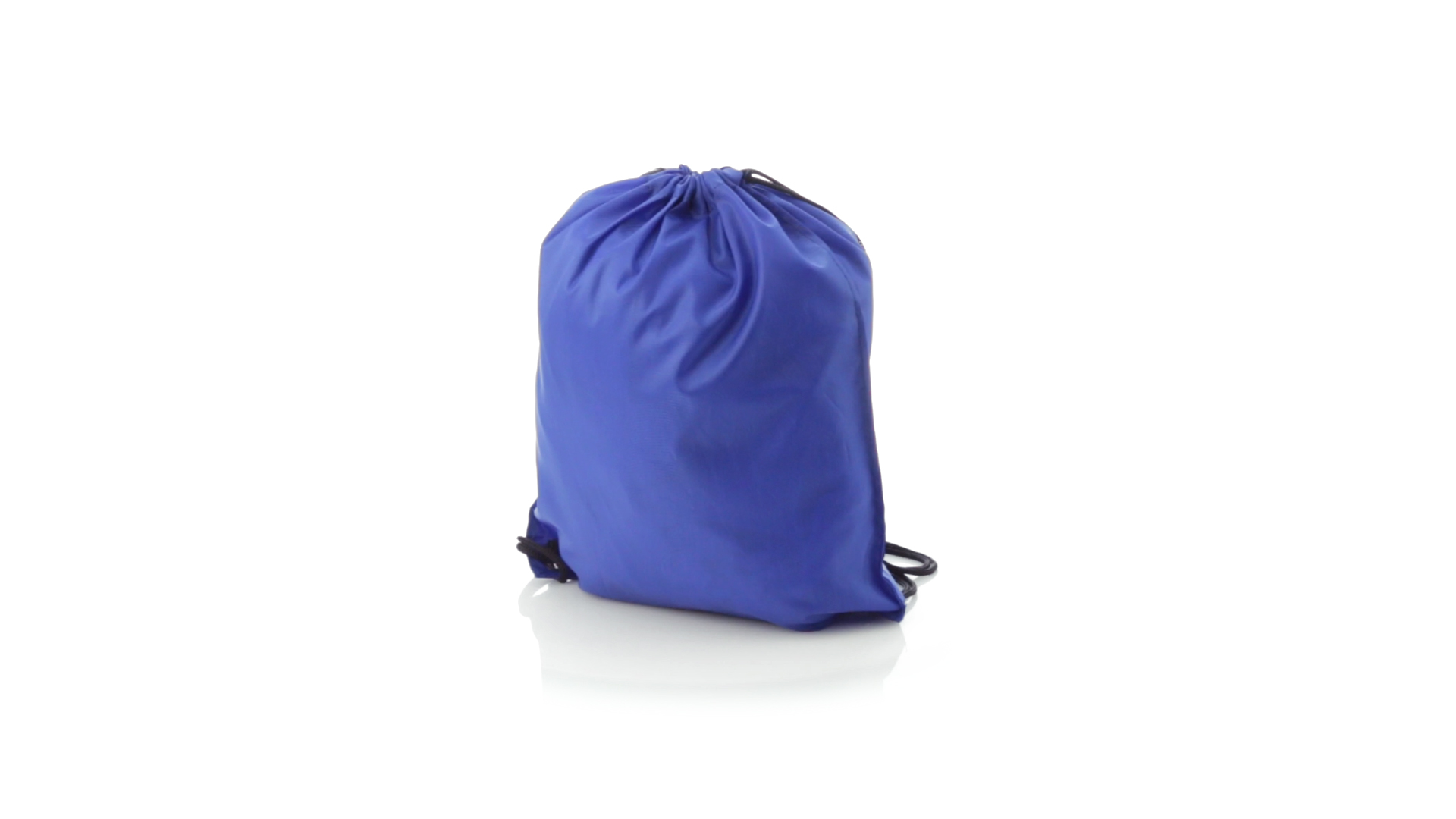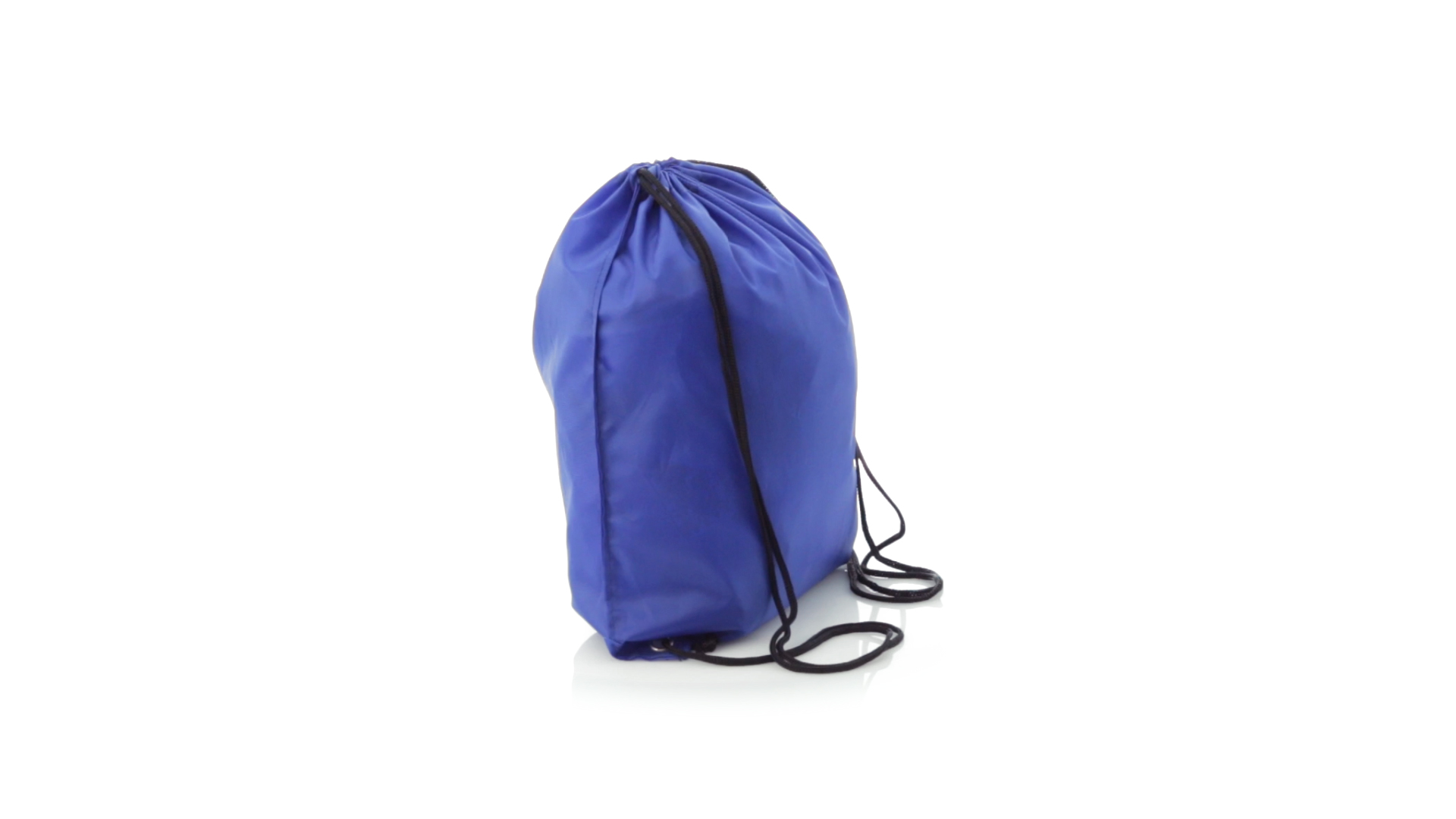 Rucksack mit Kordelzug für Kinder aus weichem 210T Polyester in kräftigen Farben. Mit Zugbändern in Schwarz und Ecken mit Metallösen zur Verstärkung.