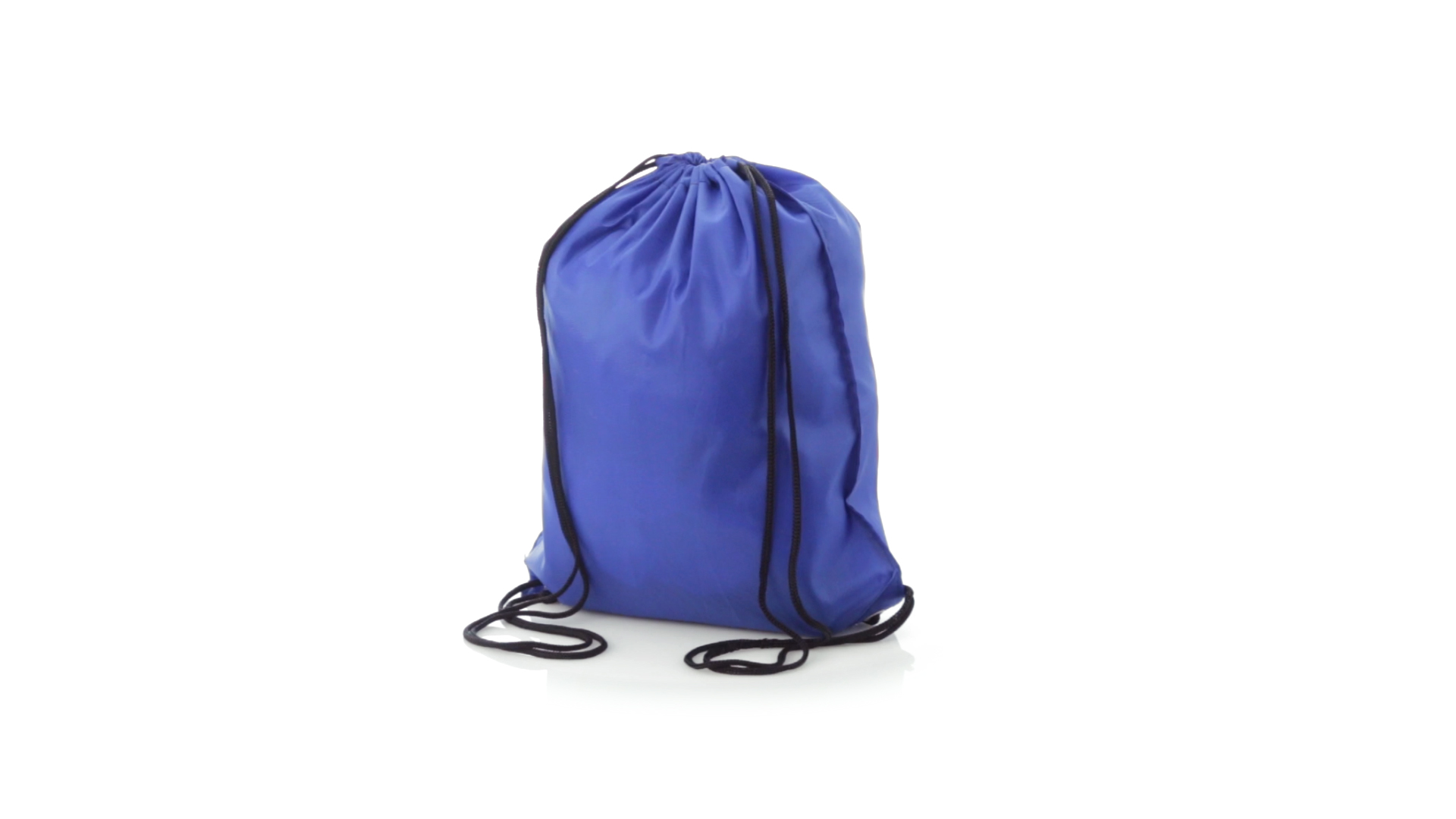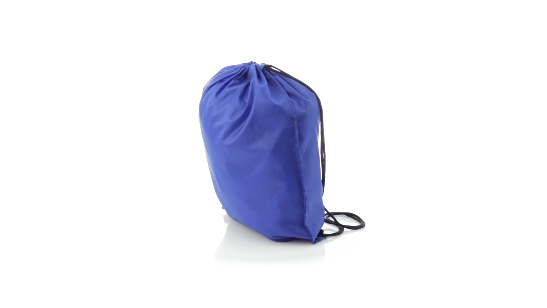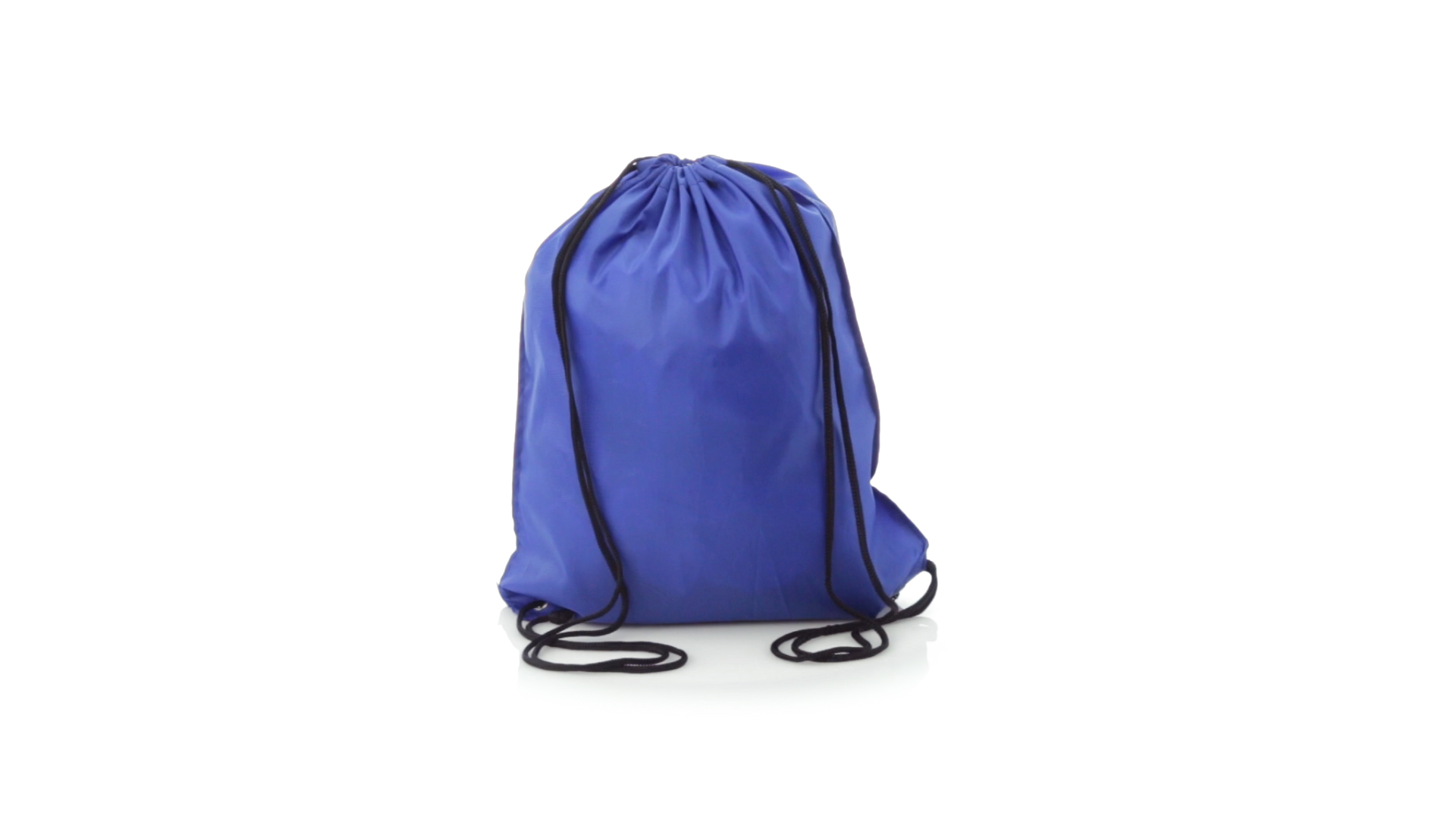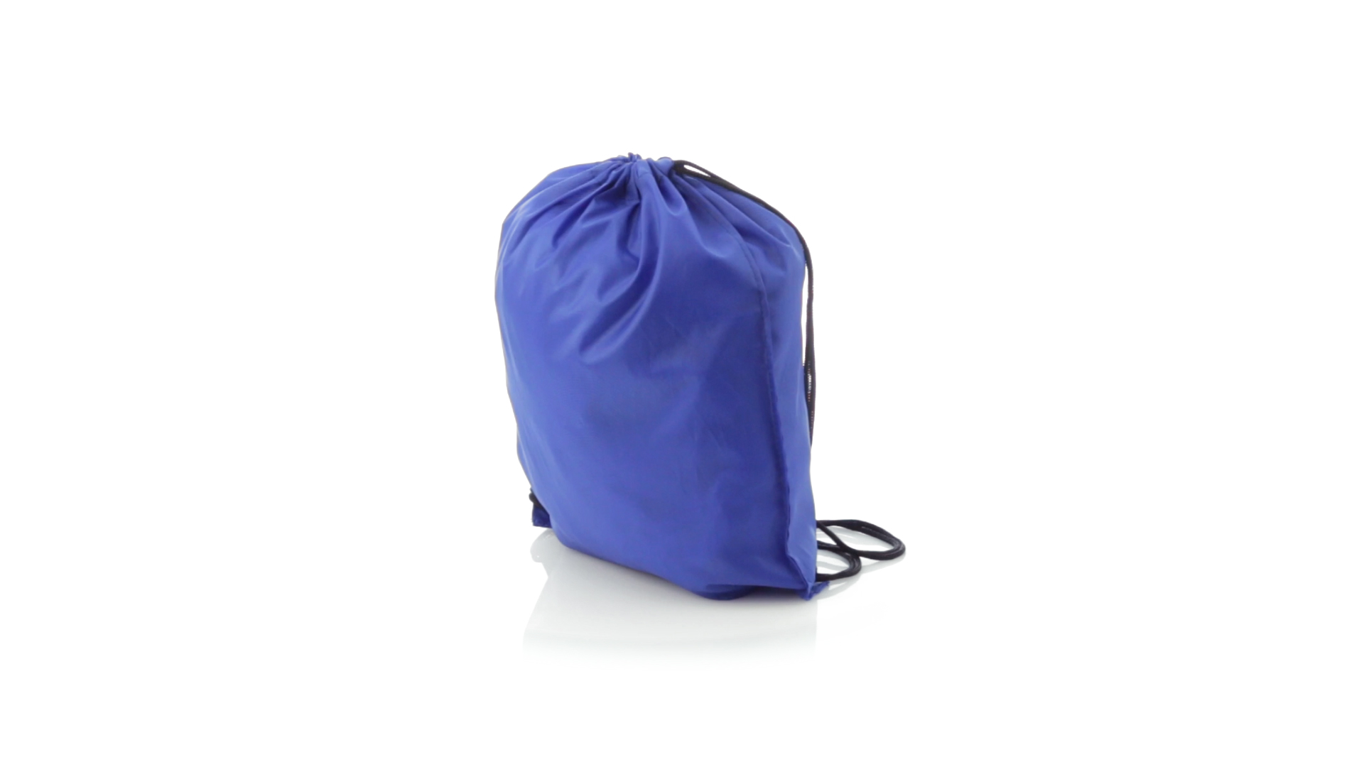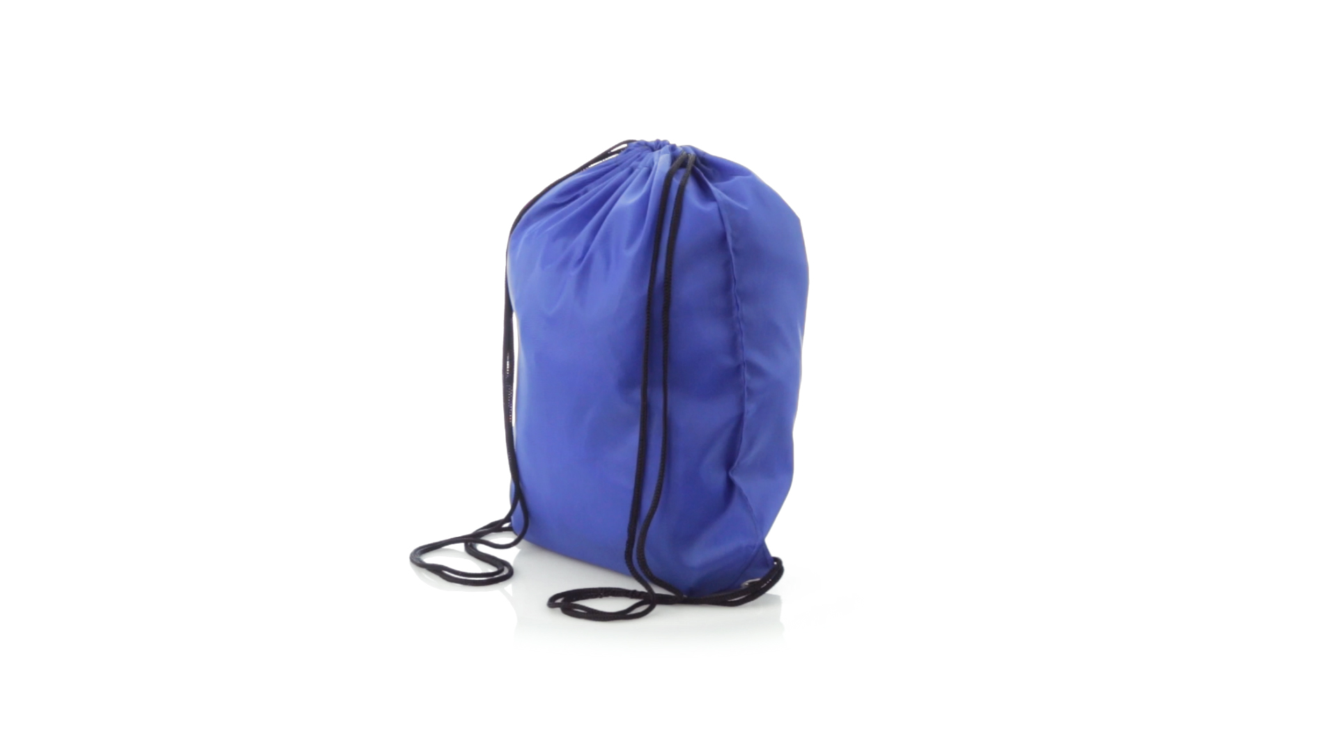 Rucksack mit Kordelzug für Kinder aus weichem 210T Polyester in kräftigen Farben. Mit Zugbändern in Schwarz und Ecken mit Metallösen zur Verstärkung.