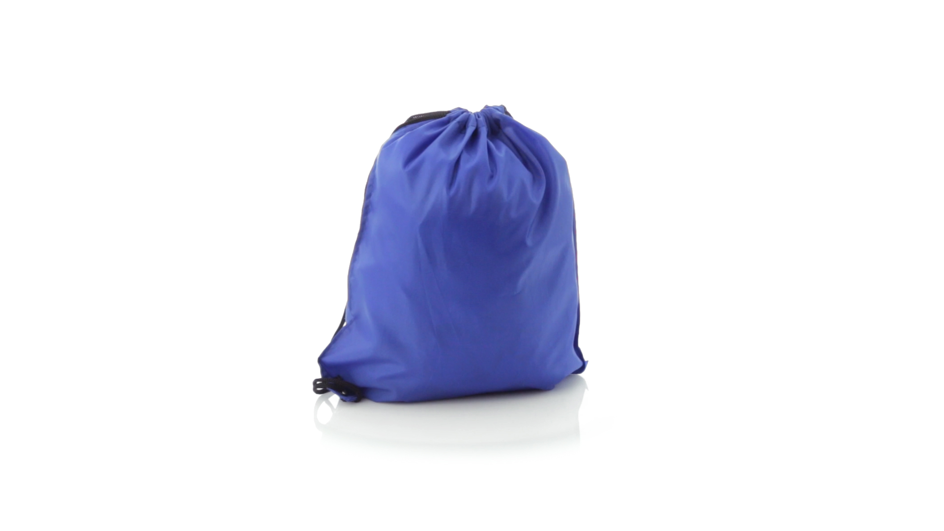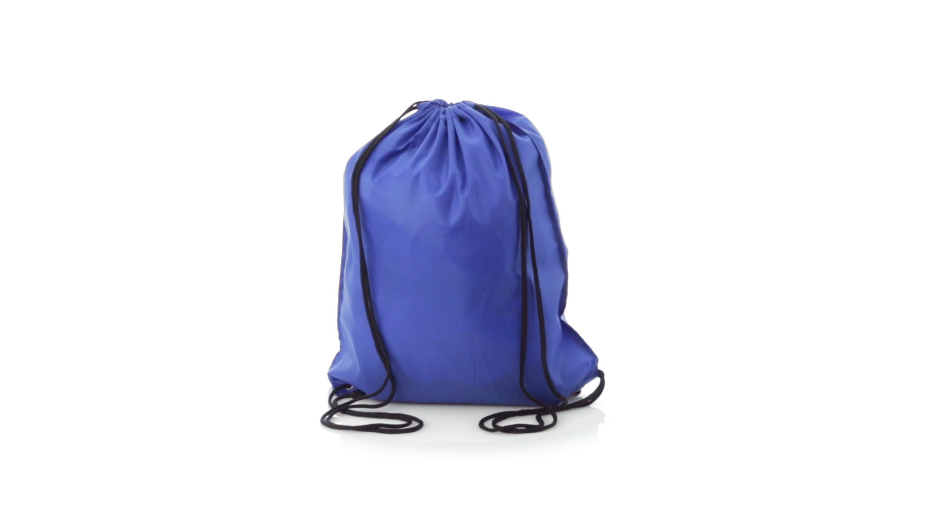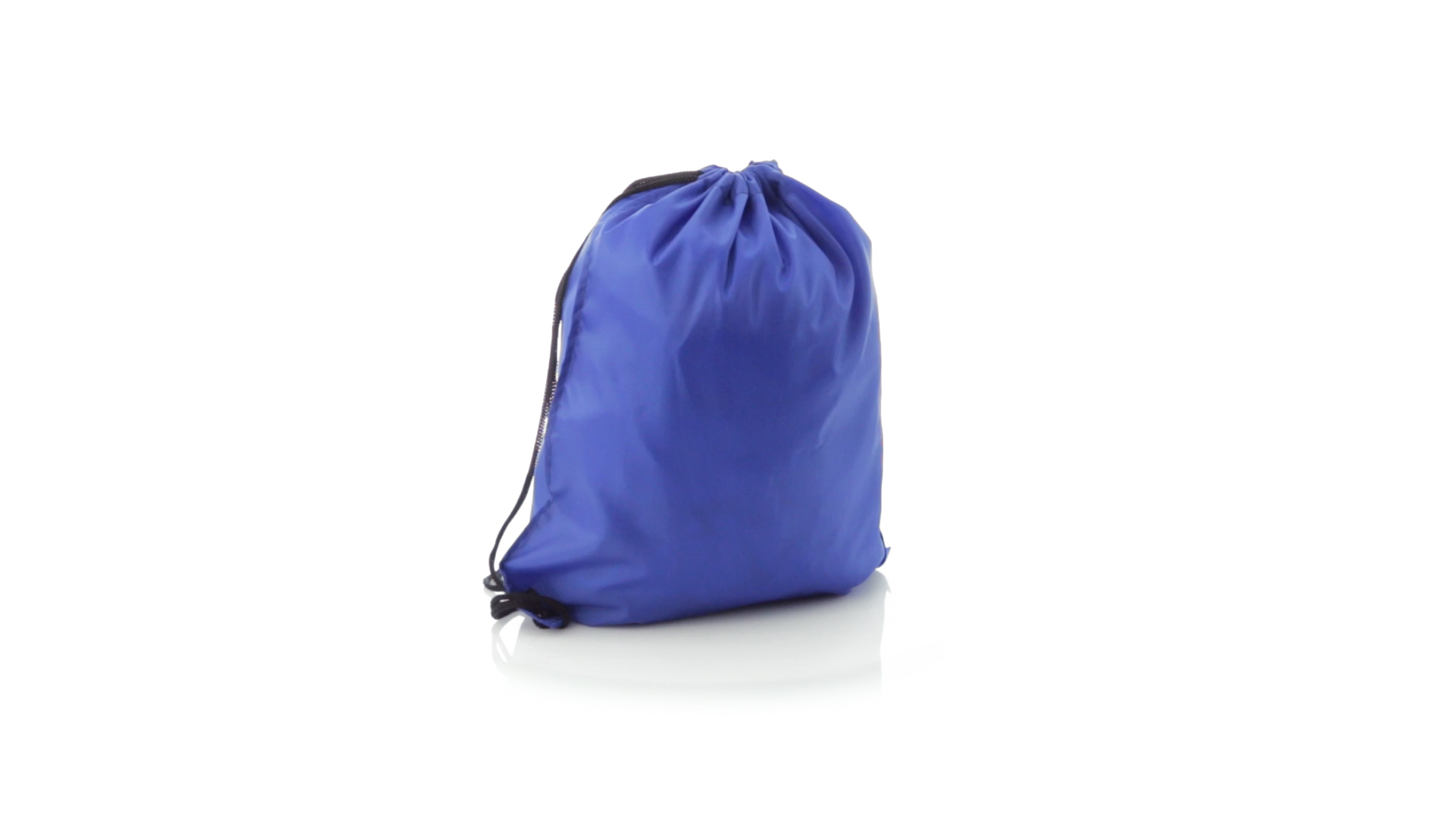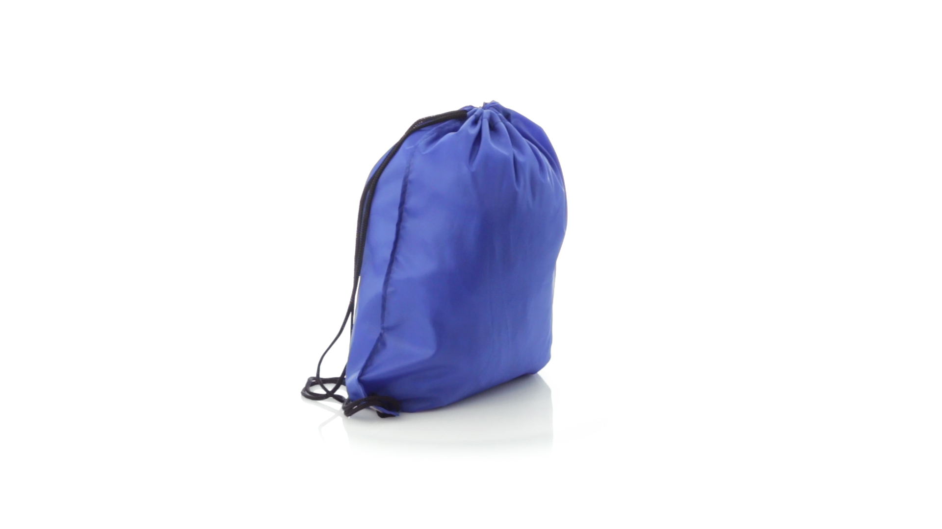 Rucksack mit Kordelzug für Kinder aus weichem 210T Polyester in kräftigen Farben. Mit Zugbändern in Schwarz und Ecken mit Metallösen zur Verstärkung.