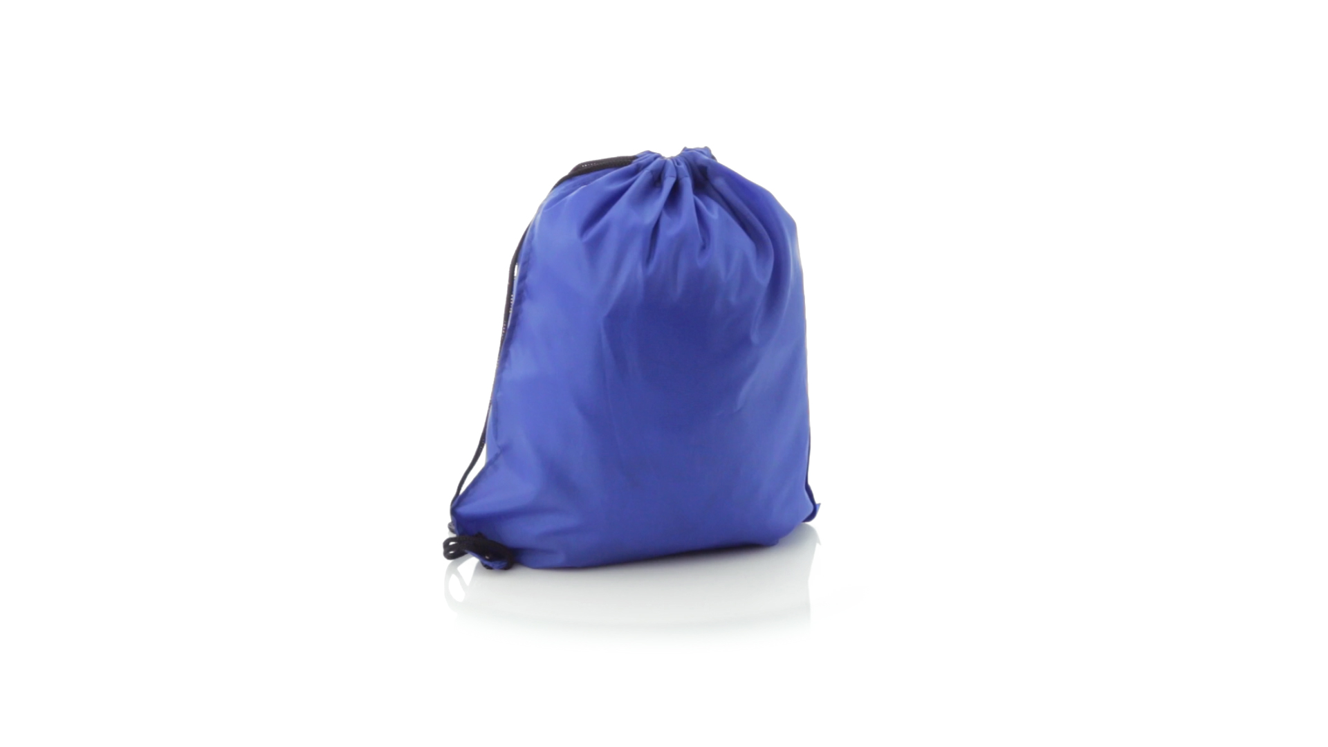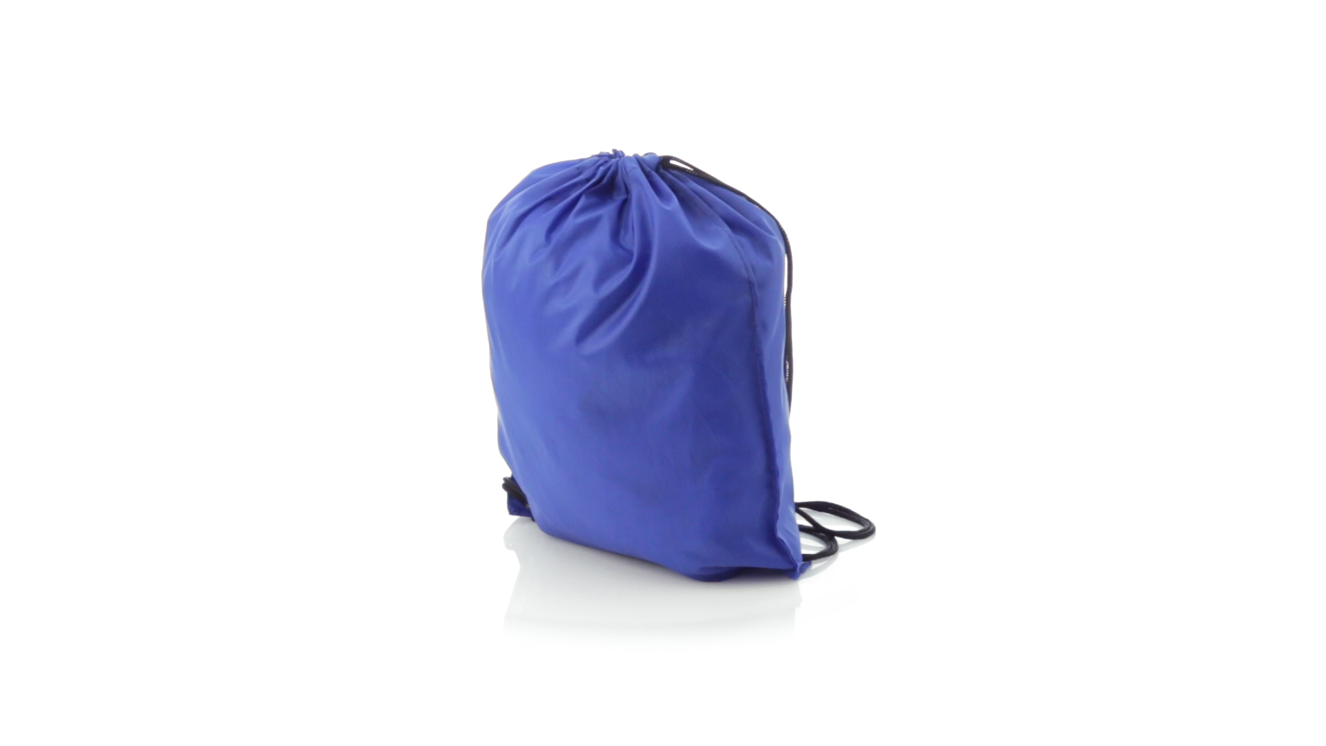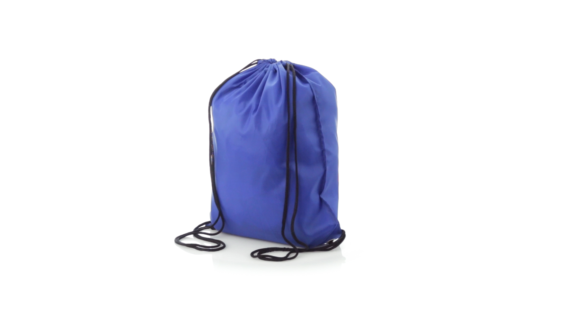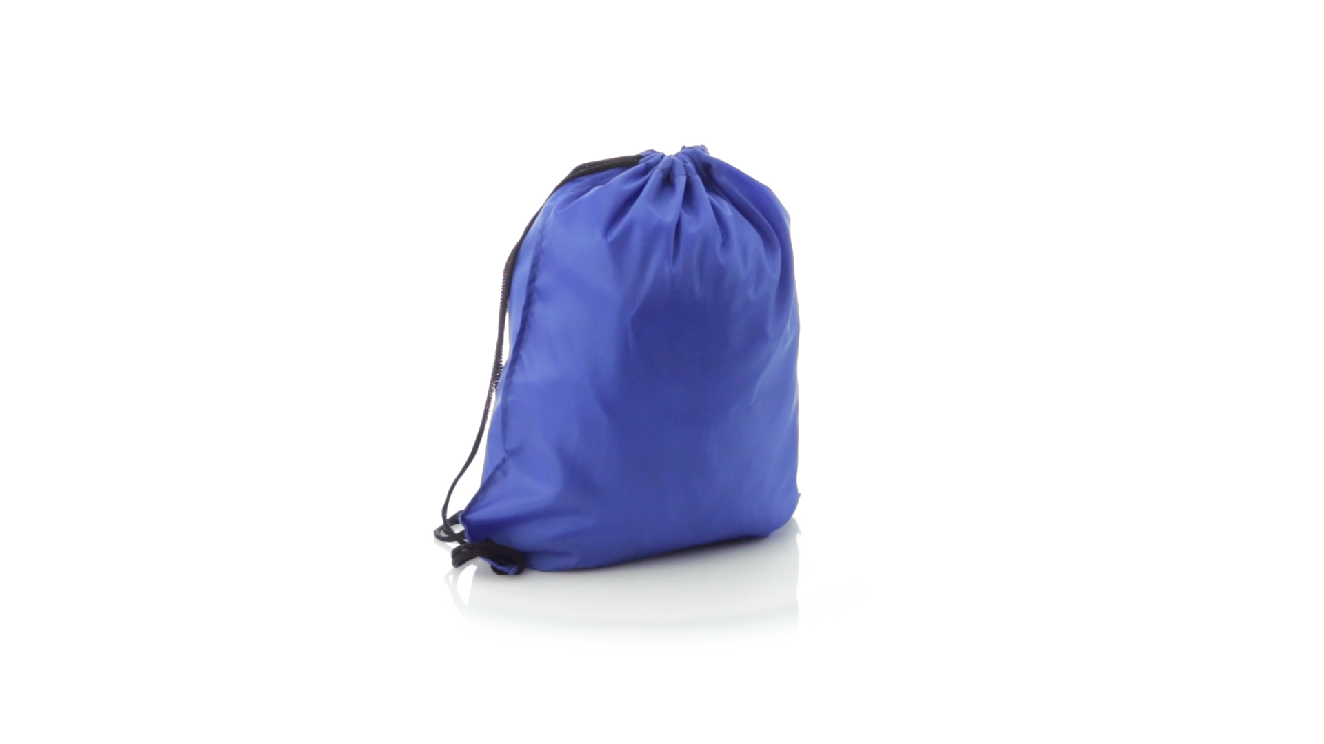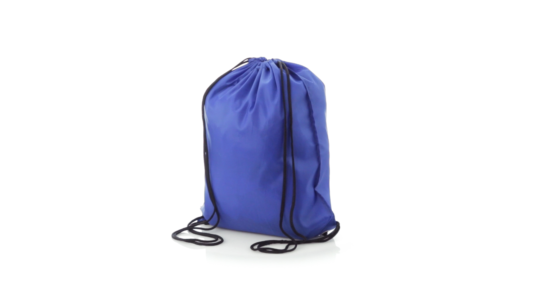 Rucksack mit Kordelzug für Kinder aus weichem 210T Polyester in kräftigen Farben. Mit Zugbändern in Schwarz und Ecken mit Metallösen zur Verstärkung.