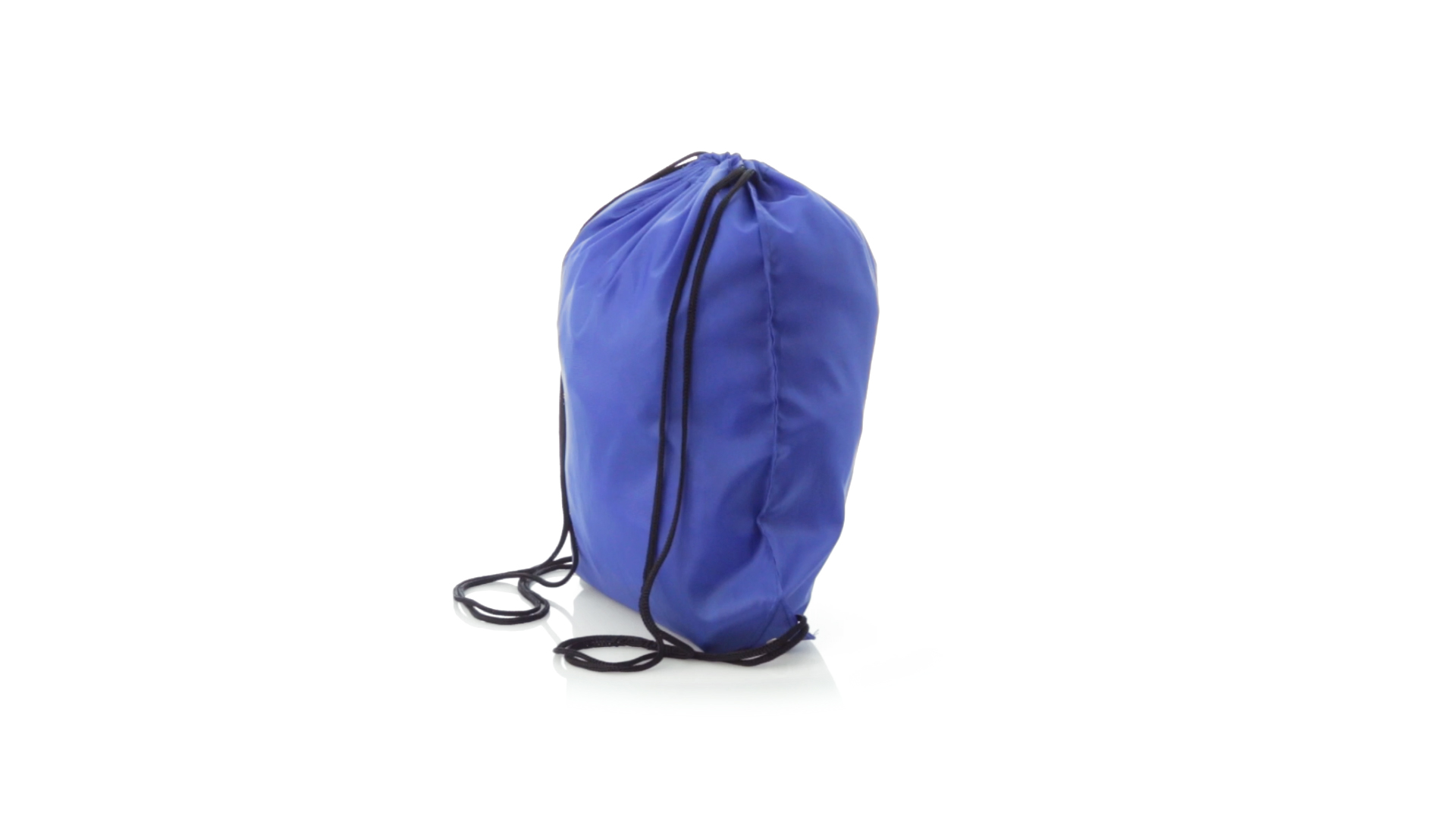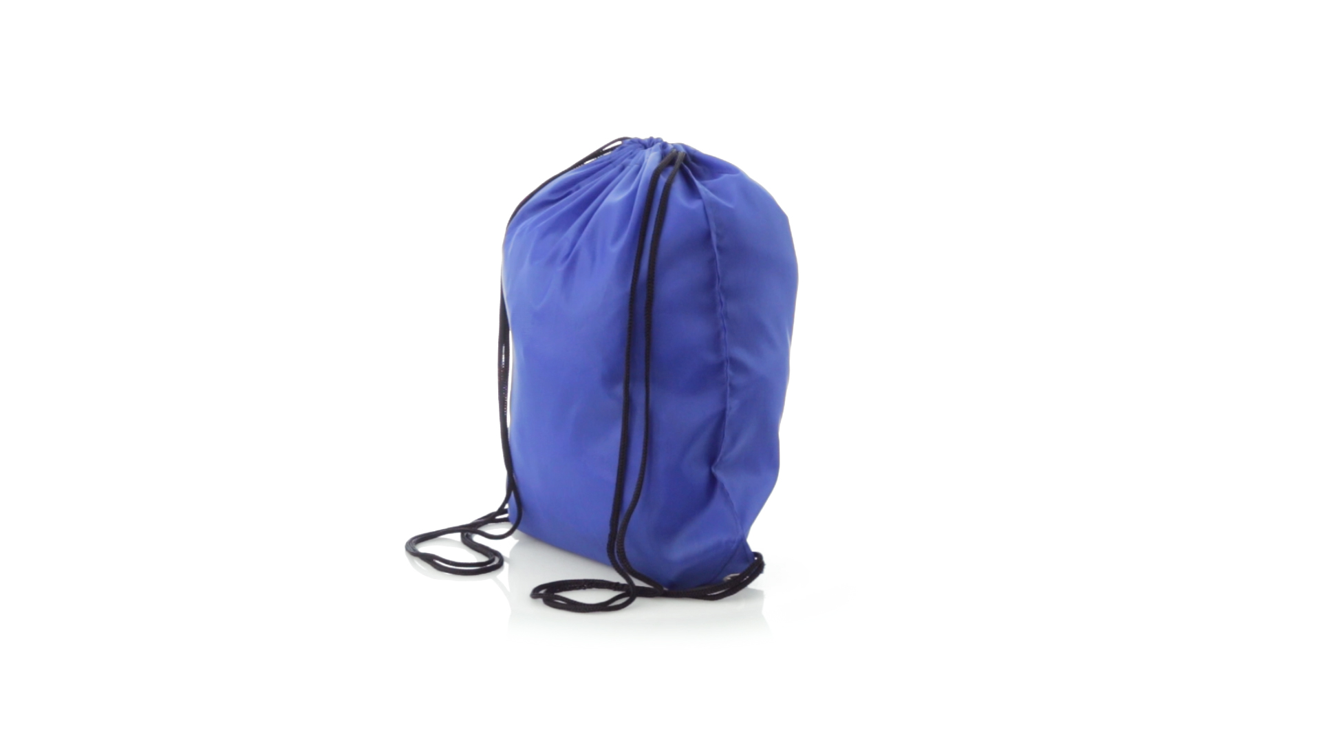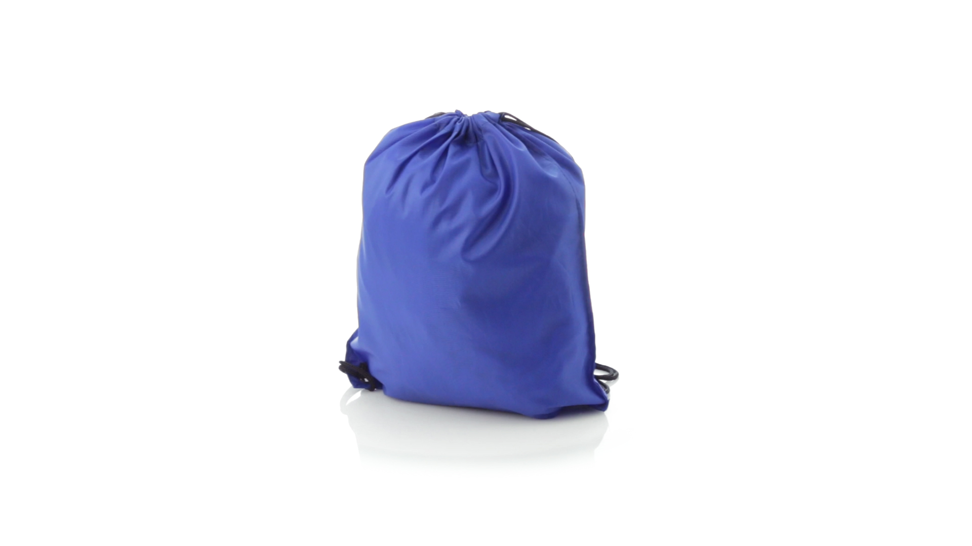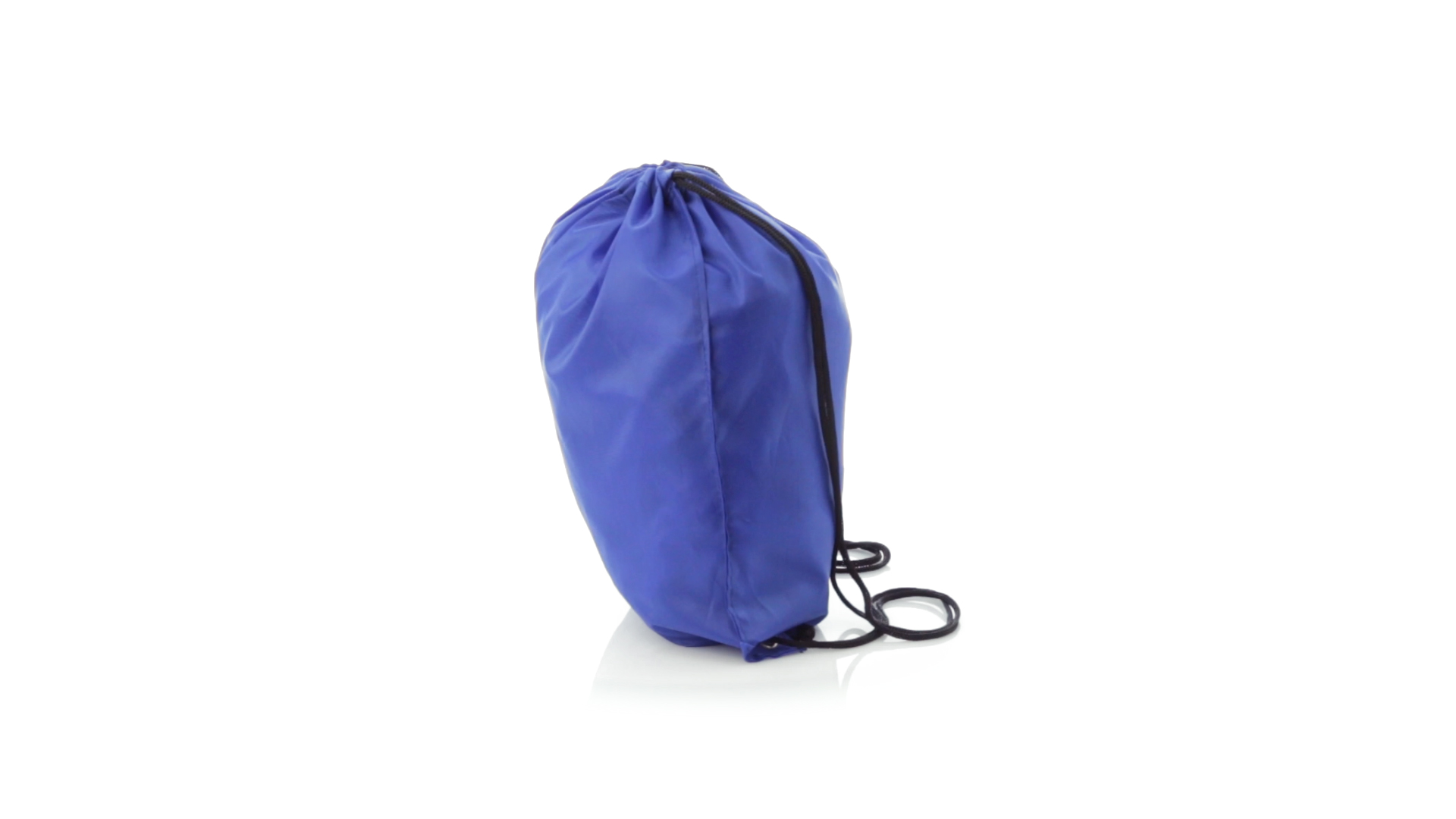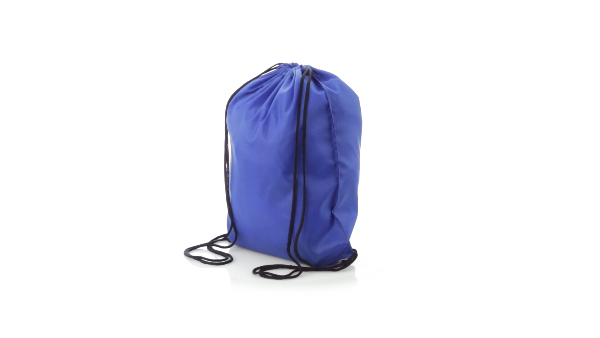 Rucksack mit Kordelzug für Kinder aus weichem 210T Polyester in kräftigen Farben. Mit Zugbändern in Schwarz und Ecken mit Metallösen zur Verstärkung.
