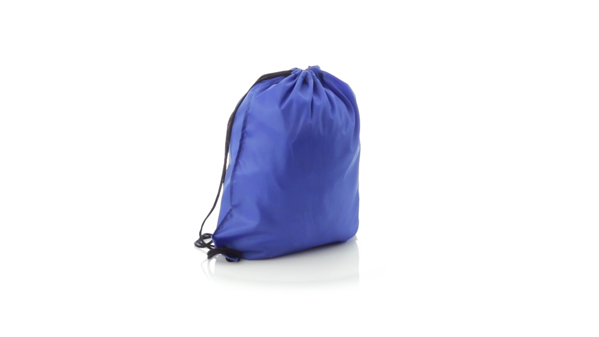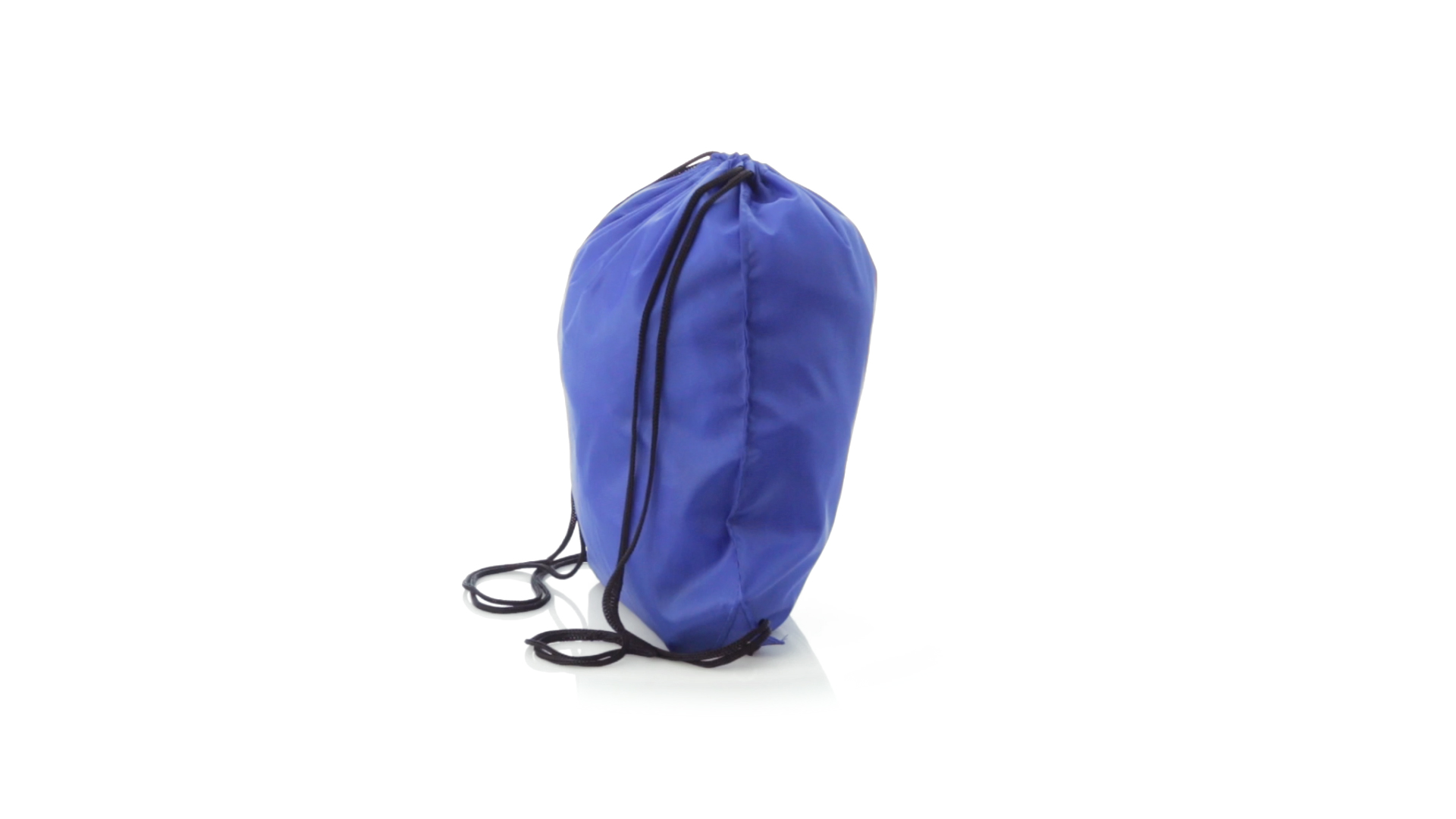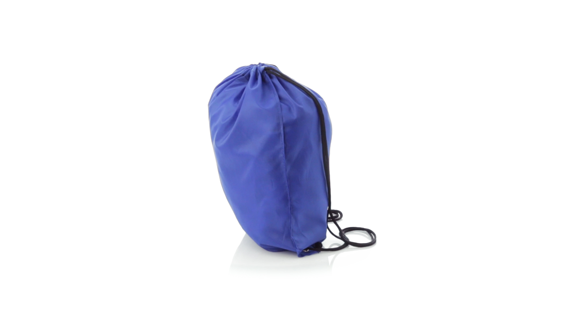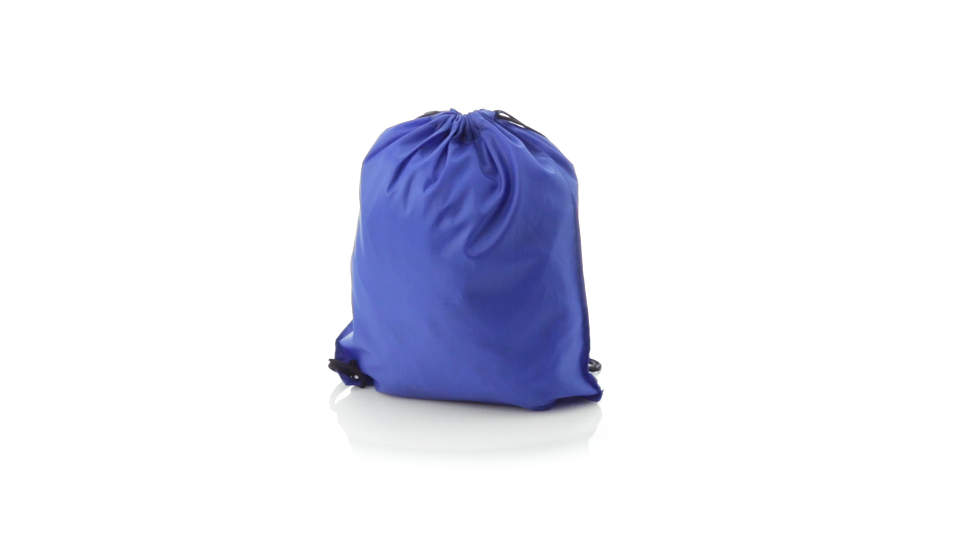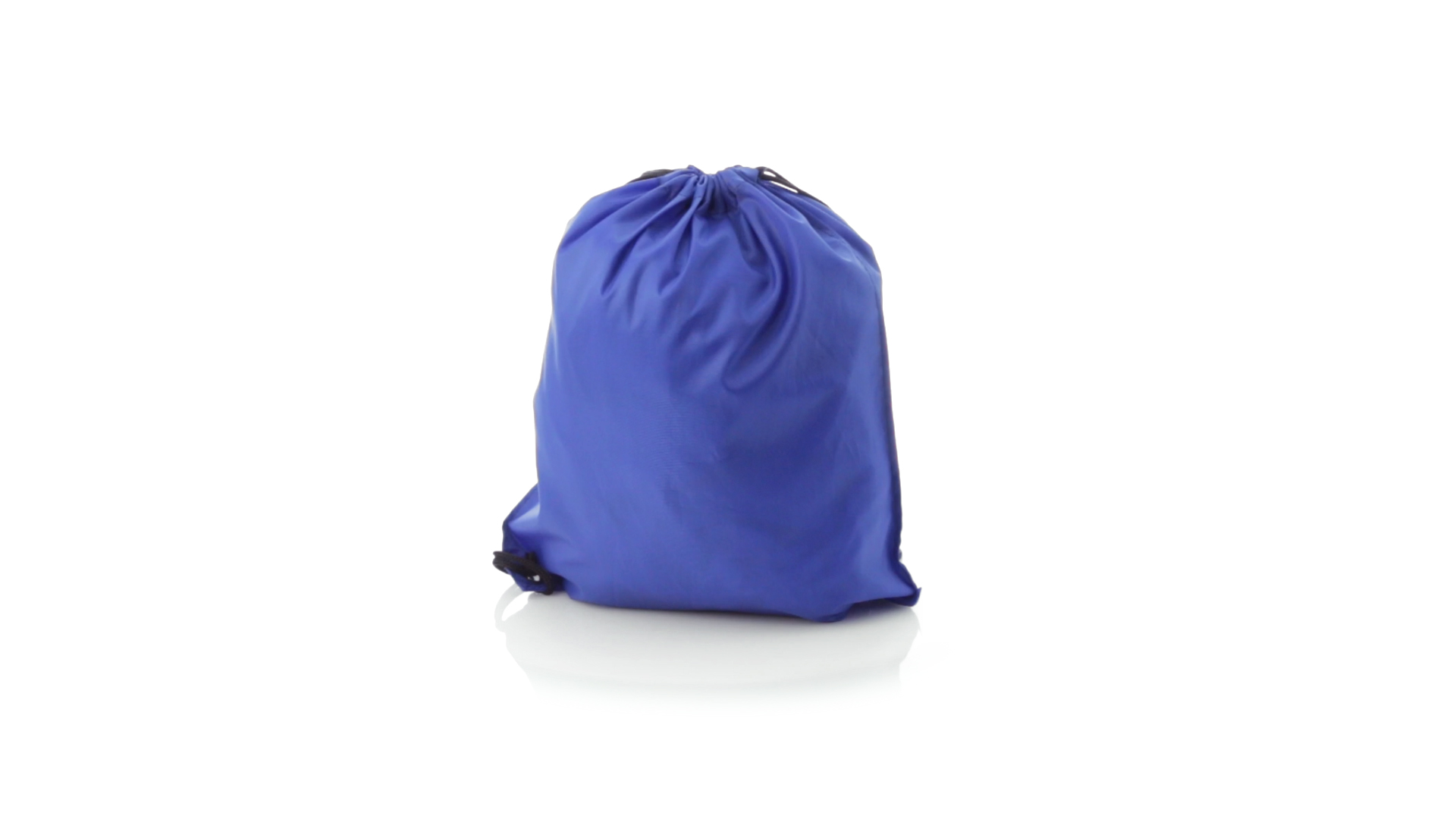 Rucksack mit Kordelzug für Kinder aus weichem 210T Polyester in kräftigen Farben. Mit Zugbändern in Schwarz und Ecken mit Metallösen zur Verstärkung.