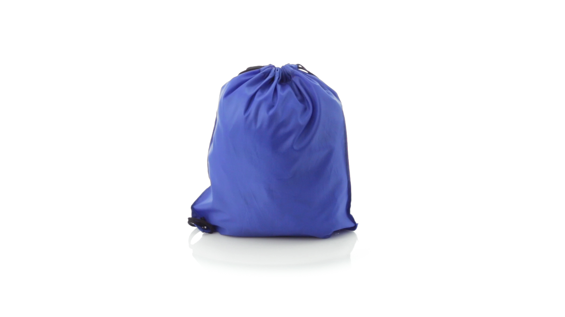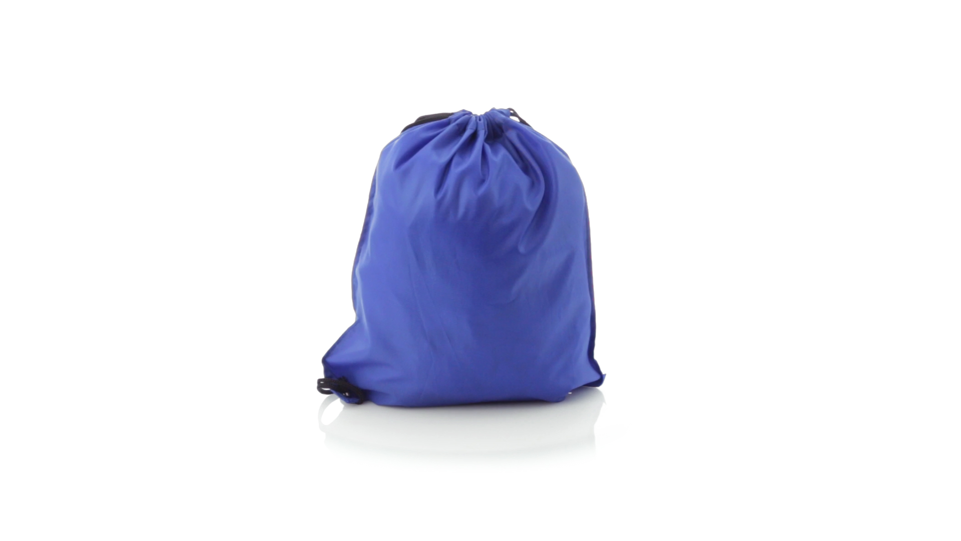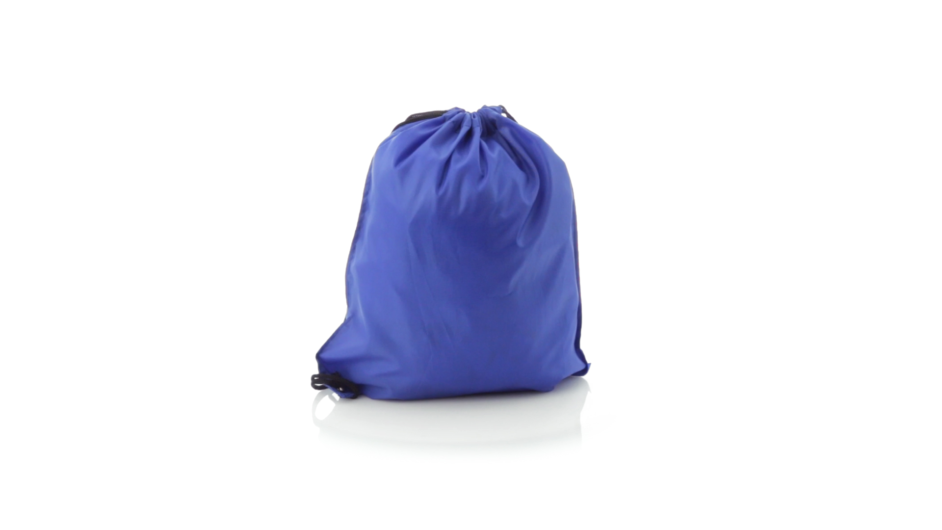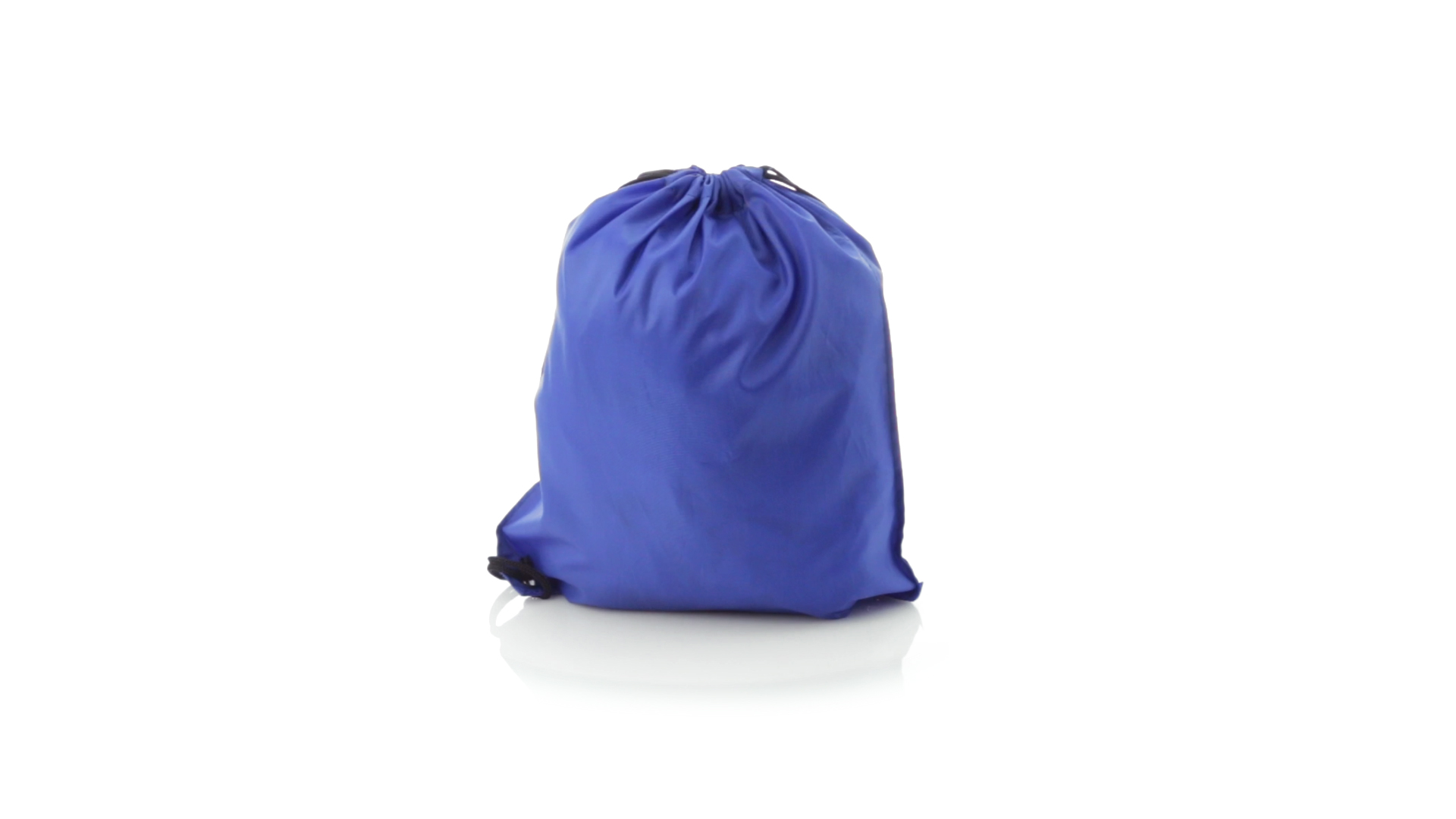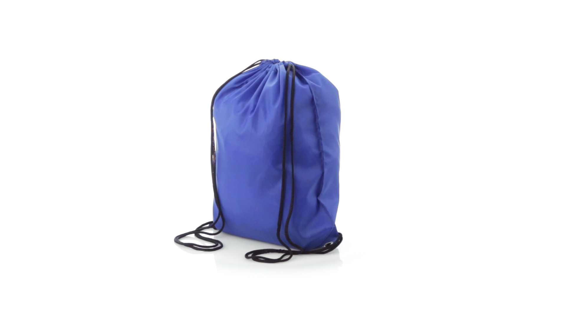 Rucksack mit Kordelzug für Kinder aus weichem 210T Polyester in kräftigen Farben. Mit Zugbändern in Schwarz und Ecken mit Metallösen zur Verstärkung.