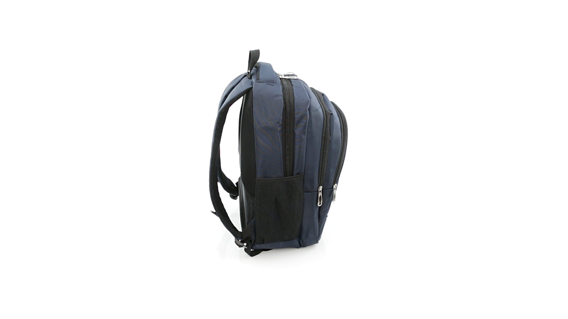 Rucksack aus widerstandsfähigem 600D-Nylon. Im avantgardistischen Stil verfügt er über 4 praktische Aussentaschen unterschiedlicher Grösse, die mit schwarzen Reissverschlüssen leicht zu schliessen sind. Im Inneren befindet sich ein gepolstertes Fach für einen Laptop bis 15 Zoll, ausserdem verfügt er an den Seiten über zwei leicht zugängliche elastische Netzfächer. Bequem zu tragen dank der gepolsterten Griffe und der ergonomischer Rückseite.