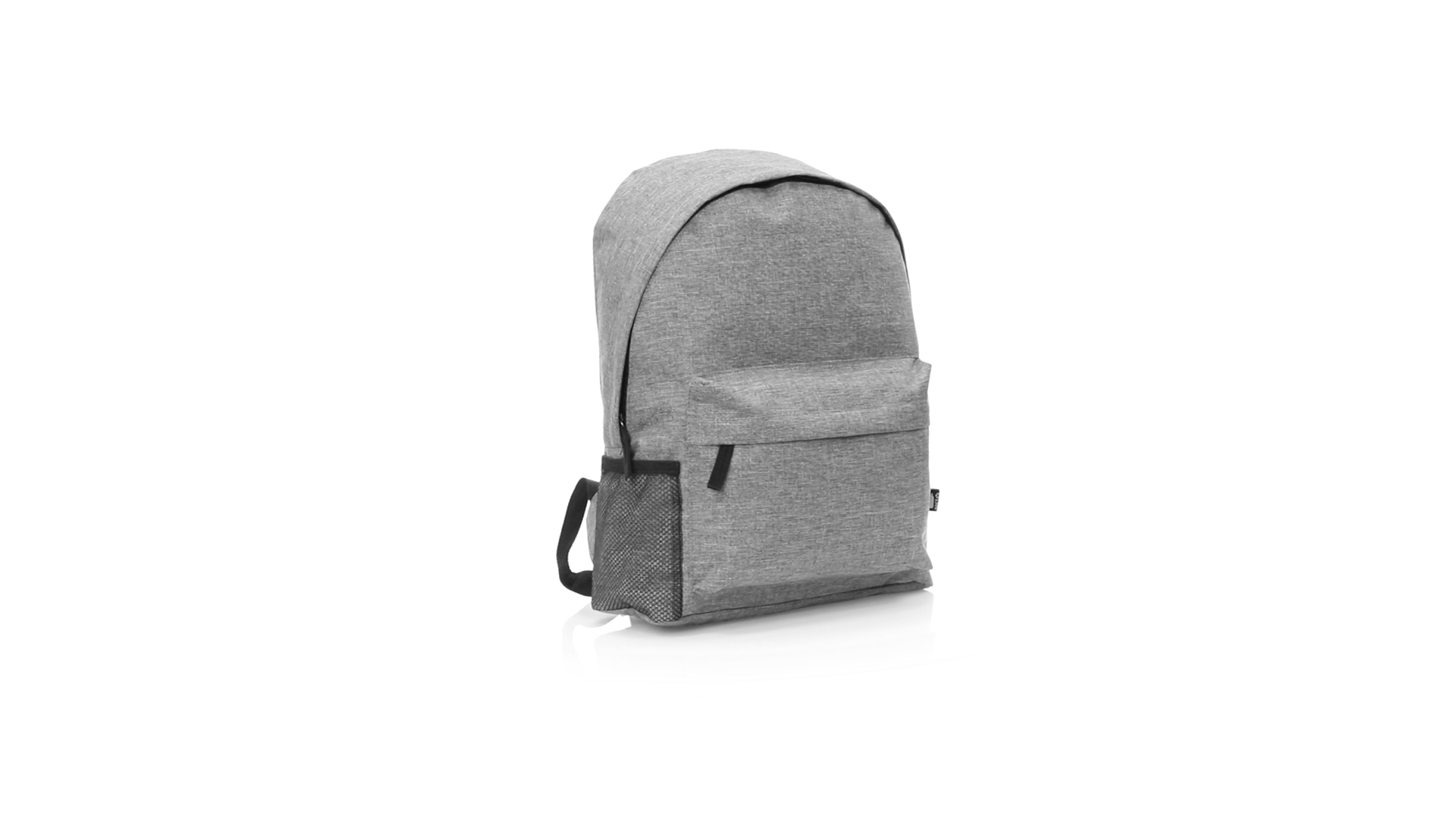 Rucksack aus widerstandsfähigem 600D RPET-Material, das aus recycelten Kunststoffmaterialien hergestellt wird, um die Wiederverwendung von Kunststoffresten zu fördern und zur Nachhaltigkeit der Erde beizutragen. Mit Reissverschluss und Vordertasche, verstärkten Ecken, Abziehvorrichtungen mit Riemen zum einfachen Öffnen und Zubehör in schwarzer Farbe. Gepolsterter Rücken und verstellbare Schultergurte. RPET Etikett.