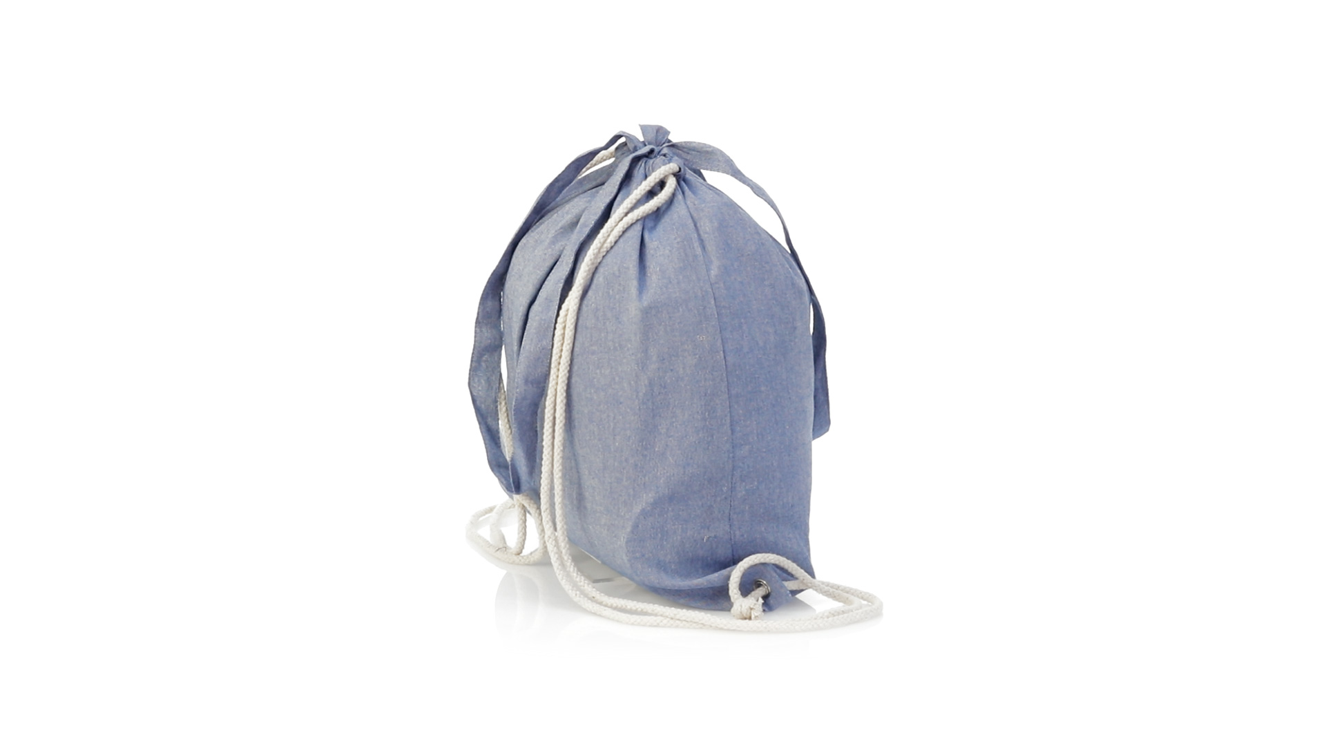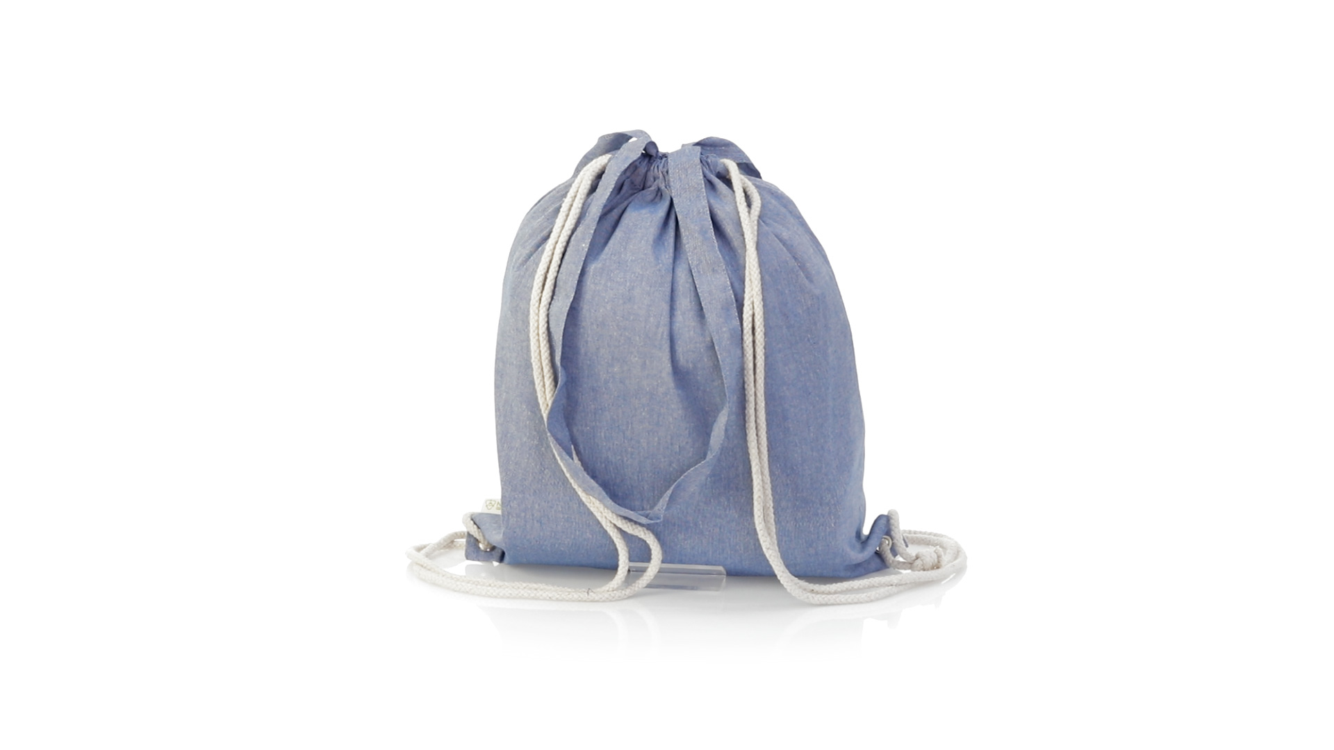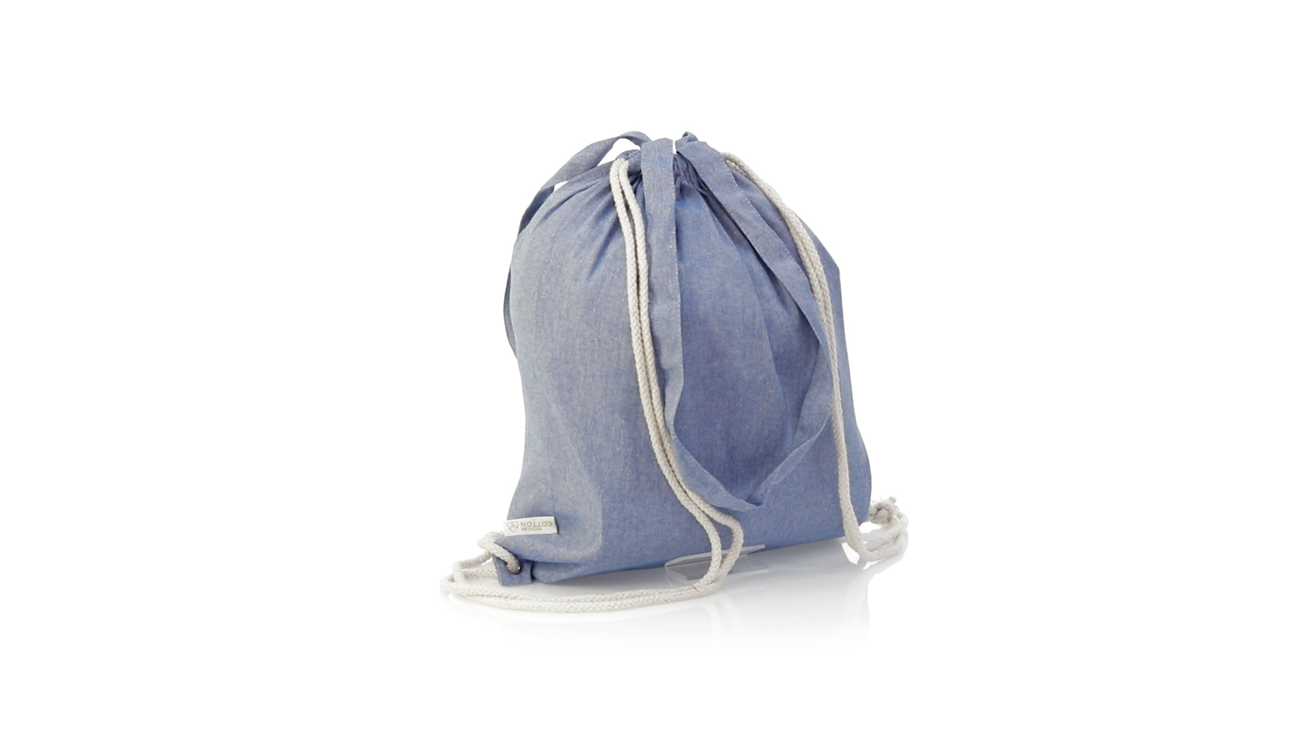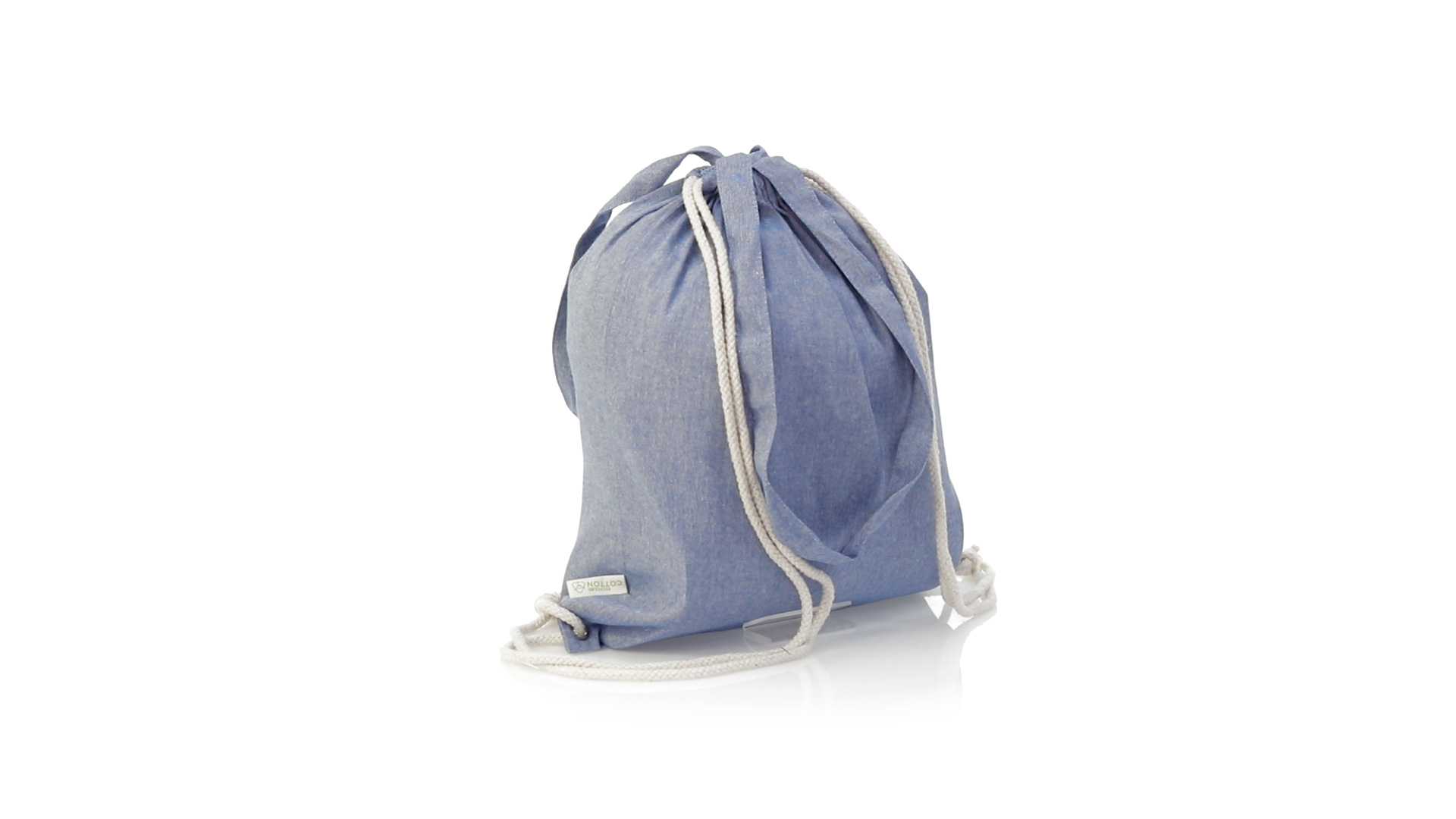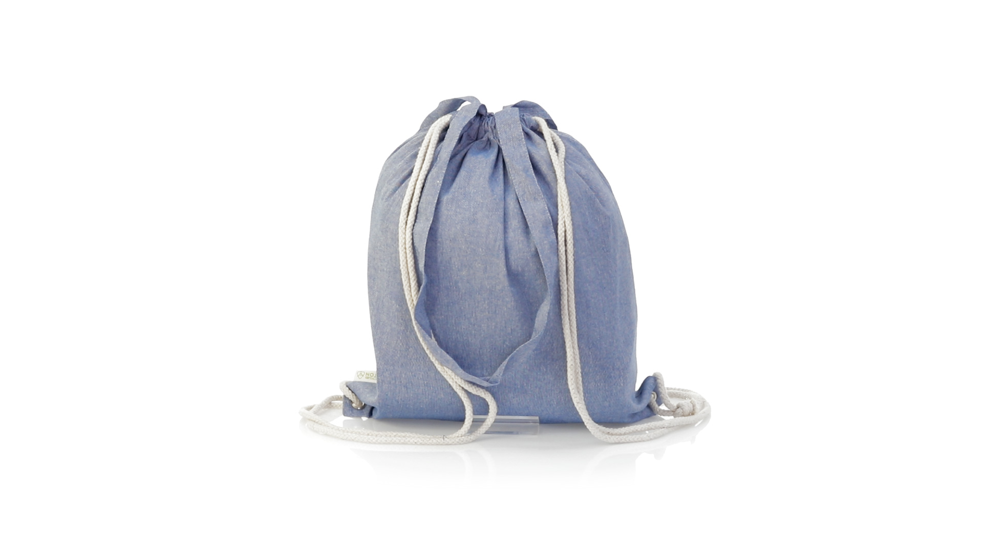 Linie Natur Rucksack mit Kordelzug aus robuster 140g/m2 Recycling-Baumwolle, mit passenden 70 cm langen Henkeln. Kordel aus ecrufarbener Baumwolle, mit verstärkten Metallringen und unverwechselbarem Etikett für recycelte Baumwolle. Erhältlich in einer breiten Palette von Farben. Belastbar bis zu einem Gewicht von 9 kg.