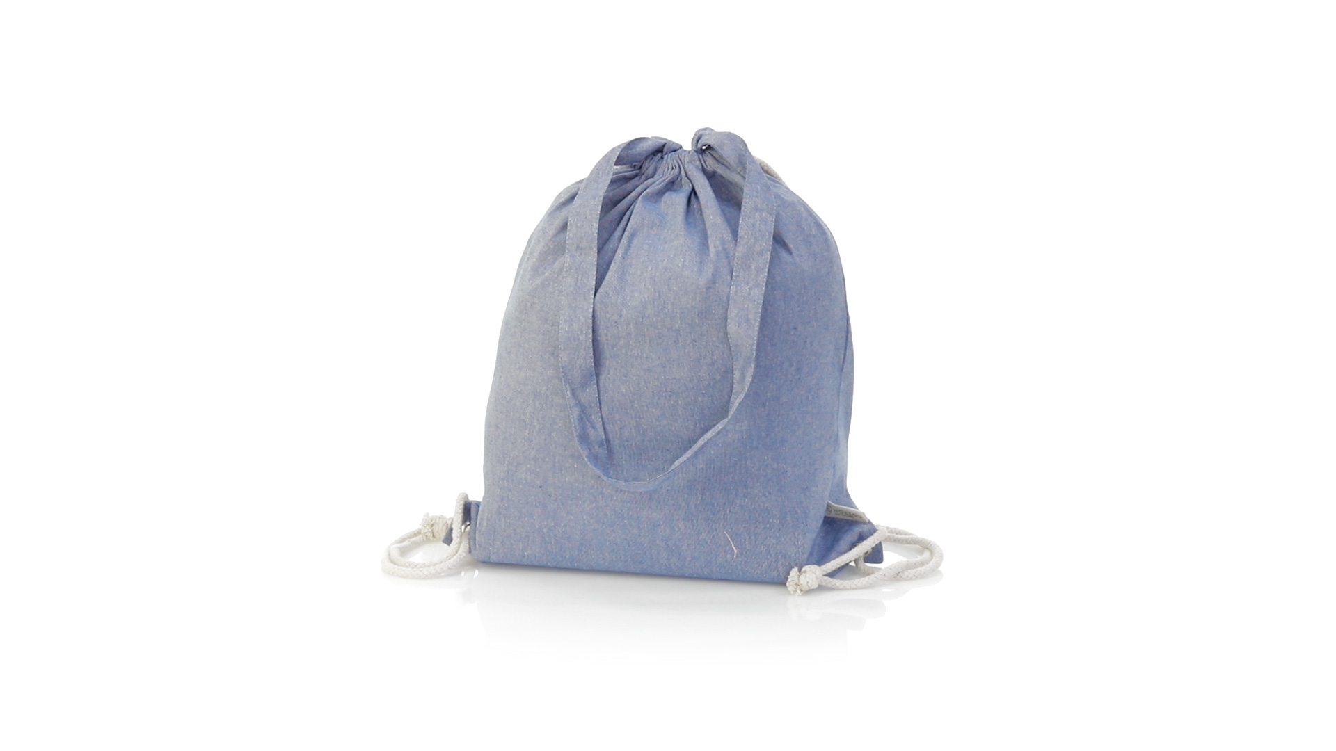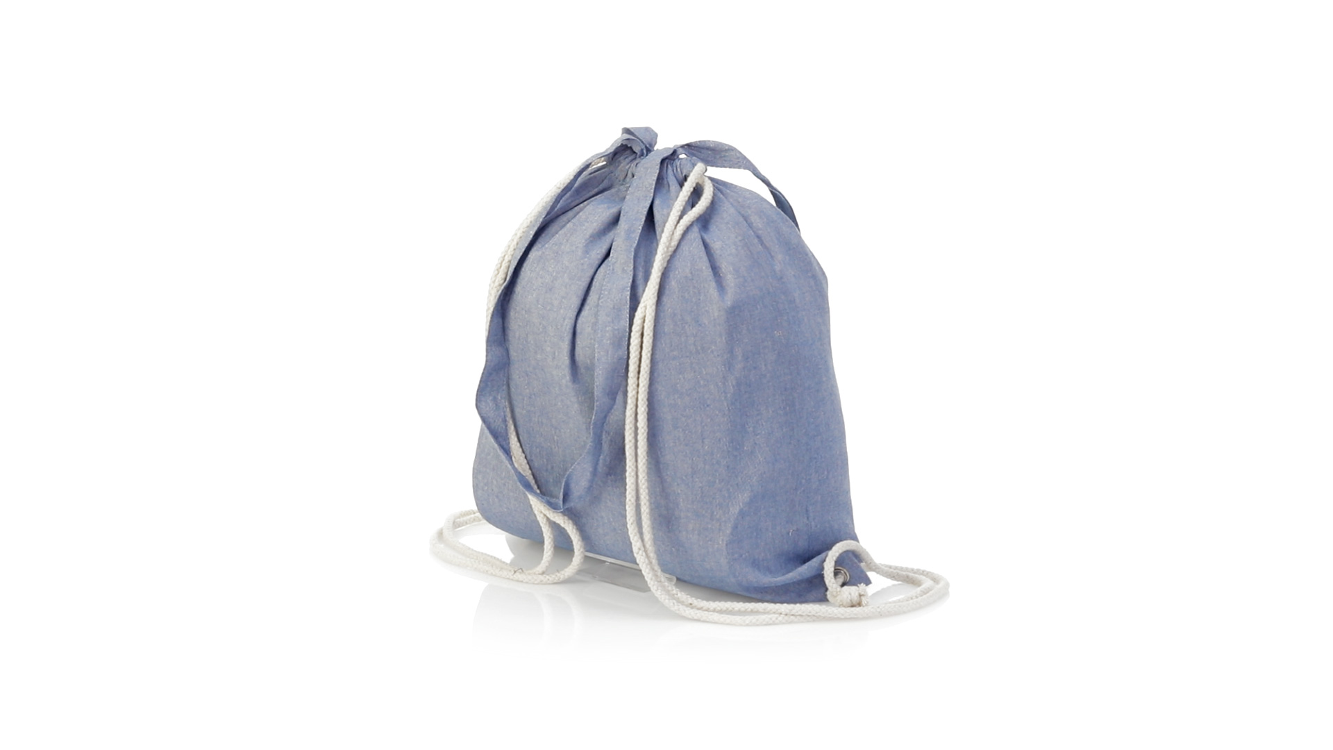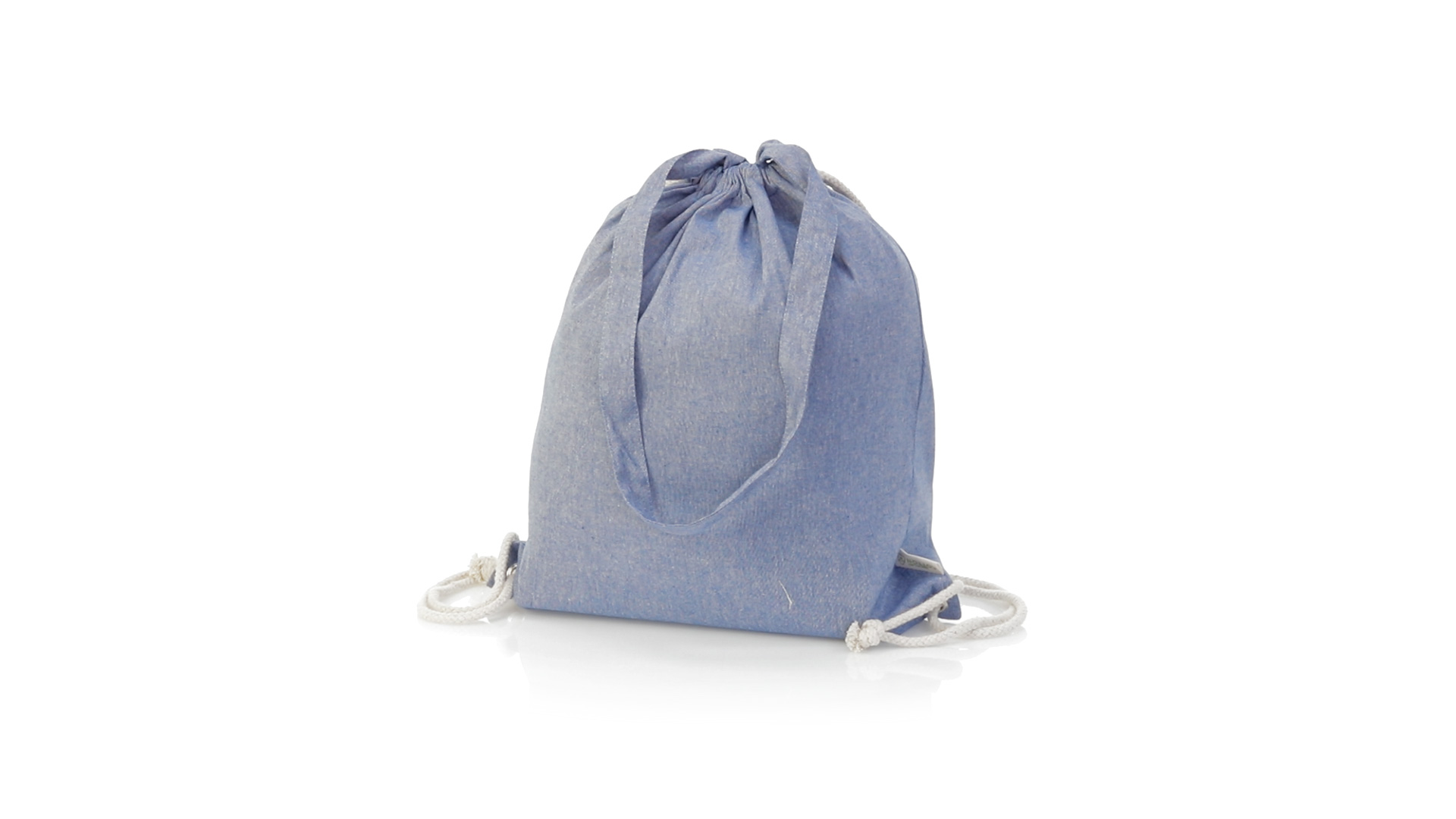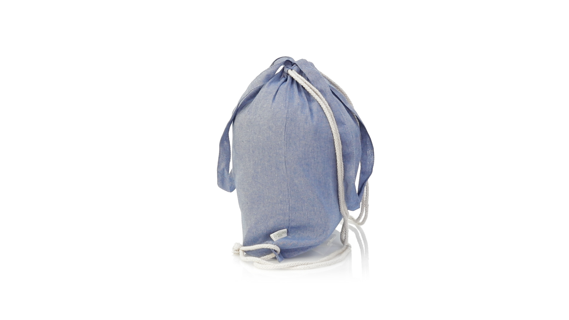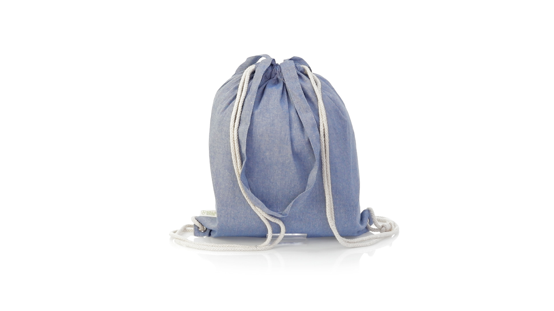Linie Natur Rucksack mit Kordelzug aus robuster 140g/m2 Recycling-Baumwolle, mit passenden 70 cm langen Henkeln. Kordel aus ecrufarbener Baumwolle, mit verstärkten Metallringen und unverwechselbarem Etikett für recycelte Baumwolle. Erhältlich in einer breiten Palette von Farben. Belastbar bis zu einem Gewicht von 9 kg.