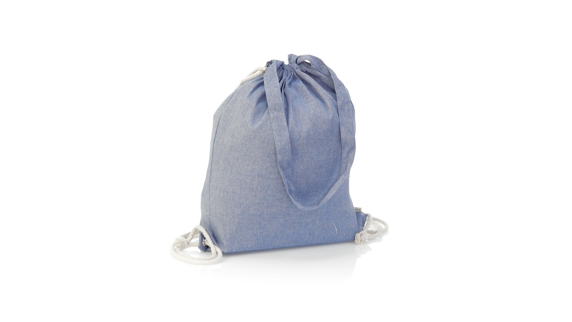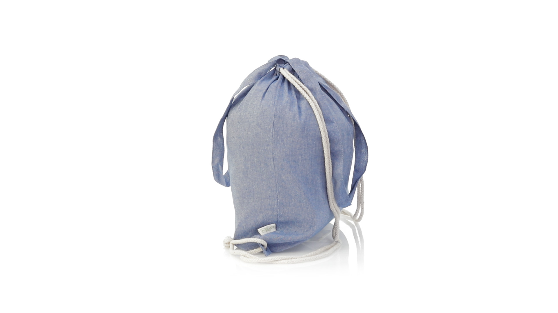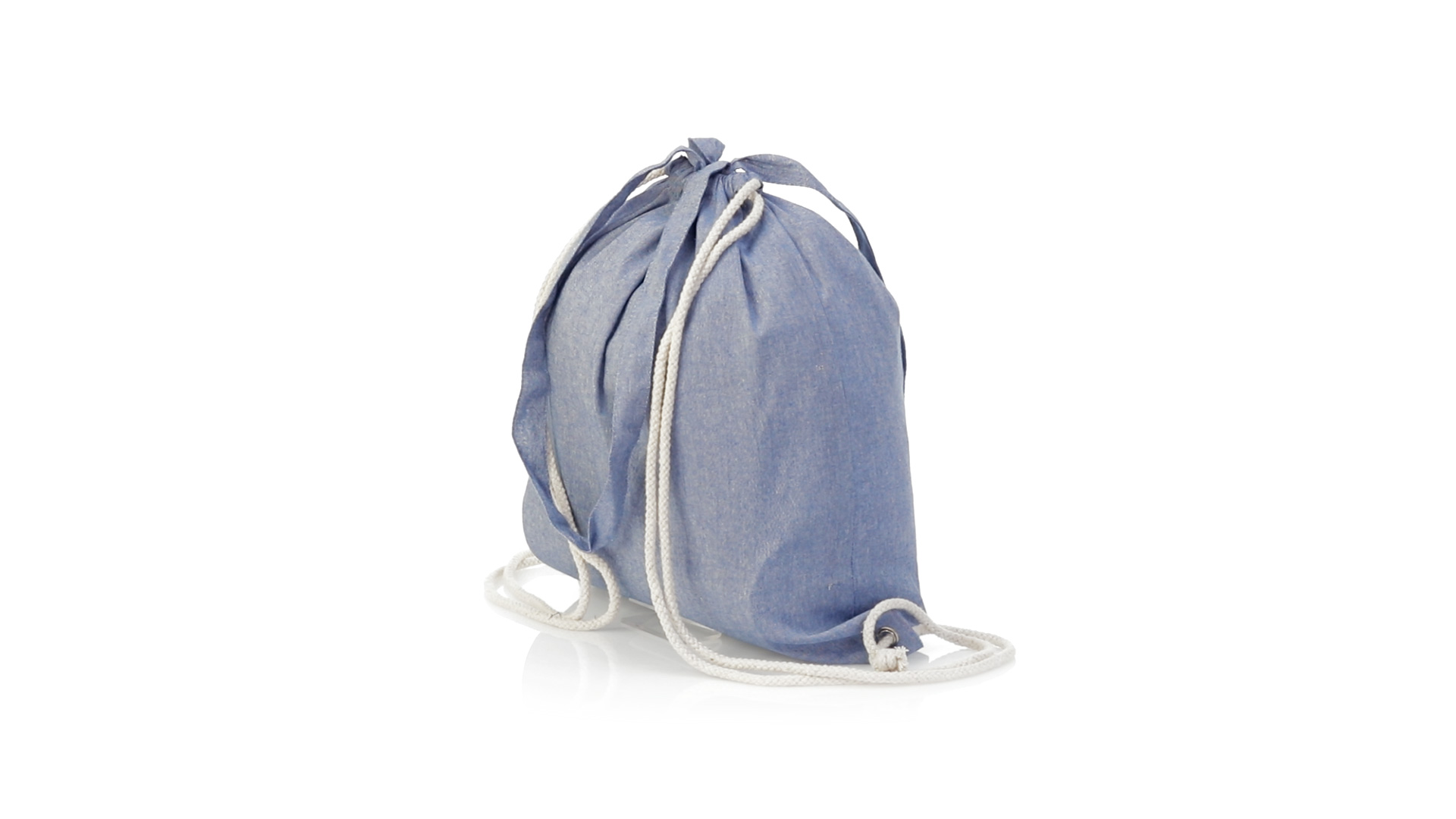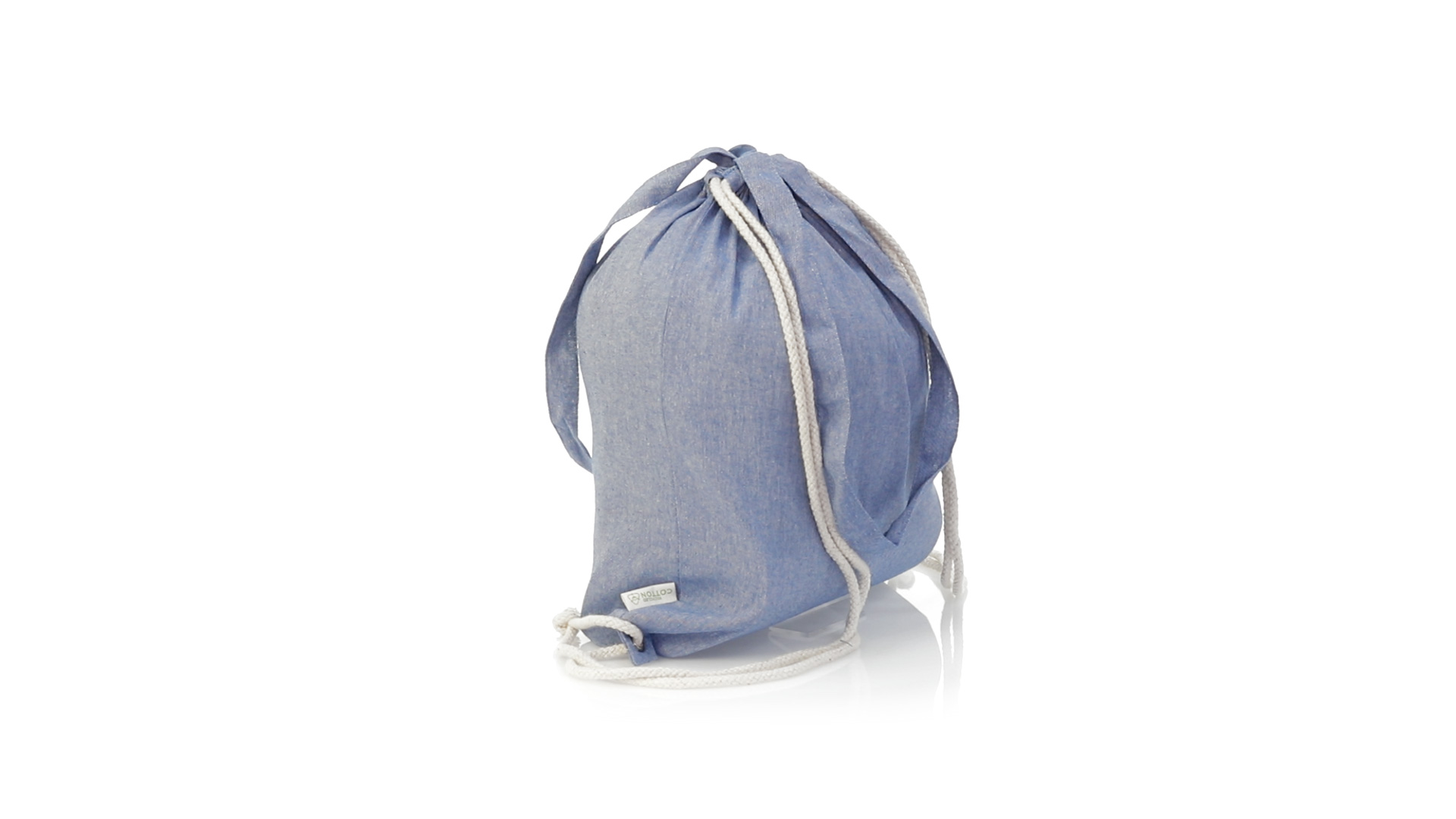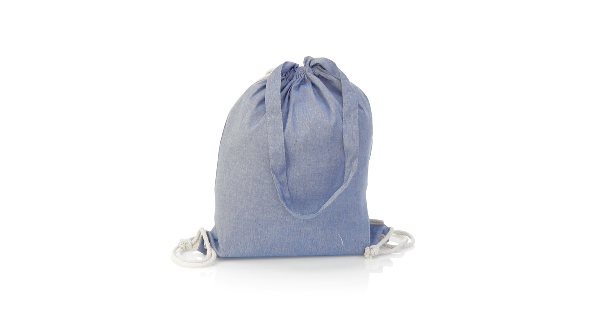 Linie Natur Rucksack mit Kordelzug aus robuster 140g/m2 Recycling-Baumwolle, mit passenden 70 cm langen Henkeln. Kordel aus ecrufarbener Baumwolle, mit verstärkten Metallringen und unverwechselbarem Etikett für recycelte Baumwolle. Erhältlich in einer breiten Palette von Farben. Belastbar bis zu einem Gewicht von 9 kg.