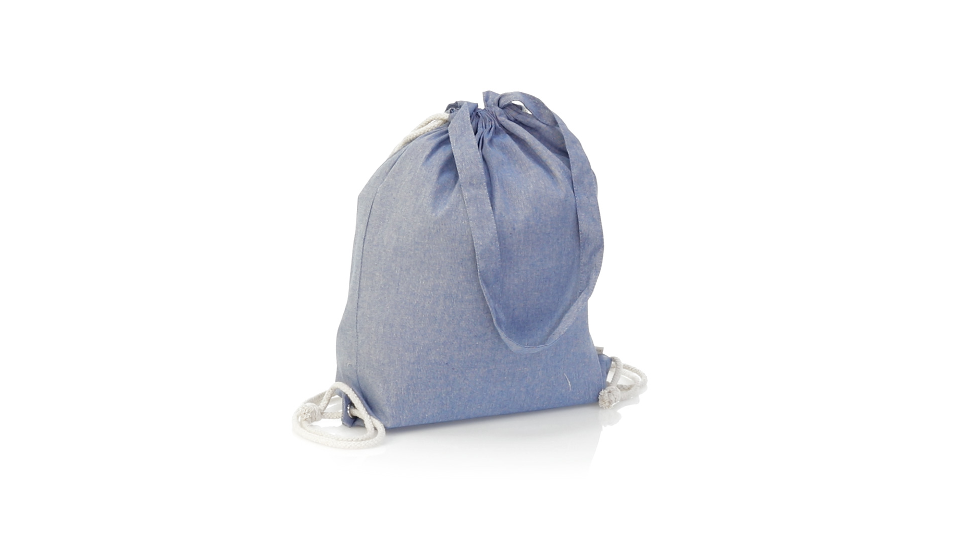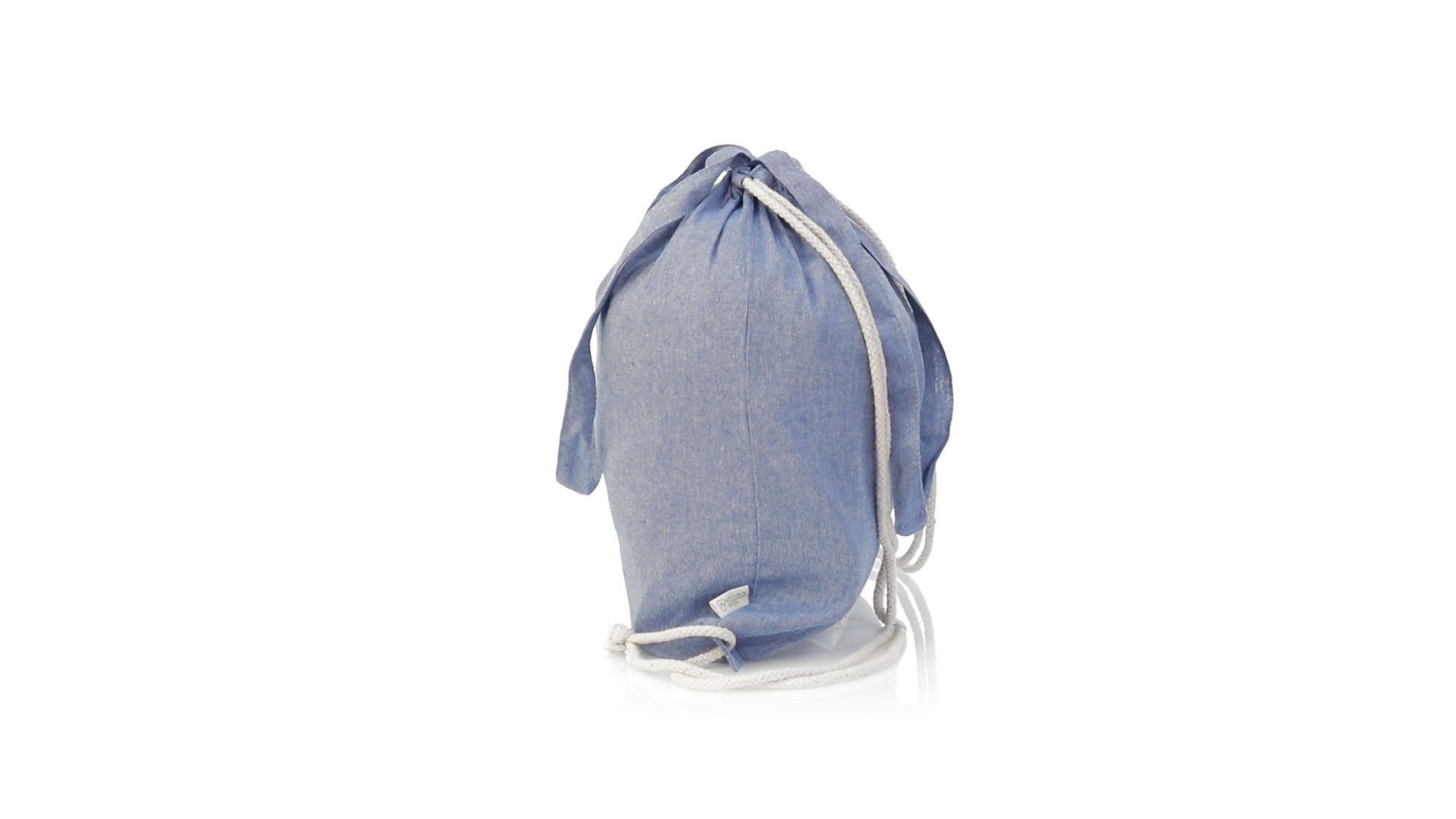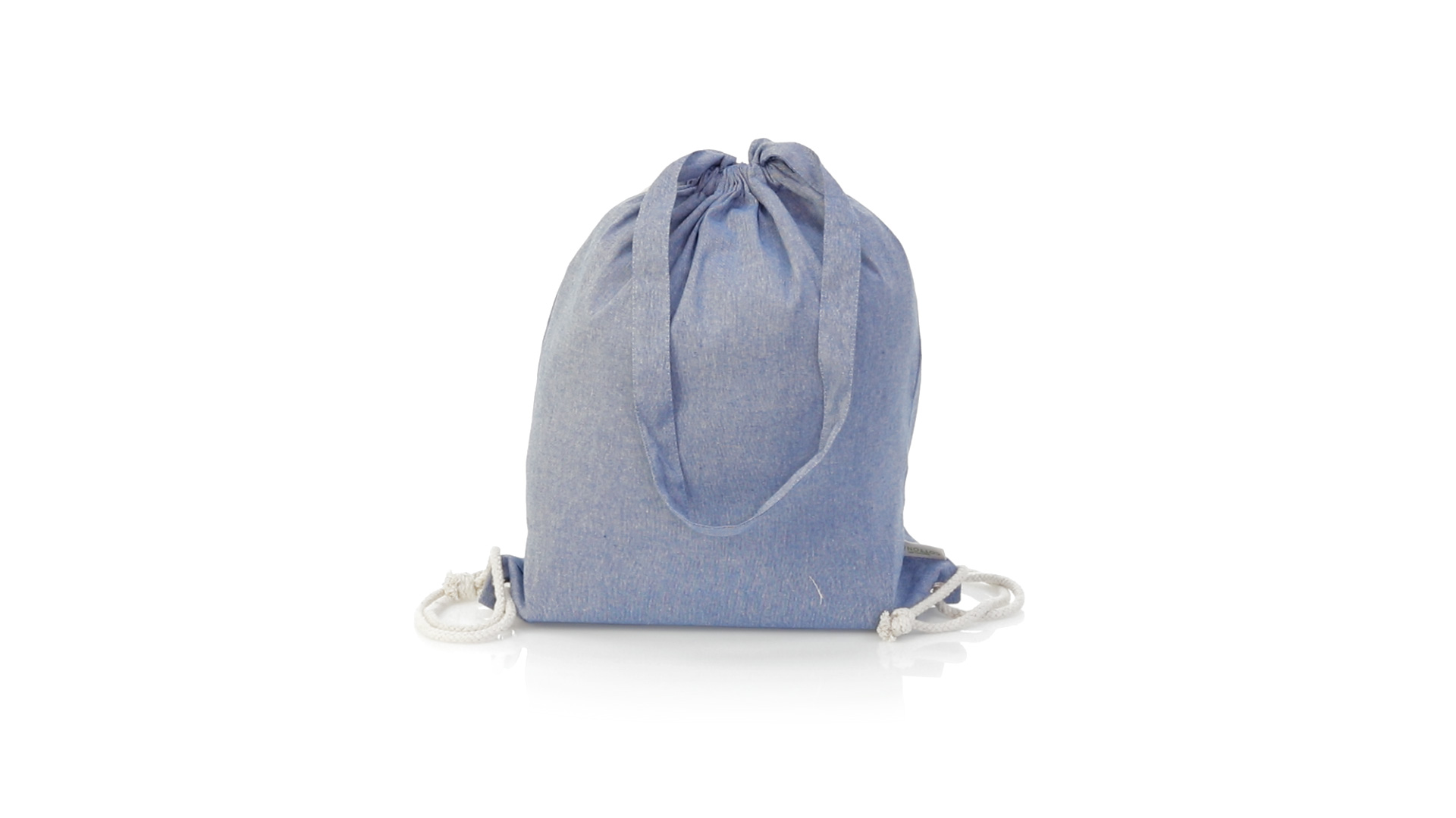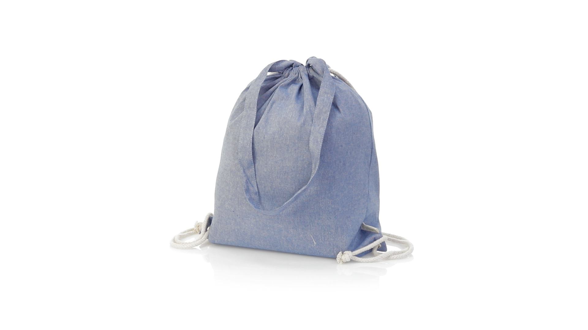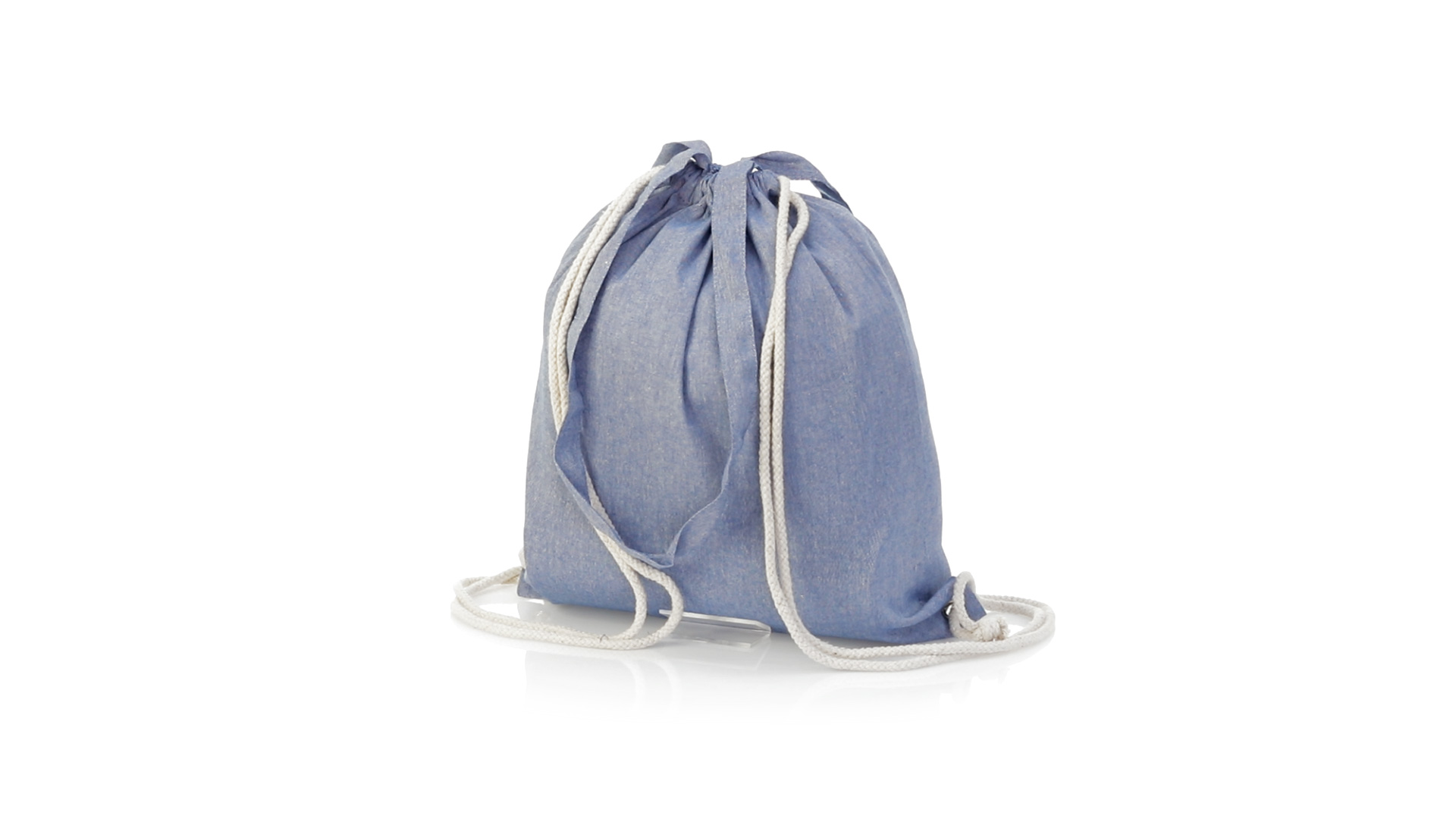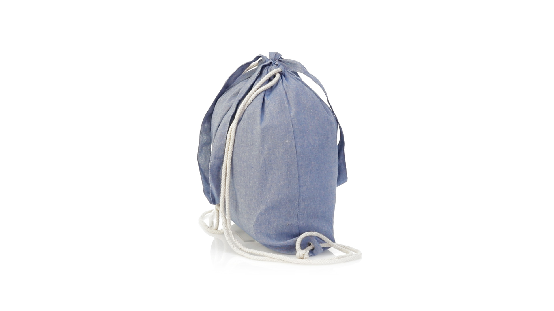 Linie Natur Rucksack mit Kordelzug aus robuster 140g/m2 Recycling-Baumwolle, mit passenden 70 cm langen Henkeln. Kordel aus ecrufarbener Baumwolle, mit verstärkten Metallringen und unverwechselbarem Etikett für recycelte Baumwolle. Erhältlich in einer breiten Palette von Farben. Belastbar bis zu einem Gewicht von 9 kg.