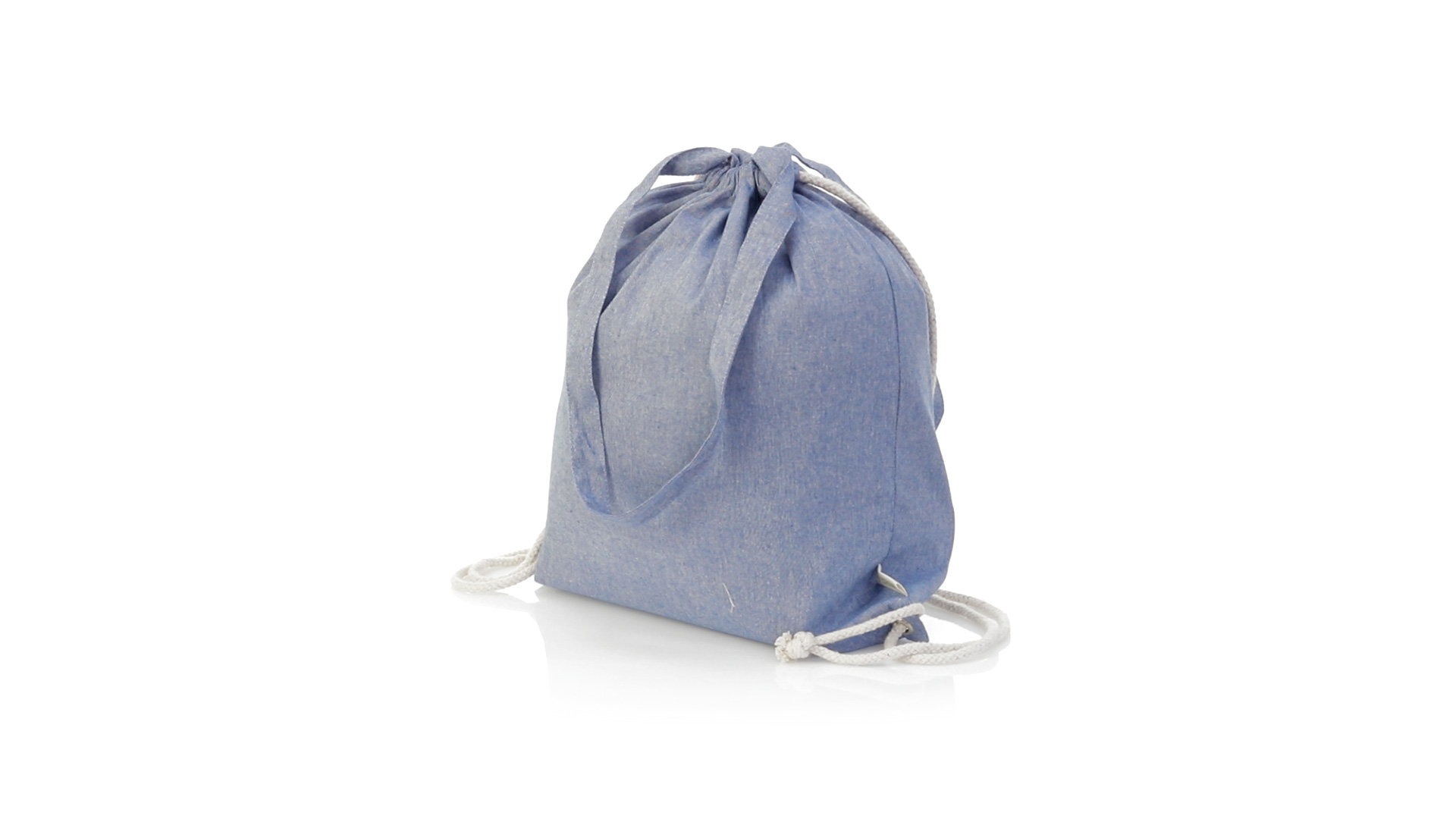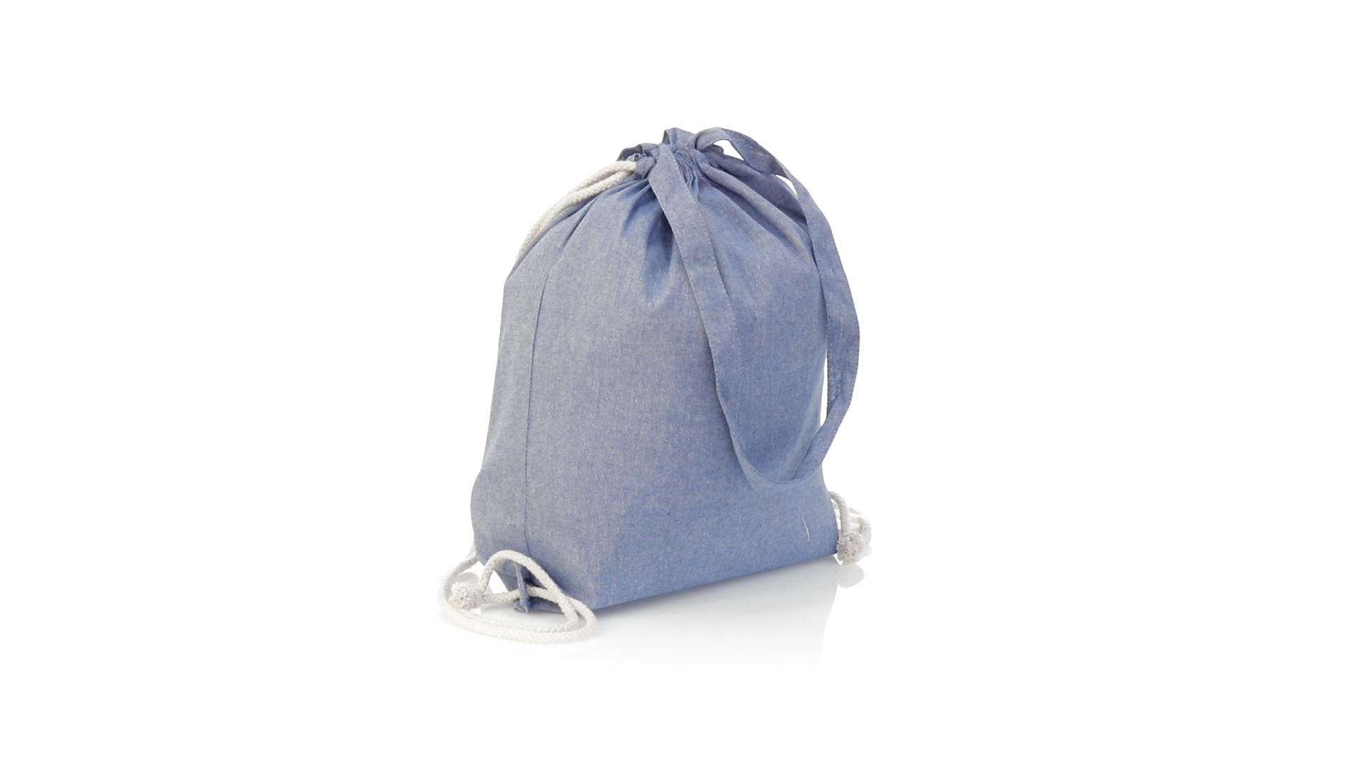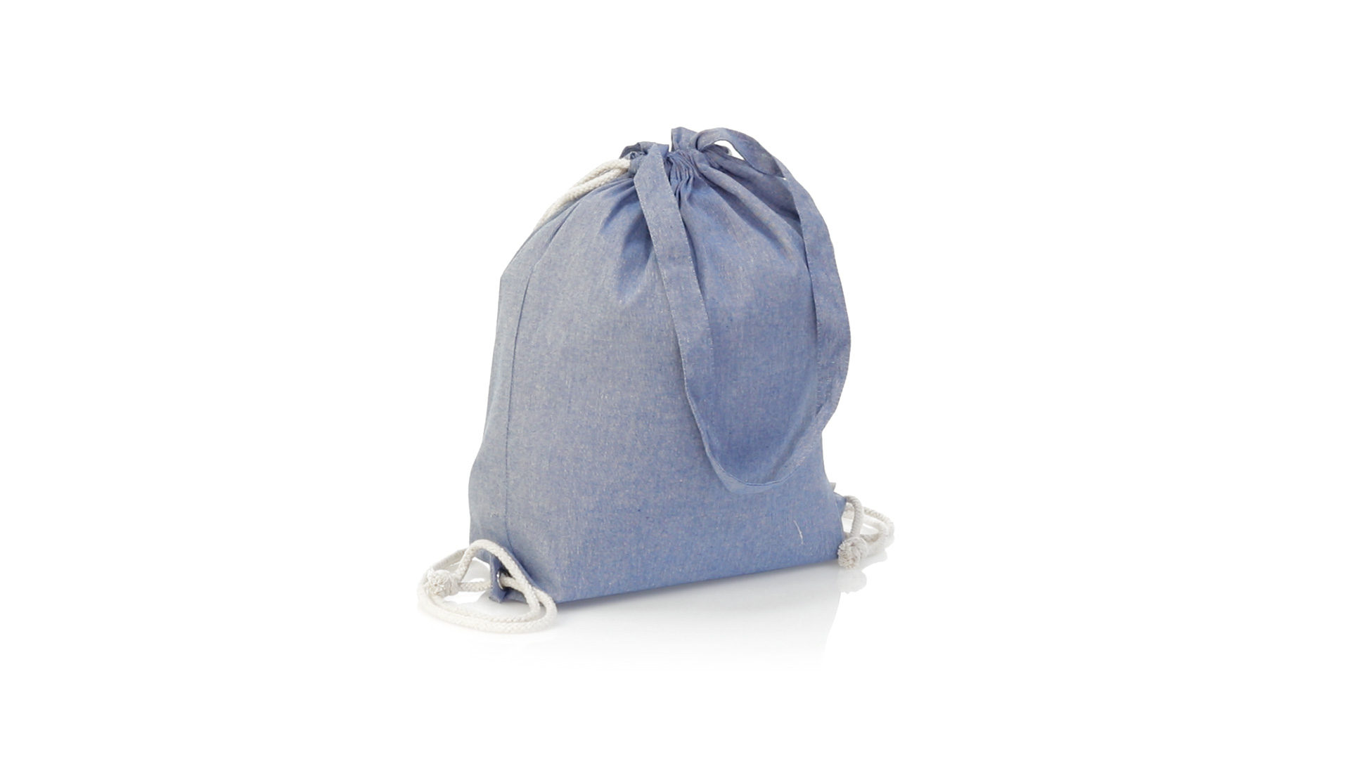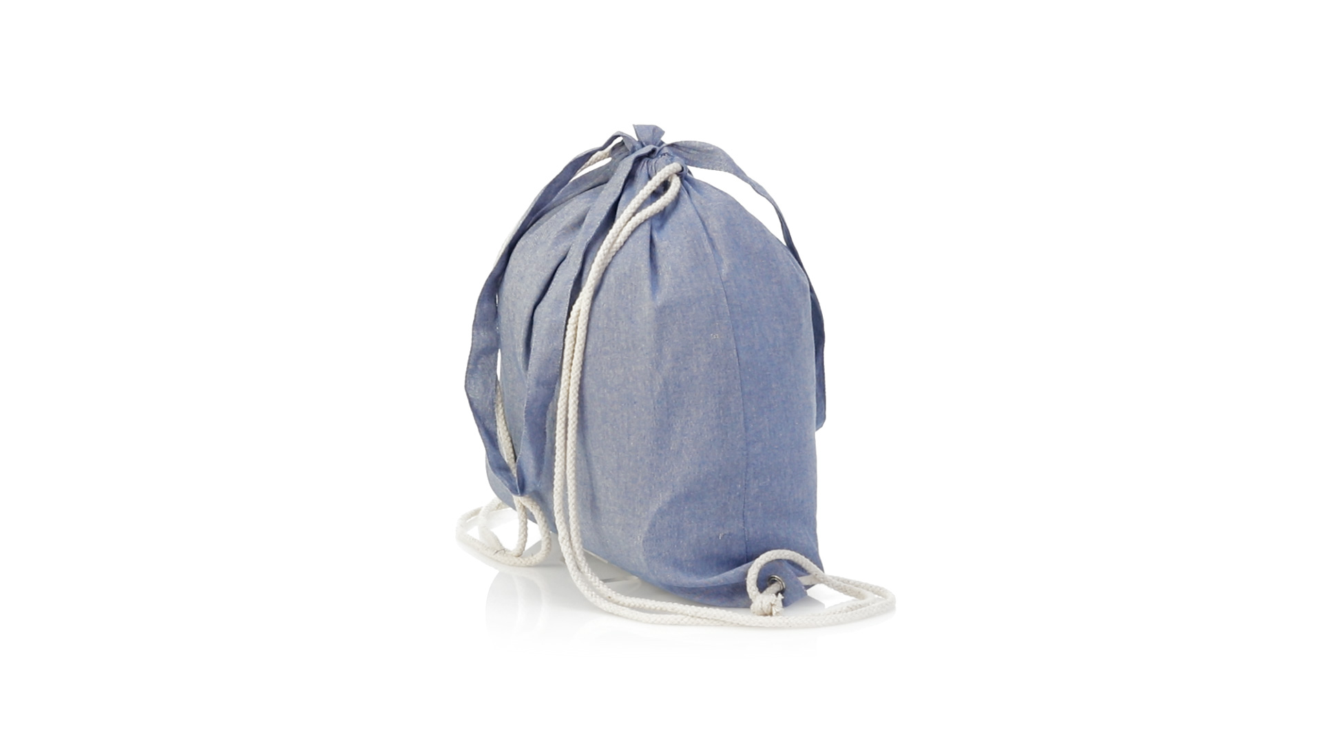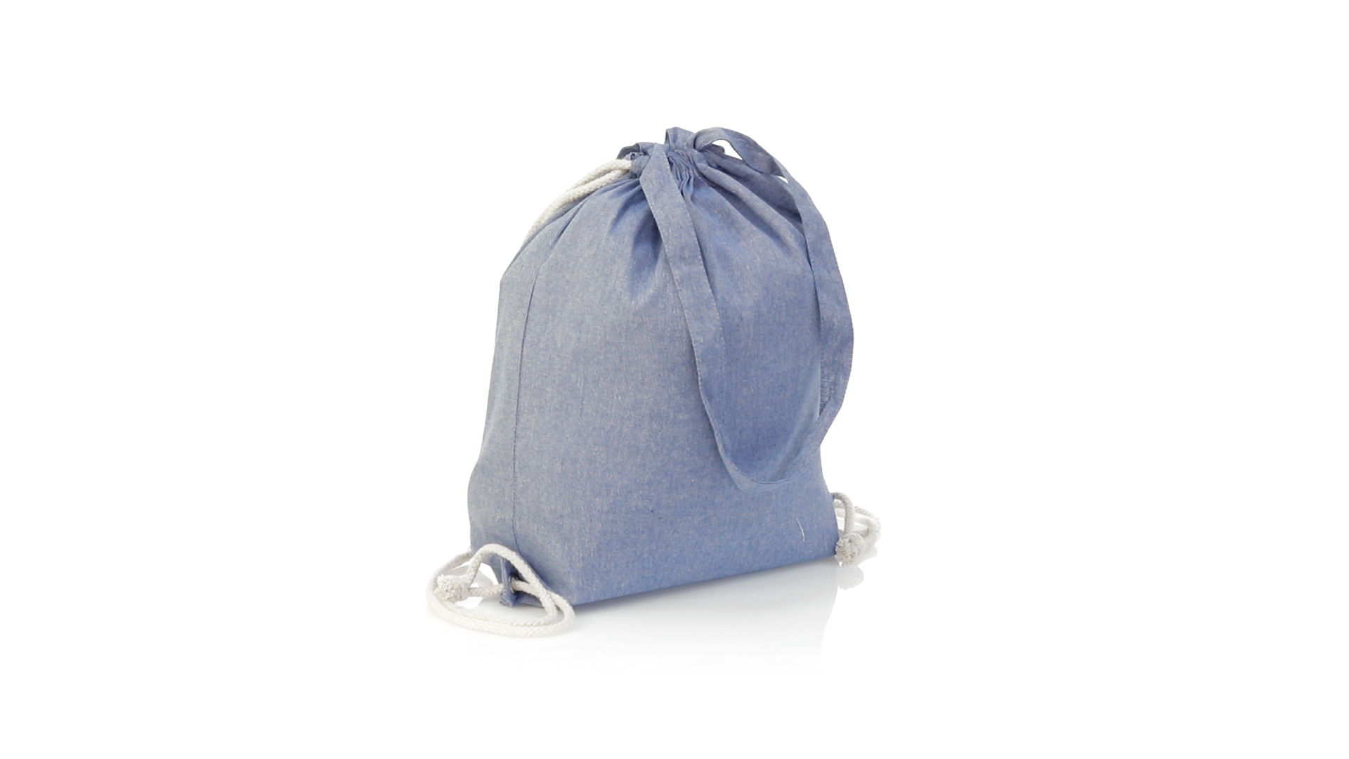 Linie Natur Rucksack mit Kordelzug aus robuster 140g/m2 Recycling-Baumwolle, mit passenden 70 cm langen Henkeln. Kordel aus ecrufarbener Baumwolle, mit verstärkten Metallringen und unverwechselbarem Etikett für recycelte Baumwolle. Erhältlich in einer breiten Palette von Farben. Belastbar bis zu einem Gewicht von 9 kg.