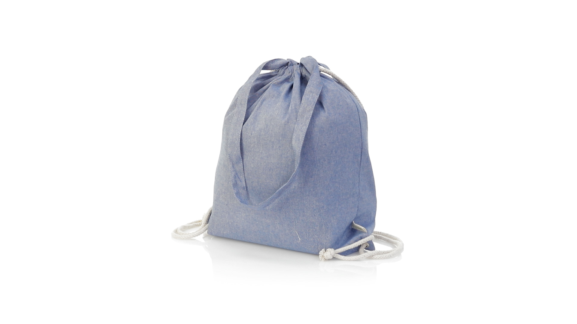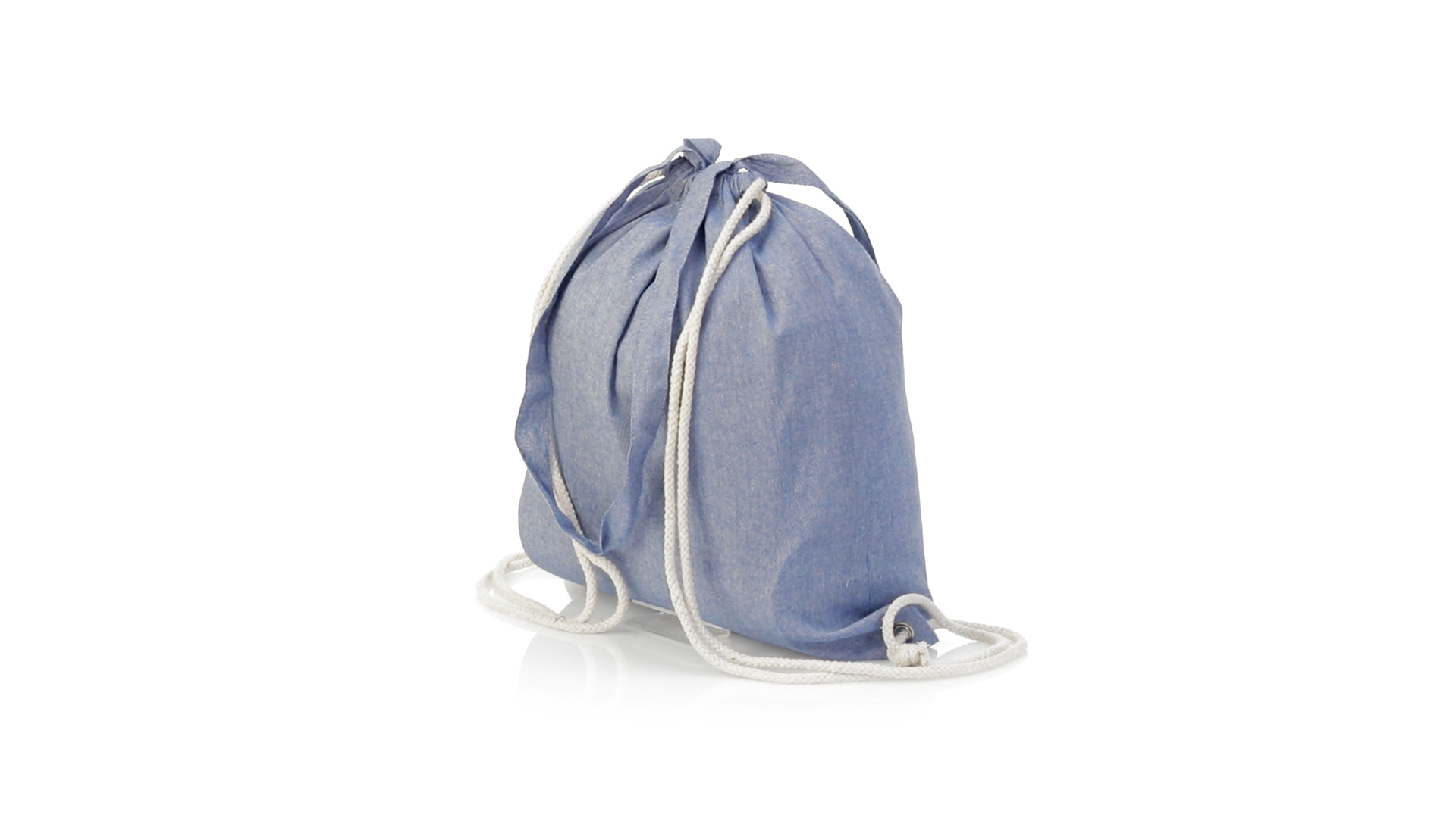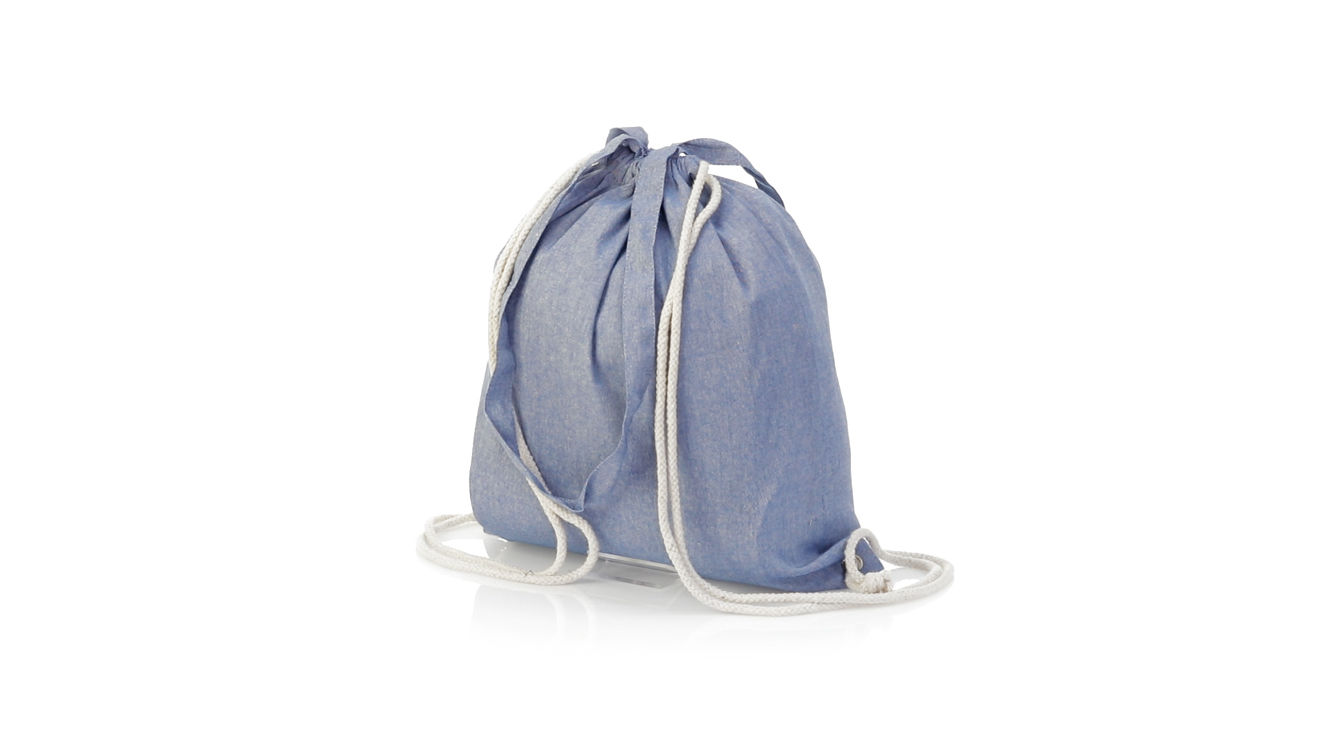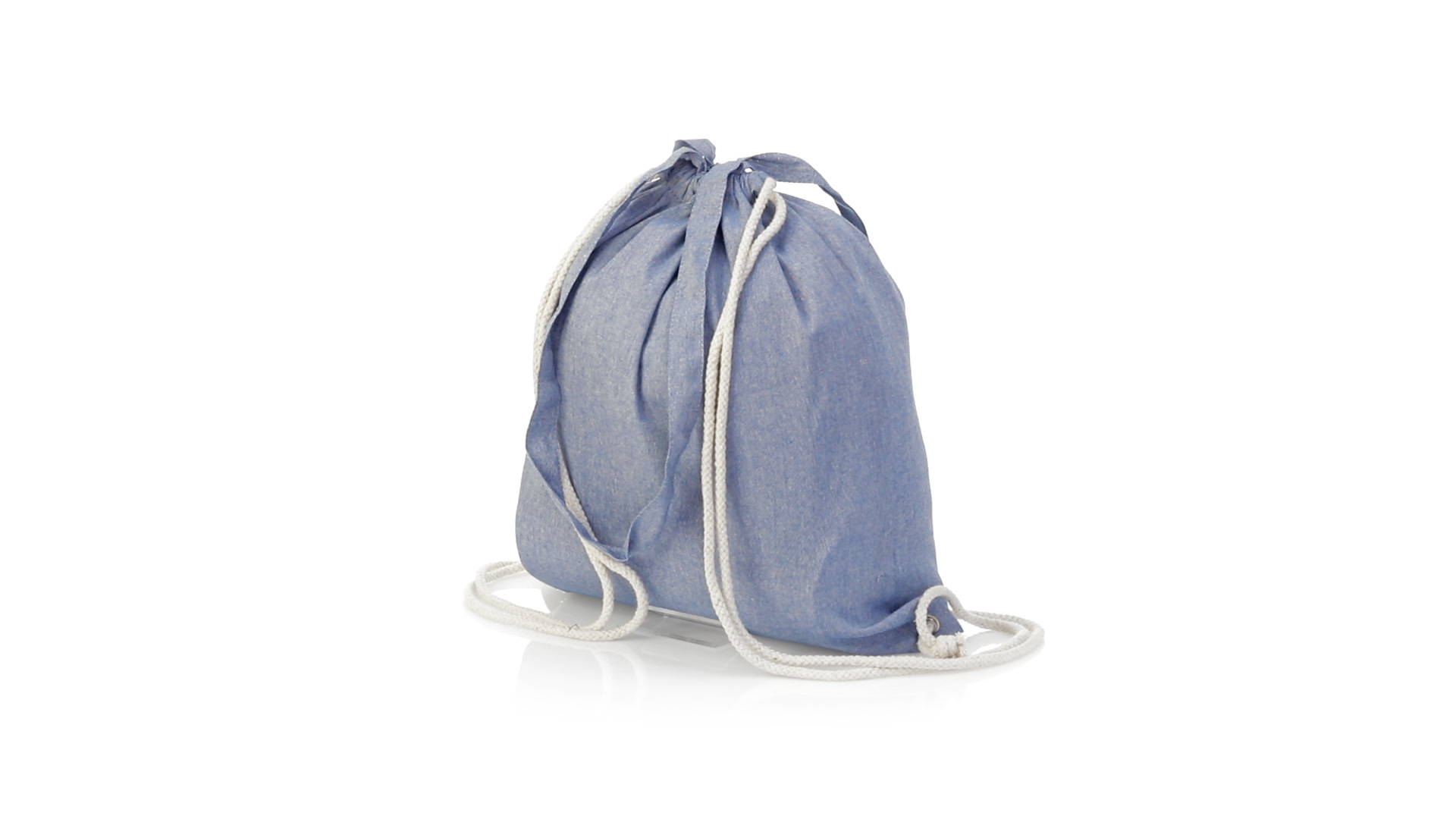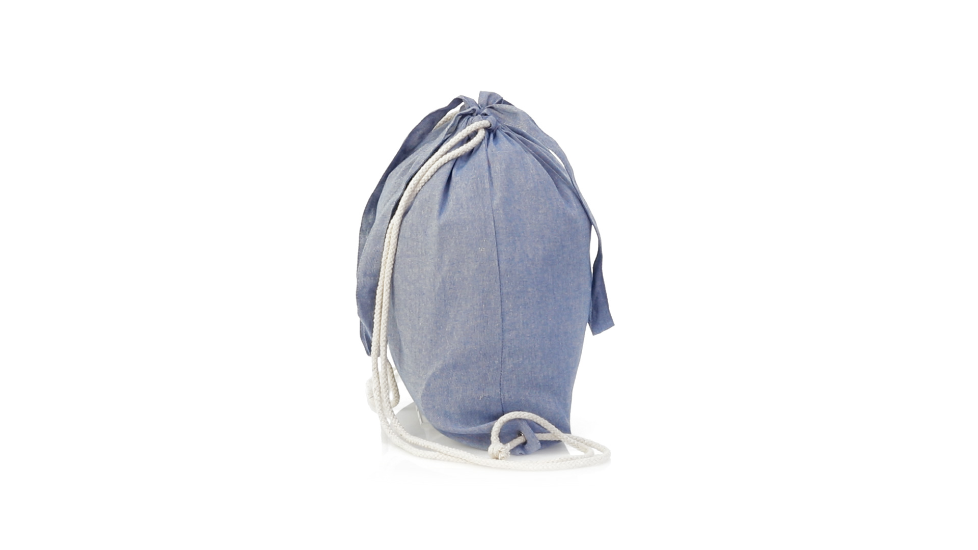 Linie Natur Rucksack mit Kordelzug aus robuster 140g/m2 Recycling-Baumwolle, mit passenden 70 cm langen Henkeln. Kordel aus ecrufarbener Baumwolle, mit verstärkten Metallringen und unverwechselbarem Etikett für recycelte Baumwolle. Erhältlich in einer breiten Palette von Farben. Belastbar bis zu einem Gewicht von 9 kg.