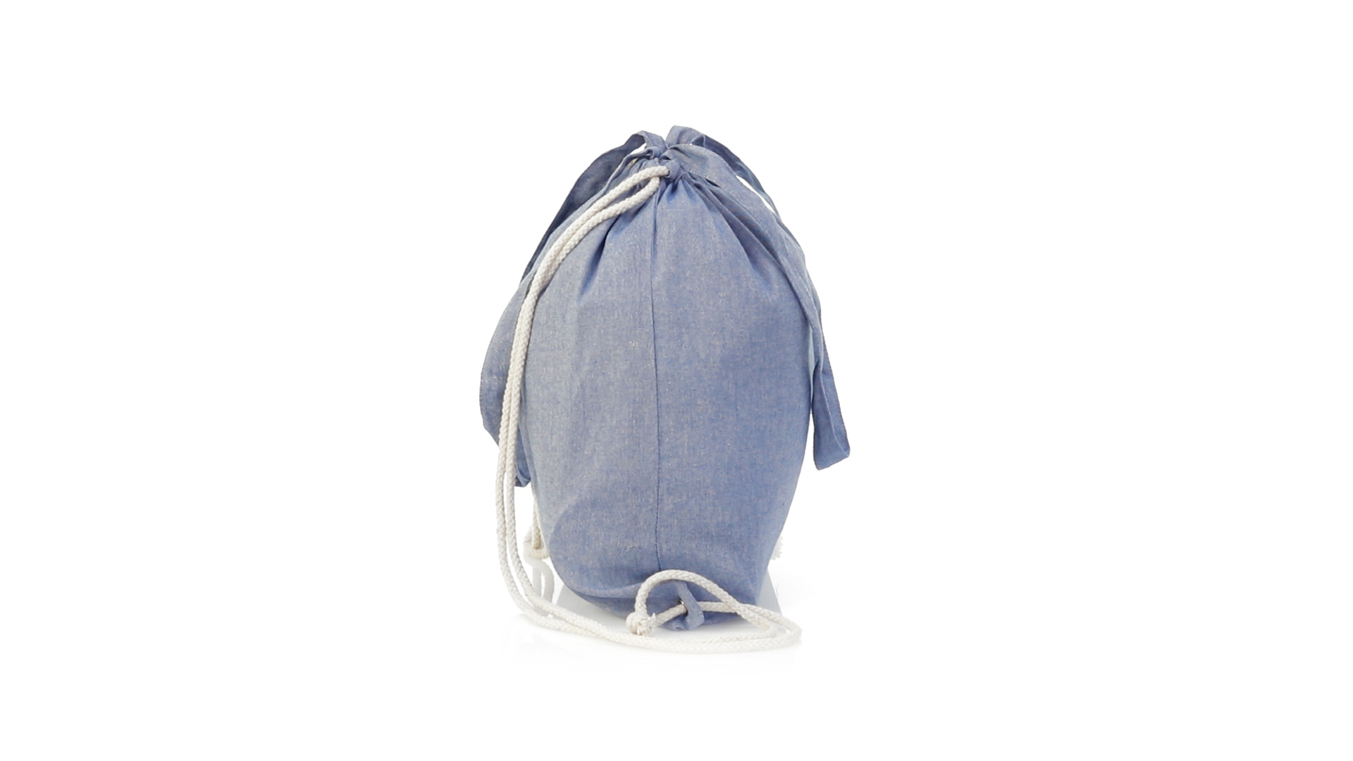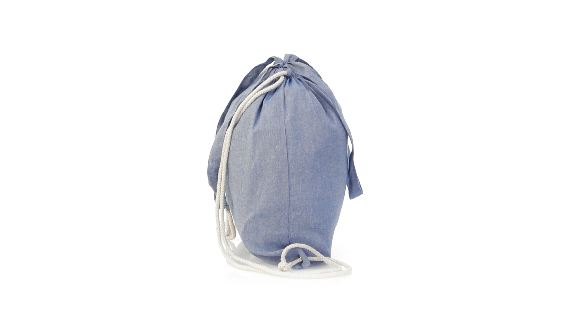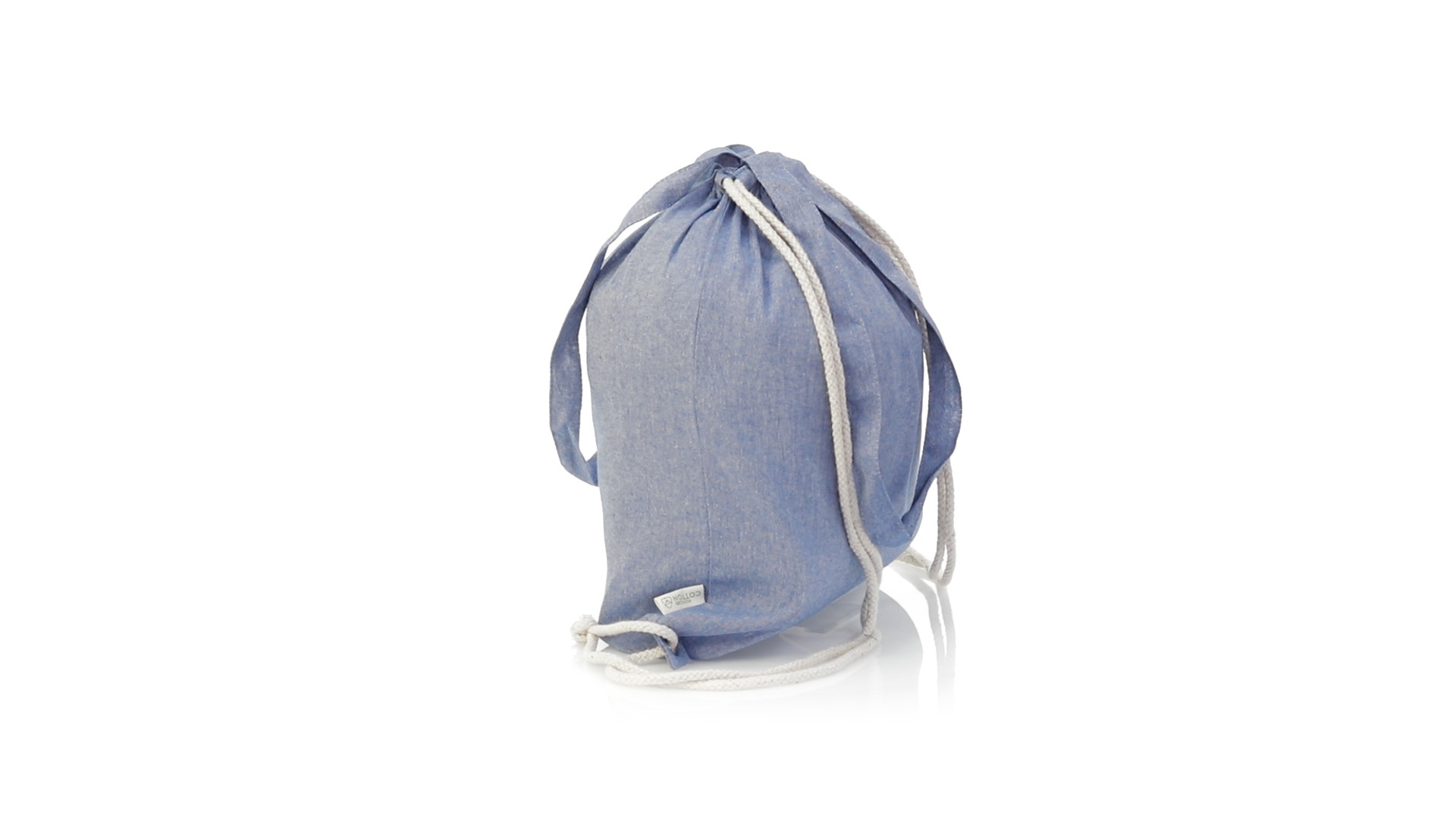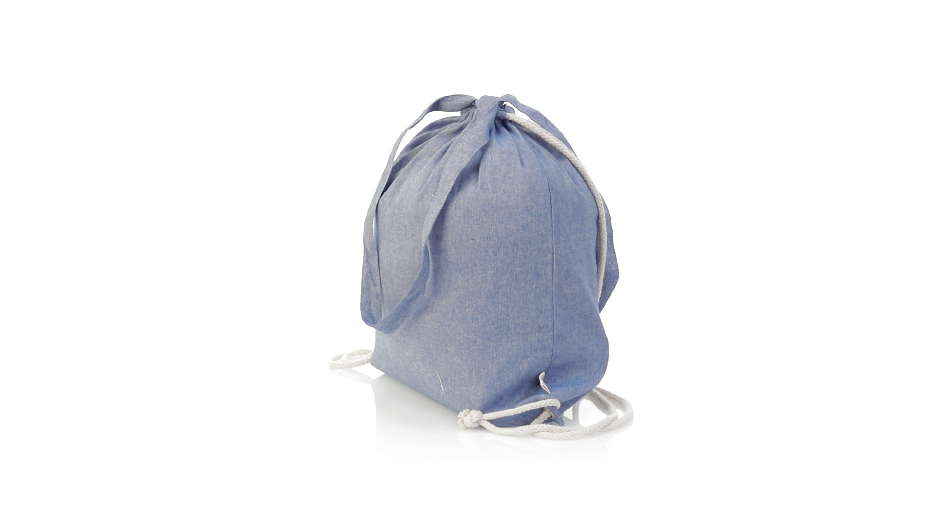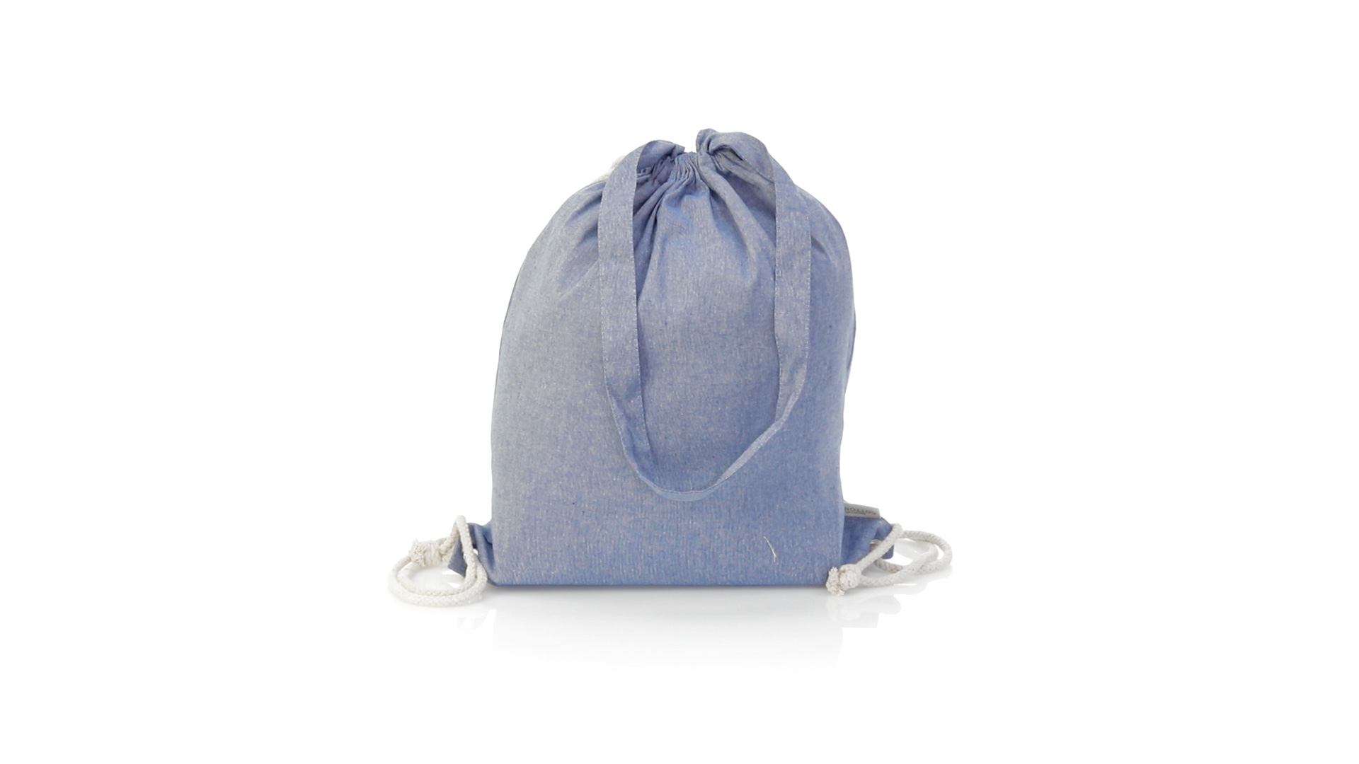 Linie Natur Rucksack mit Kordelzug aus robuster 140g/m2 Recycling-Baumwolle, mit passenden 70 cm langen Henkeln. Kordel aus ecrufarbener Baumwolle, mit verstärkten Metallringen und unverwechselbarem Etikett für recycelte Baumwolle. Erhältlich in einer breiten Palette von Farben. Belastbar bis zu einem Gewicht von 9 kg.