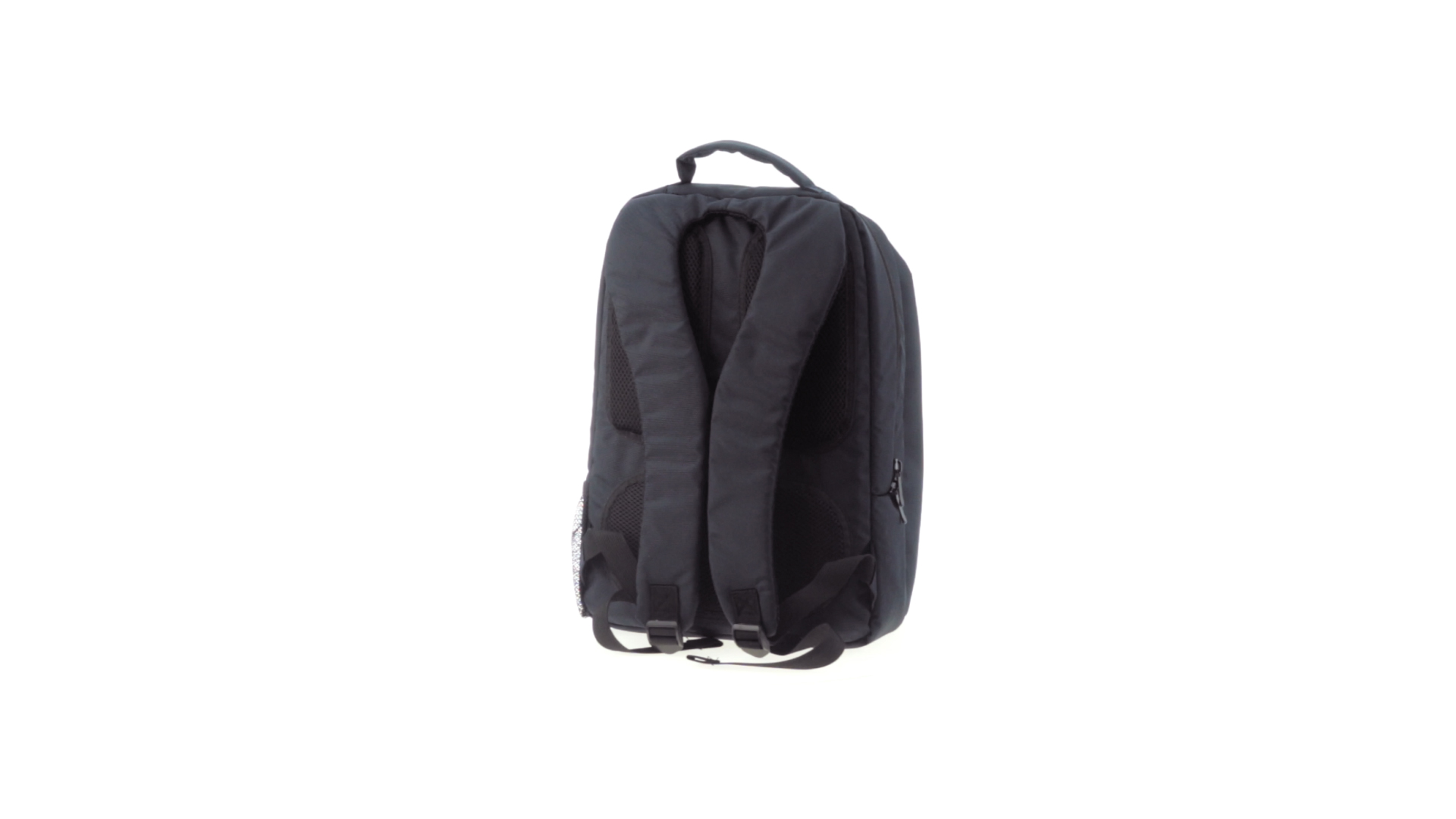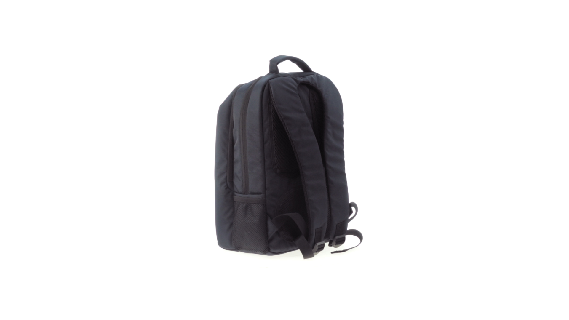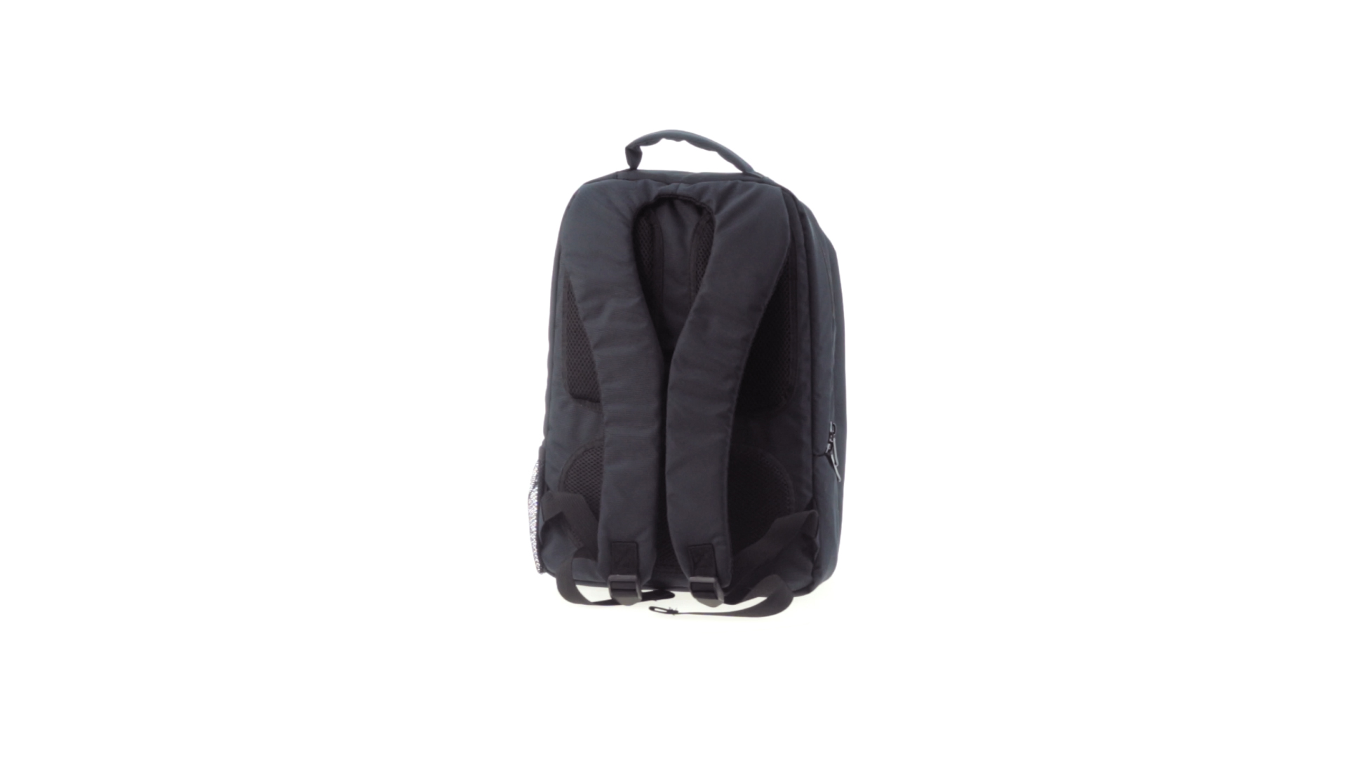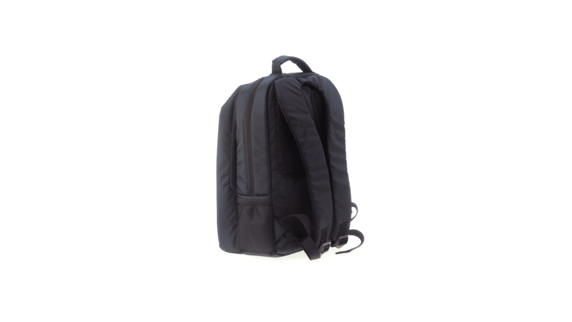 Resistenter Rucksack aus 600D Nylon mit Reissverschluss, Fronttaschen und verstärktem Griff sowie ergonomischem Rückenpanel mit Polsterung und gepolsterten Schultergurten. Bietet zudem ein gepolstertes Innenfach für einen Laptop von bis zu 15 Zoll.