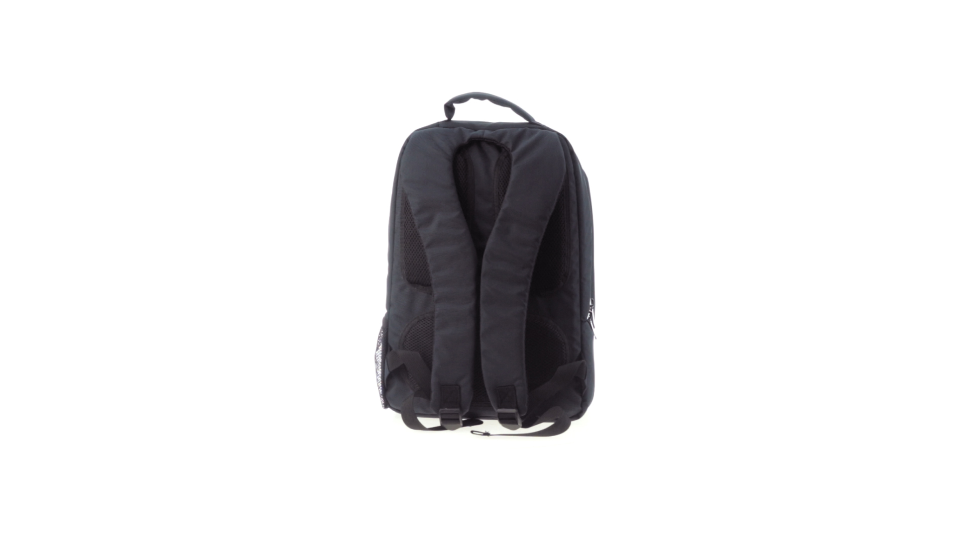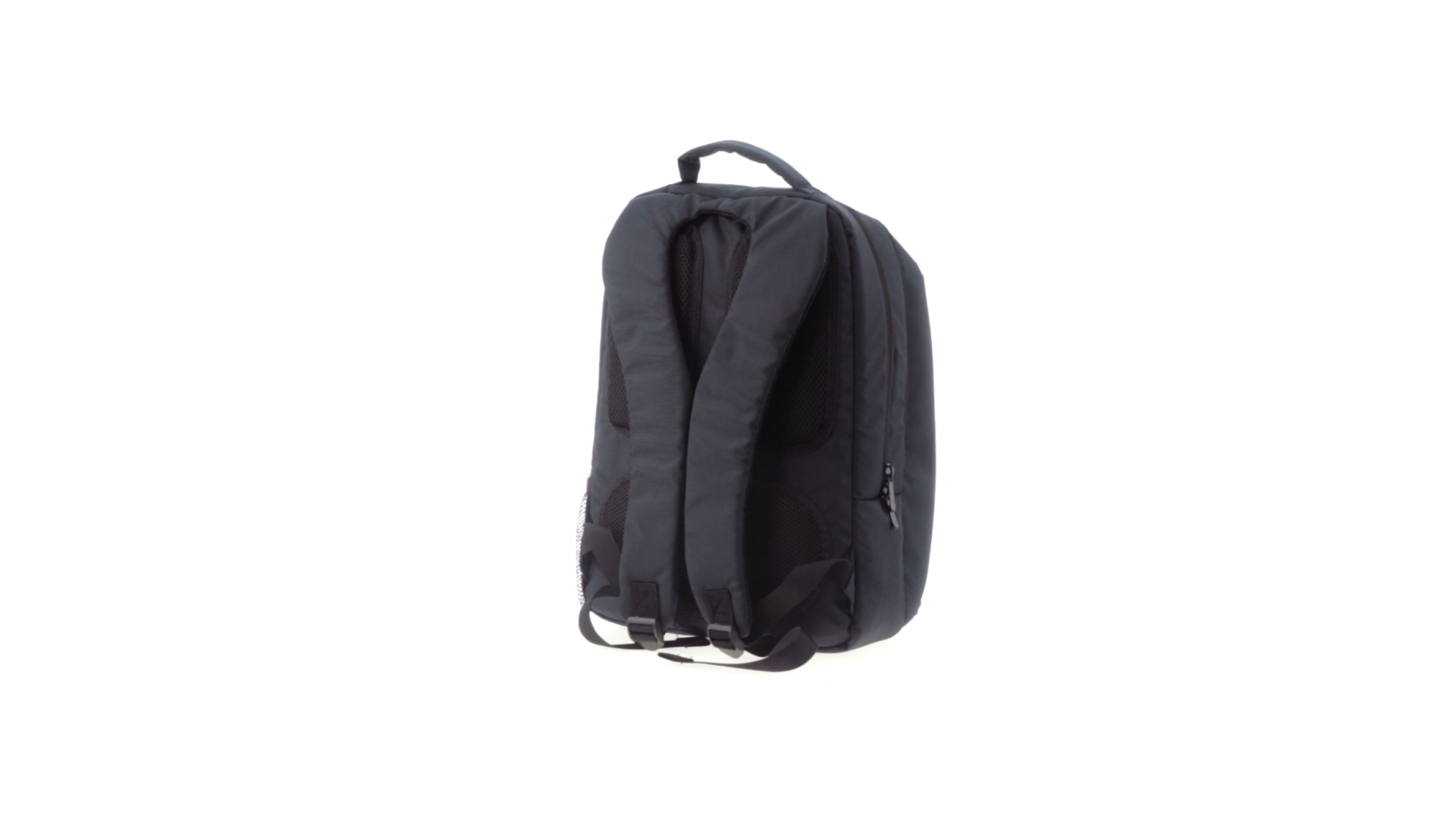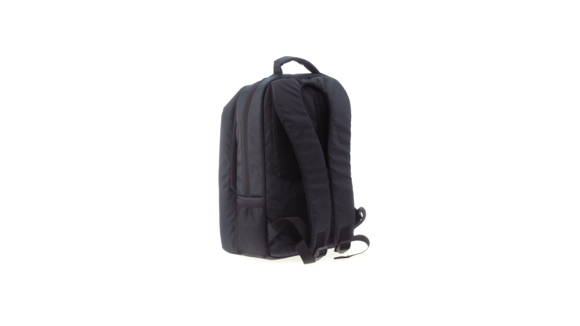 Resistenter Rucksack aus 600D Nylon mit Reissverschluss, Fronttaschen und verstärktem Griff sowie ergonomischem Rückenpanel mit Polsterung und gepolsterten Schultergurten. Bietet zudem ein gepolstertes Innenfach für einen Laptop von bis zu 15 Zoll.