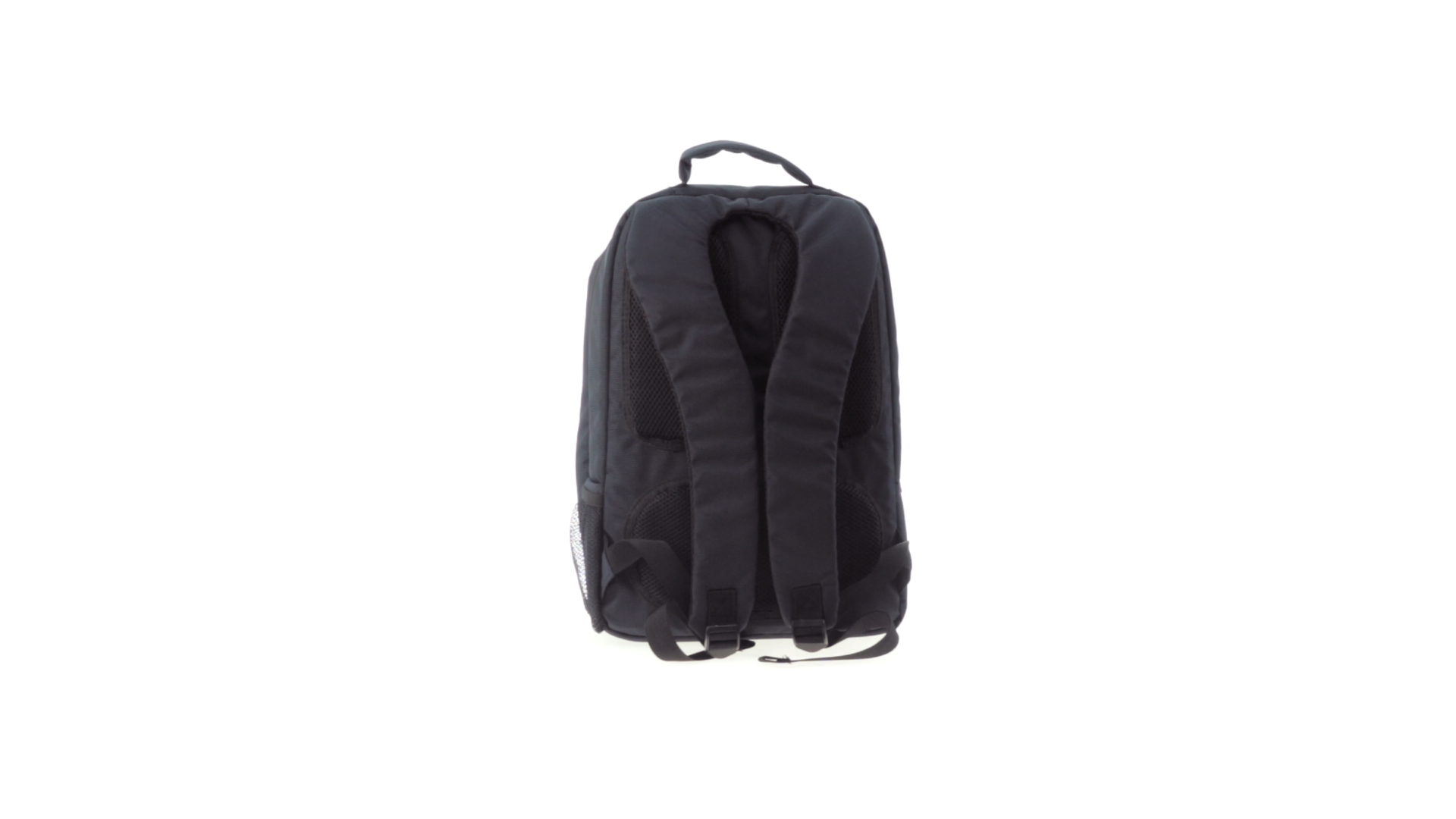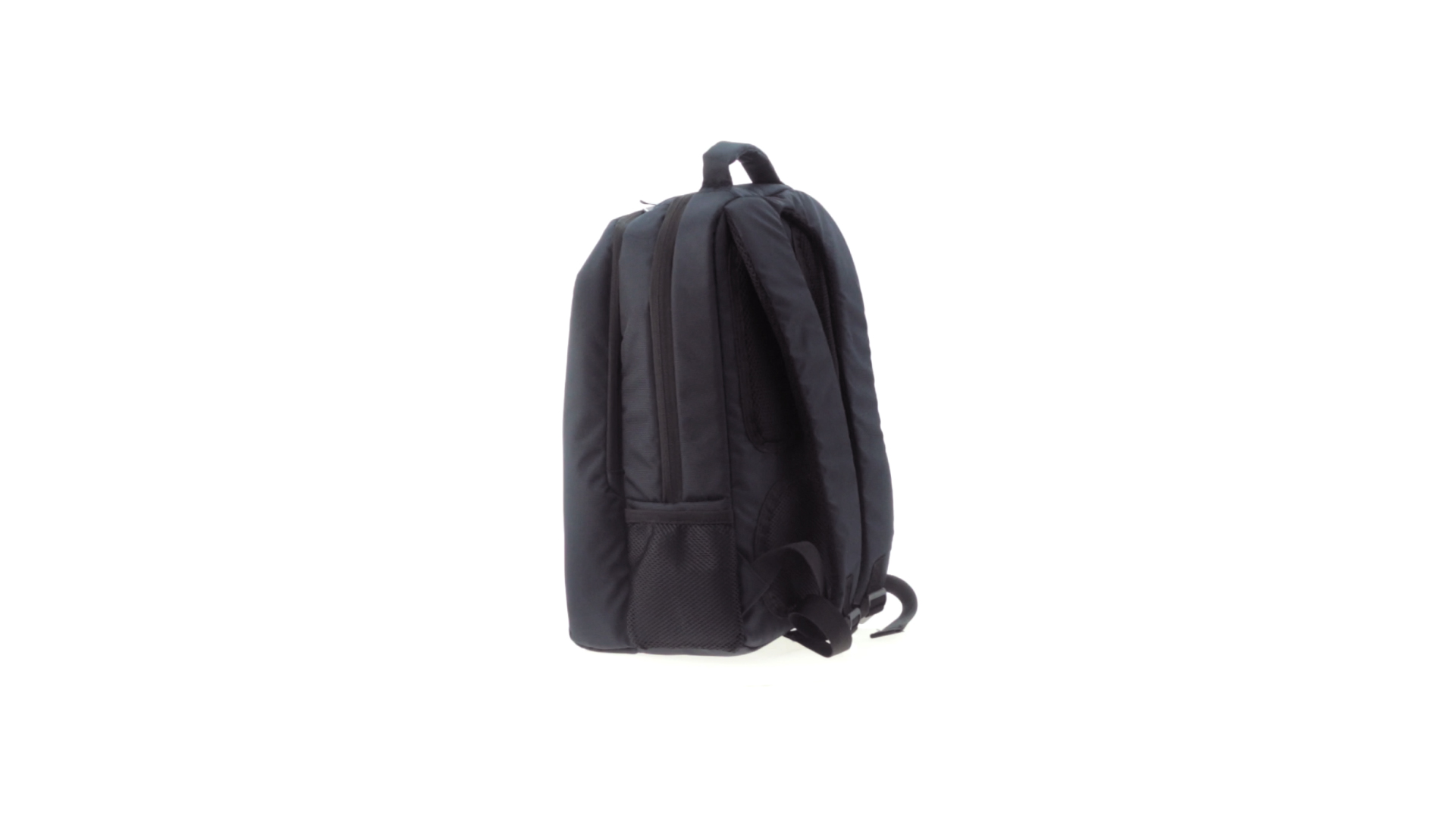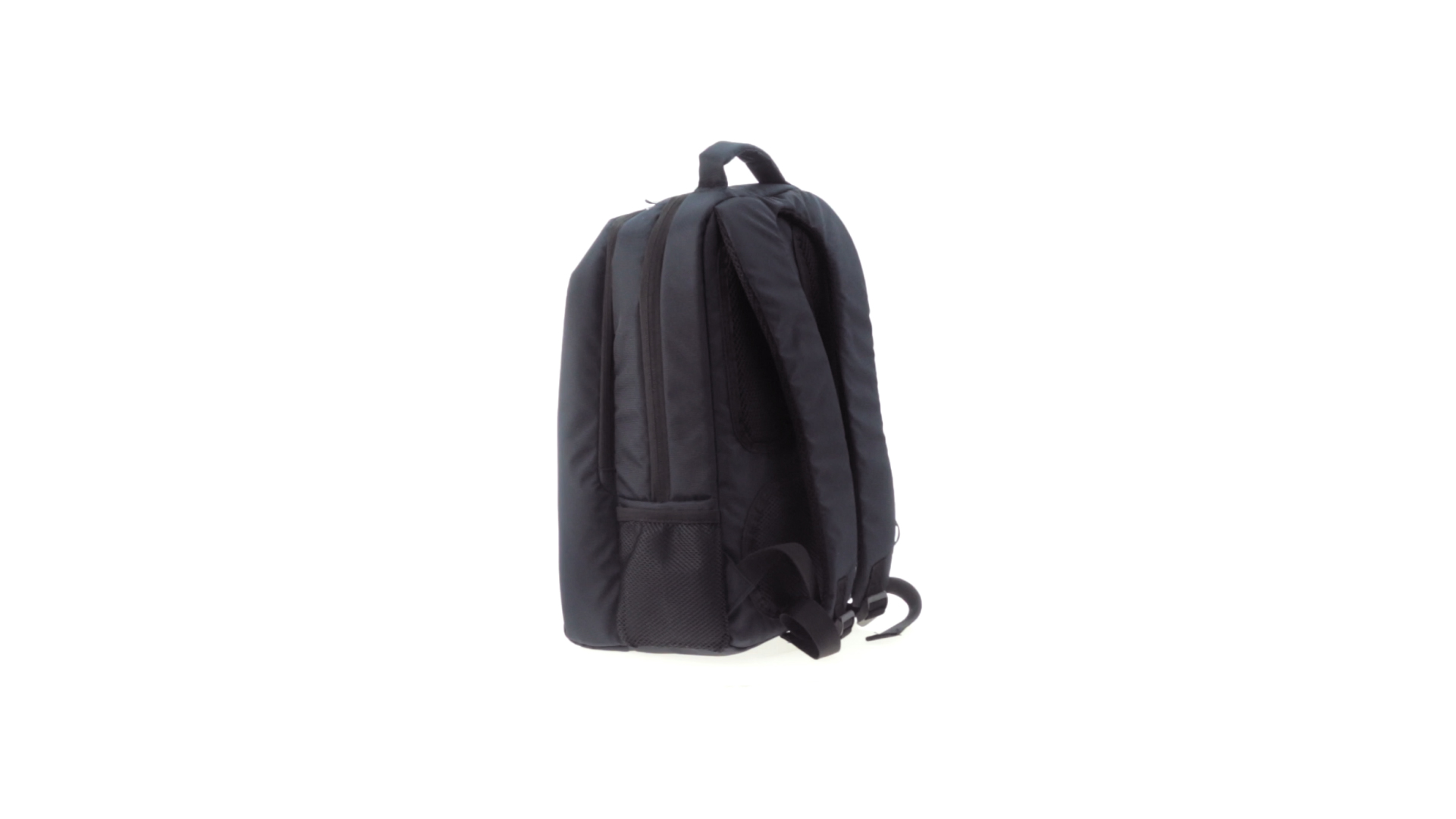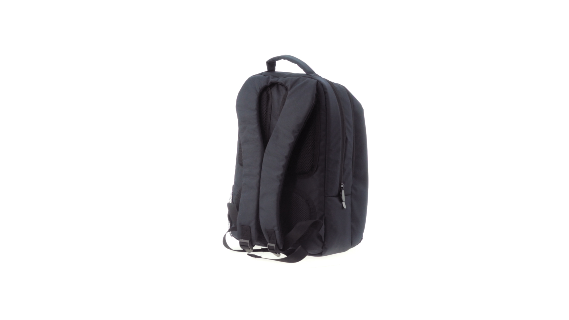Resistenter Rucksack aus 600D Nylon mit Reissverschluss, Fronttaschen und verstärktem Griff sowie ergonomischem Rückenpanel mit Polsterung und gepolsterten Schultergurten. Bietet zudem ein gepolstertes Innenfach für einen Laptop von bis zu 15 Zoll.