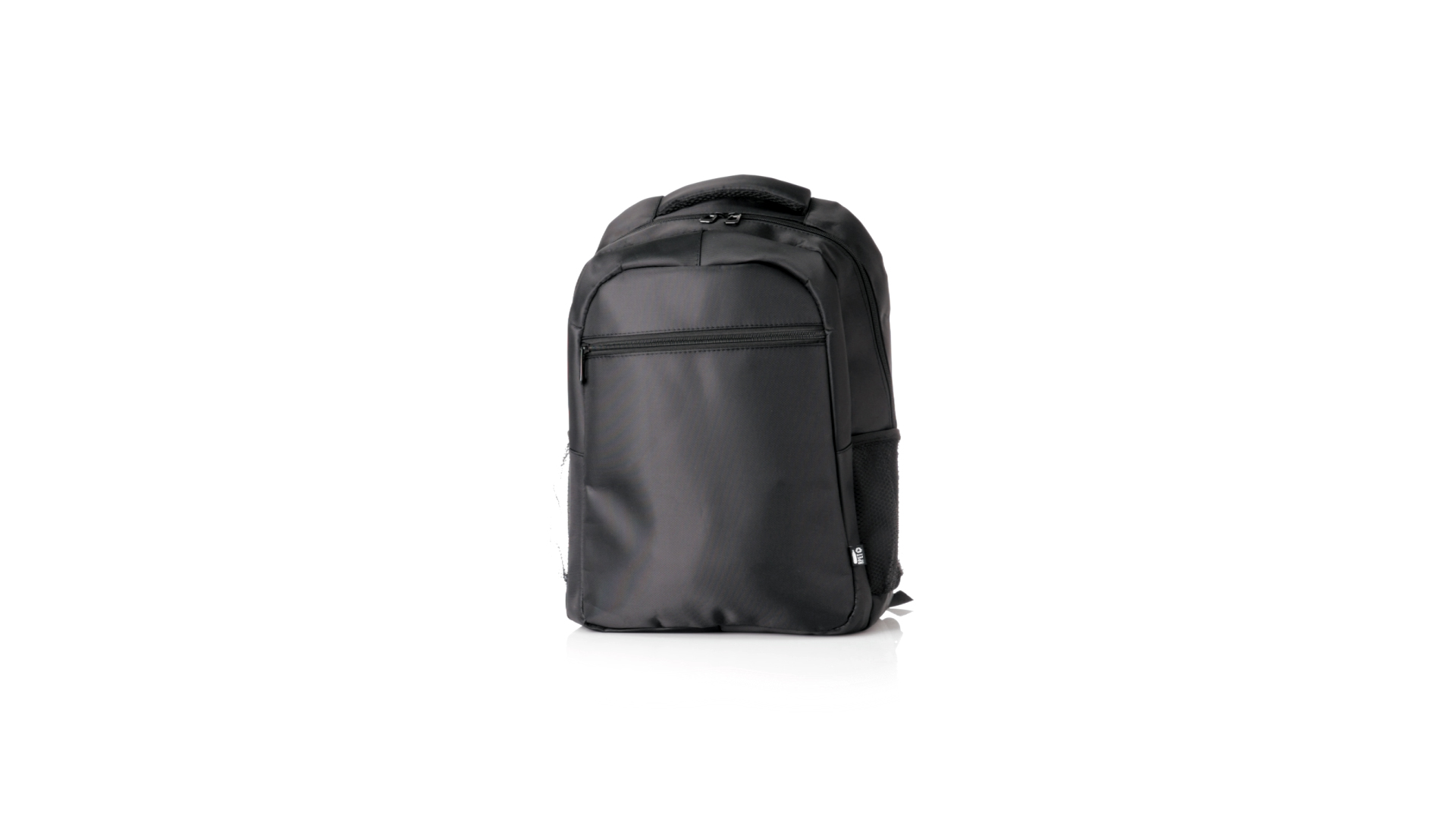 Hochwertiger Rucksack aus 420D RNYLON. Hauptfach mit passendem Reissverschluss und doppeltem Zugband. Enthält eine Aussentasche mit Reissverschluss und 2 seitliche Netztaschen. Polsterung an Griff, Rücken und verstellbaren Schultergurten. Innenraum mit gepolstertem Laptop-Fach für bis zu 15"-Laptops und Rückenbefestigung für die Anbringung eines Trolleys. Erhältlich in verschiedenen Farben, mit dem Recycling-Symbol auf dem Aussenetikett.Das RNYLON-Material wird aus recyceltem Kunststoff hergestellt, um die Wiederverwendung von Kunststoffabfällen zu fördern und die Nachhaltigkeit unseres Planeten zu unterstützen.