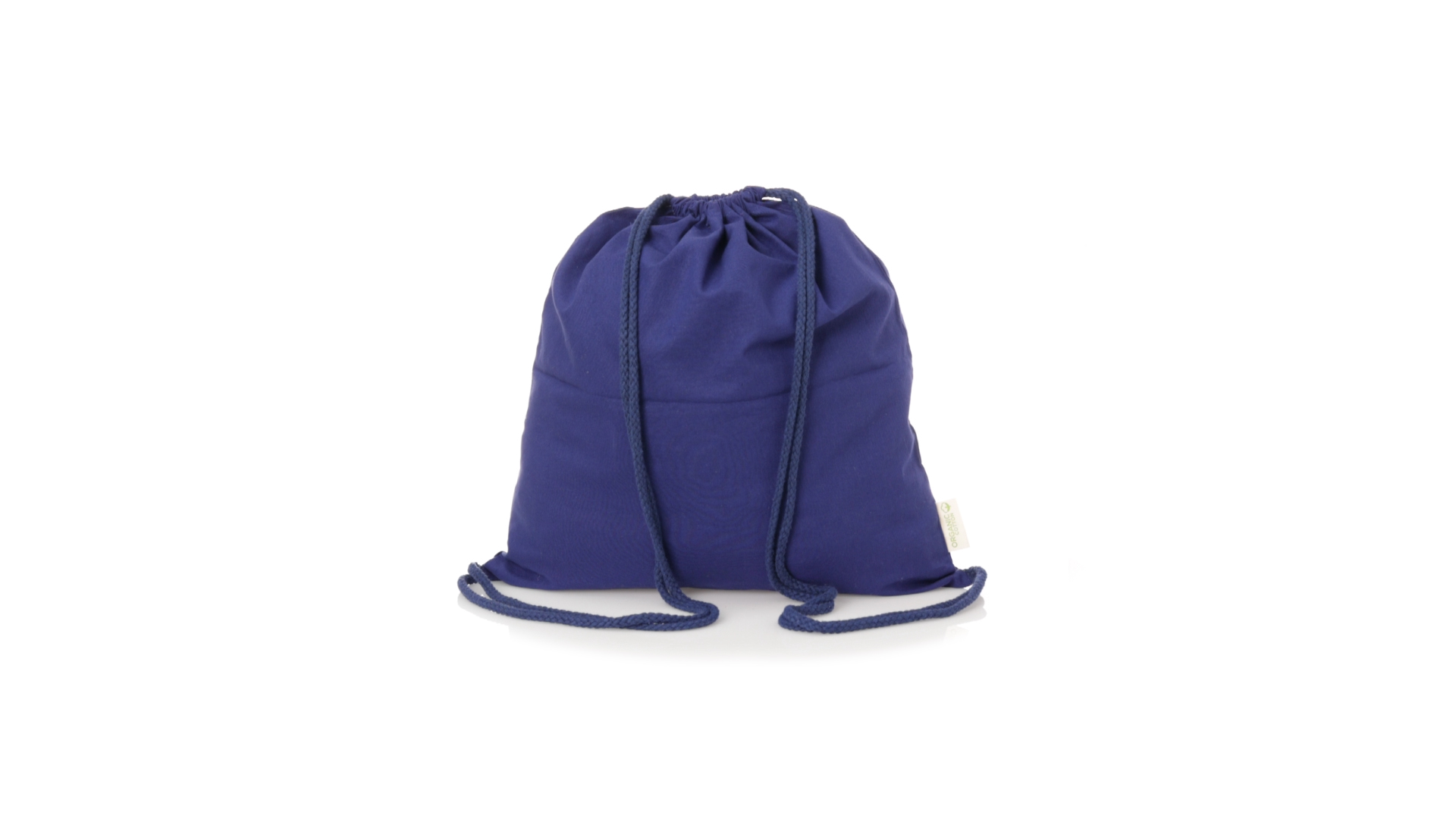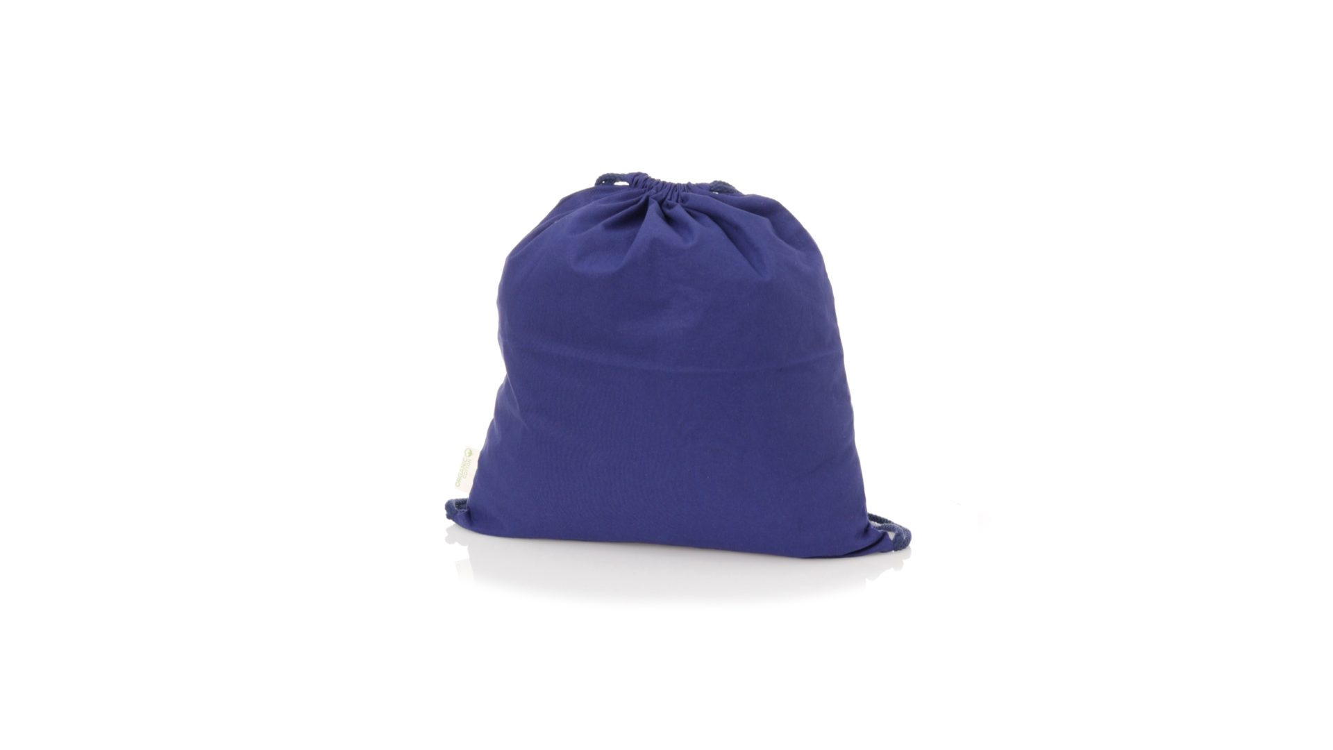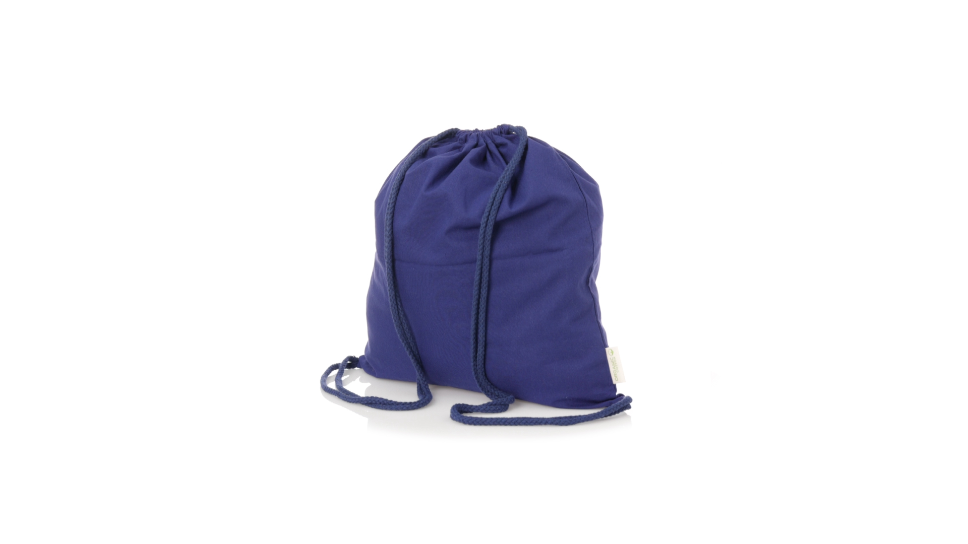Linie Natur Rucksack mit Kordelzug aus Bio-Baumwolle 120g/m2. Hauptfach mit Baumwollkordelzug und Aussenetikett mit dem Bio-Baumwollkennzeichen. Erhältlich in einer breiten Palette von Farben.